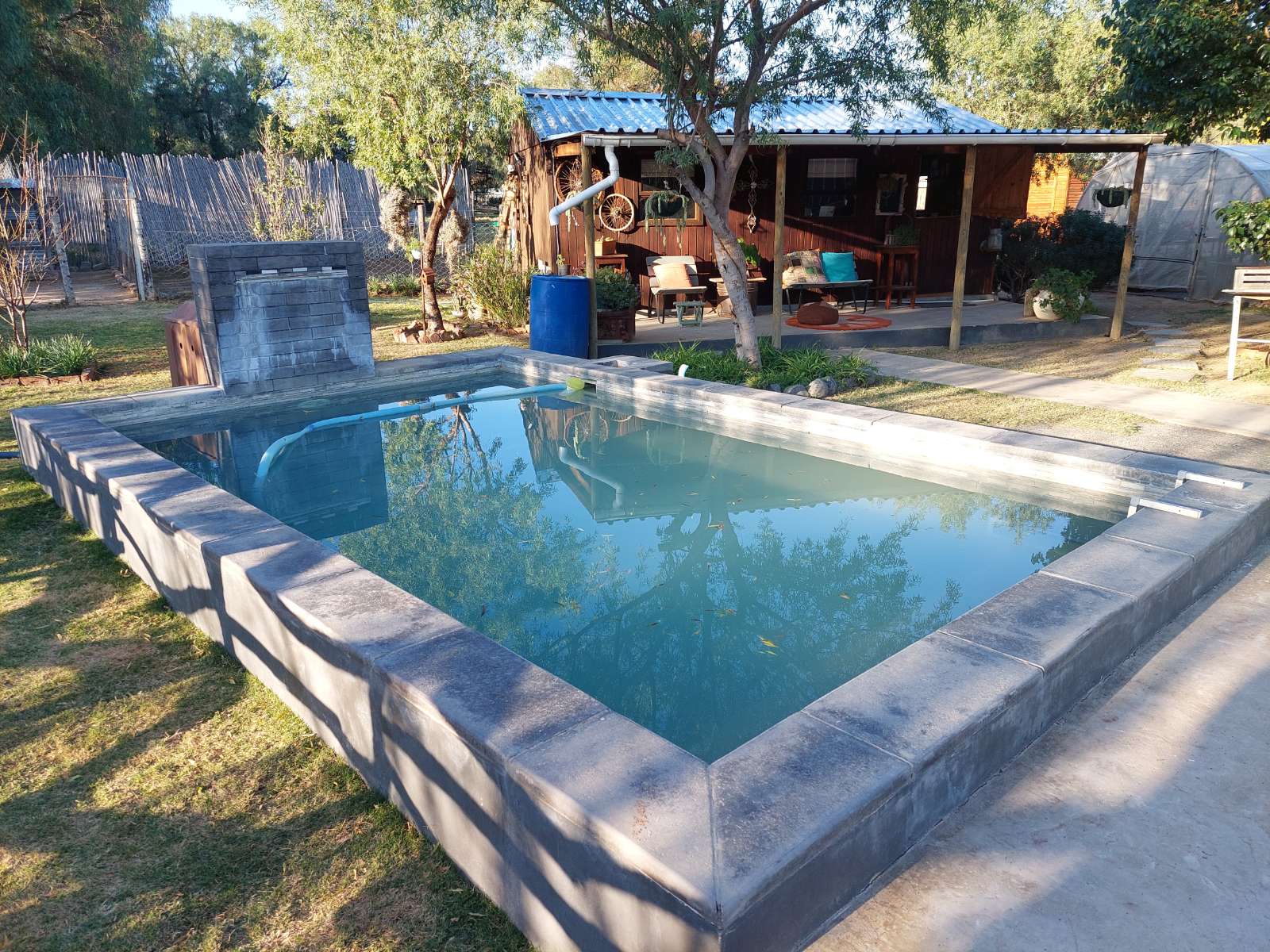 A private swimming pool with a tranquil waterfall – your own oasis under the Karoo sun.