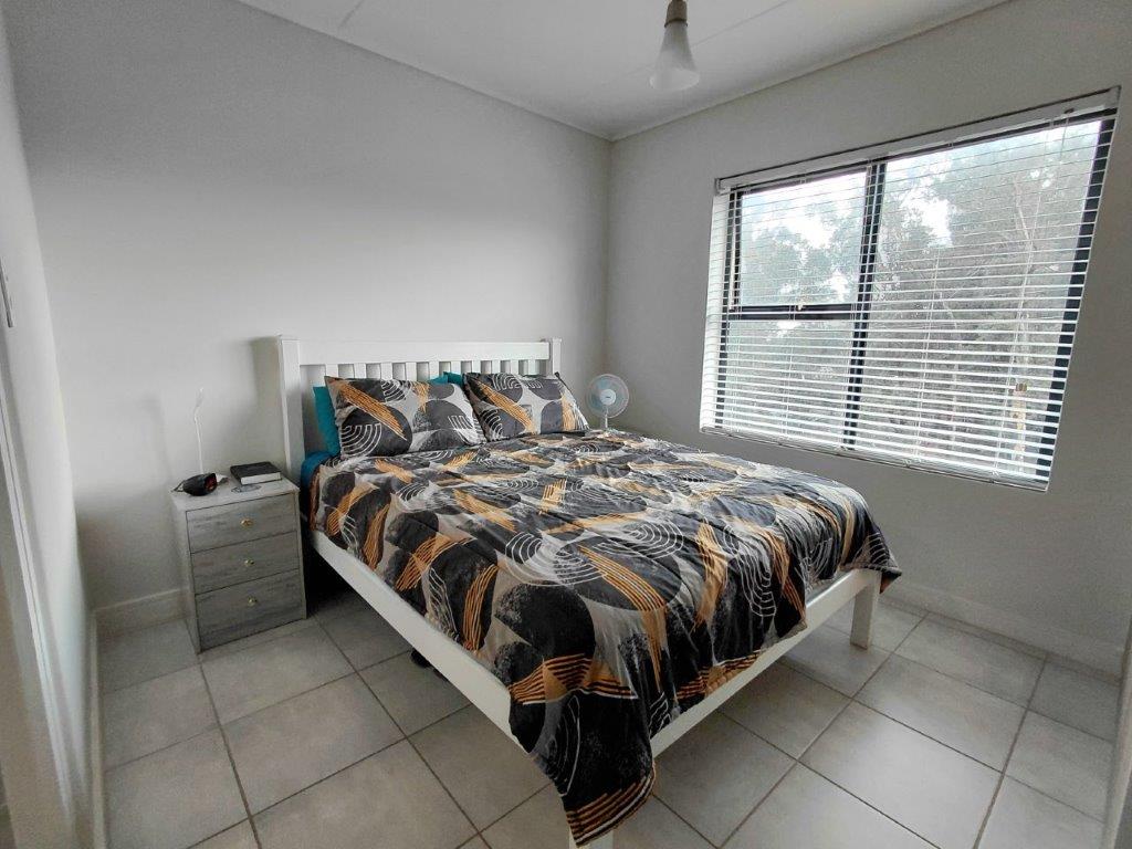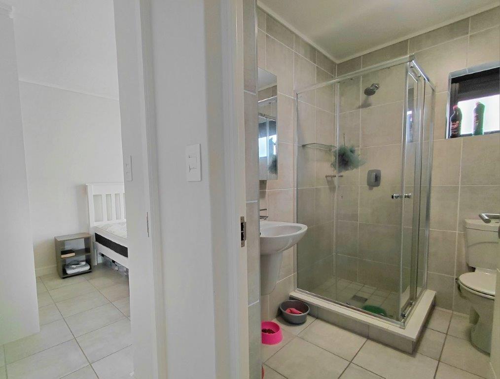 The sunny main bedroom includes built-in cupboards, tree views and an en-suite with a bath - the second bedroom offers cupboards and a modern bathroom with a shower.