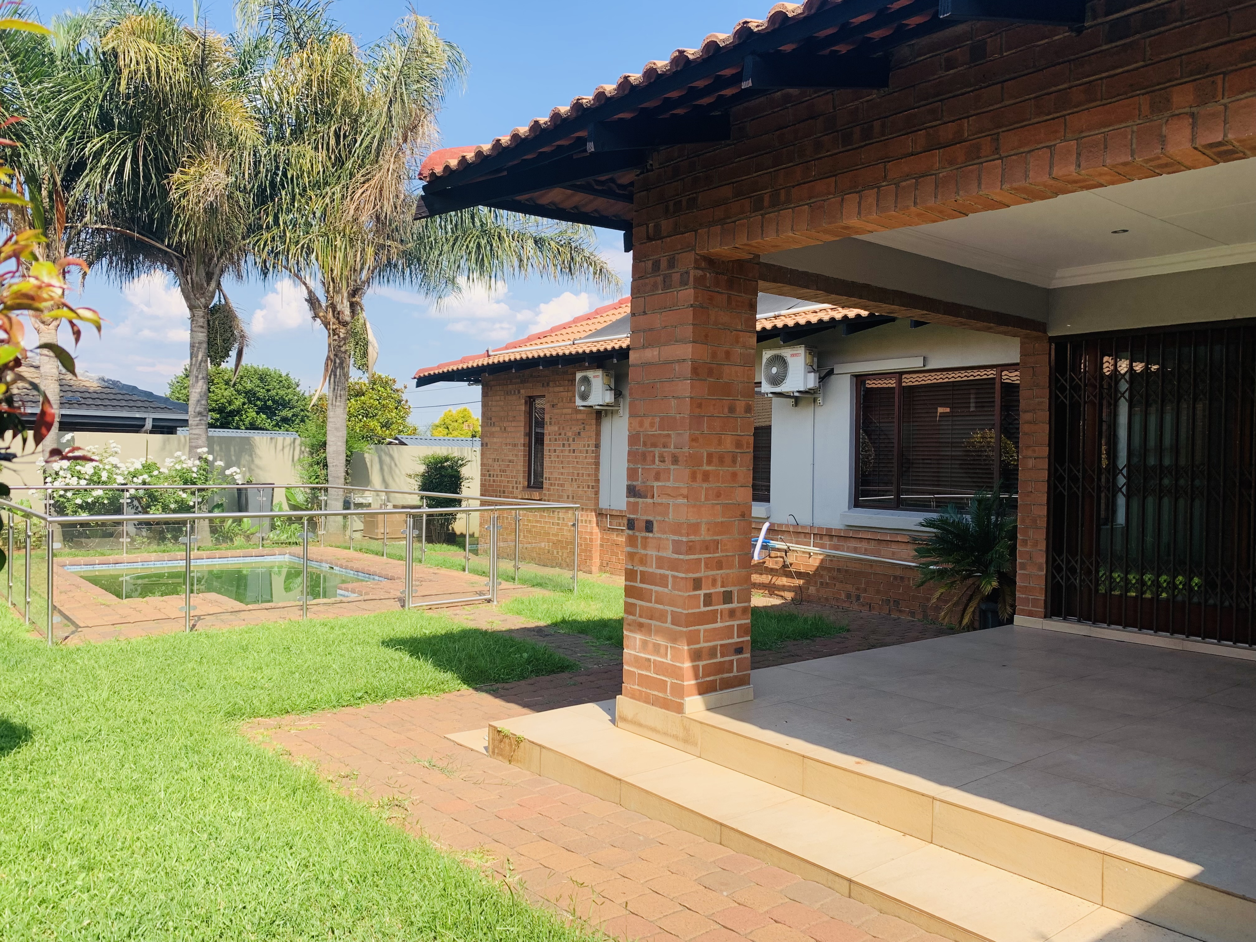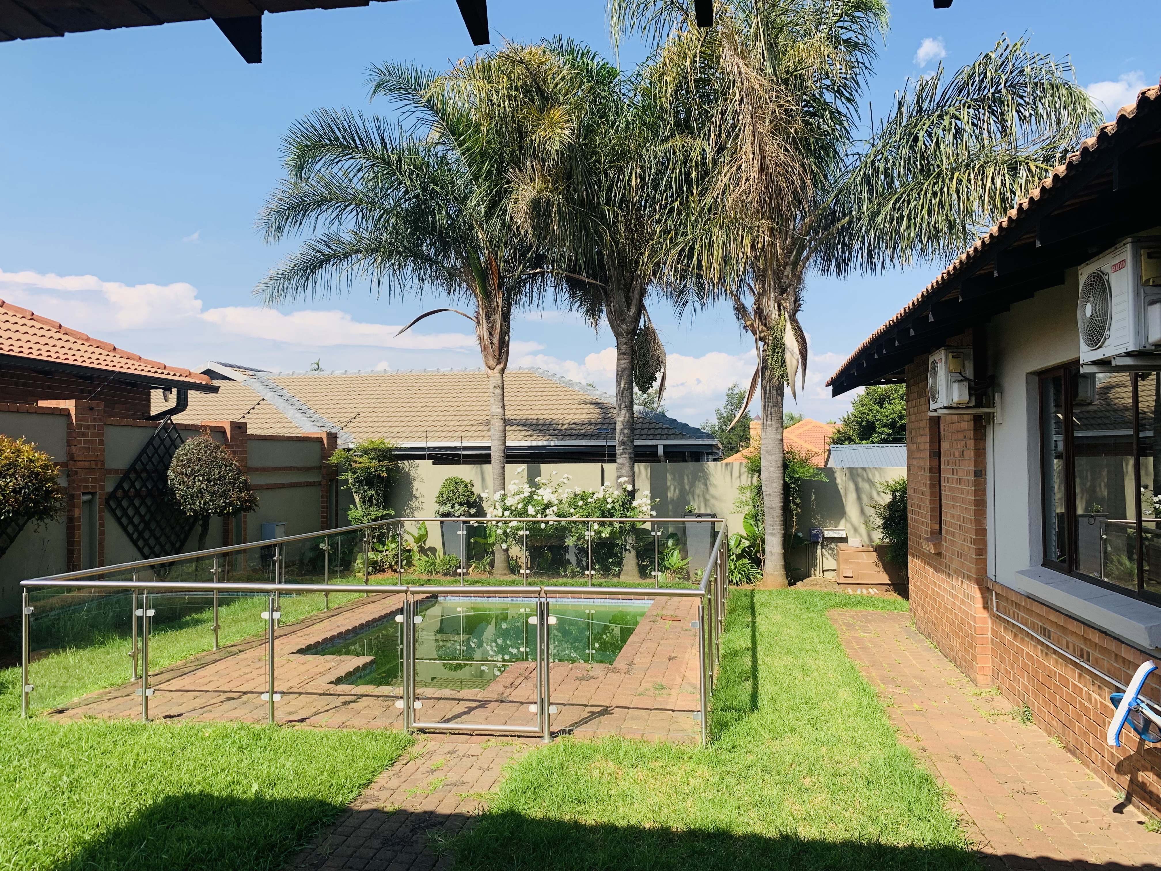 Outside you have a sizeable garden with sprinklers on a timer system and a crystal clear swimming pool. that has solar panels to ensure comfortable water temperature and is secured for the safely of children!
