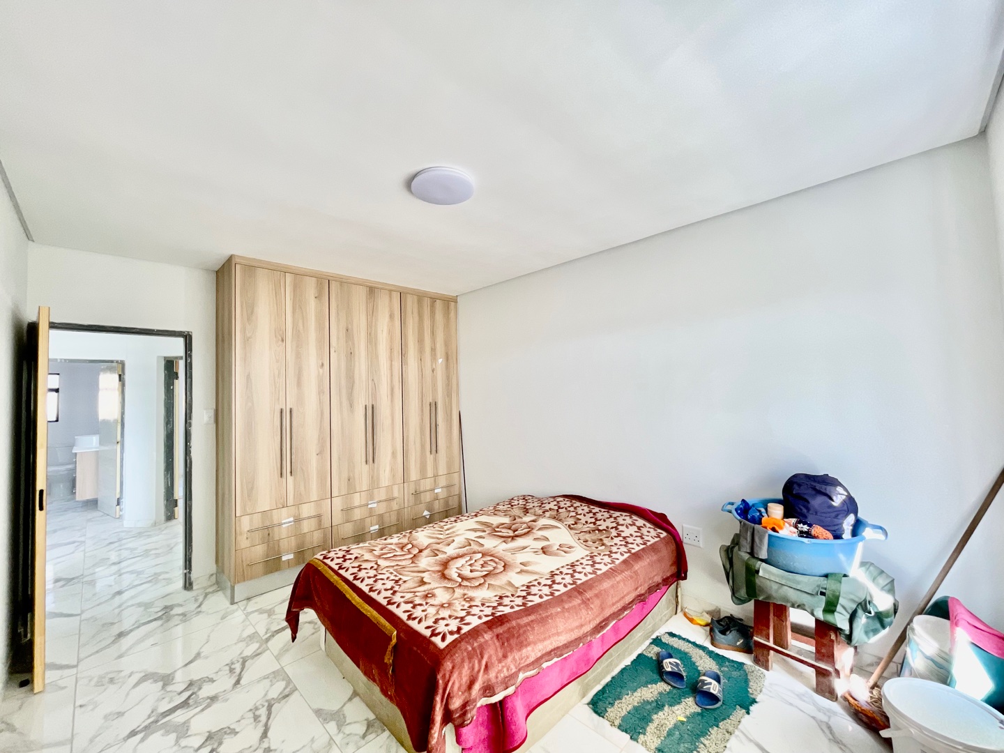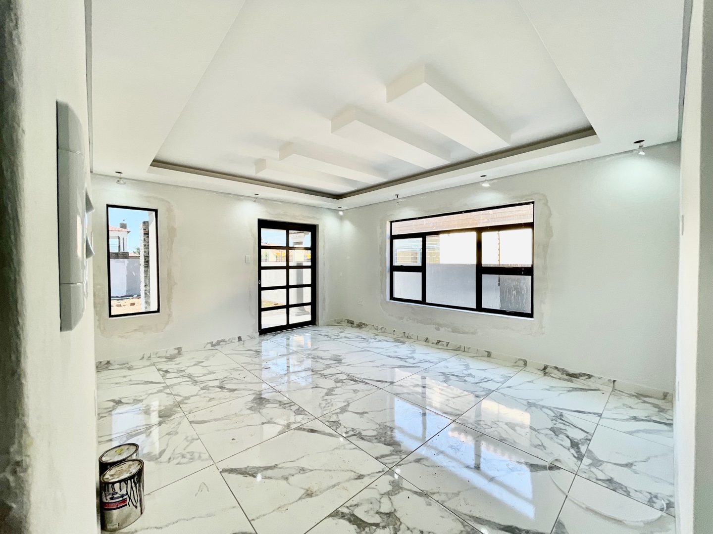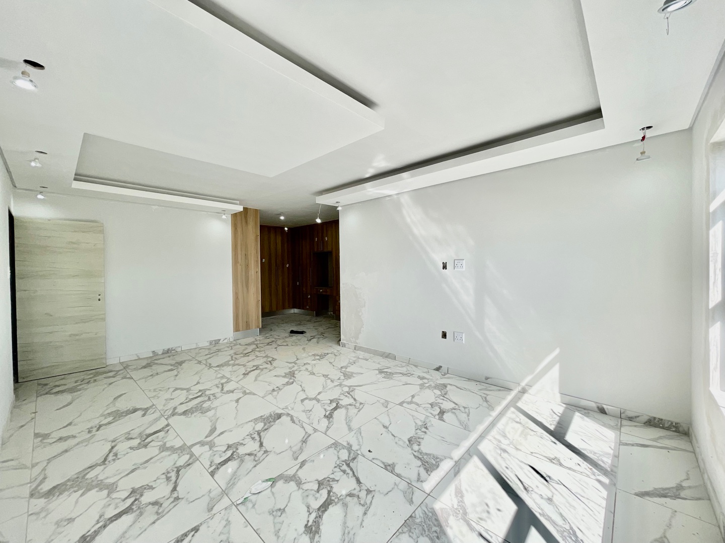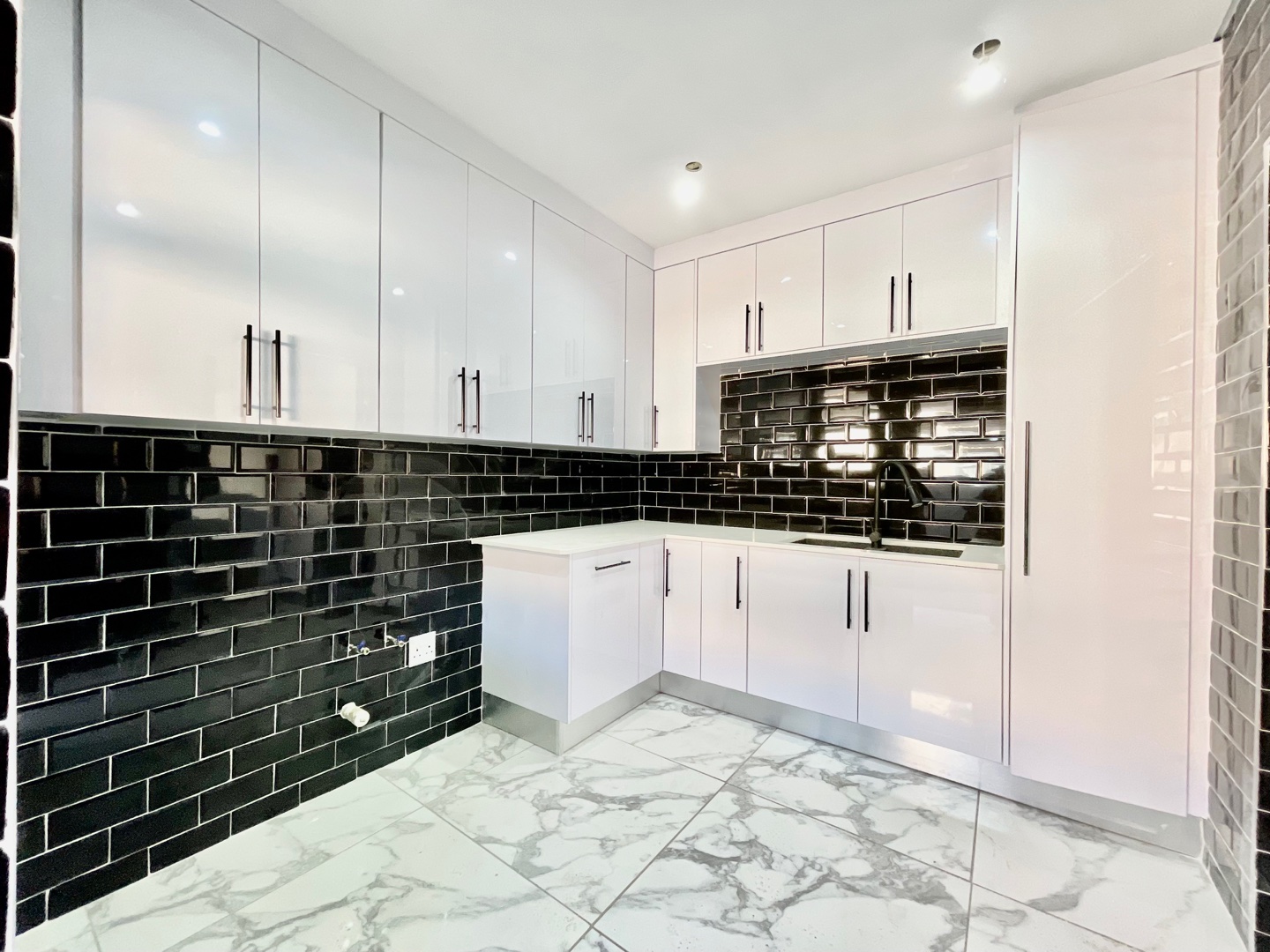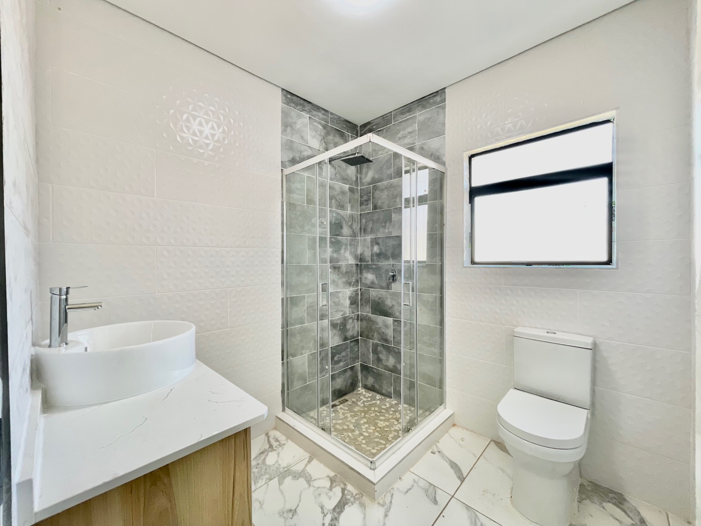 Step inside to discover a cozy yet spacious open-plan living area, seamlessly connecting a glossy modern kitchen, featuring tasteful finishes to the dining area and lounge. Natural light floods in, creating a welcoming atmosphere, perfect for relaxation or entertaining guests through folding doors to a patio with a braai