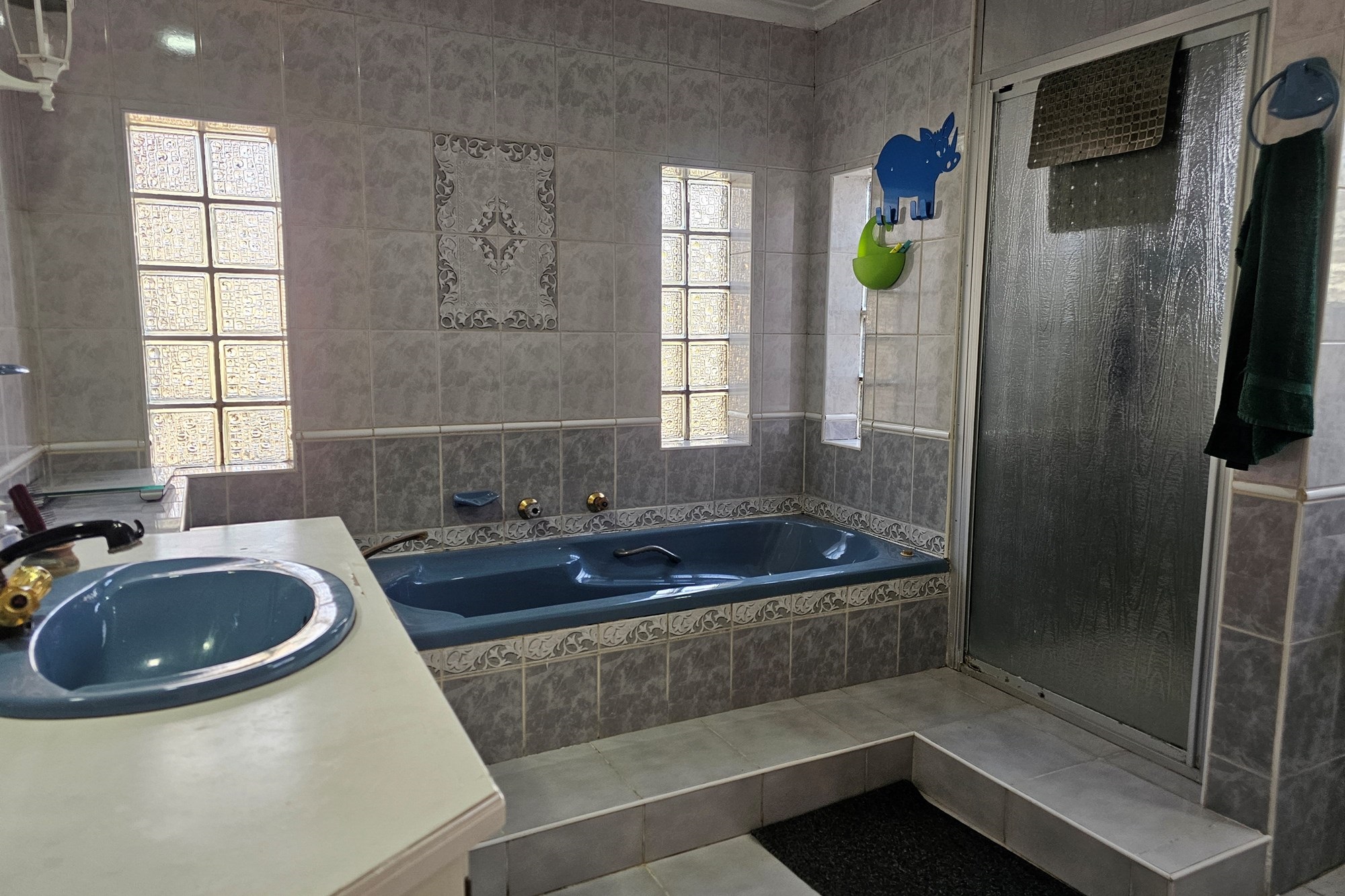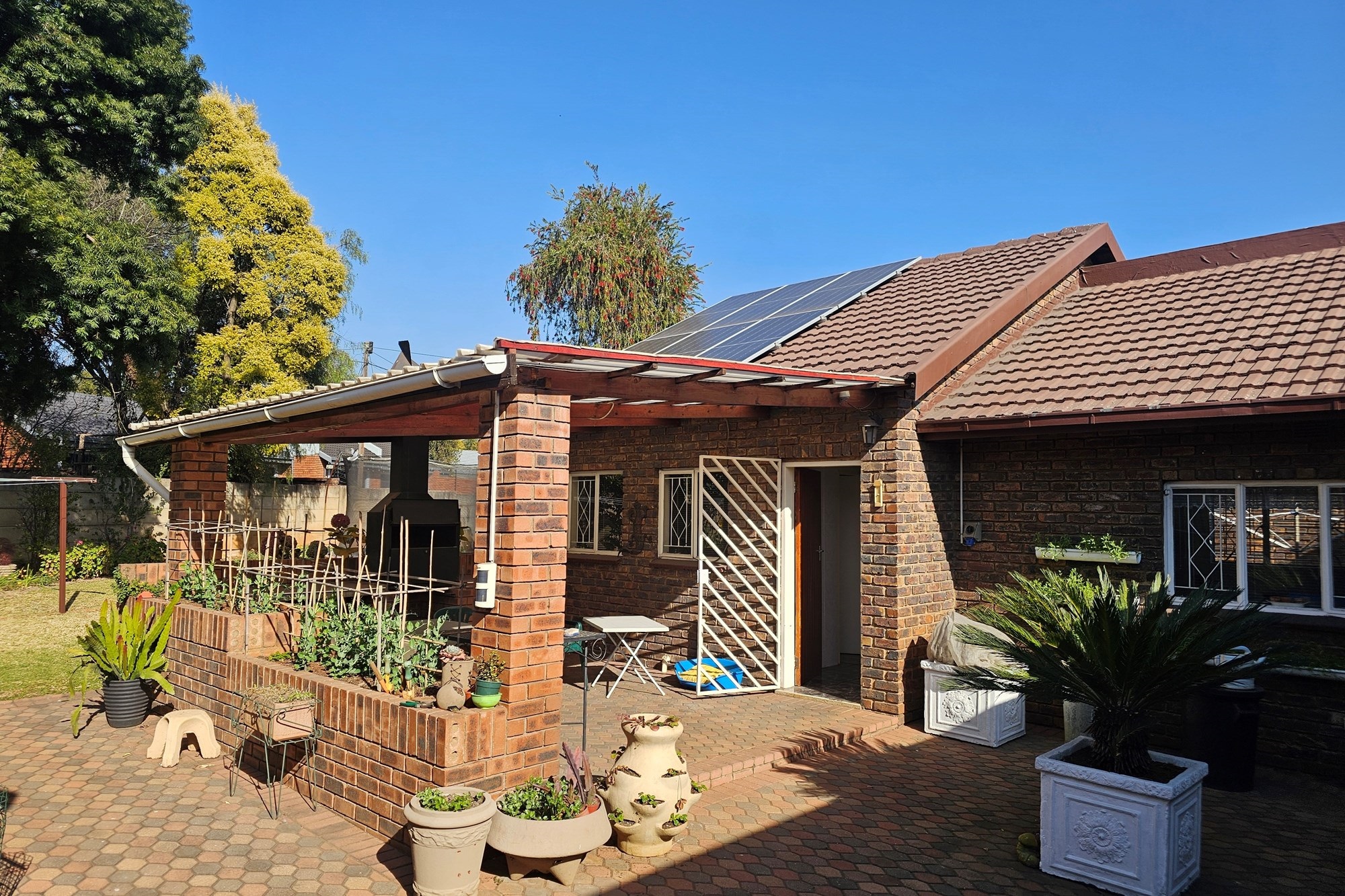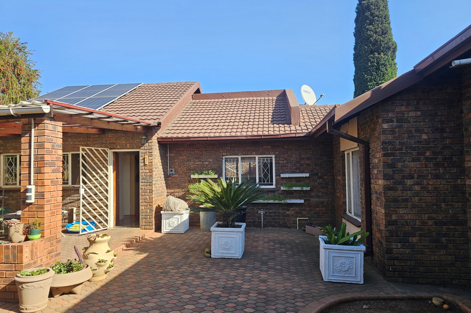 Outdoors, you’ll find a covered patio with a built-in braai ideal for gatherings, along with two garages (one extra length) and two steel double carports. Staff quarters with a private shower, toilet, and basin offer added flexibility. The home is energy-efficient and ready for load shedding with an inverter system, two batteries, and six solar panels, plus two geysers—one of which is solar-powered.