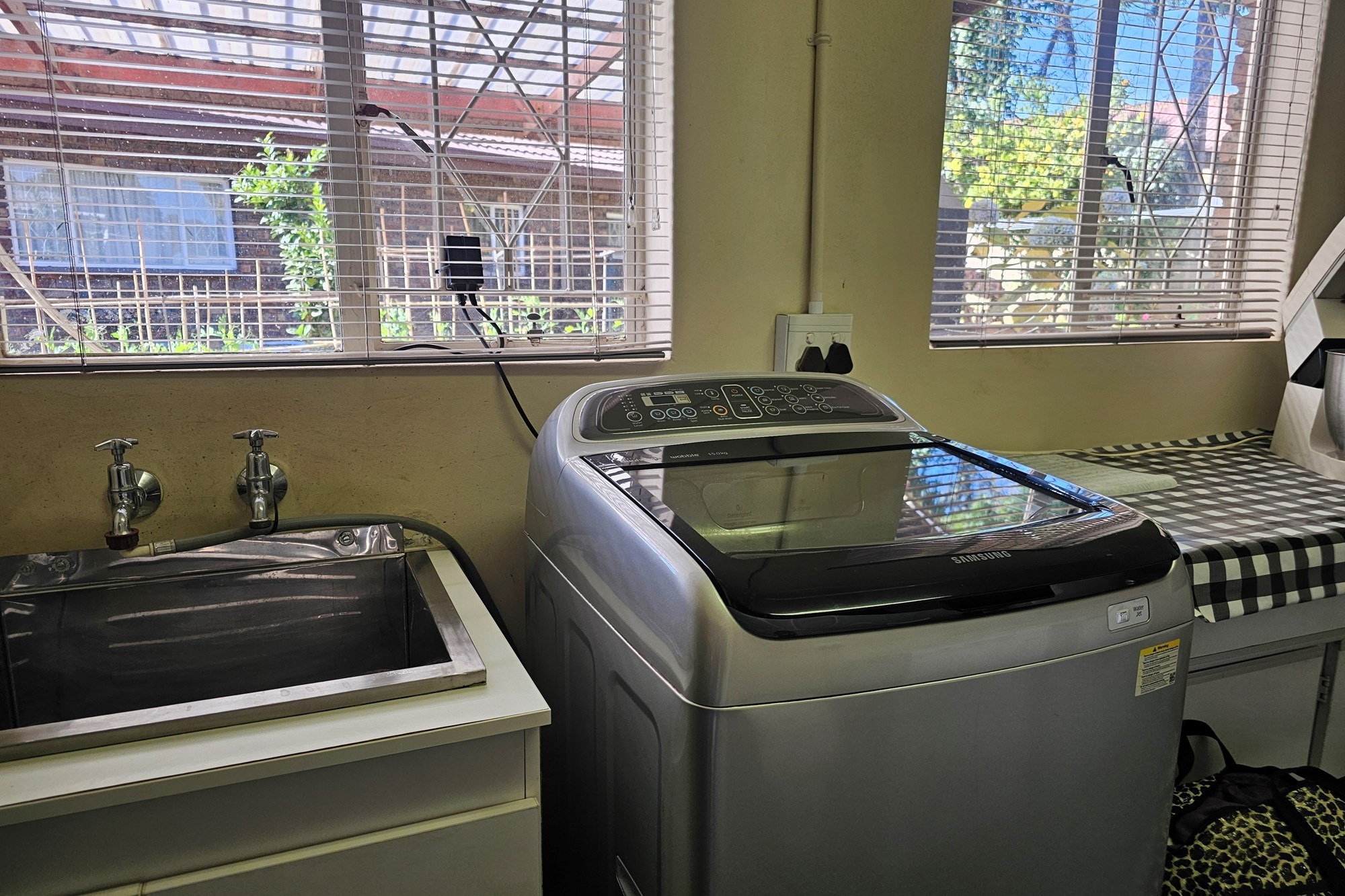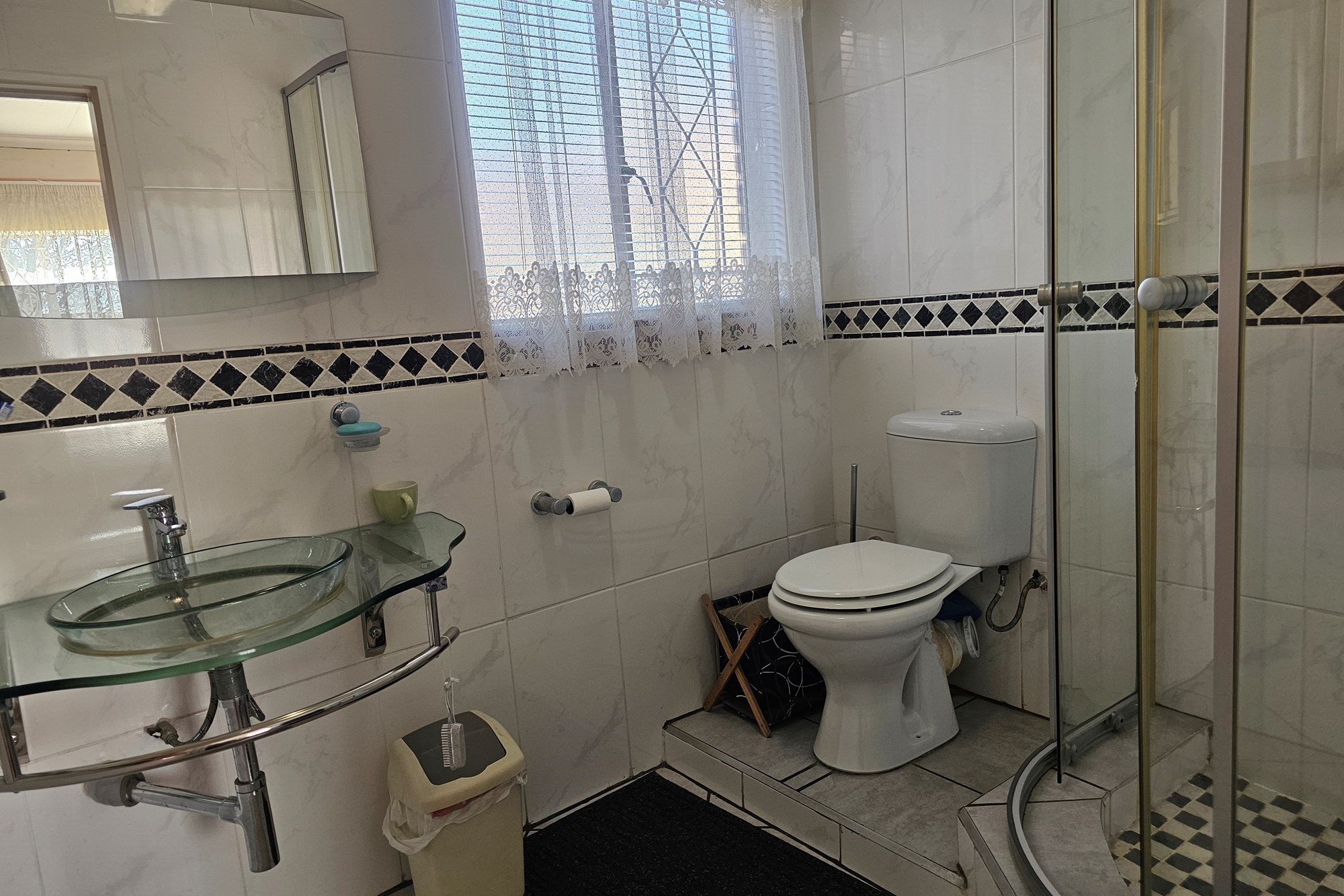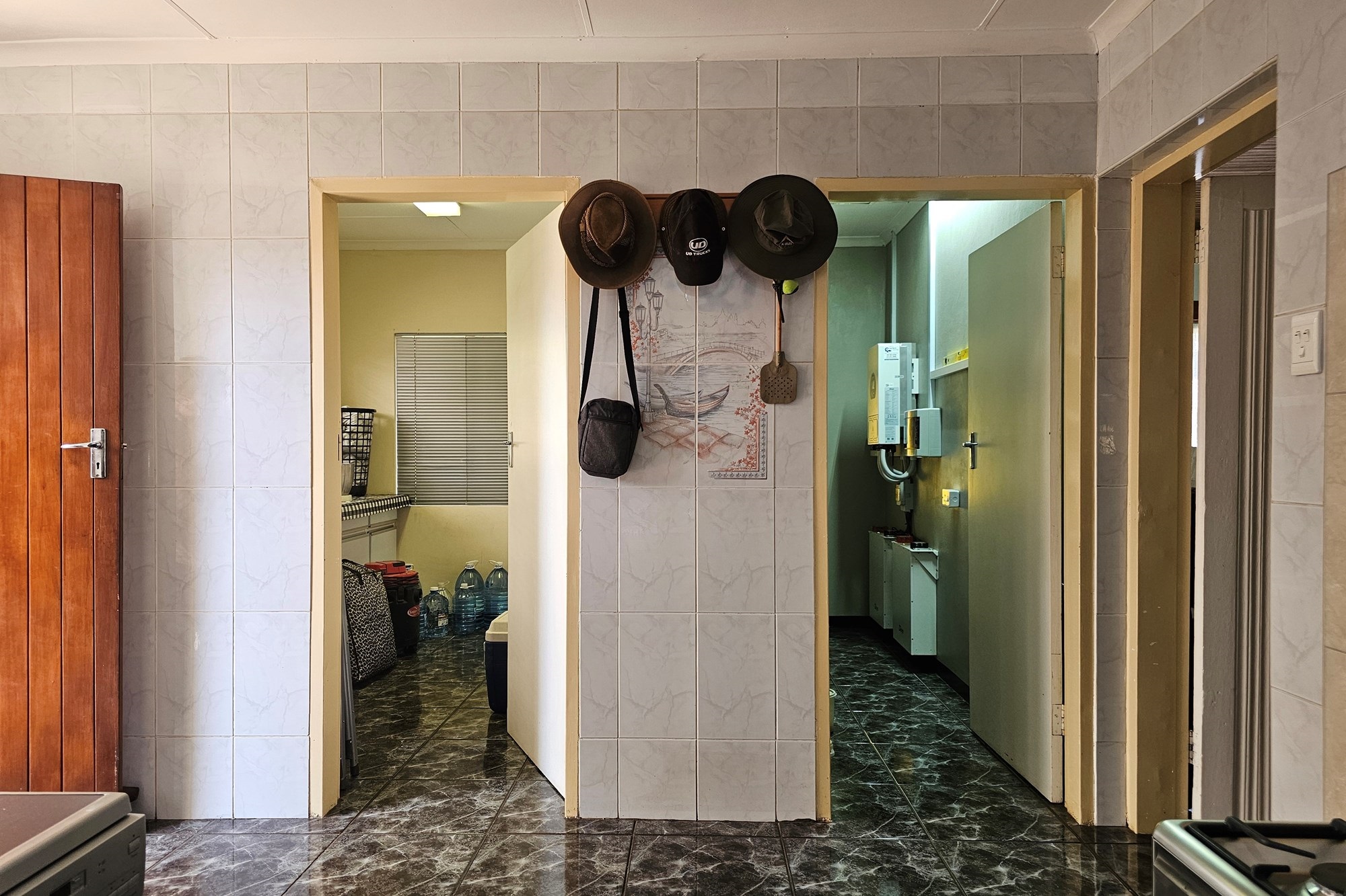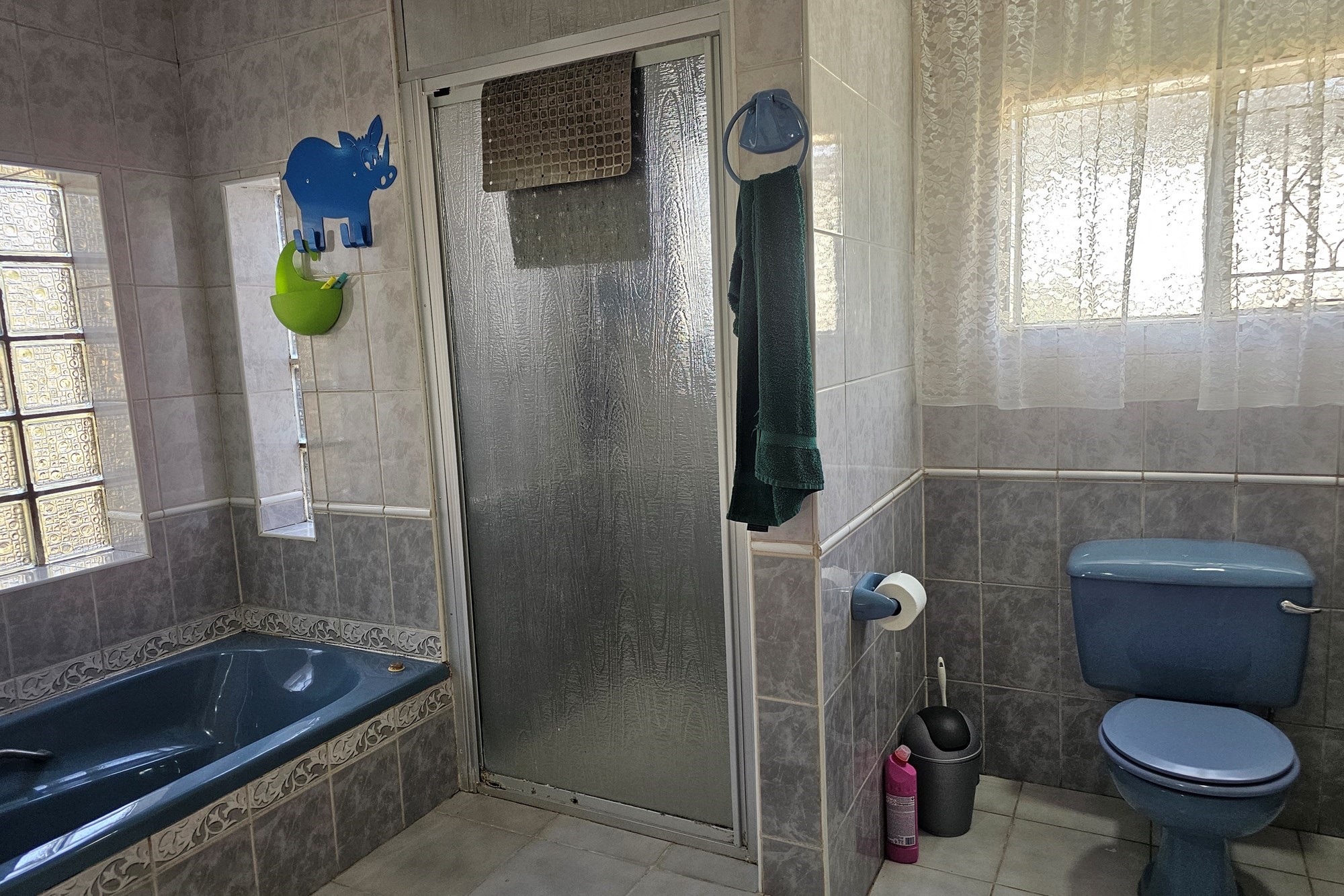 Outdoors, you’ll find a covered patio with a built-in braai ideal for gatherings, along with two garages (one extra length) and two steel double carports. Staff quarters with a private shower, toilet, and basin offer added flexibility. The home is energy-efficient and ready for load shedding with an inverter system, two batteries, and six solar panels, plus two geysers—one of which is solar-powered.