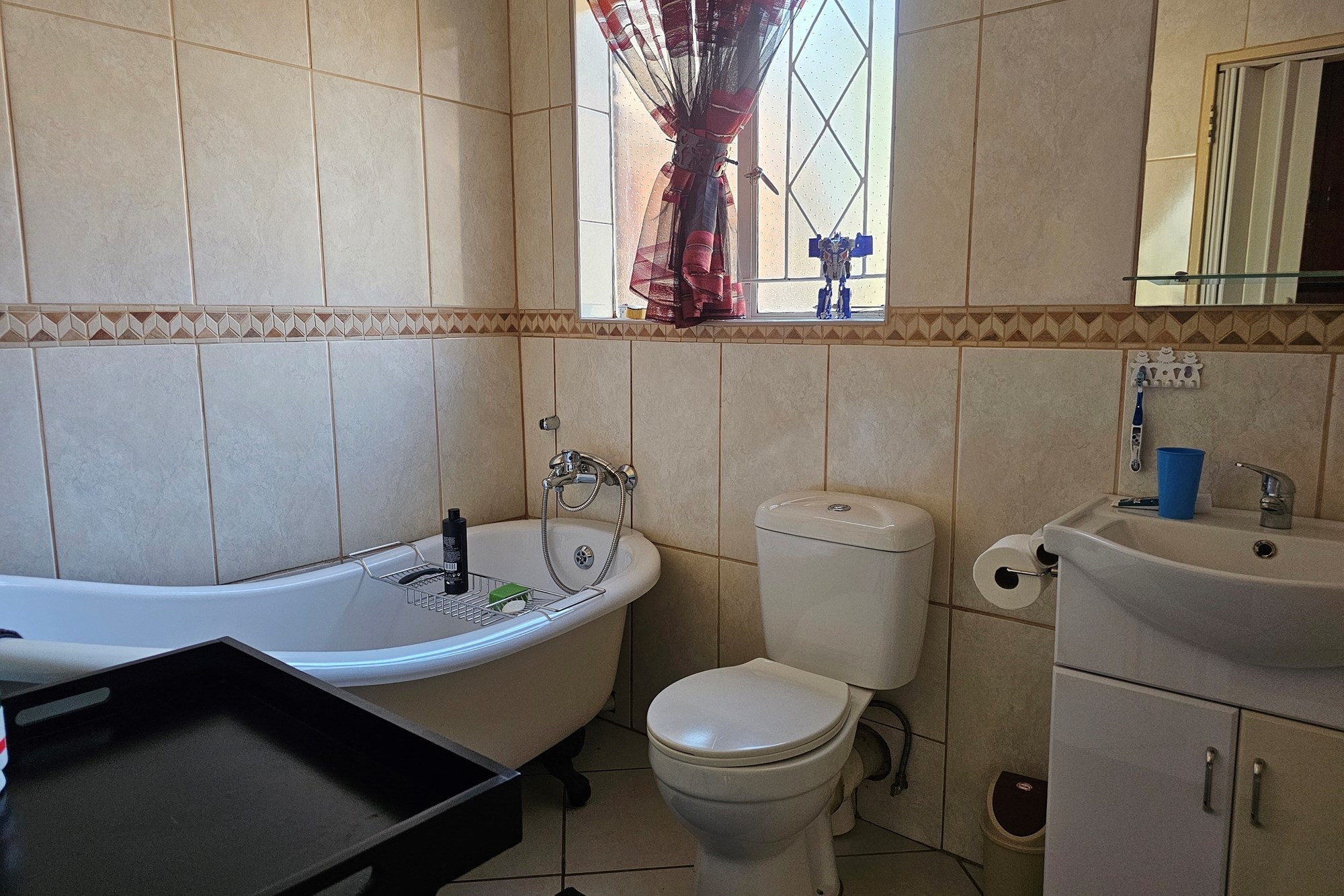 Situated in the sought-after suburb of Aerorand, this spacious and secure family home offers everything you need for comfortable living. Boasting four generously sized bedrooms, the home includes two full en-suite bathrooms, while a third bathroom features a bath, basin, and toilet for added convenience. The heart of the home is a well-appointed eat-in kitchen with a gas stove and electric hob, a breakfast nook, a walk-in pantry, and a separate laundry area. Multiple living spaces include a cozy lounge, a welcoming family room, and a formal dining room—perfect for both entertaining and relaxing.