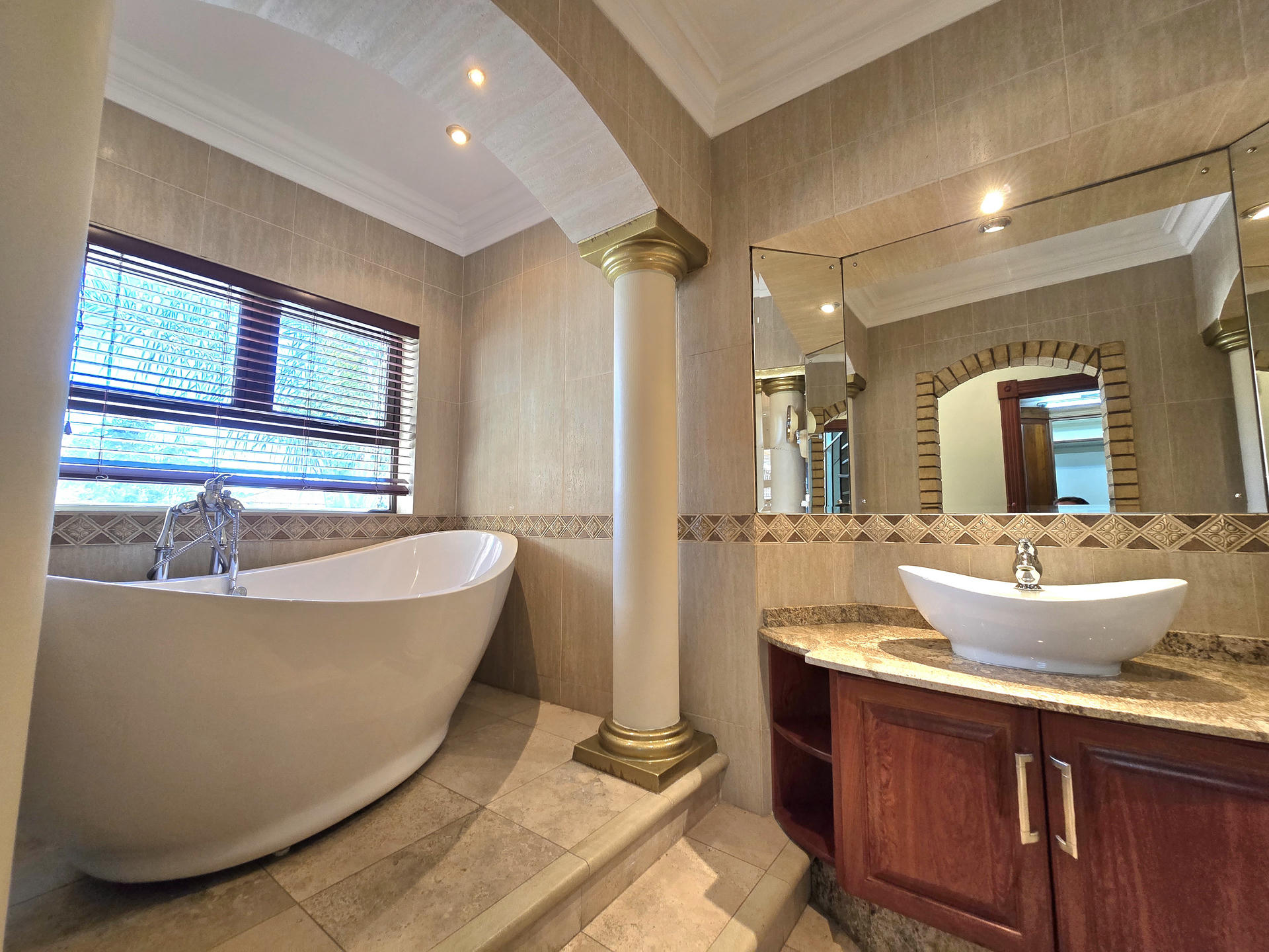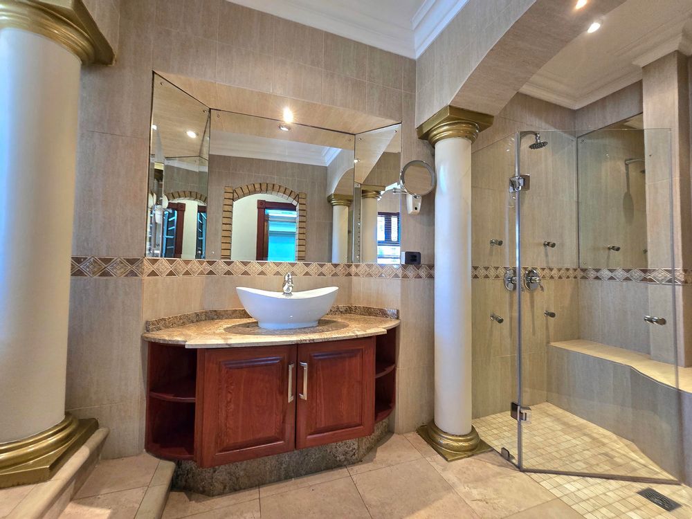 Nestled in one of Aerorand’s most desirable streets, this elegant residence perfectly combines sophistication with everyday practicality. Designed for spacious living, the home offers six bedrooms and six bathrooms, ensuring comfort and privacy for the entire family. The modern kitchen with a scullery flows beautifully into the dining room, lounge, and living room, creating a warm and connected atmosphere ideal for entertaining or family gatherings. This home caters to every need, with two studies, perfect for remote work or a home office, and a wine cellar that adds a touch of refined luxury. Comfort is enhanced by underfloor heating and air conditioning throughout, while entertainment comes naturally with a built-in bar (including bar chairs), two patios, a balcony, and a built-in braai, all overlooking the lush, well-kept garden. Practicality meets perfection with four garages, a workshop in the garage, laundry room, JoJo tank, three-phase electricity, and a generator for uninterrupted power. The property also includes full security for complete peace of mind. Elegant, functional, and beautifully maintained, this remarkable home stands as one of Aerorand’s true gems — offering space, comfort, and timeless charm in every corner.
