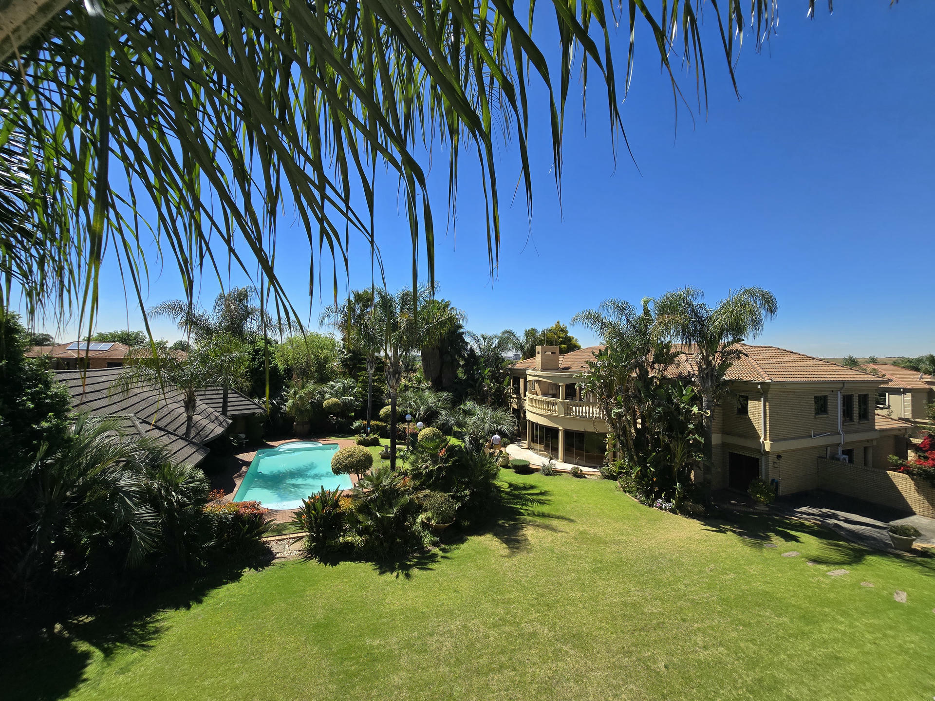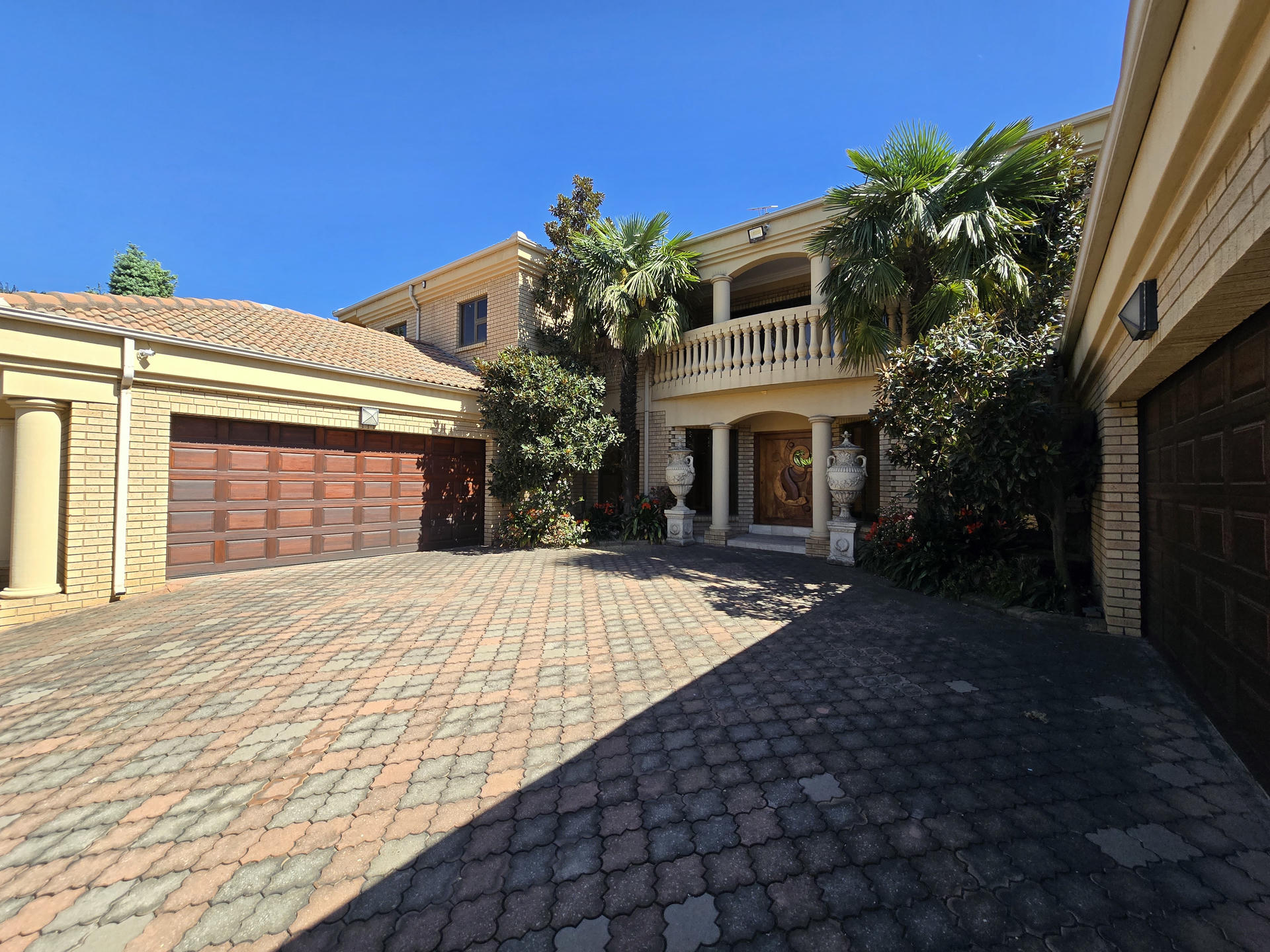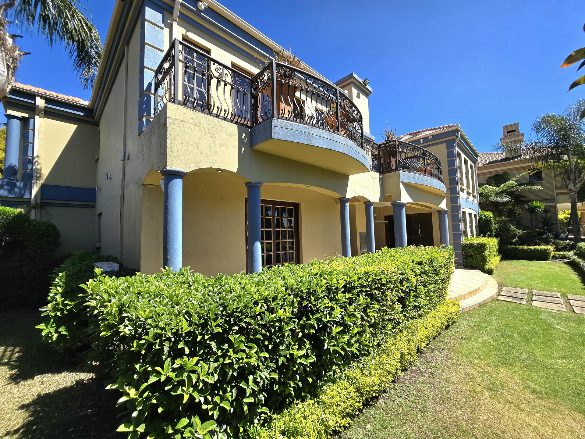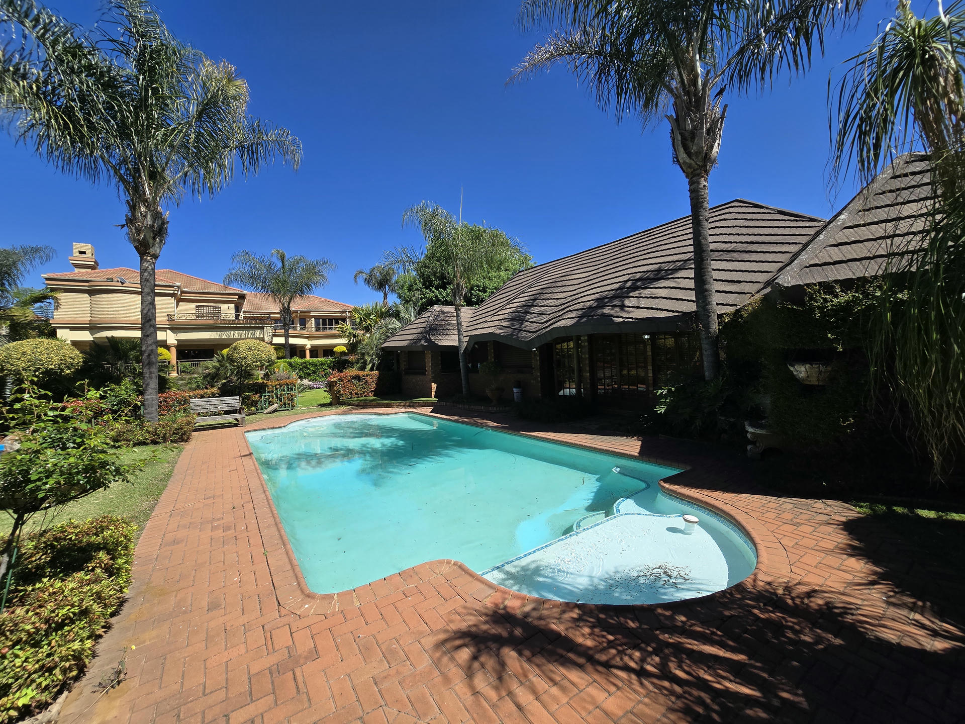 This one-of-a-kind estate combines elegance, space and versatility in a way that few properties can. Set among landscaped gardens, it brings together three distinctive residences, a self-contained flat and a dedicated entertainment pavilion. It is ideal for extended families, dual living or even boutique-style accommodation. From serene garden views to well-designed entertainment spaces, this estate carries the unmistakable feel of five-star living. Resort-Inspired Outdoor Lifestyle At the center of the property is a sparkling heated pool framed by rolling lawns and shady trees. An enclosed entertainment lapa with roller doors makes year-round hosting effortless. It includes a built-in braai, gas hob, serving counters and plenty of preparation space. Whether it is a relaxed family weekend or a festive celebration, this area is designed for both comfort and style. Residence One – Warmth and Refinement A sunken lounge with fireplace sets the tone, opening to a patio that overlooks the gardens. The kitchen, crafted with Rhodesian Teak cabinetry and marble counters, is as practical as it is beautiful. Added luxuries include a wine cellar and a cold room in the garage. Upstairs, a pyjama lounge and balcony enhance family living, while the main suite and two additional en-suite bedrooms provide private retreats. A separate flatlet with open-plan interiors and its own garage makes this section perfect for guests or extended family. Residence Two – The Entertainer’s Choice This home is designed with gatherings in mind. A bright formal lounge, dining area and wine cellar flow into an expansive entertainment zone with a built-in bar and braai, opening directly onto the poolside patio. The kitchen is a chef’s dream, fitted with a central island, built-in coffee machine, gas and induction cooking, and warming drawers. Upstairs, a private lounge and balcony add space to unwind, while large en-suite bedrooms give each family member five-star comfort. A generator ensures uninterrupted living here. Residence Three – Classic Charm Blending timeless character with modern convenience, this home features a welcoming lounge and dining area with easy flow to the garden. The kitchen is well-equipped with quality appliances and warm timber finishes. Upstairs, the main suite is a peaceful retreat with its own en-suite, while two additional bedrooms share a bathroom and balcony access. This residence is also supported by a generator for added peace of mind. Estate Highlights Heated swimming pool with solar assist Two boreholes with irrigation system JoJo tanks and water pumps Two generators (allocated to Houses 2 and 3) CCTV, alarms and electric fencing Underfloor heating and air-conditioning in key areas Wendy house for extra storage Why You Will Love It This estate is designed for families who want to live together while still enjoying their own space. It offers the feel of five-star luxury without losing the comfort of home. The flexible layout makes it perfect for private living, multi-generational use or boutique guest accommodation. Book your private viewing today and experience the five-star feel for yourself.