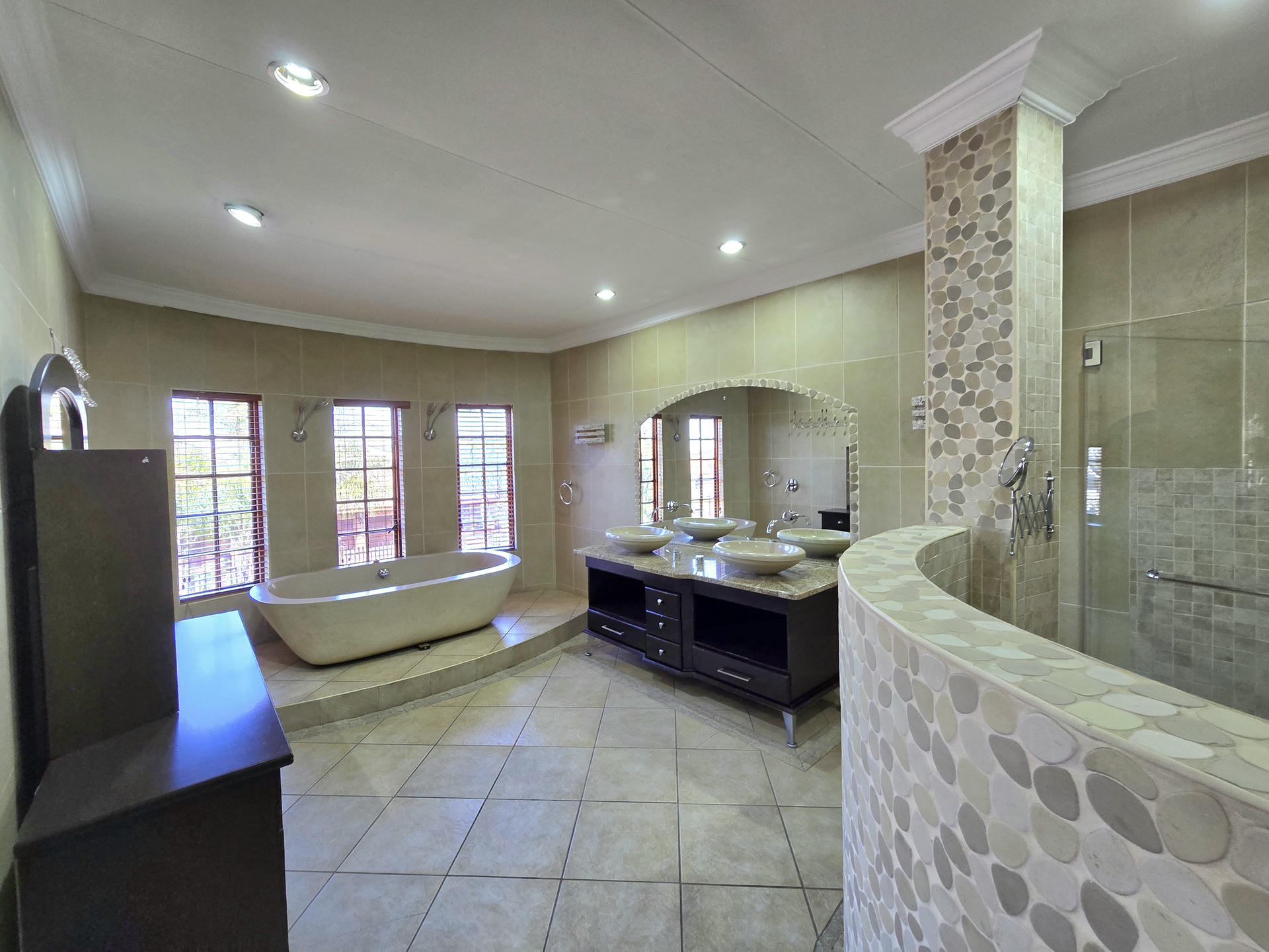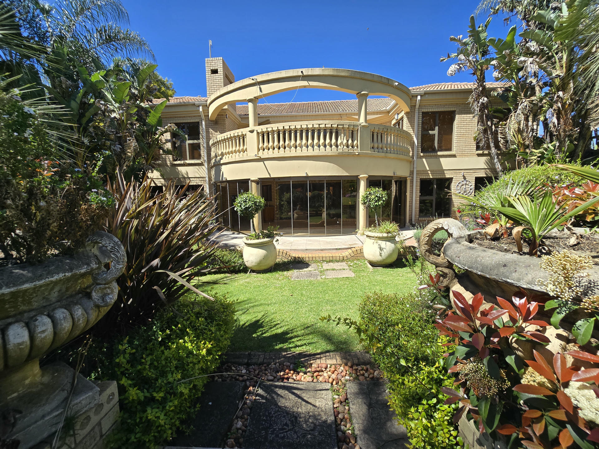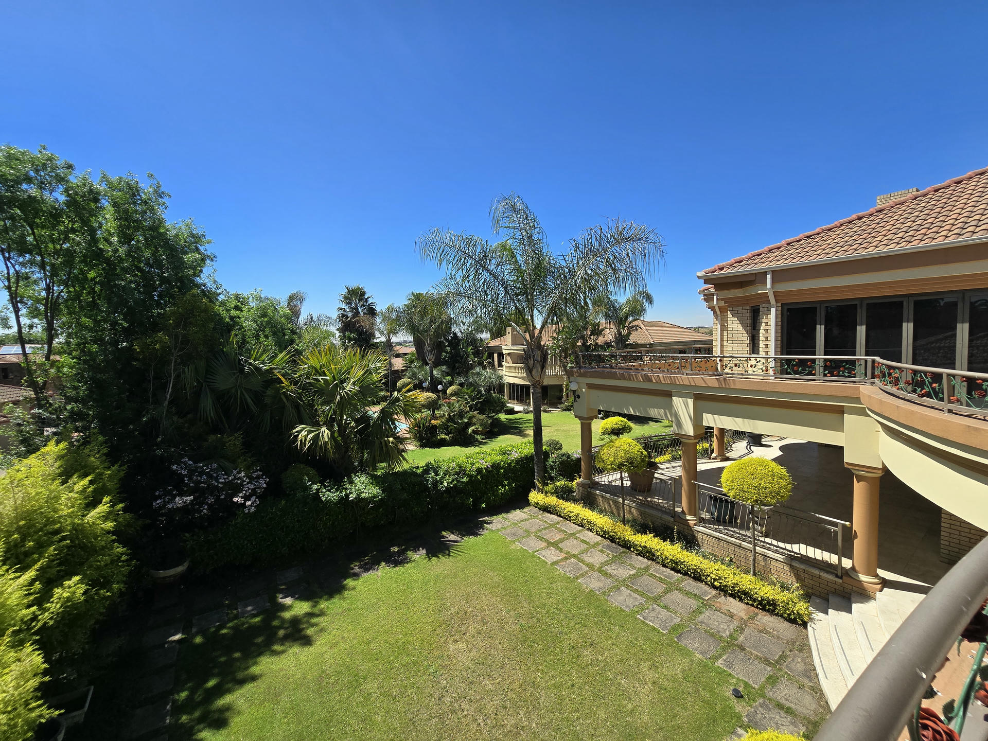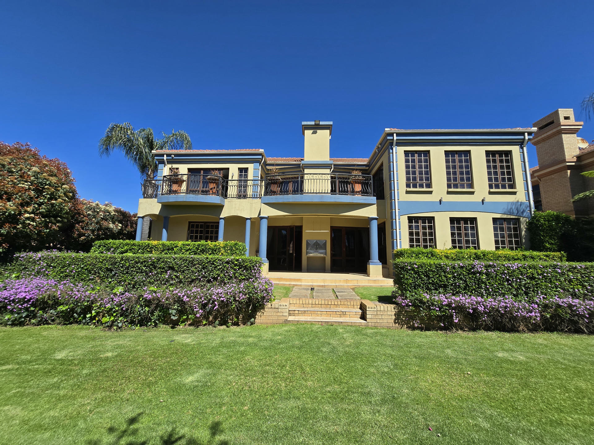 This one-of-a-kind estate combines elegance, space and versatility in a way that few properties can. Set among landscaped gardens, it brings together three distinctive residences, a self-contained flat and a dedicated entertainment pavilion. It is ideal for extended families, dual living or even boutique-style accommodation. From serene garden views to well-designed entertainment spaces, this estate carries the unmistakable feel of five-star living. Resort-Inspired Outdoor Lifestyle At the center of the property is a sparkling heated pool framed by rolling lawns and shady trees. An enclosed entertainment lapa with roller doors makes year-round hosting effortless. It includes a built-in braai, gas hob, serving counters and plenty of preparation space. Whether it is a relaxed family weekend or a festive celebration, this area is designed for both comfort and style. Residence One – Warmth and Refinement A sunken lounge with fireplace sets the tone, opening to a patio that overlooks the gardens. The kitchen, crafted with Rhodesian Teak cabinetry and marble counters, is as practical as it is beautiful. Added luxuries include a wine cellar and a cold room in the garage. Upstairs, a pyjama lounge and balcony enhance family living, while the main suite and two additional en-suite bedrooms provide private retreats. A separate flatlet with open-plan interiors and its own garage makes this section perfect for guests or extended family. Residence Two – The Entertainer’s Choice This home is designed with gatherings in mind. A bright formal lounge, dining area and wine cellar flow into an expansive entertainment zone with a built-in bar and braai, opening directly onto the poolside patio. The kitchen is a chef’s dream, fitted with a central island, built-in coffee machine, gas and induction cooking, and warming drawers. Upstairs, a private lounge and balcony add space to unwind, while large en-suite bedrooms give each family member five-star comfort. A generator ensures uninterrupted living here. Residence Three – Classic Charm Blending timeless character with modern convenience, this home features a welcoming lounge and dining area with easy flow to the garden. The kitchen is well-equipped with quality appliances and warm timber finishes. Upstairs, the main suite is a peaceful retreat with its own en-suite, while two additional bedrooms share a bathroom and balcony access. This residence is also supported by a generator for added peace of mind. Estate Highlights Heated swimming pool with solar assist Two boreholes with irrigation system JoJo tanks and water pumps Two generators (allocated to Houses 2 and 3) CCTV, alarms and electric fencing Underfloor heating and air-conditioning in key areas Wendy house for extra storage Why You Will Love It This estate is designed for families who want to live together while still enjoying their own space. It offers the feel of five-star luxury without losing the comfort of home. The flexible layout makes it perfect for private living, multi-generational use or boutique guest accommodation. Book your private viewing today and experience the five-star feel for yourself.