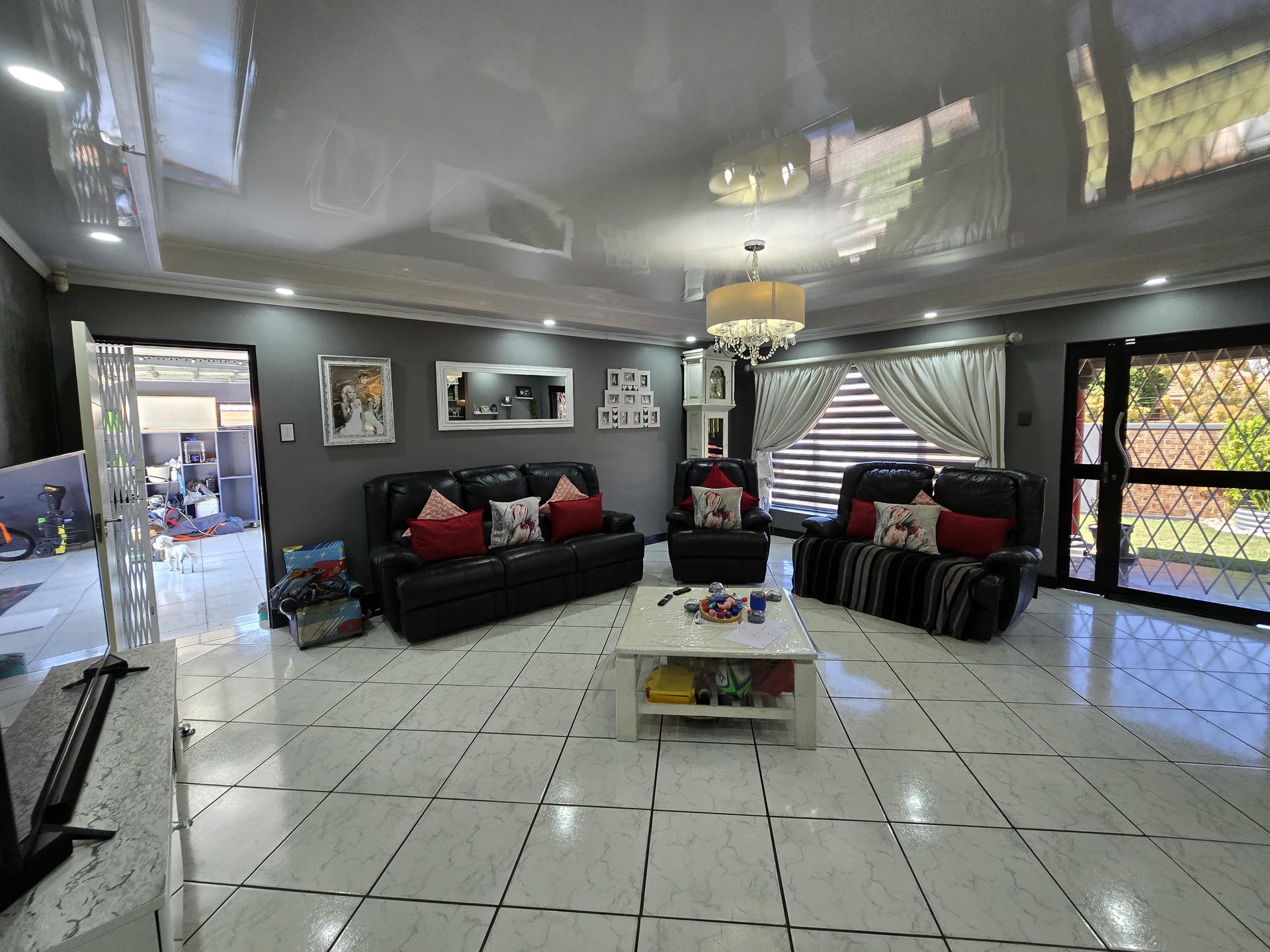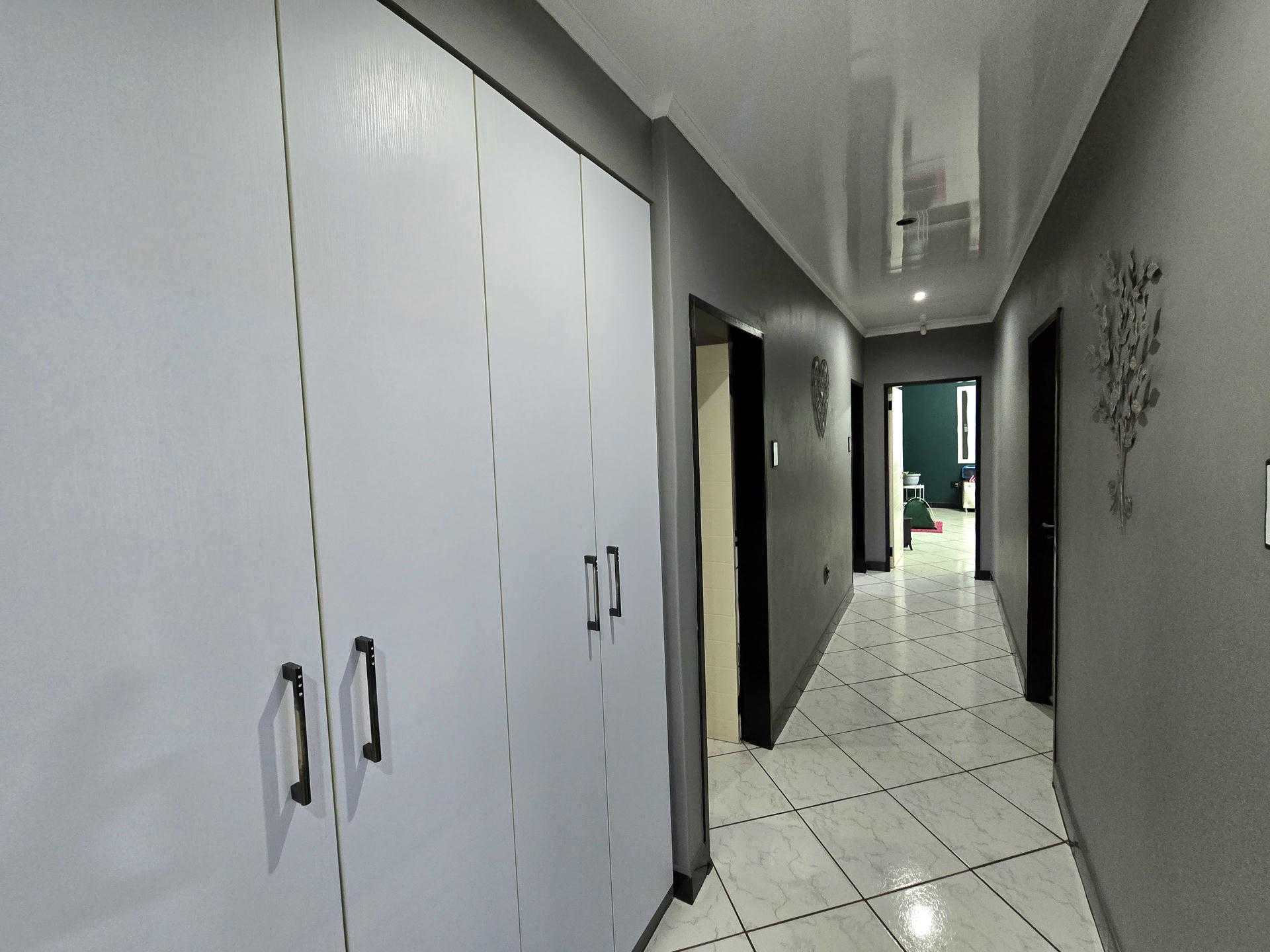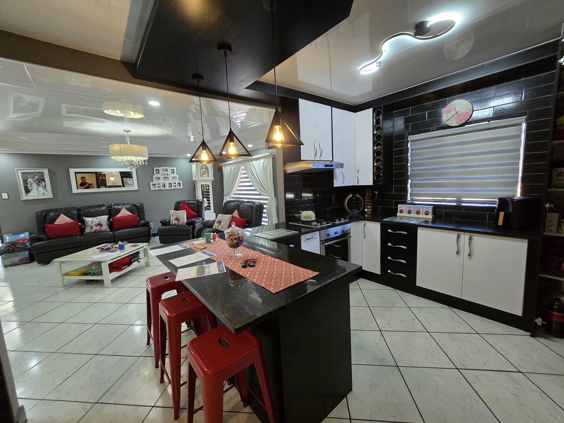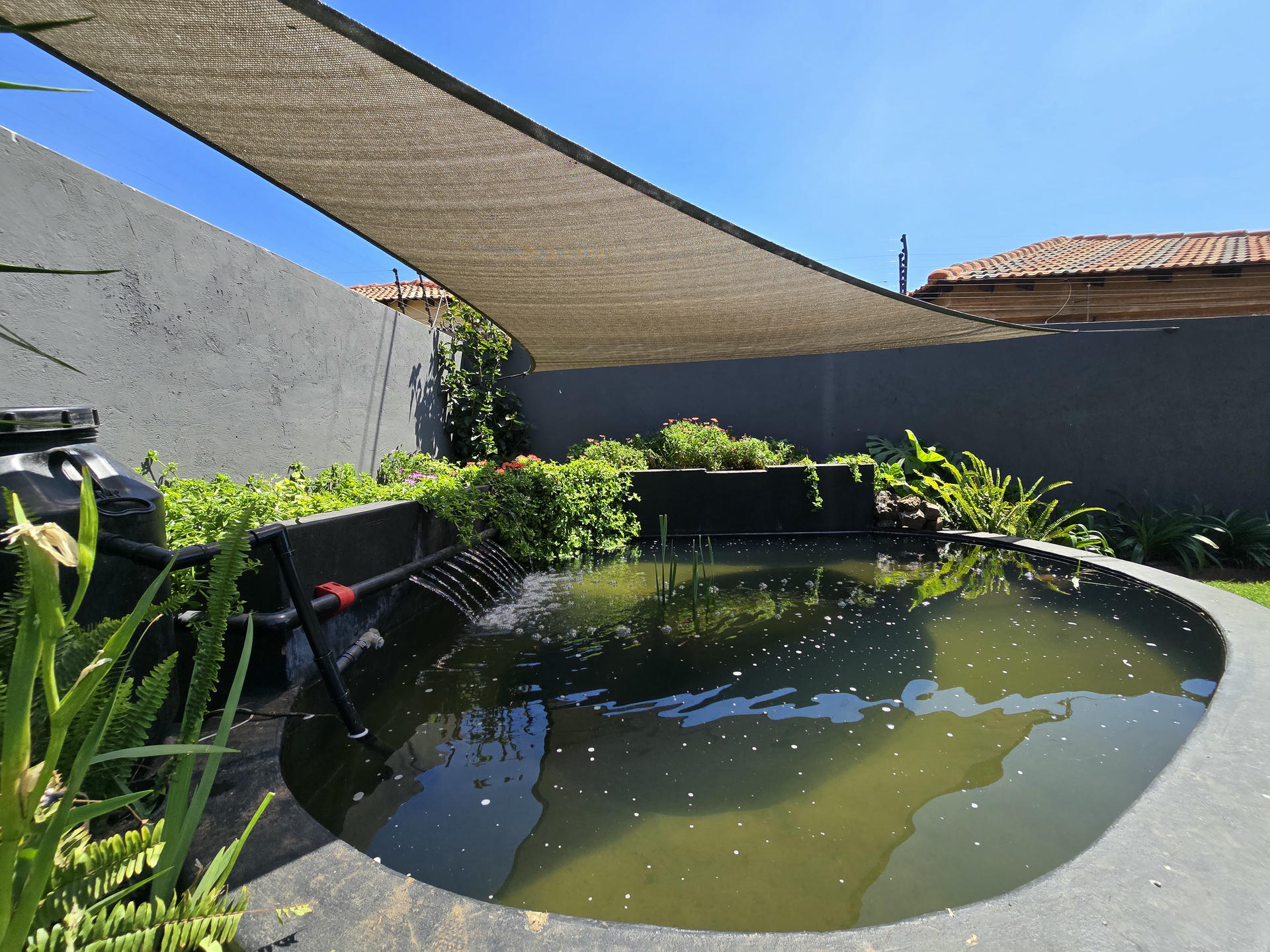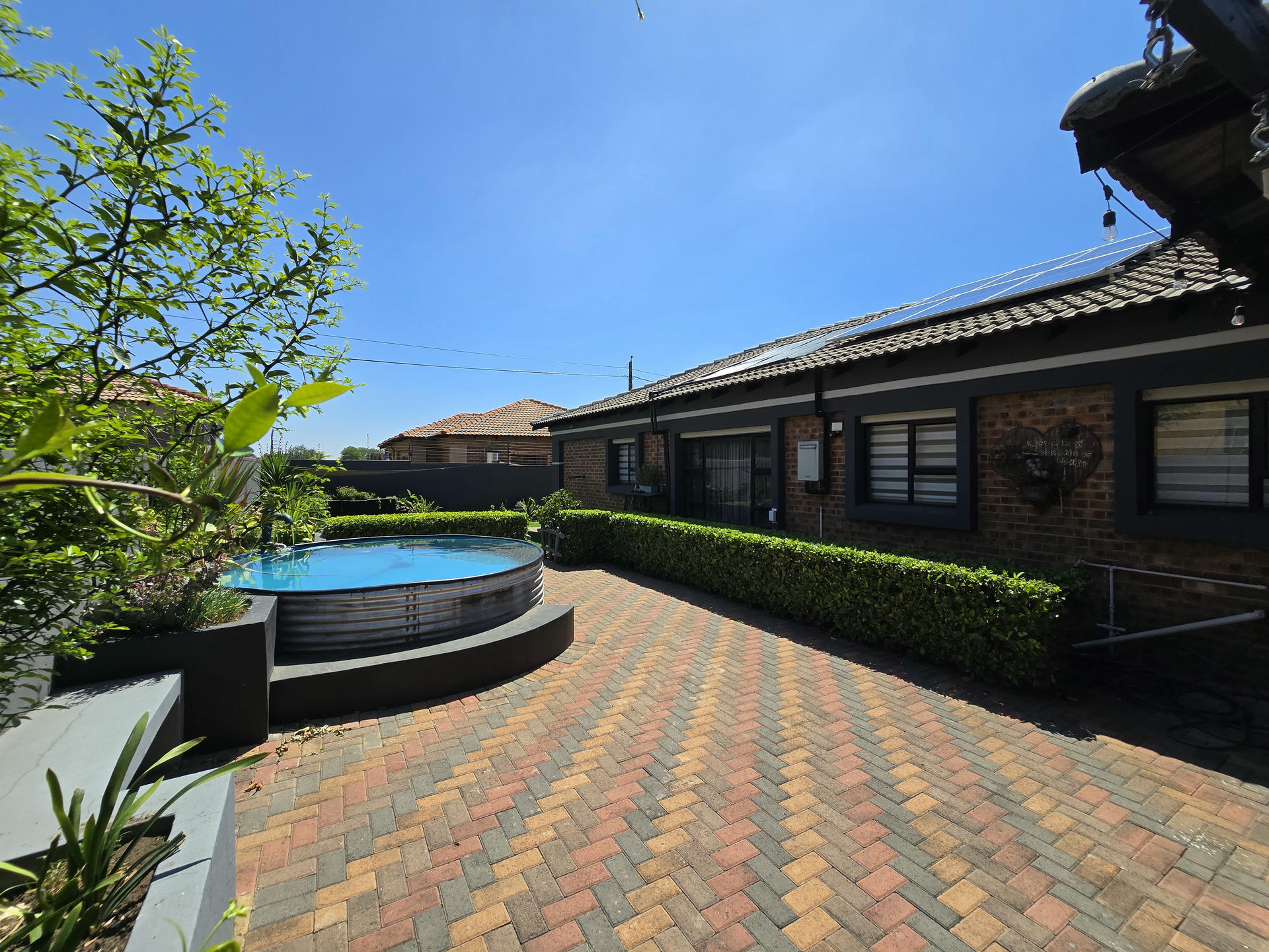 Step into a home that blends modern design with everyday convenience in one of Aerorand’s most desirable areas. From the moment you arrive, the neat façade and welcoming entrance set the tone for a property designed with both family living and entertaining in mind. Inside, you’ll find a spacious open-plan layout that connects the lounge, dining area, and contemporary kitchen into a warm and inviting hub. The kitchen is finished with granite tops, a gas hob, ample cupboards, and a scullery for added functionality. A private study provides the perfect space for working from home or managing family life, while three sunny bedrooms offer plenty of storage. The main suite is a true retreat, complete with a walk-in closet, sliding doors to the garden, and a luxurious en-suite bathroom. The outdoors is designed for relaxation and gatherings alike. Enjoy a covered patio with built-in braai, a cosy boma, and a sparkling pool alongside a koi pond and landscaped garden. Extra features include a full solar and inverter system, JoJo water tank, gas geyser, and top-class security with cameras, beams, electric fencing, and automated garages with drive-through access. This is a home where modern efficiency, safety, and comfort come together seamlessly.