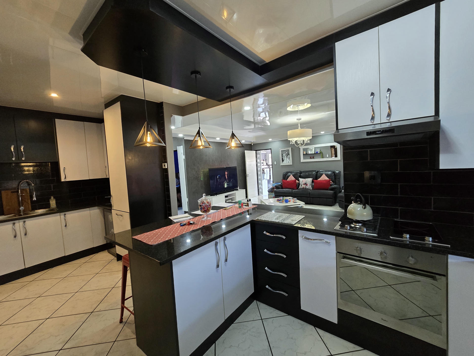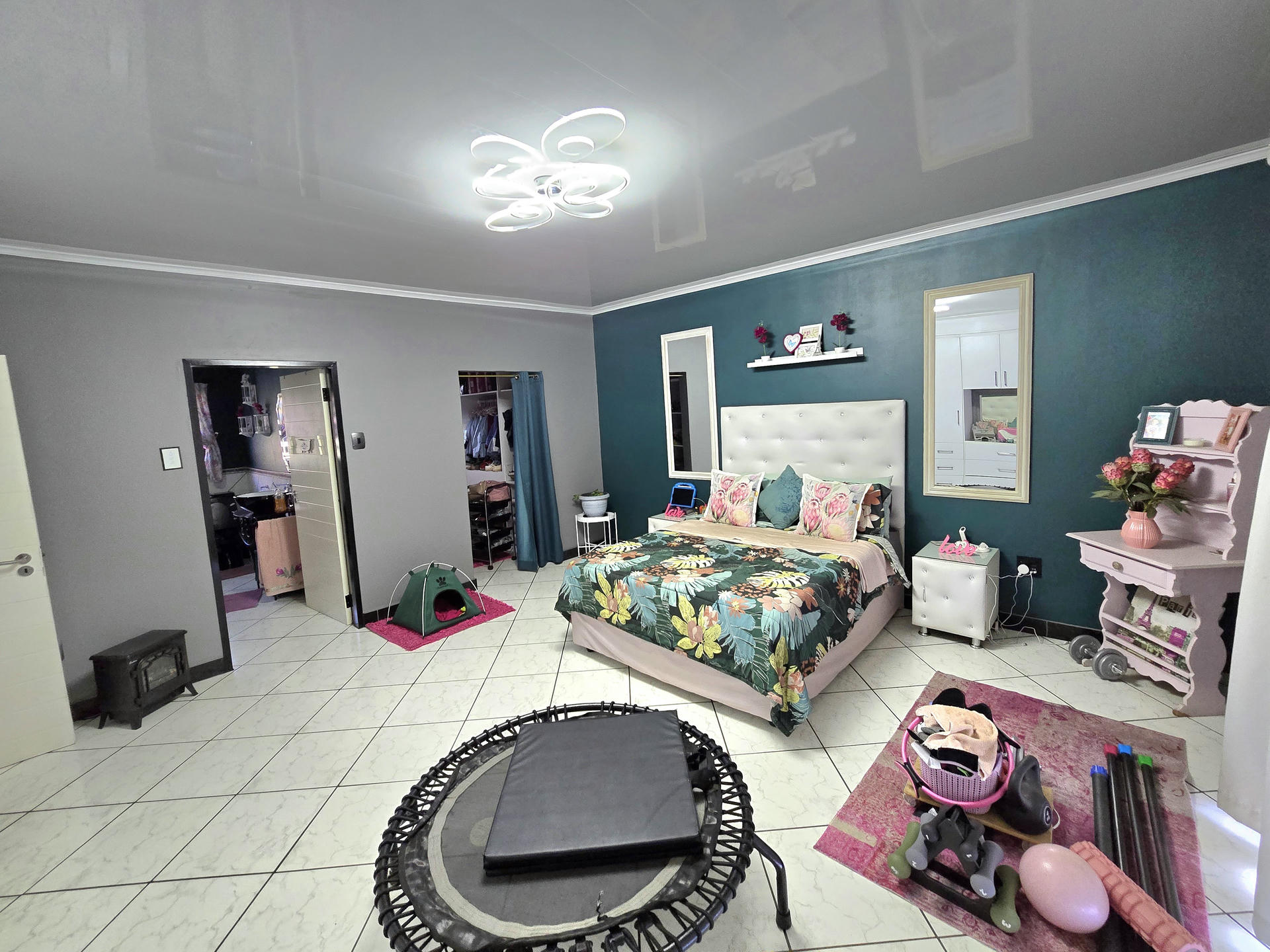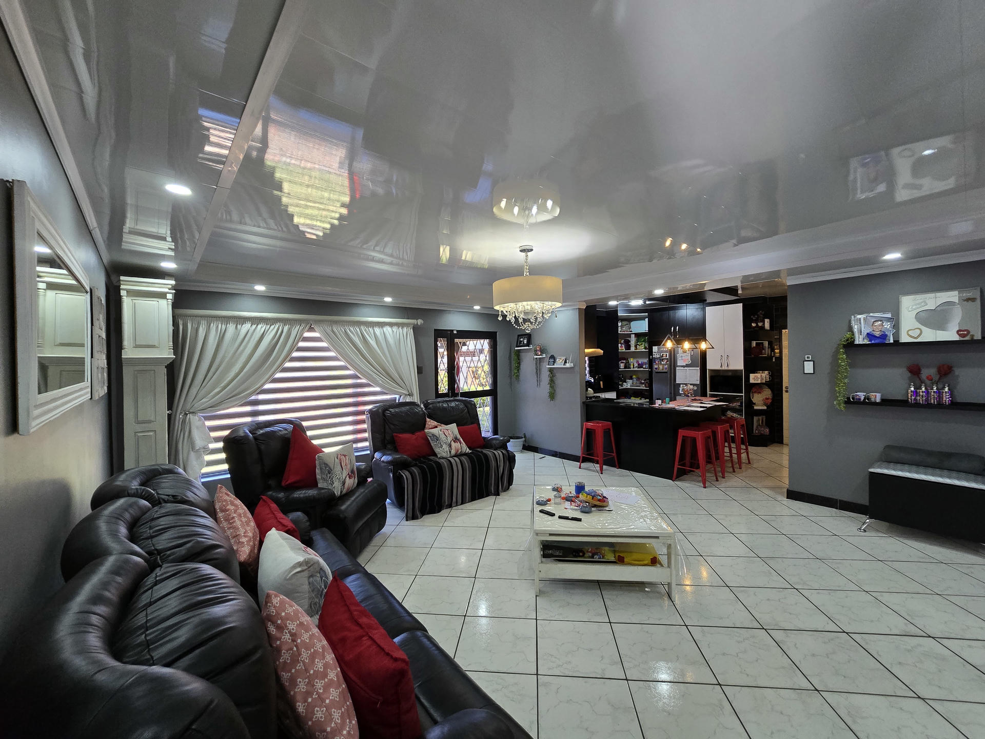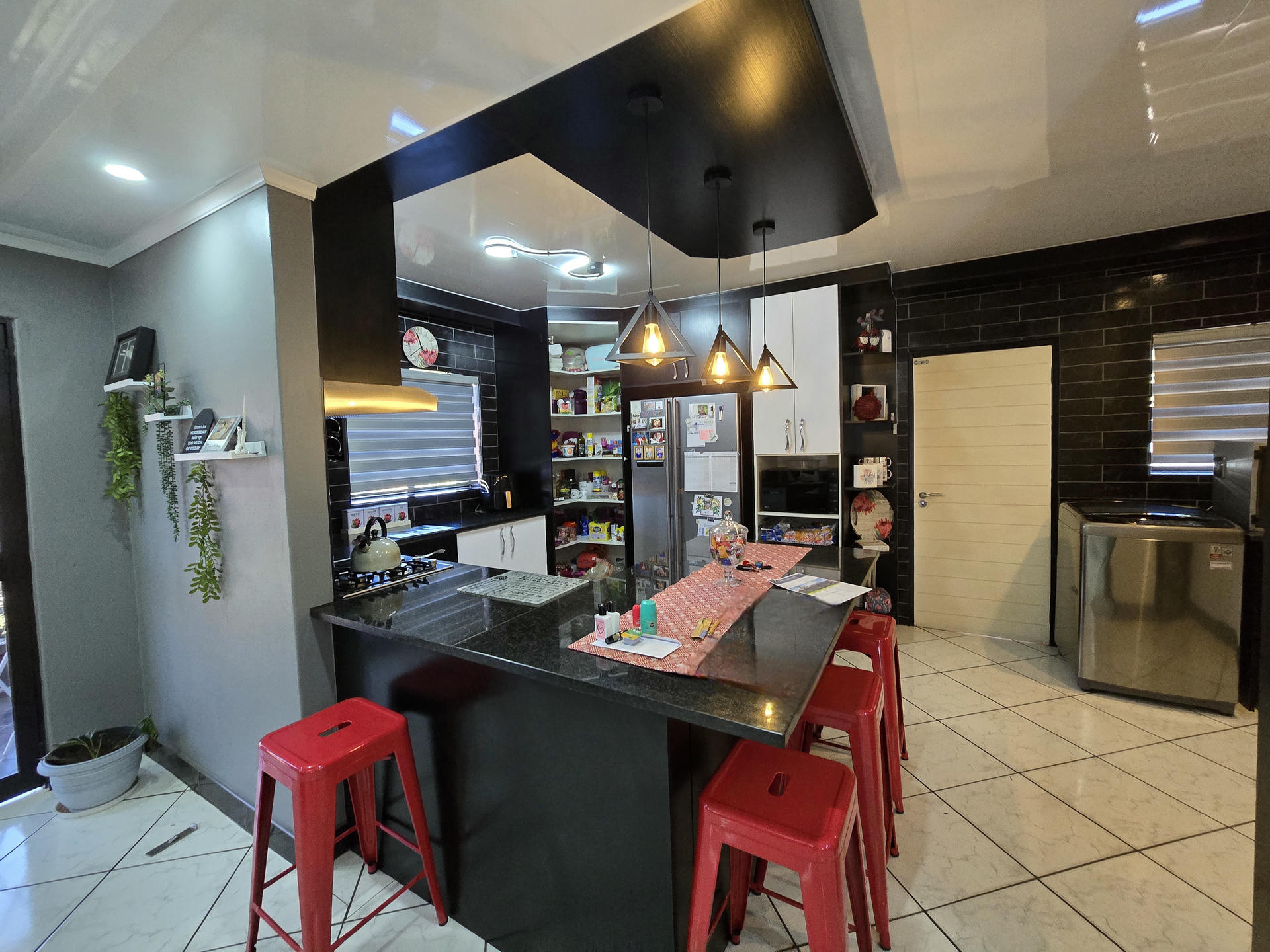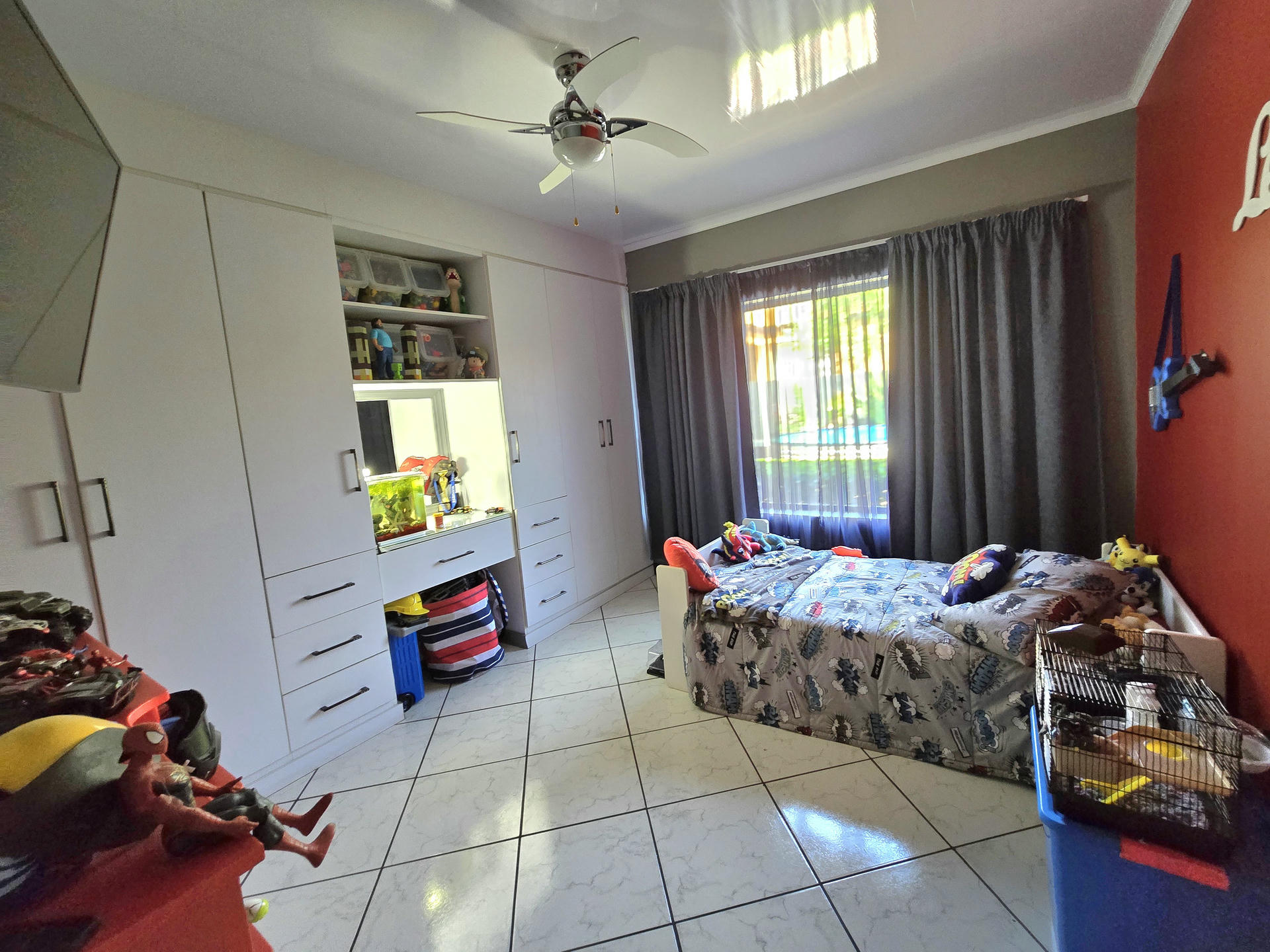 Step into a home that blends modern design with everyday convenience in one of Aerorand’s most desirable areas. From the moment you arrive, the neat façade and welcoming entrance set the tone for a property designed with both family living and entertaining in mind. Inside, you’ll find a spacious open-plan layout that connects the lounge, dining area, and contemporary kitchen into a warm and inviting hub. The kitchen is finished with granite tops, a gas hob, ample cupboards, and a scullery for added functionality. A private study provides the perfect space for working from home or managing family life, while three sunny bedrooms offer plenty of storage. The main suite is a true retreat, complete with a walk-in closet, sliding doors to the garden, and a luxurious en-suite bathroom. The outdoors is designed for relaxation and gatherings alike. Enjoy a covered patio with built-in braai, a cosy boma, and a sparkling pool alongside a koi pond and landscaped garden. Extra features include a full solar and inverter system, JoJo water tank, gas geyser, and top-class security with cameras, beams, electric fencing, and automated garages with drive-through access. This is a home where modern efficiency, safety, and comfort come together seamlessly.