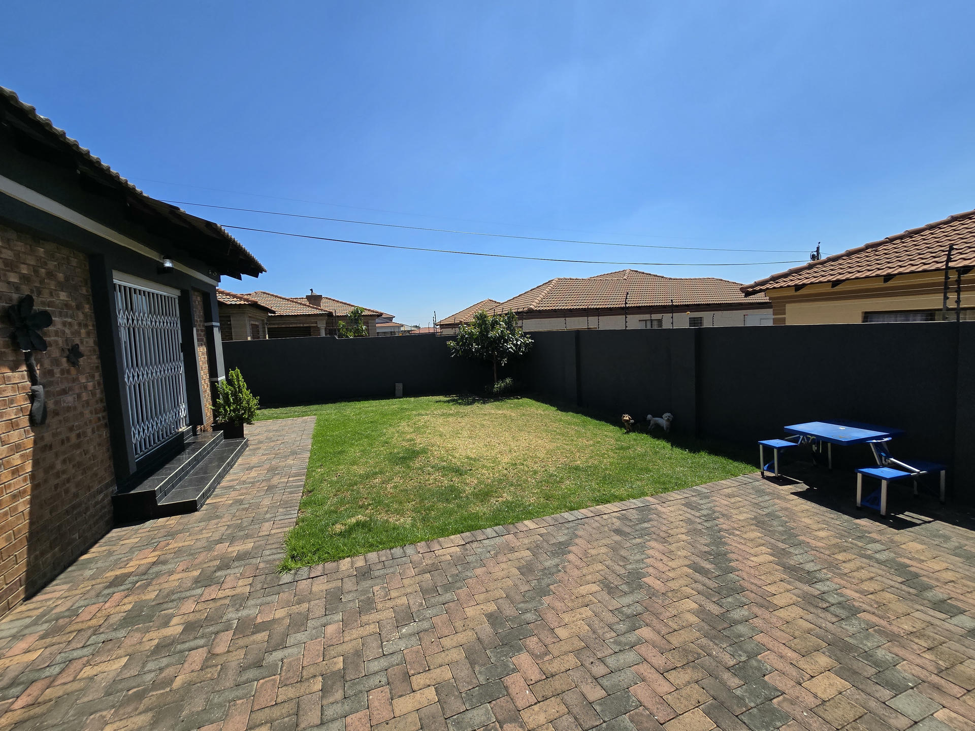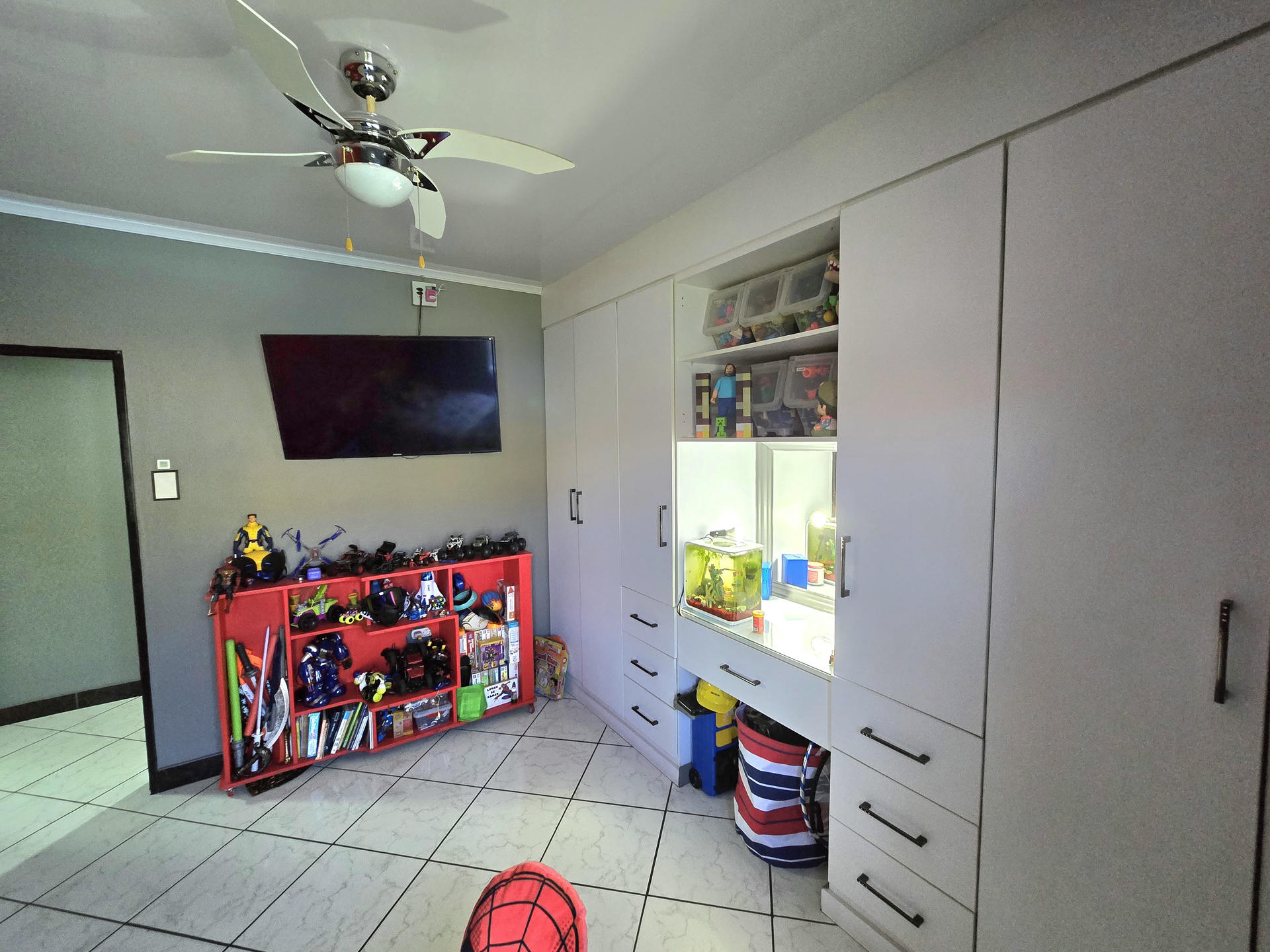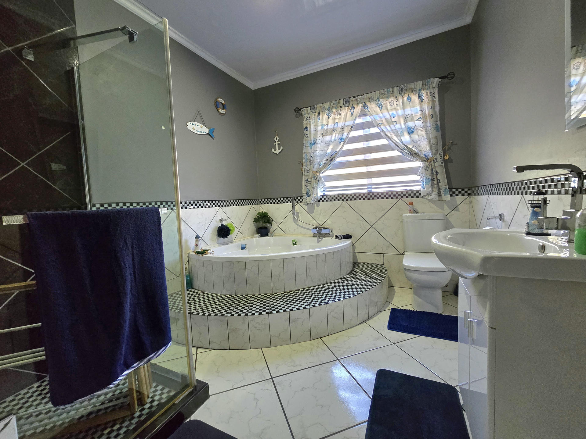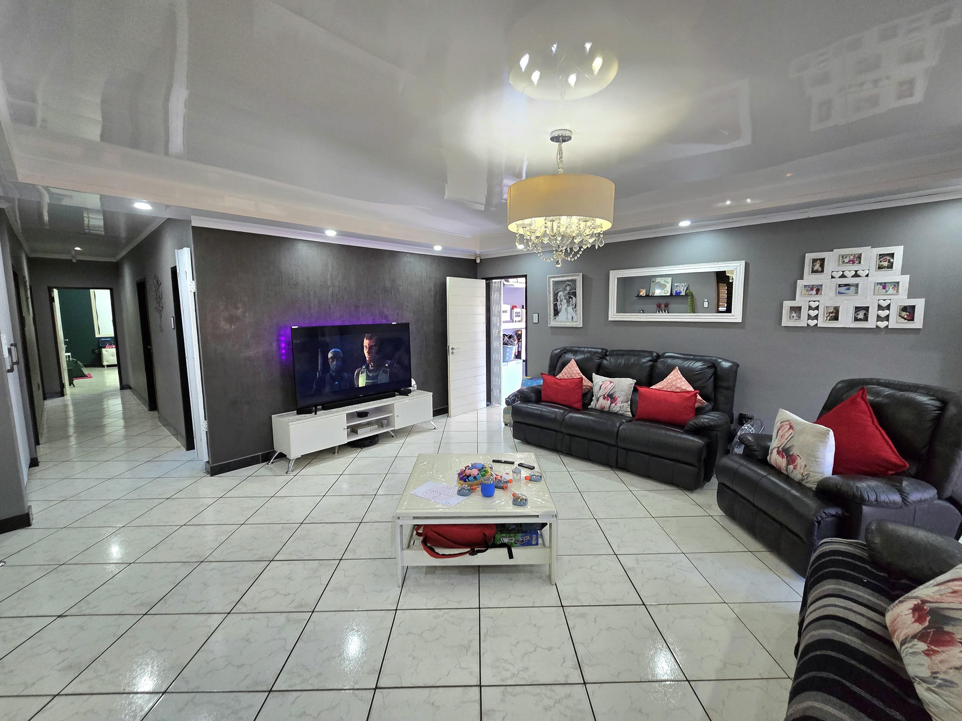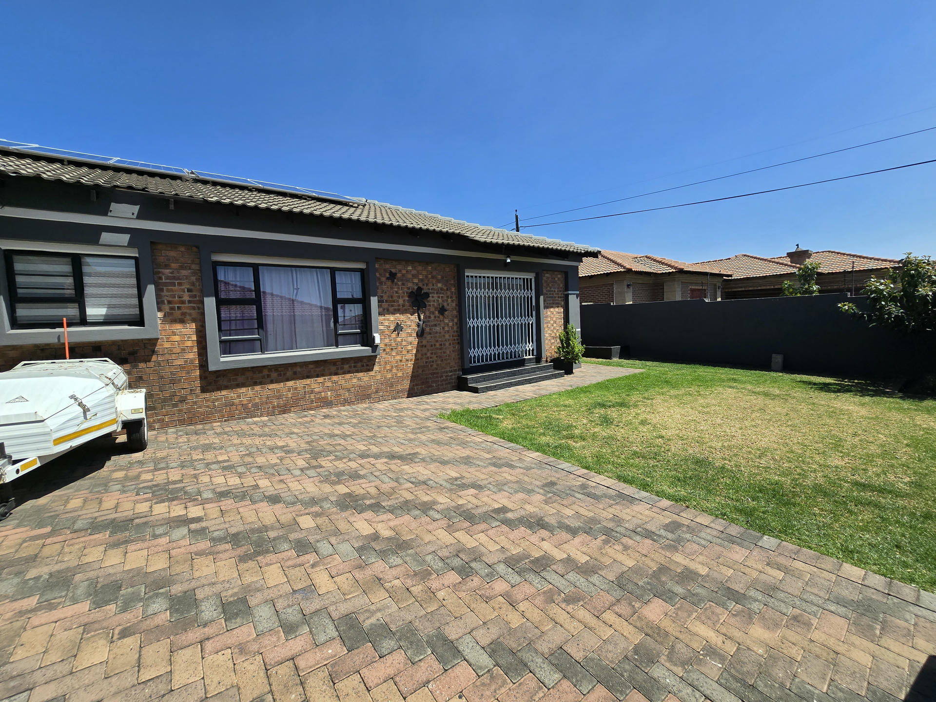Step into a home that blends modern design with everyday convenience in one of Aerorand’s most desirable areas. From the moment you arrive, the neat façade and welcoming entrance set the tone for a property designed with both family living and entertaining in mind. Inside, you’ll find a spacious open-plan layout that connects the lounge, dining area, and contemporary kitchen into a warm and inviting hub. The kitchen is finished with granite tops, a gas hob, ample cupboards, and a scullery for added functionality. A private study provides the perfect space for working from home or managing family life, while three sunny bedrooms offer plenty of storage. The main suite is a true retreat, complete with a walk-in closet, sliding doors to the garden, and a luxurious en-suite bathroom. The outdoors is designed for relaxation and gatherings alike. Enjoy a covered patio with built-in braai, a cosy boma, and a sparkling pool alongside a koi pond and landscaped garden. Extra features include a full solar and inverter system, JoJo water tank, gas geyser, and top-class security with cameras, beams, electric fencing, and automated garages with drive-through access. This is a home where modern efficiency, safety, and comfort come together seamlessly.