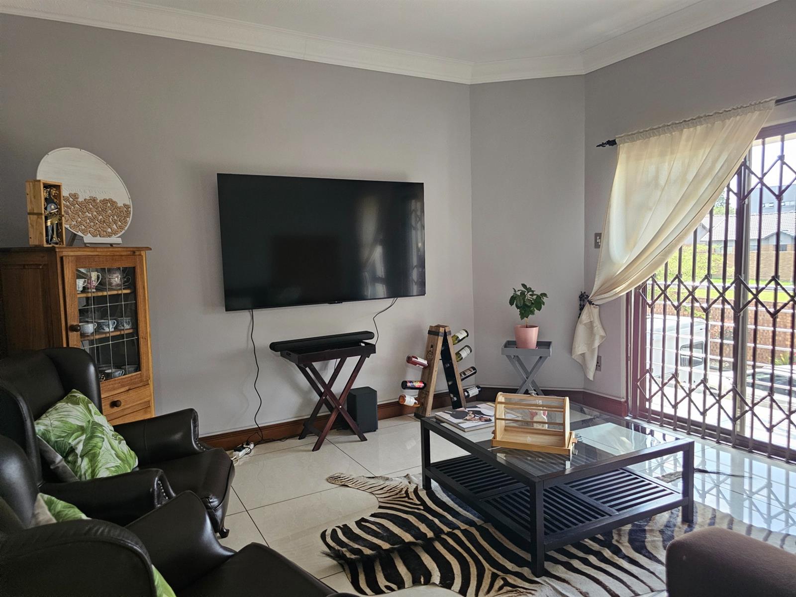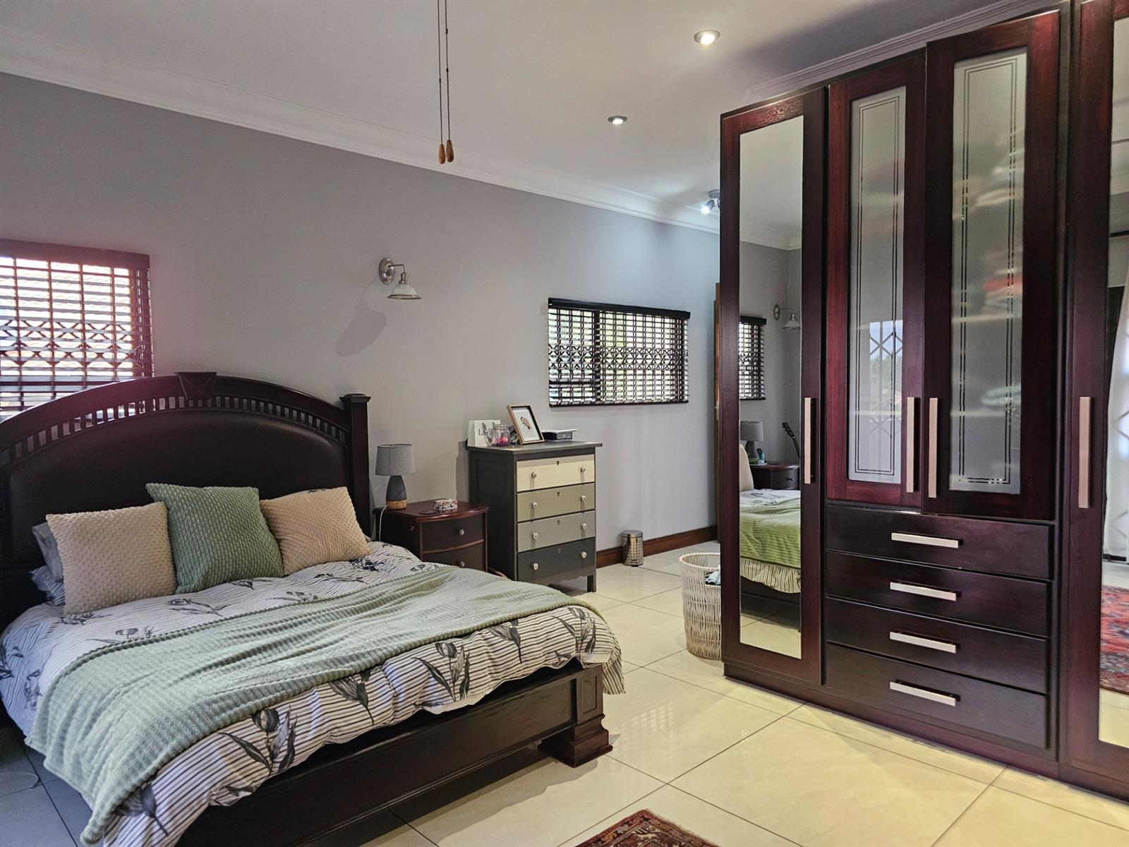 This spacious home is ideal for a family that appreciates both space and comfort. The open-plan living areas seamlessly flow into a breathtaking kitchen adorned with gas and glass electric hob, eye-level oven, and solid Rosewood cupboards. Porcelain tiles create a seamless transition from room to room. The kitchen extends into the TV room and a matching Rosewood bar, leading to an enclosed patio with a braai for year-round entertaining. The manicured garden beckons you to create unforgettable moments with family and friends.