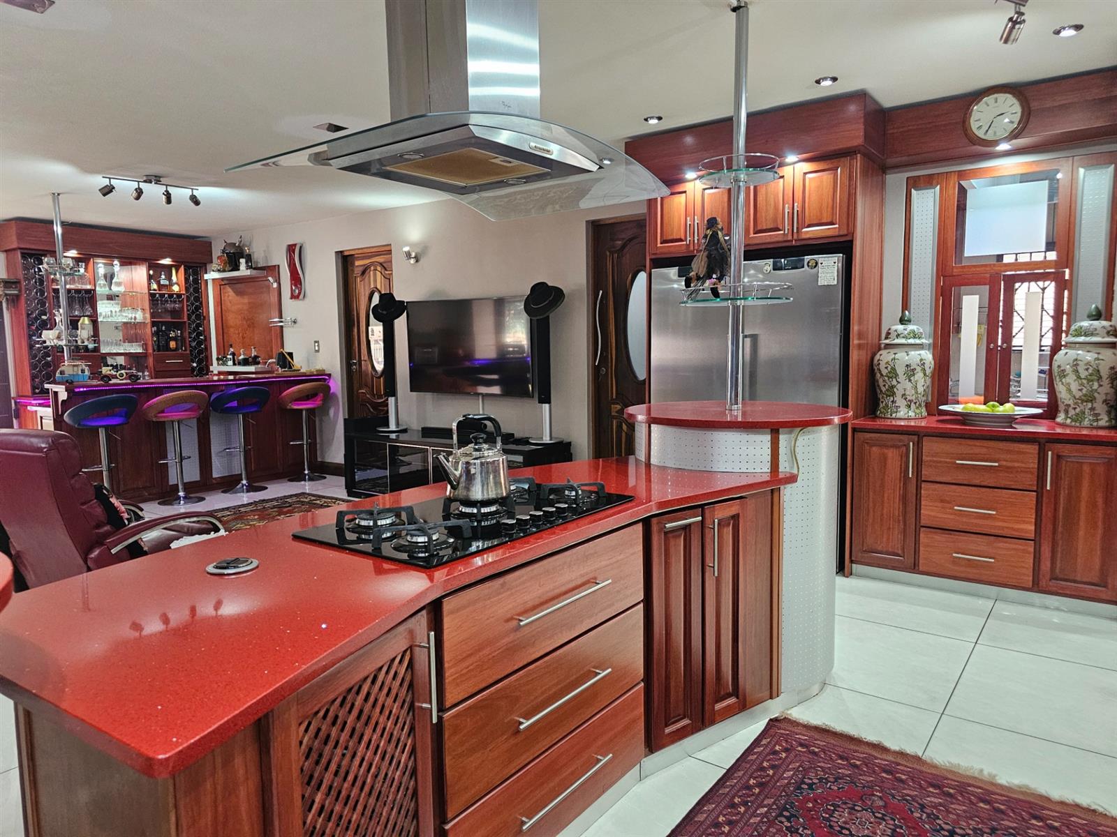 The property includes four tiled garages with exclusive wooden doors and built-in cupboards for added convenience. Safety is a priority, ensured by a CCTV camera system, electric fence, alarm, and security beams. The property is powered by an 8kva battery backup system, providing 7 to 8 hours of electricity. Additional storage rooms add to the practicality of this extraordinary residence. If you love life, your journey begins here, in this epitome of luxurious living. If you want a house built to perfection, this is the one, prestigious upmarket residence. A stunner to put your heart on.