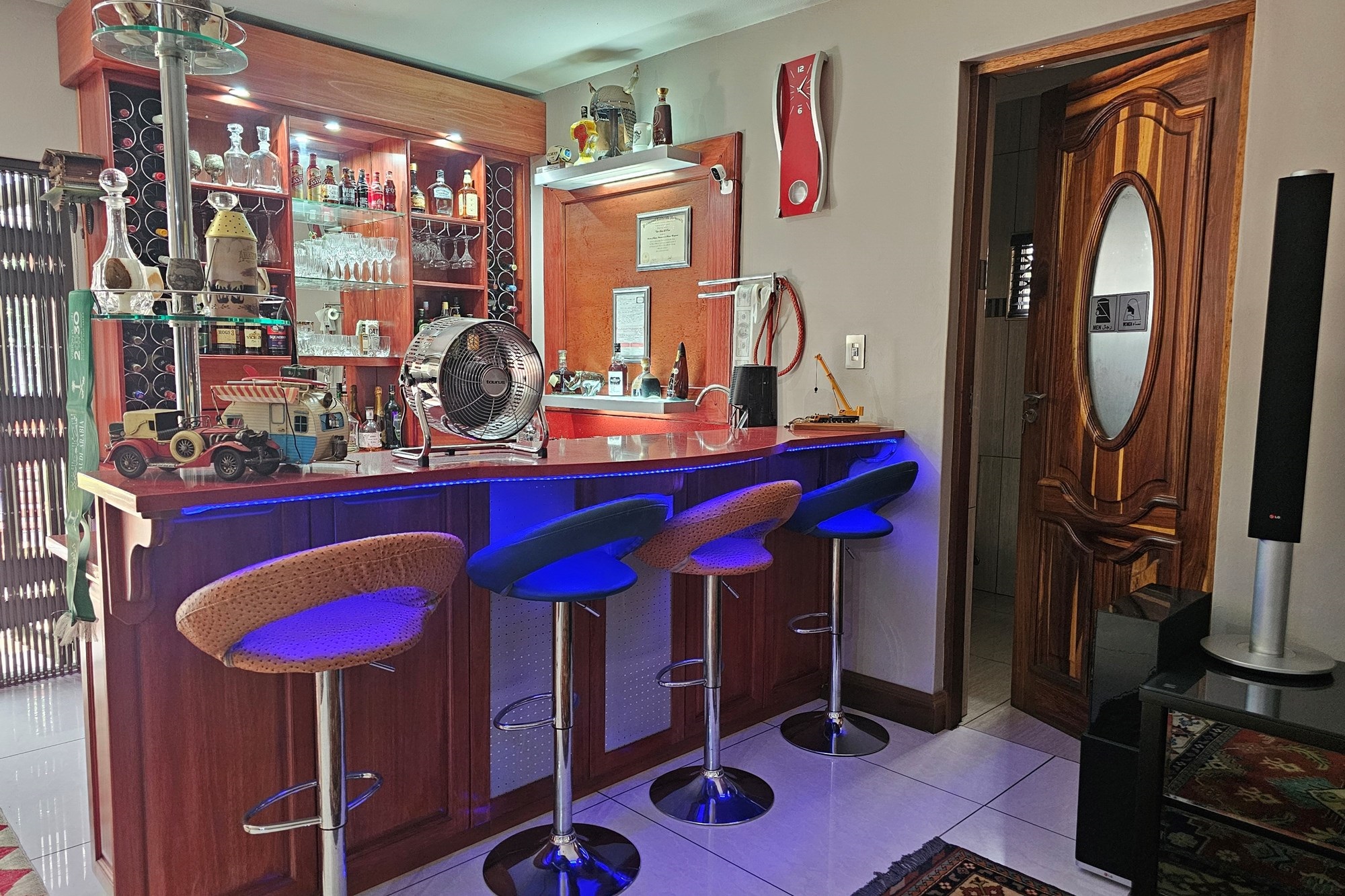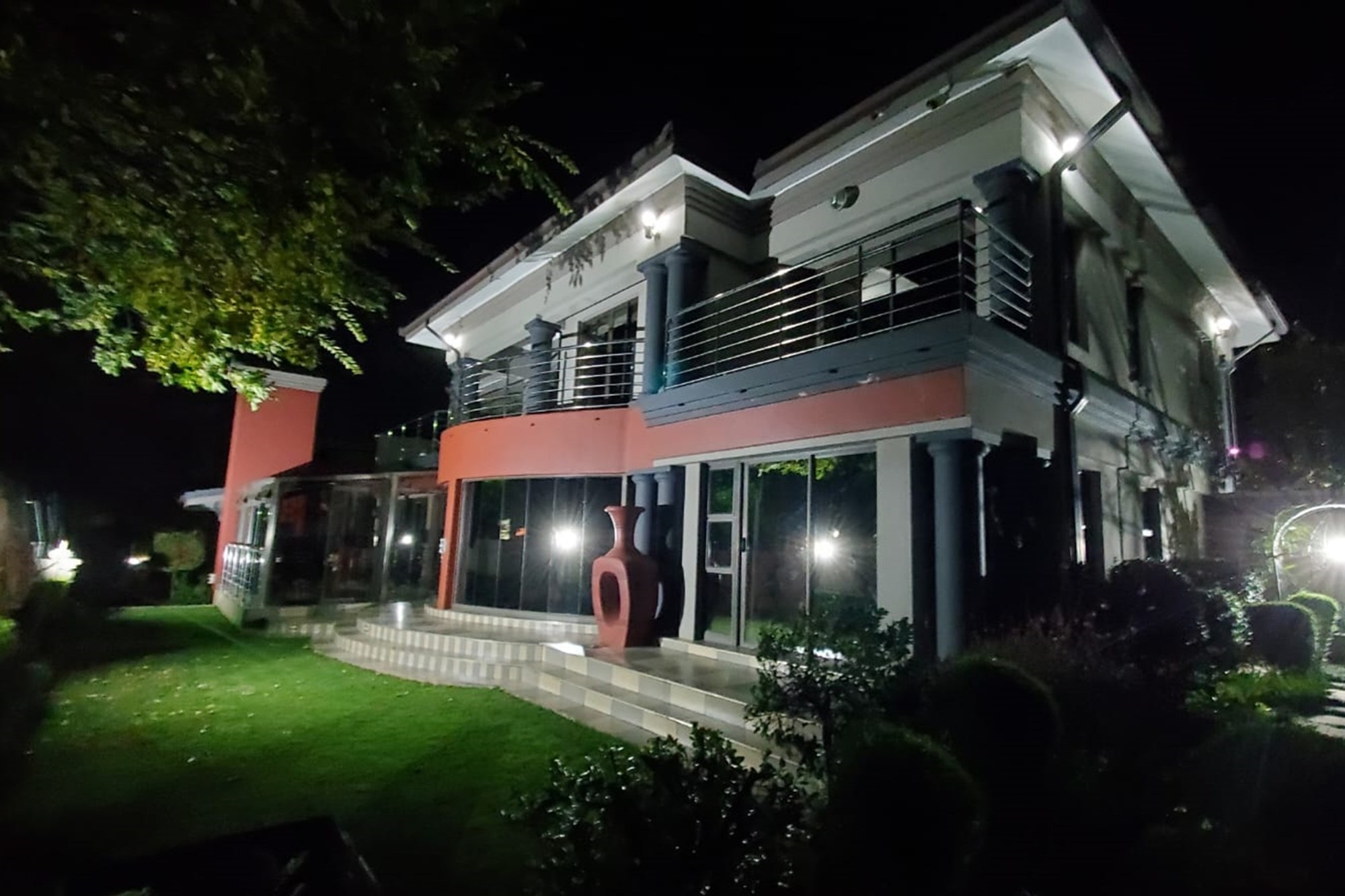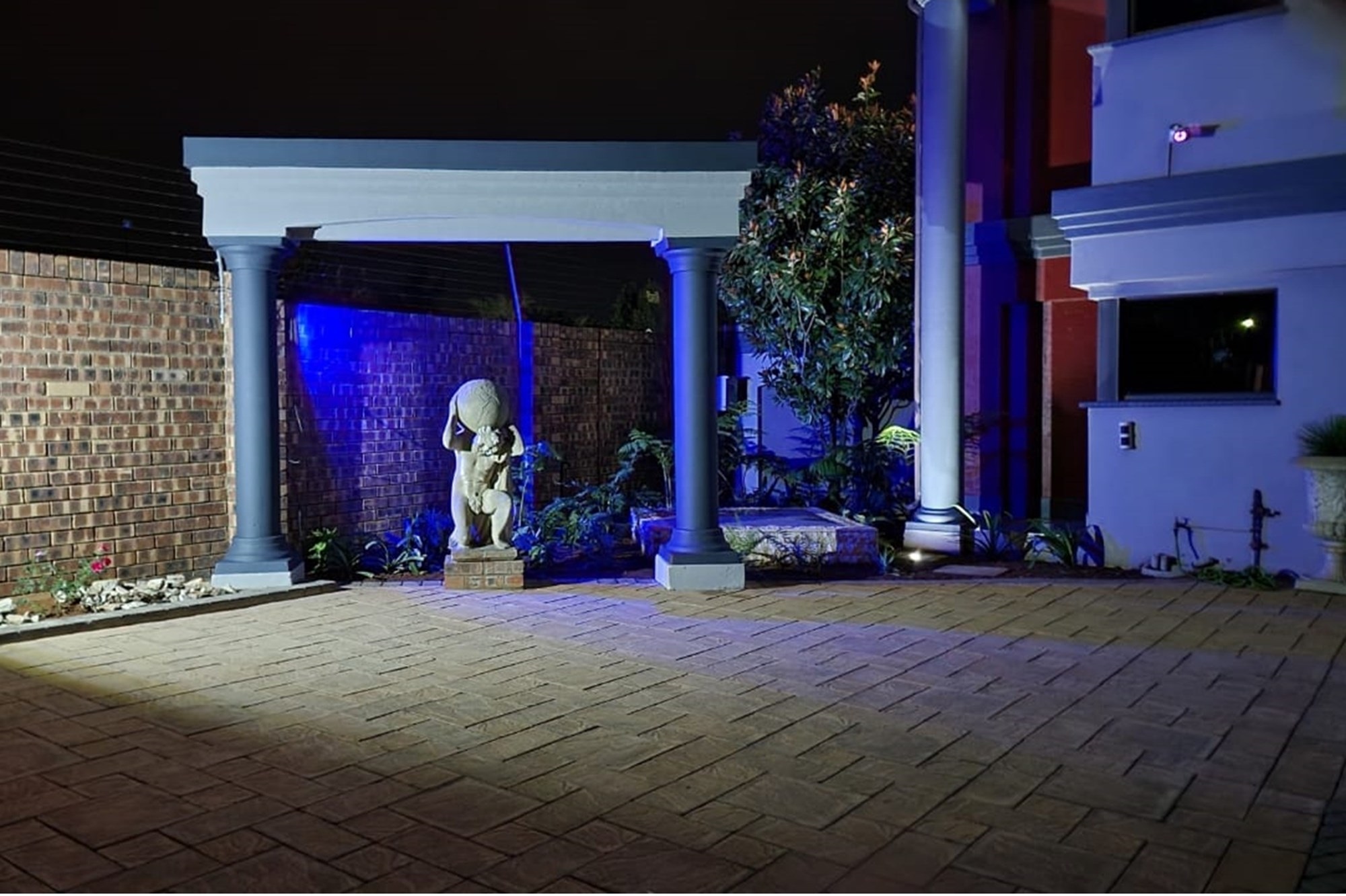 Completing the property are four tiled garages with bespoke wooden doors and built-in cupboards, ample storage rooms, and top-tier security including CCTV cameras, electric fencing, alarm system and security beams. An 8kVA battery backup system ensures 7 to 8 hours of uninterrupted power.
