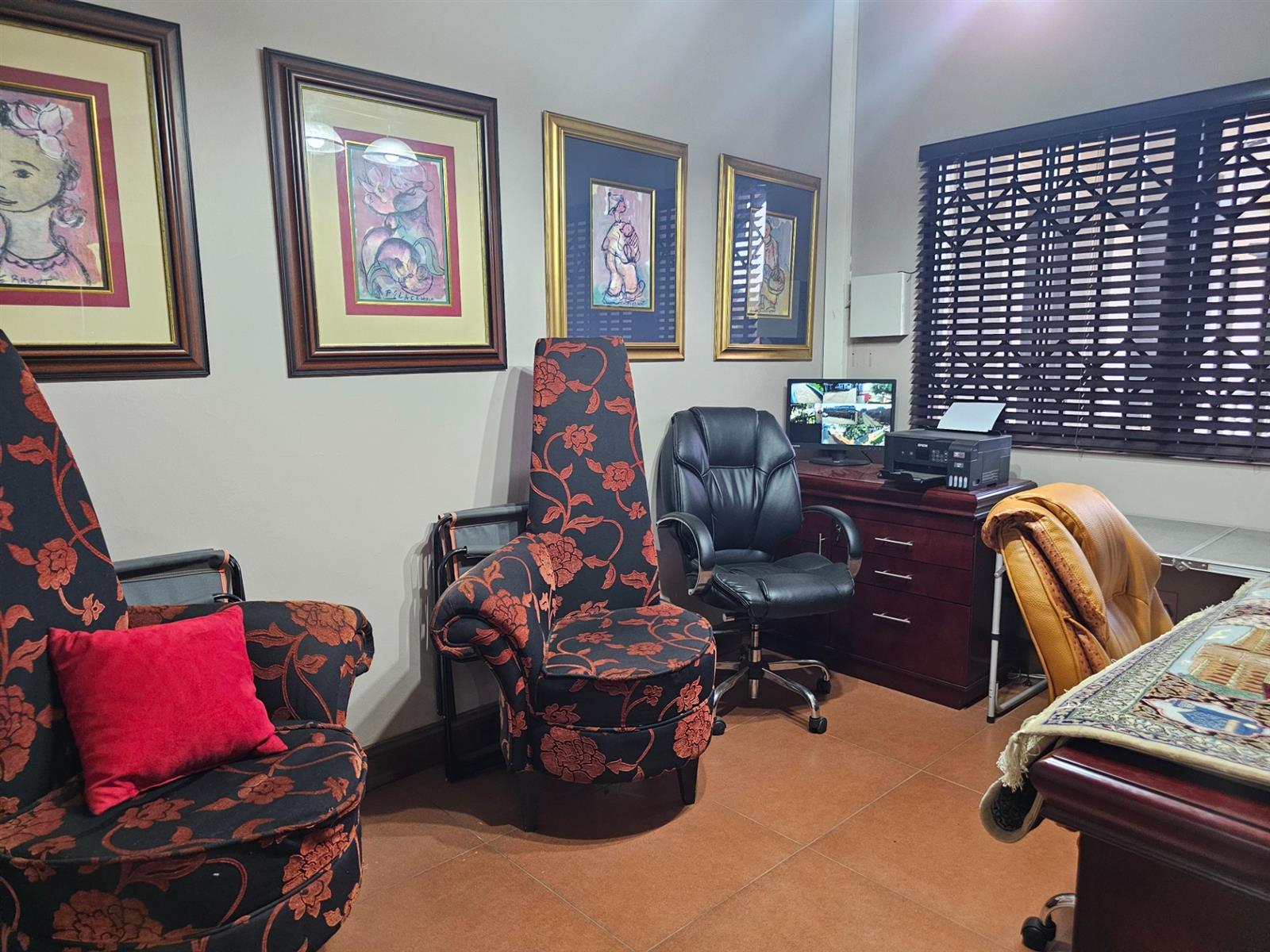A study with views of the front garden, solid wood doors throughout, and a penthouse retreat elevate this home even further. The penthouse features wooden kitchen cupboards, a bedroom, bathroom, lounge opening to a balcony, and a patio with a built-in braai—an exclusive sanctuary within an already remarkable home.