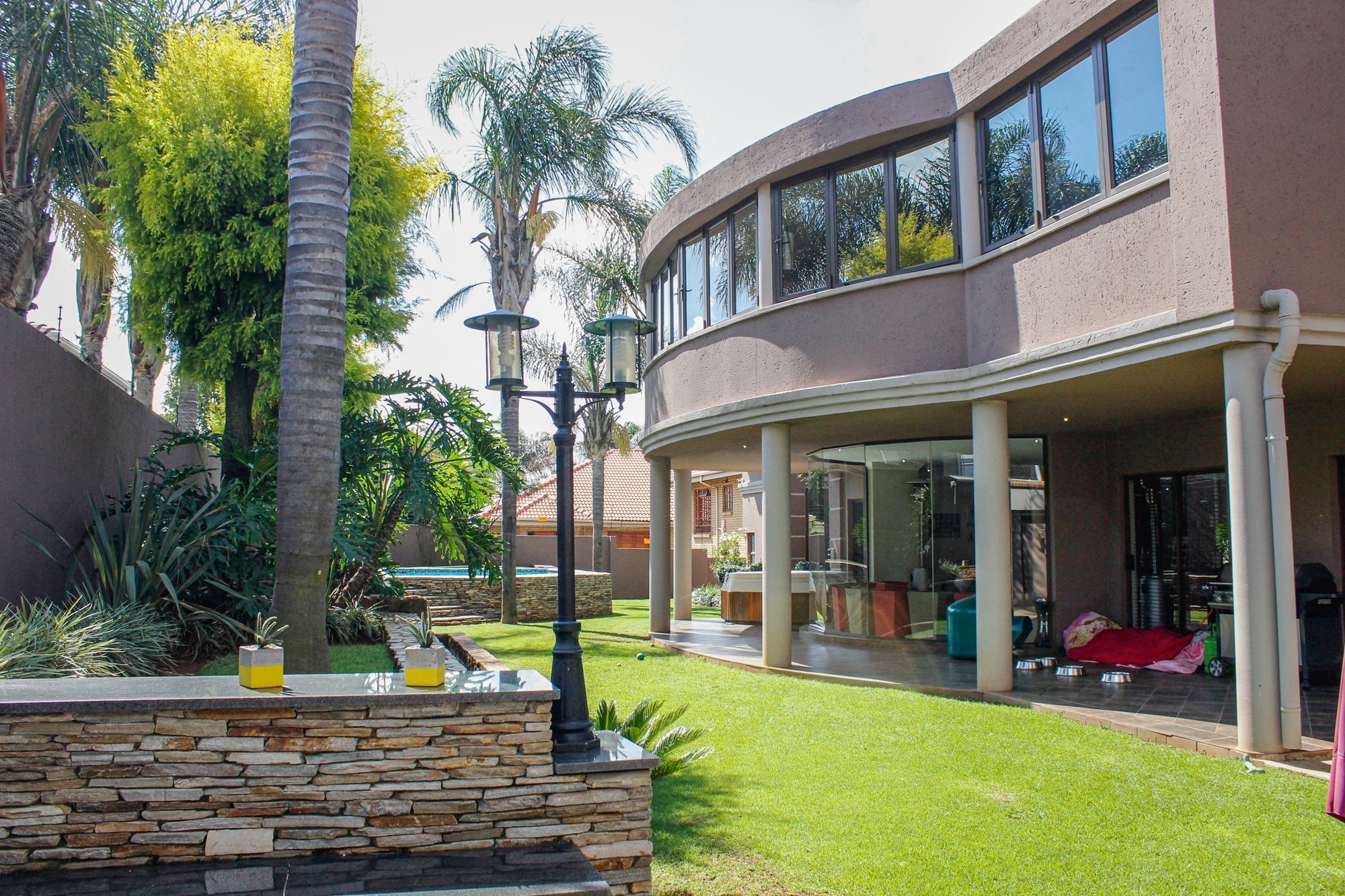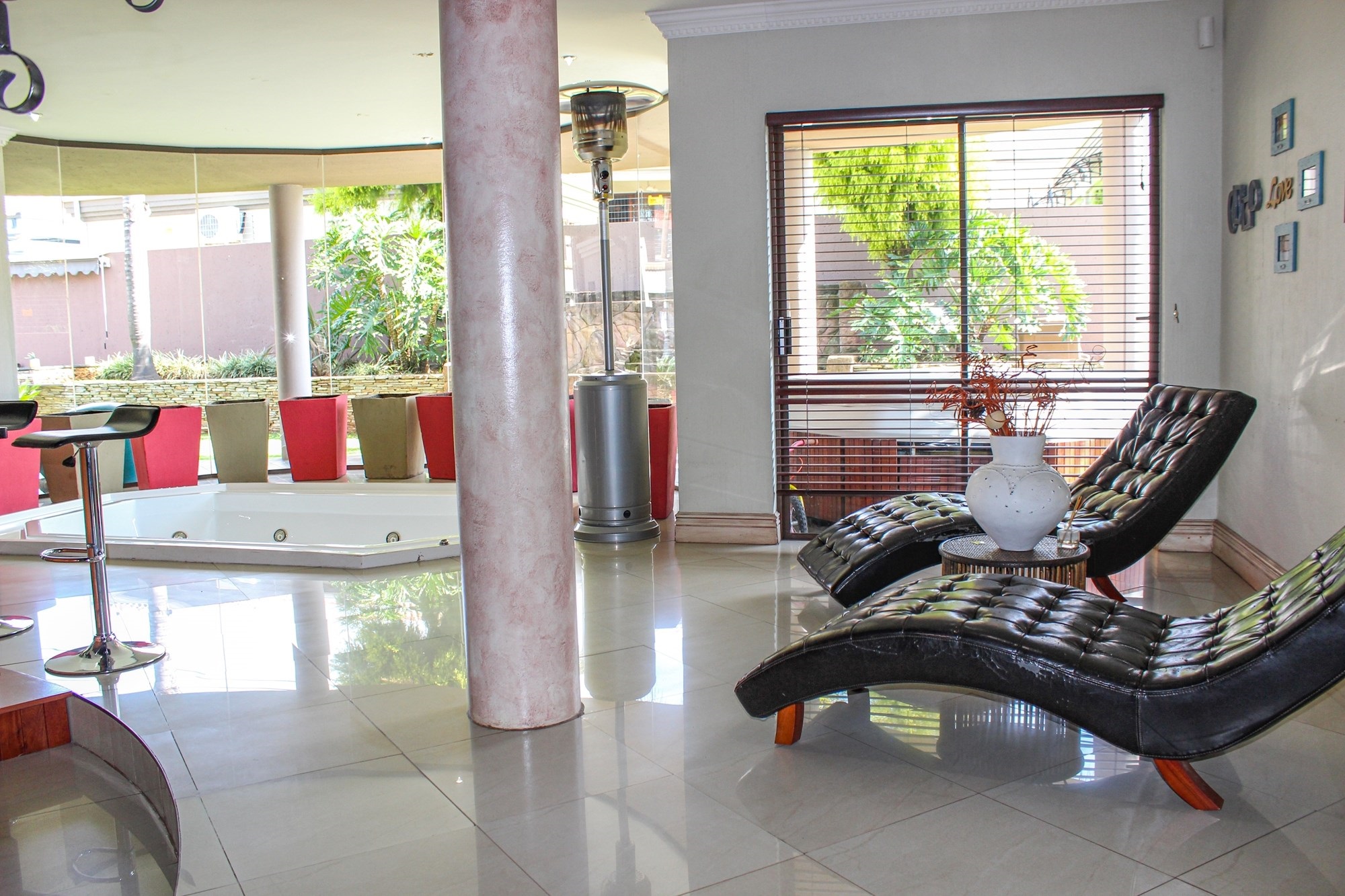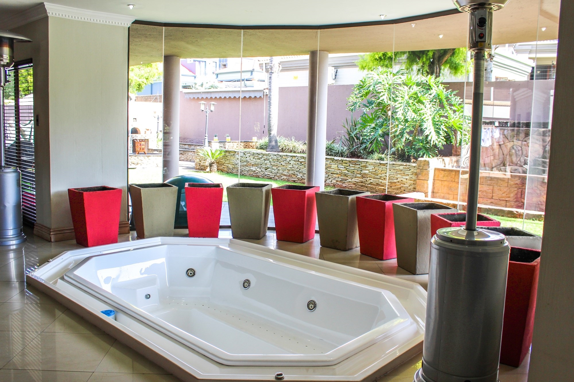 Outside, the entertainment offering is simply unbeatable: a raised swimming pool, 6-seater jacuzzi, pizza oven, firepit, built-in braai, soothing water feature, and a covered patio combine to create an entertainer’s dream setting.