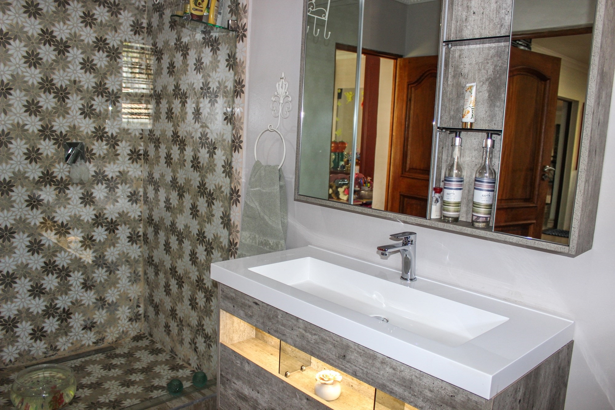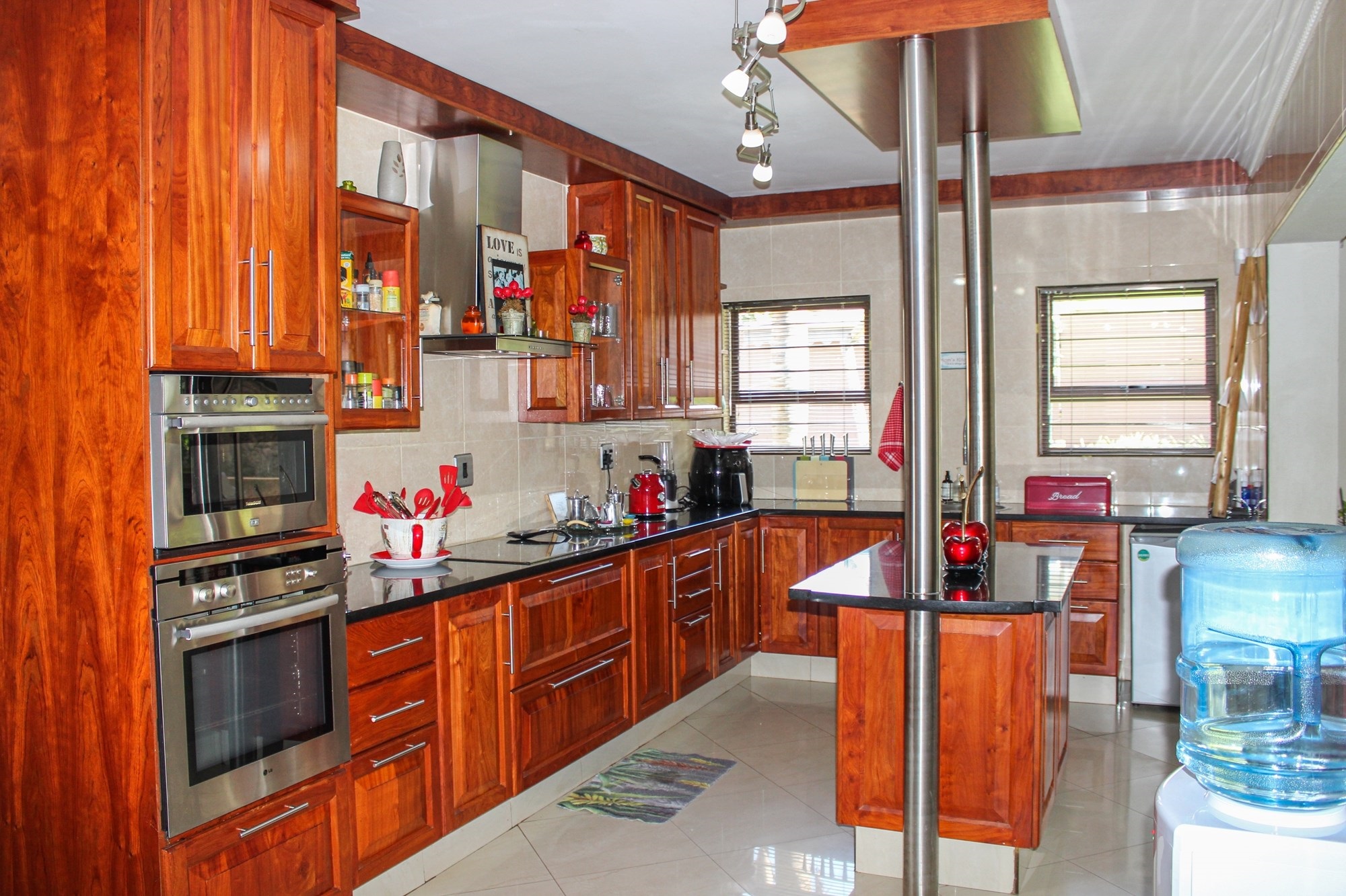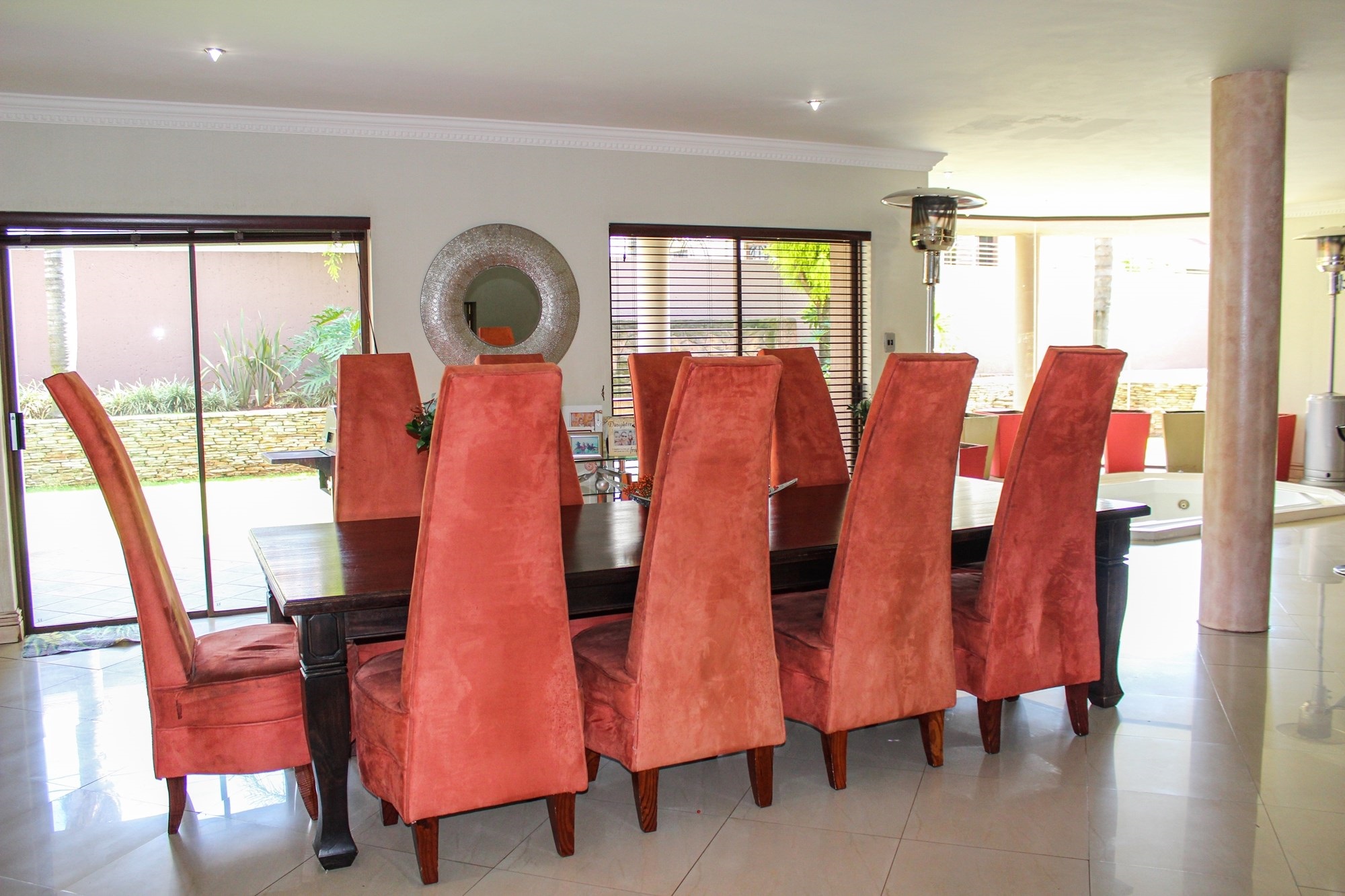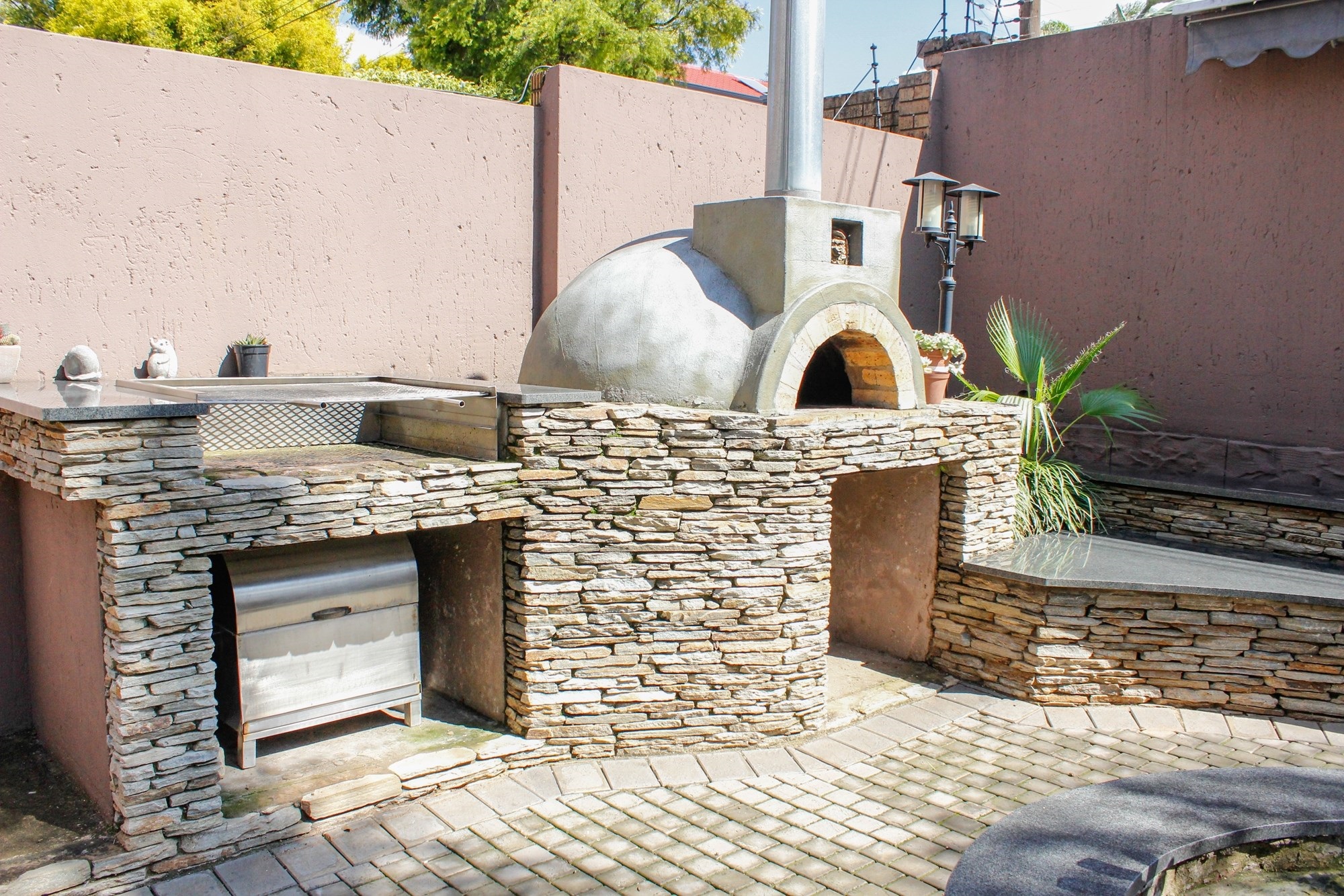 Outside, the entertainment offering is simply unbeatable: a raised swimming pool, 6-seater jacuzzi, pizza oven, firepit, built-in braai, soothing water feature, and a covered patio combine to create an entertainer’s dream setting.