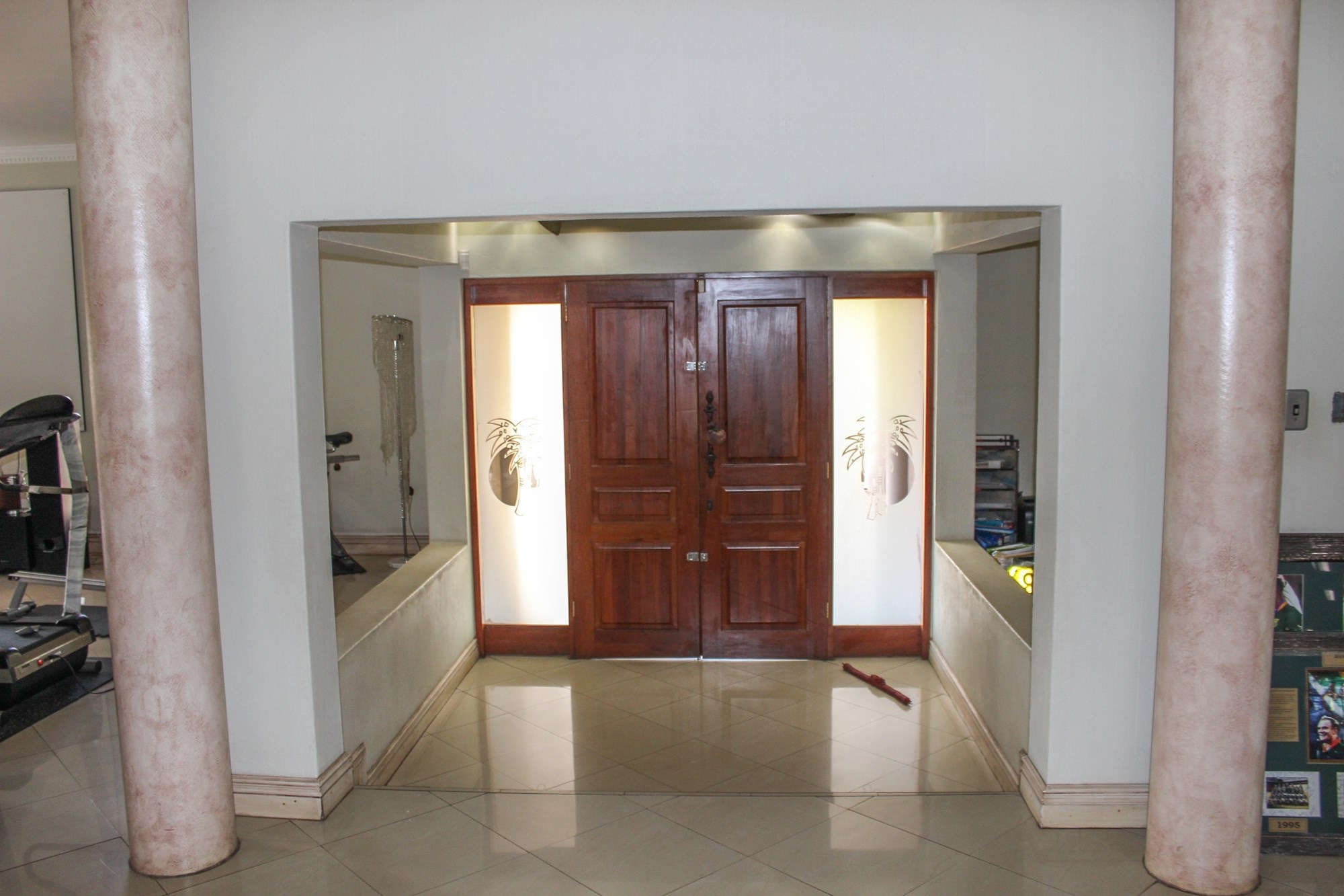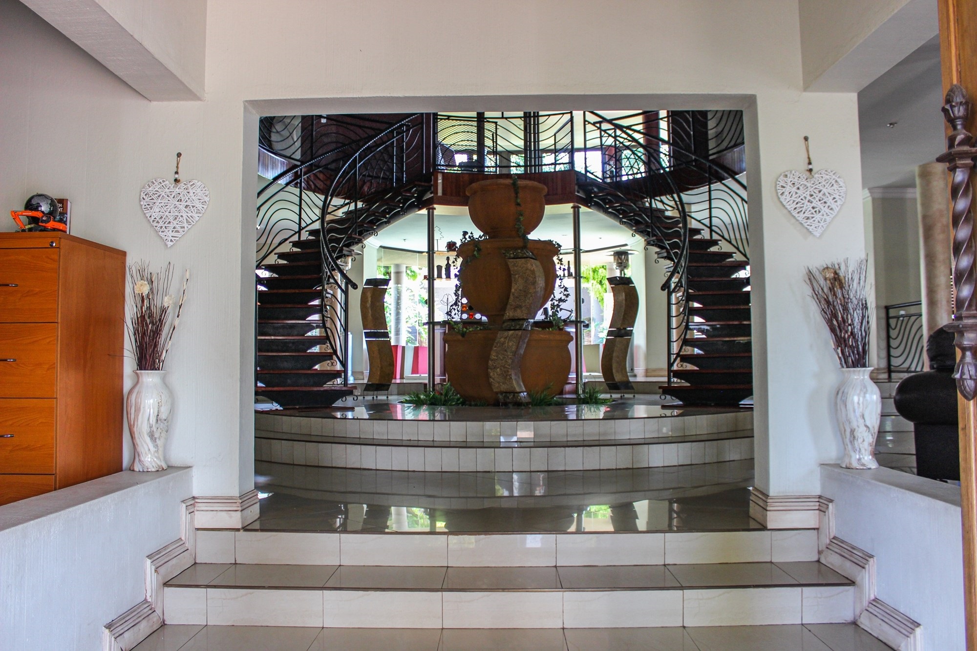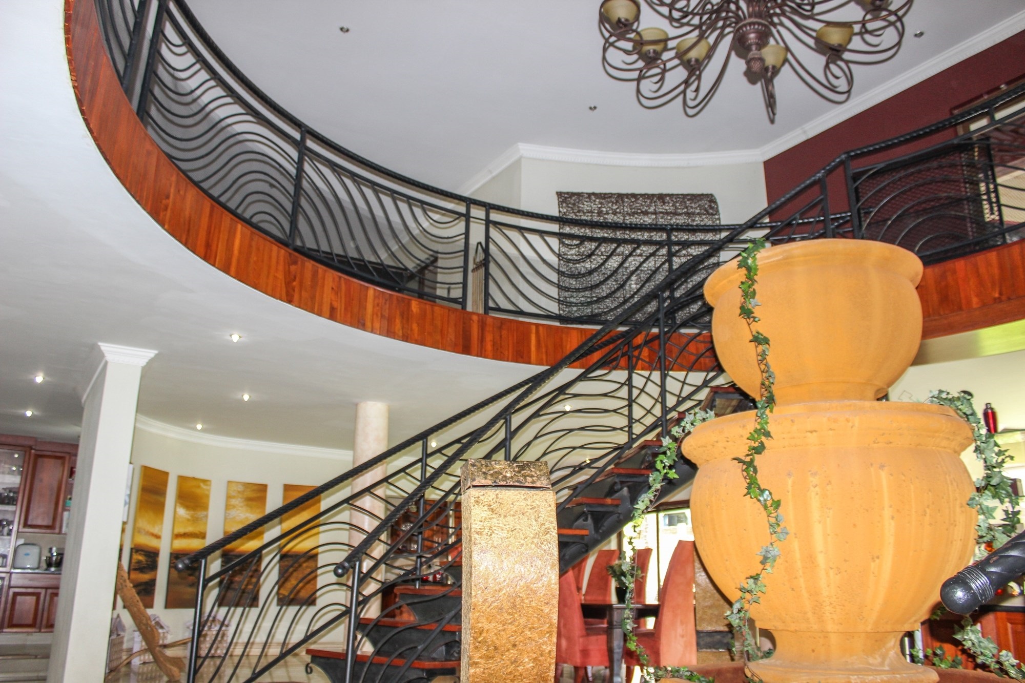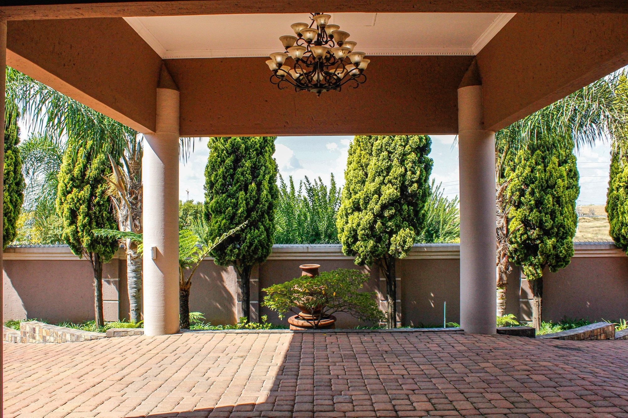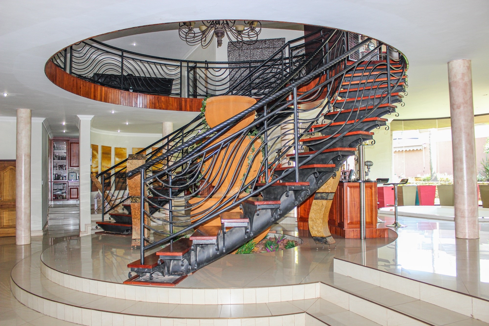 From the moment you arrive, the impressive porte cochere sets the tone, offering elegant, sheltered access to the entrance. Step through solid double wooden doors into a breathtaking foyer, where a sweeping circular staircase embraces a tranquil indoor garden — a striking architectural feature that instantly captures attention. Thoughtfully designed with toddler gates at the top of the staircase, this home blends sophistication with everyday practicality.