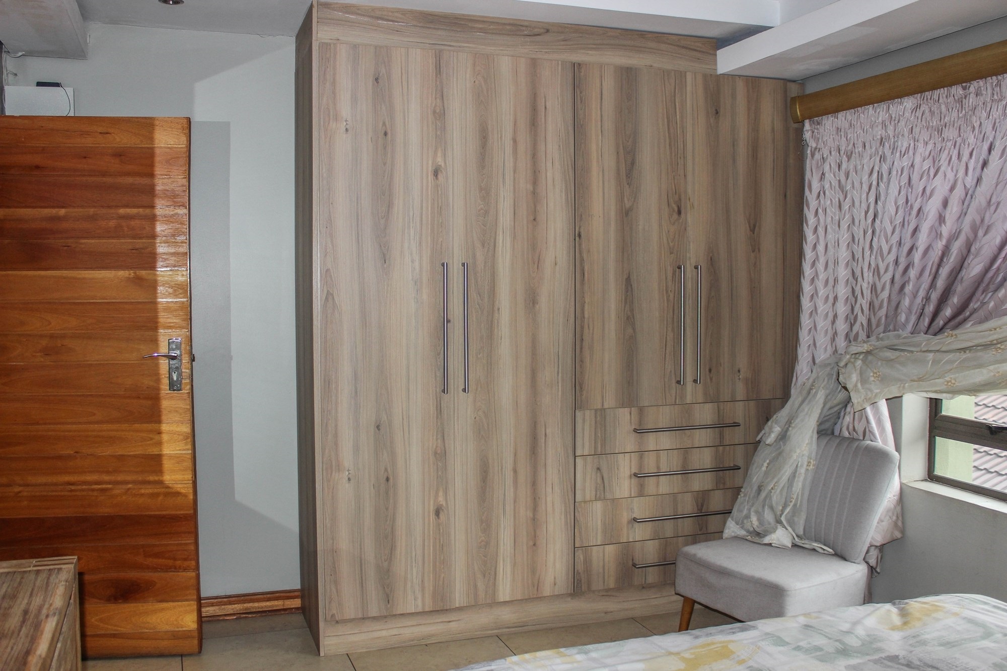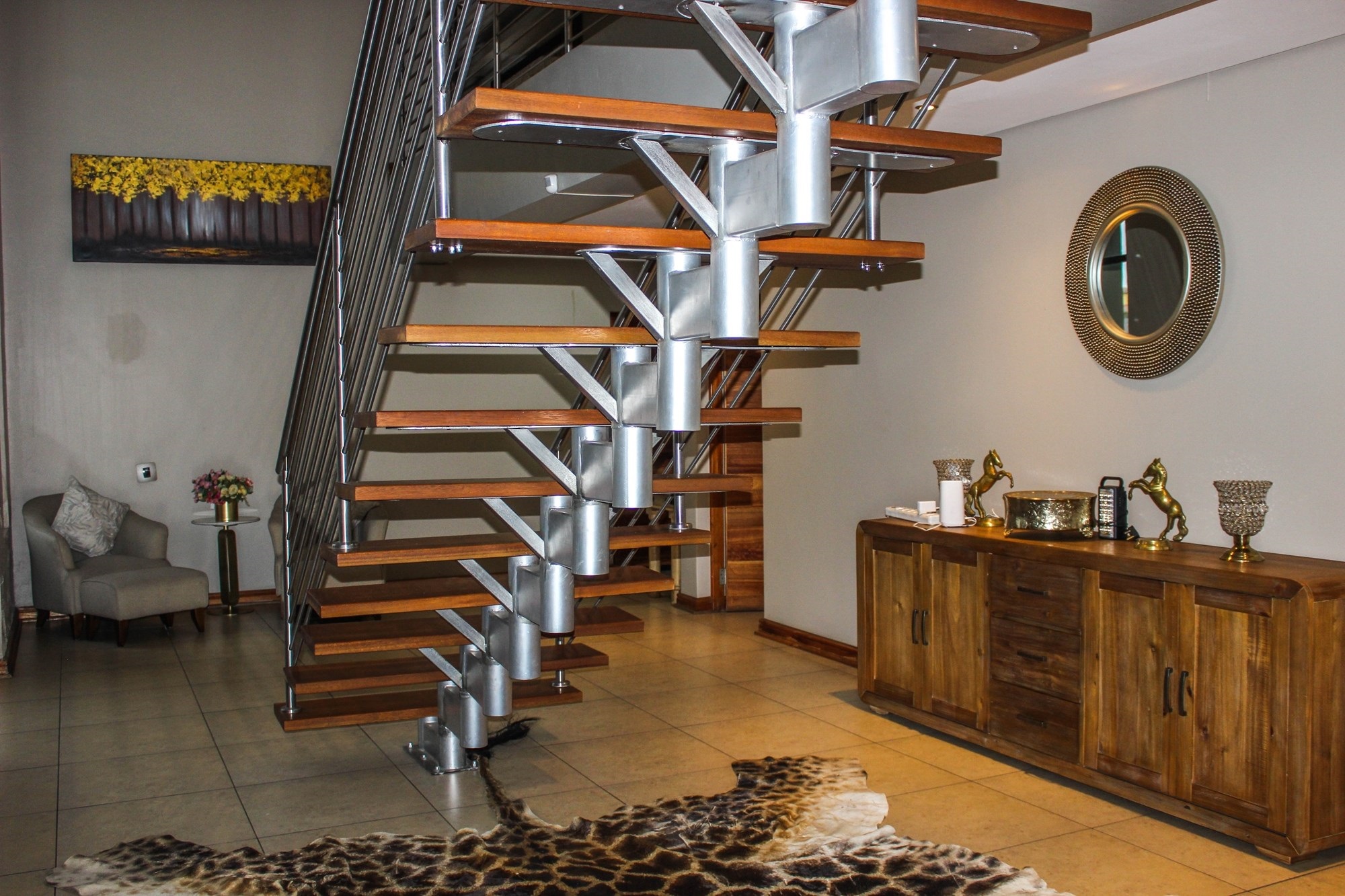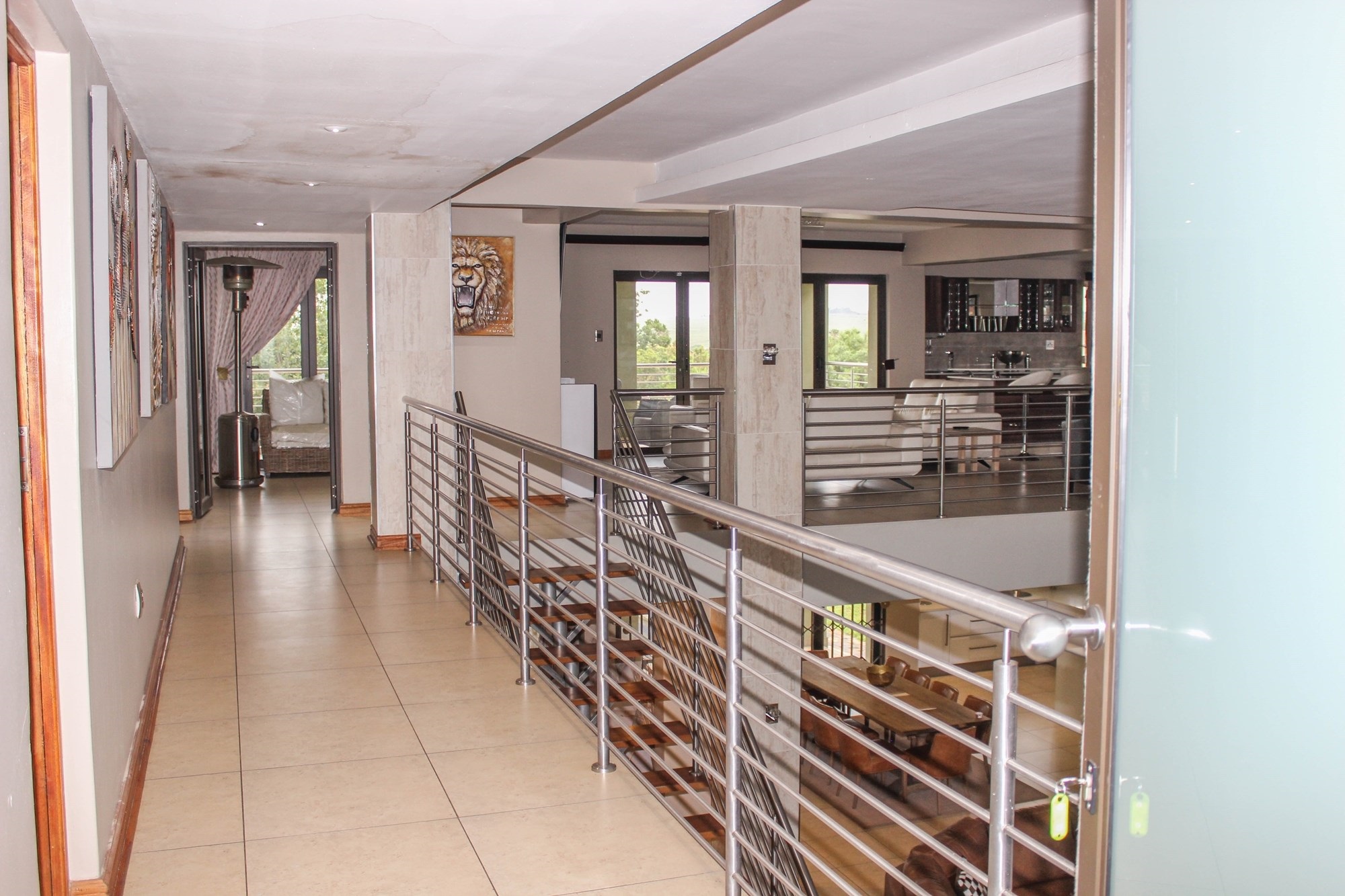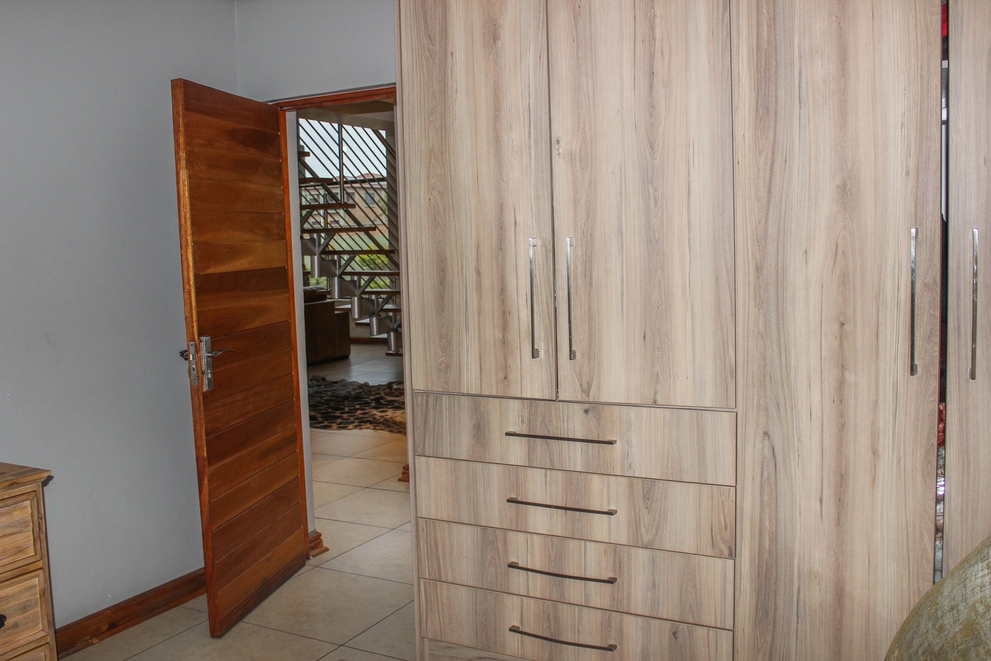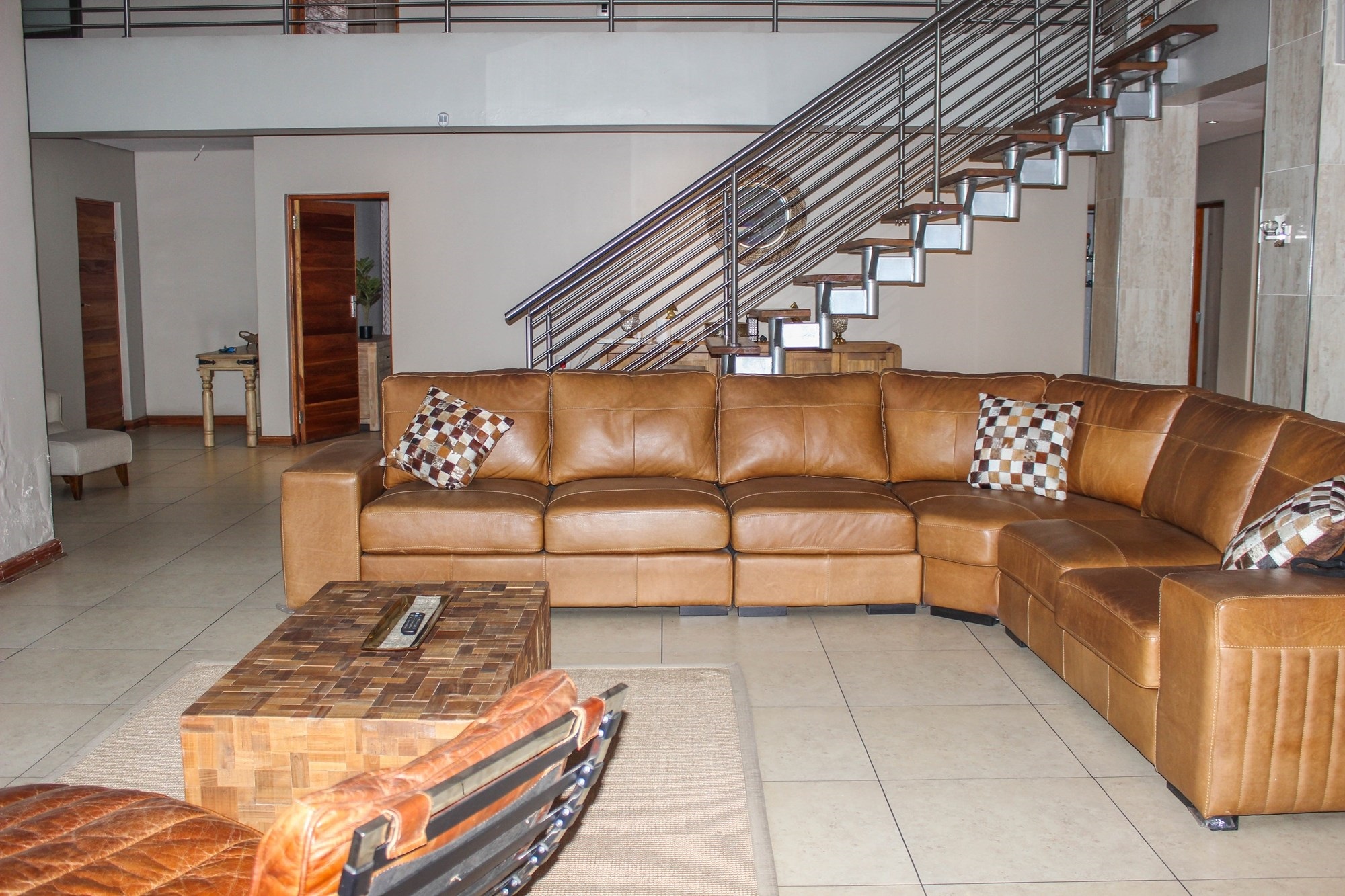 Step into a world where contemporary elegance and comfort converge in this immaculate double-storey masterpiece, nestled in the heart of sought-after Aerorand. From the moment you enter through the grand double wooden doors, you’re greeted by light-filled, flowing spaces designed for both family life and effortless entertaining. The seamless layout begins with a generous lounge and dining area that opens via stacking doors onto a covered patio and glistening swimming pool – an entertainer’s paradise! The cozy TV room features a stylish built-in unit, perfect for relaxed movie nights.