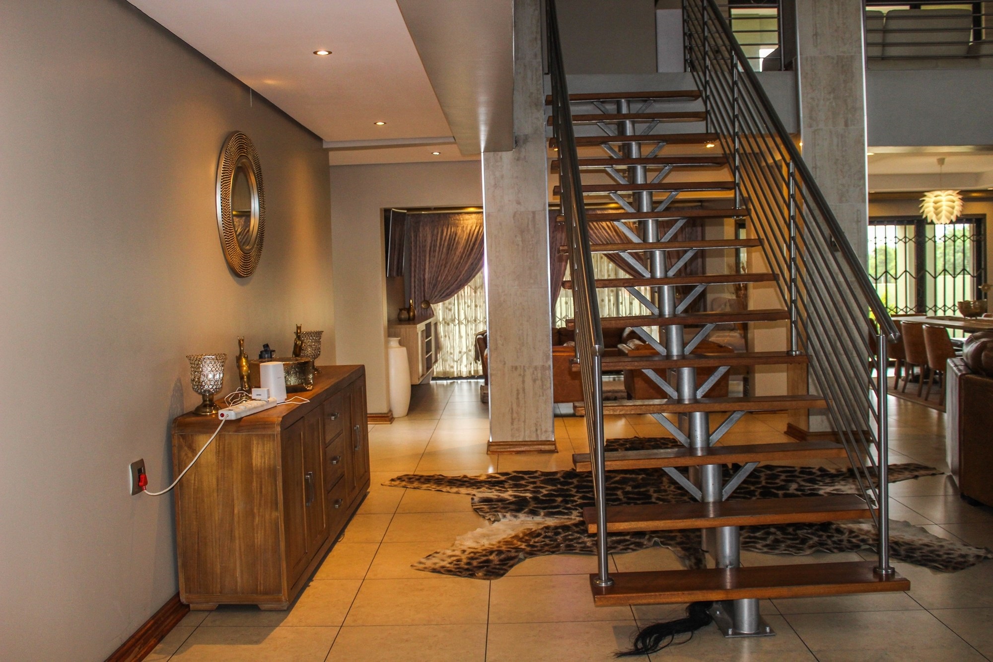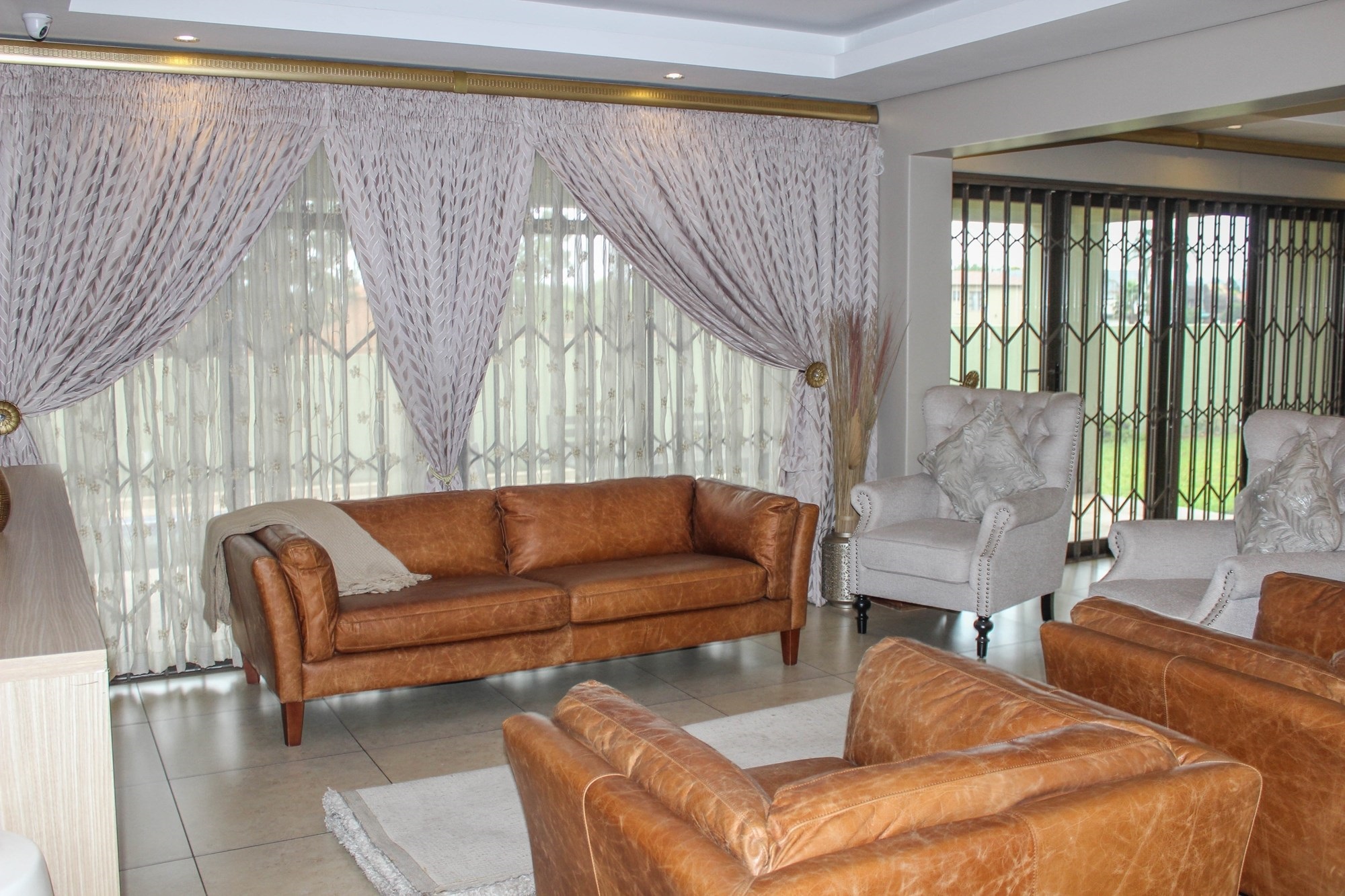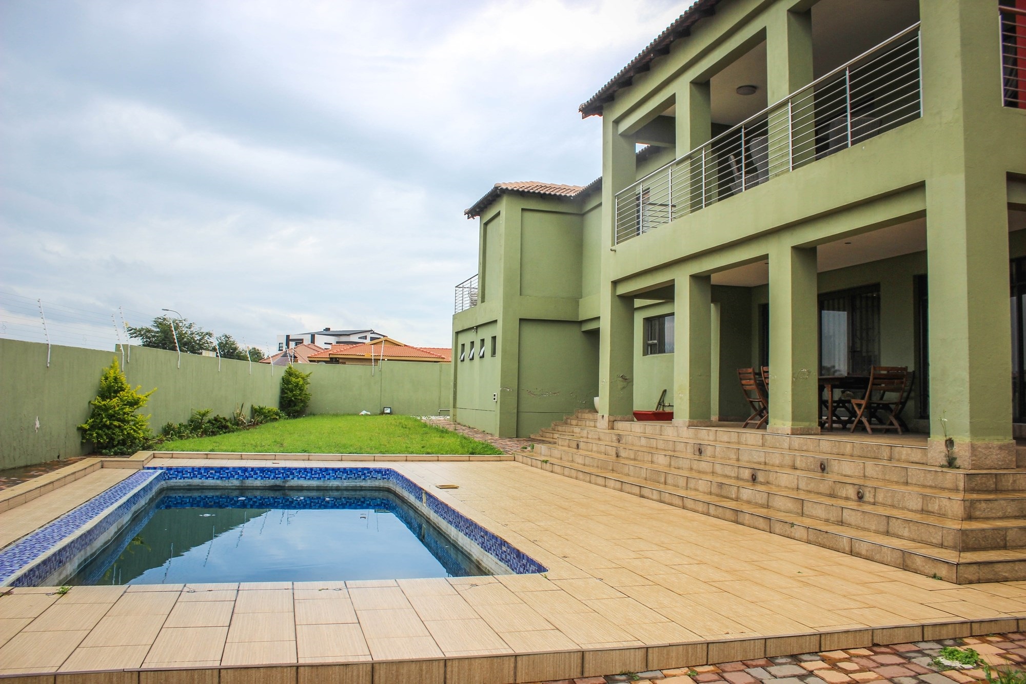 Security is top-tier with 16 surveillance cameras, electric fencing, an alarm system, and double automated garages. Bonus: an extra bedroom with its own toilet and basin—perfect for a domestic worker or teenager.