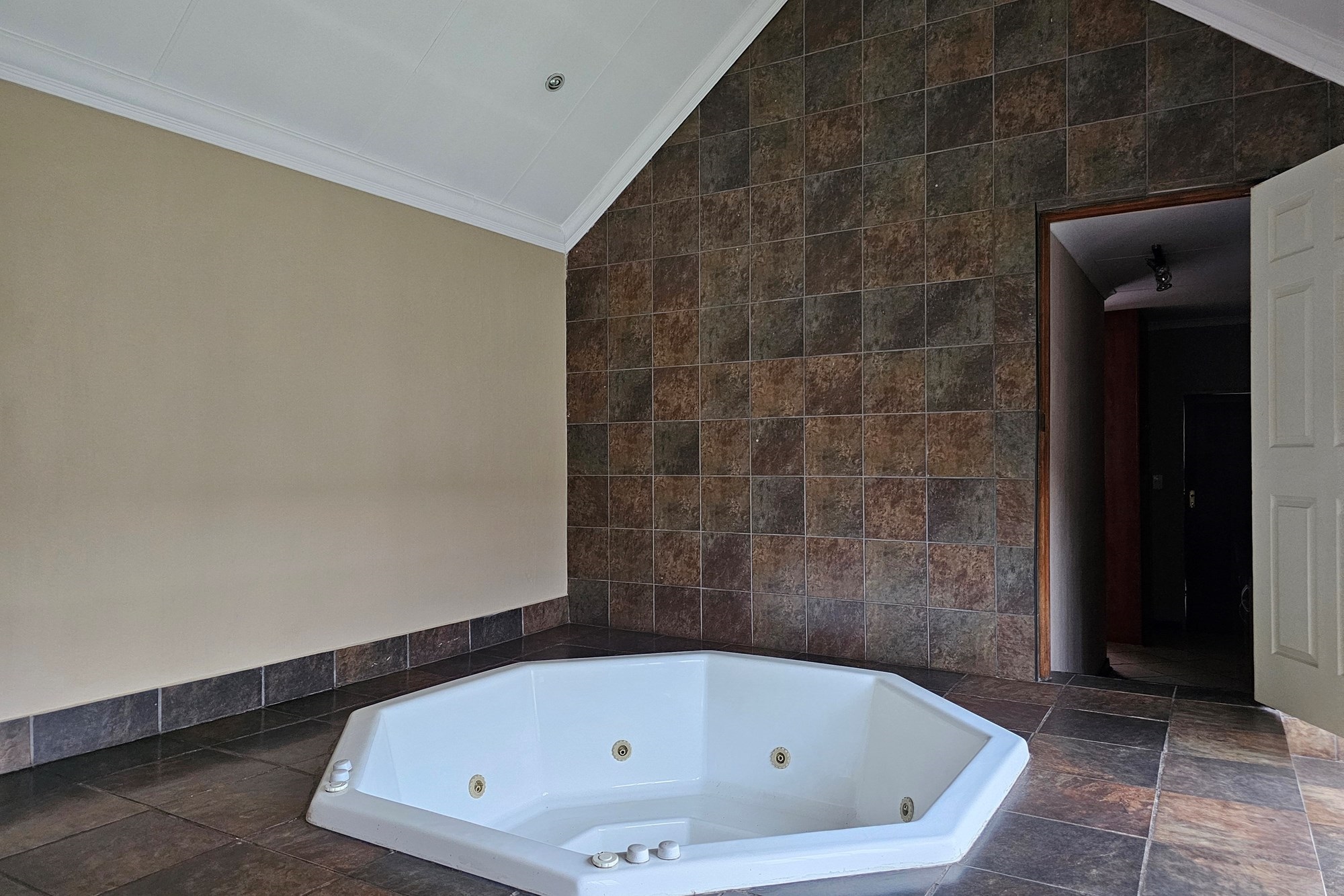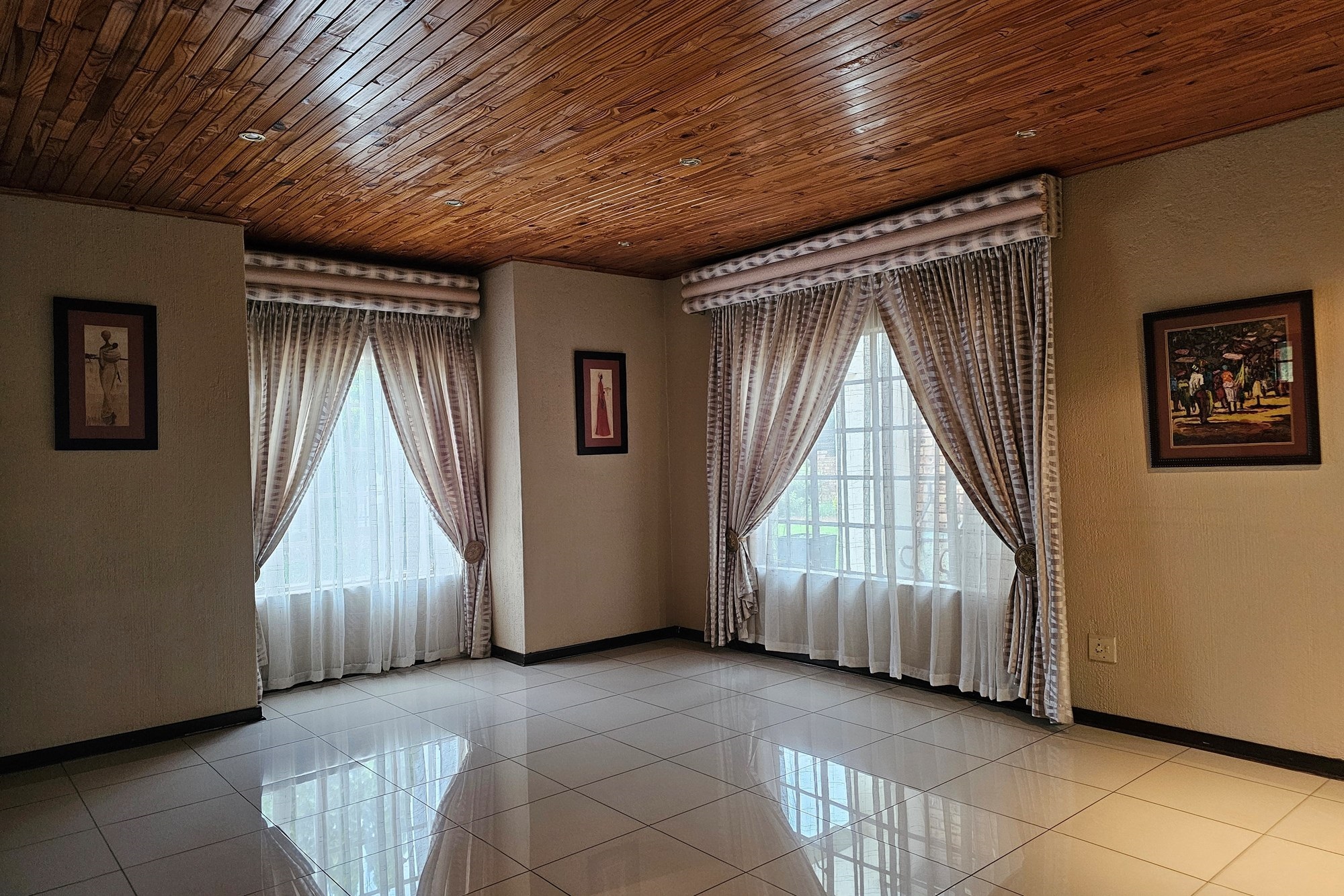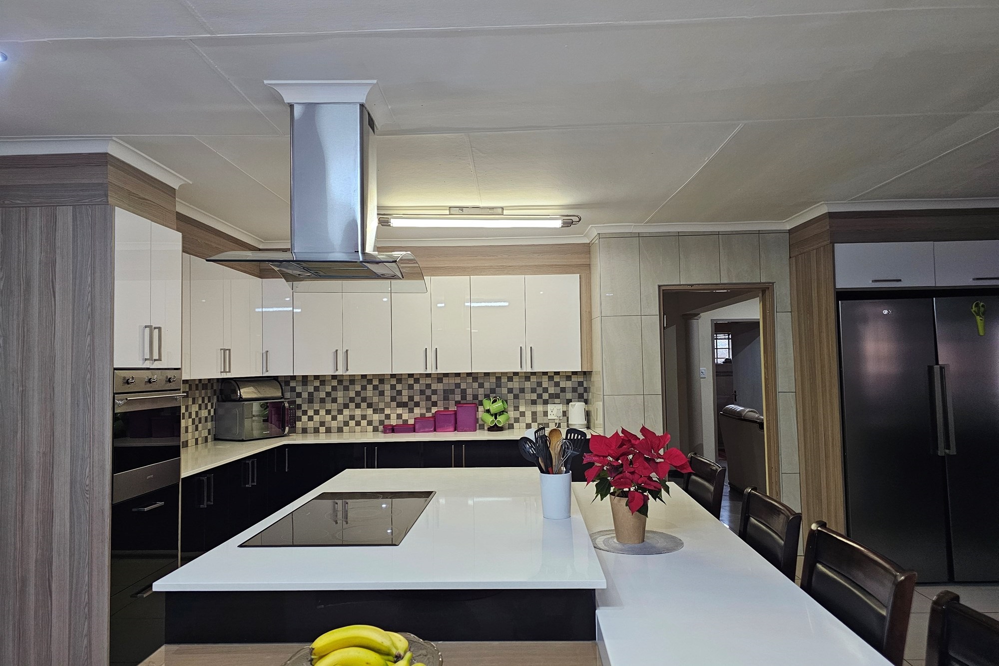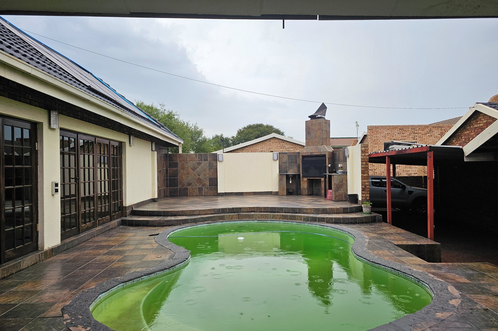The five bedrooms, three featuring en-suite bathrooms, offer both comfort and privacy. The versatile fifth bedroom doubles as a study, catering to various lifestyle needs. The passage hosts a convenient linen cupboard, and the entertainment area is a focal point with a spacious built-in bar and a jacuzzi. Opening to a private heated pool, outdoor braai area, and shower, this space is an oasis for leisure. Additional amenities include a flatlet for visiting guests, a double garage, a carport for six vehicles, and a well-maintained garden with a Wendy house for garden equipment. Move-in ready, this residence invites you to embark on a new chapter of life in unparalleled style and comfort.