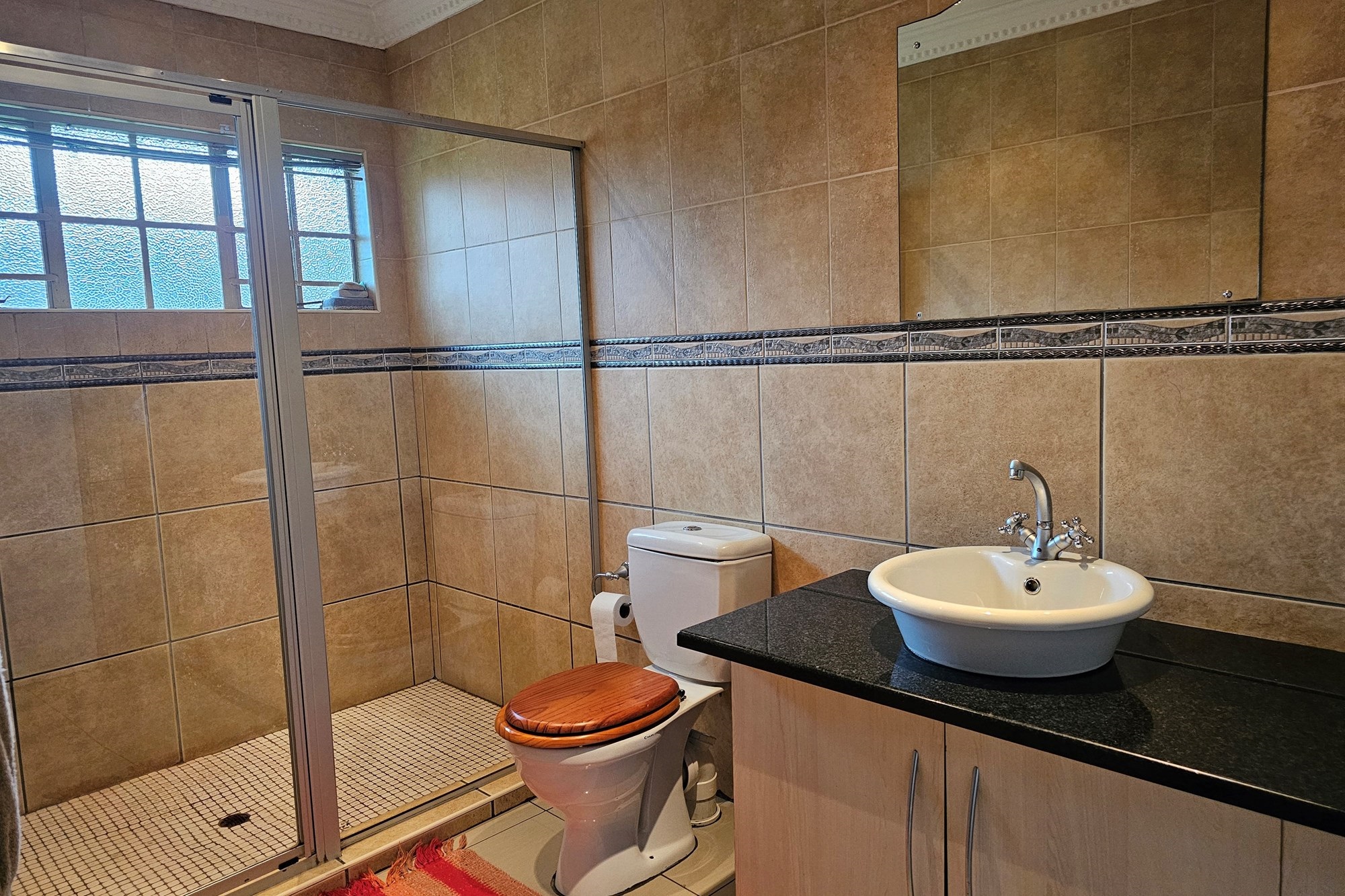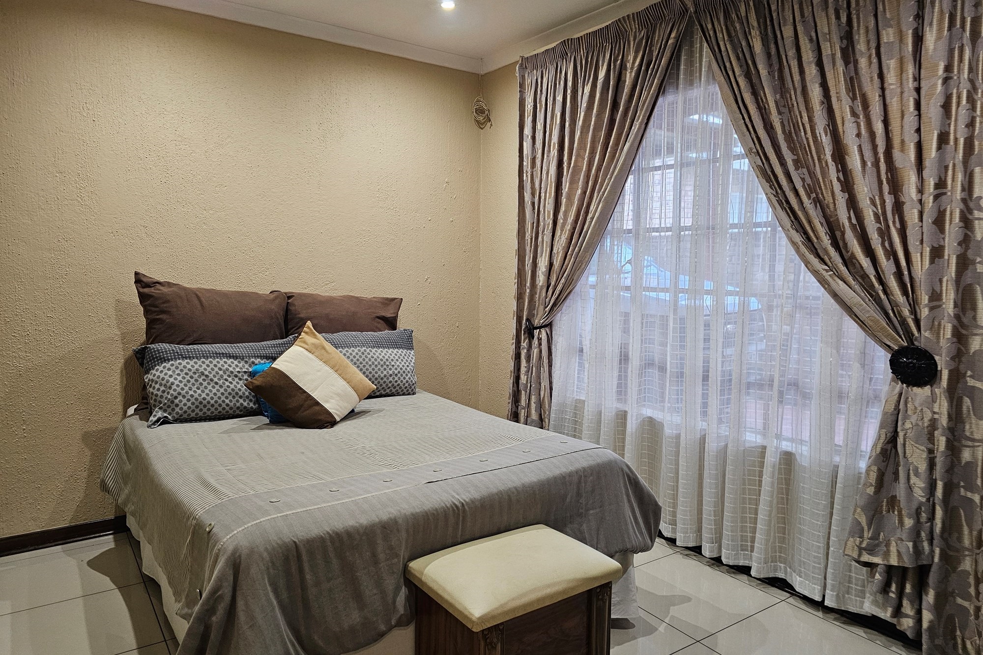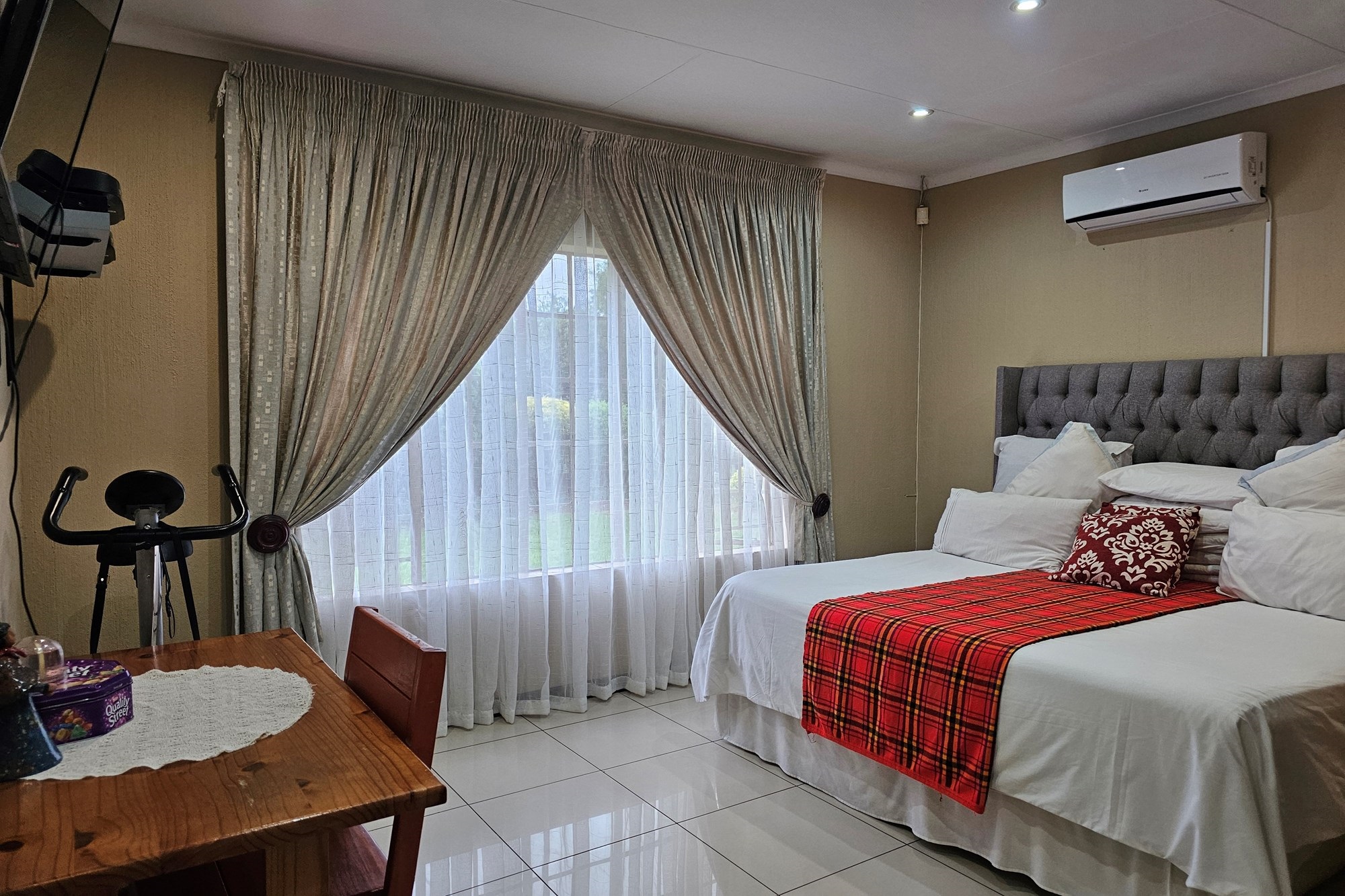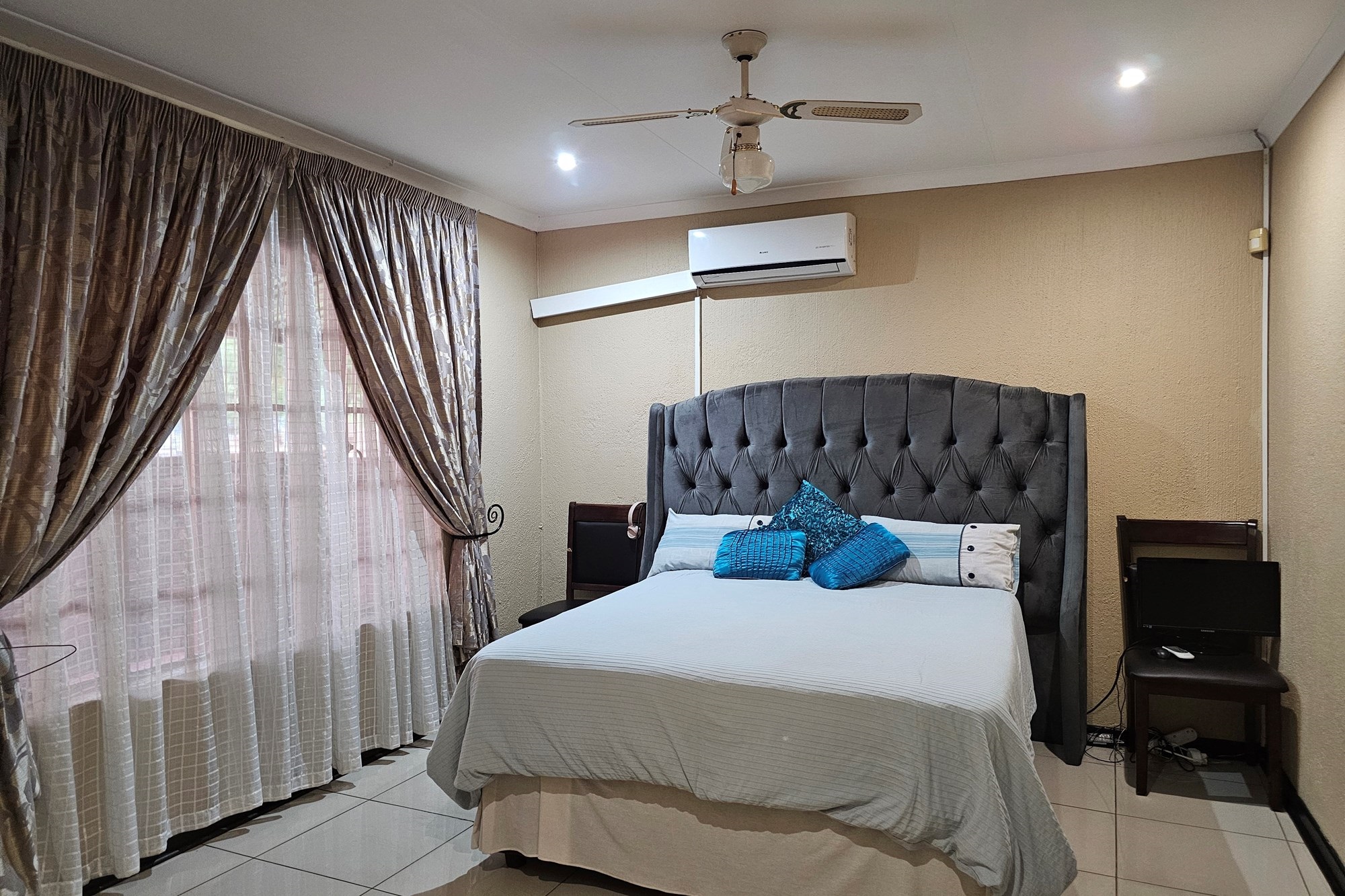 The five bedrooms, three featuring en-suite bathrooms, offer both comfort and privacy. The versatile fifth bedroom doubles as a study, catering to various lifestyle needs. The passage hosts a convenient linen cupboard, and the entertainment area is a focal point with a spacious built-in bar and a jacuzzi. Opening to a private heated pool, outdoor braai area, and shower, this space is an oasis for leisure. Additional amenities include a flatlet for visiting guests, a double garage, a carport for six vehicles, and a well-maintained garden with a Wendy house for garden equipment. Move-in ready, this residence invites you to embark on a new chapter of life in unparalleled style and comfort.