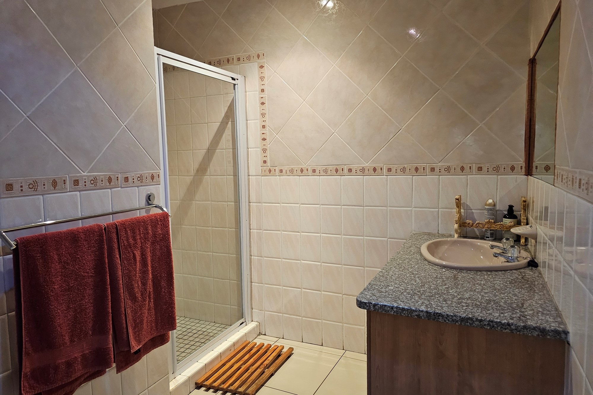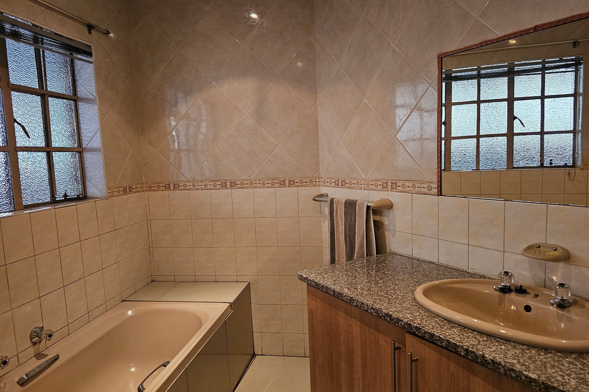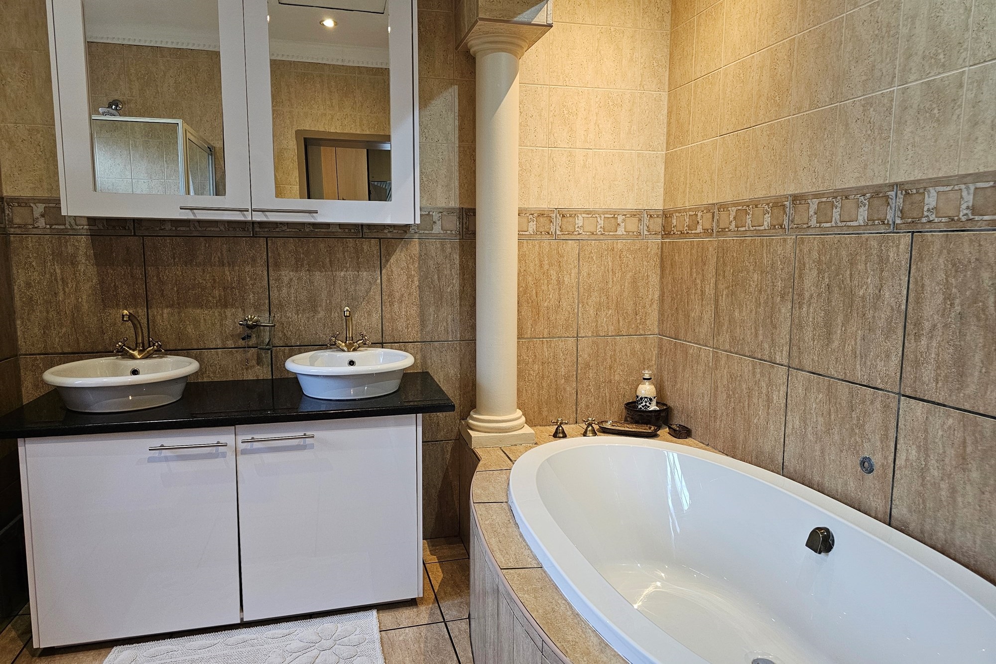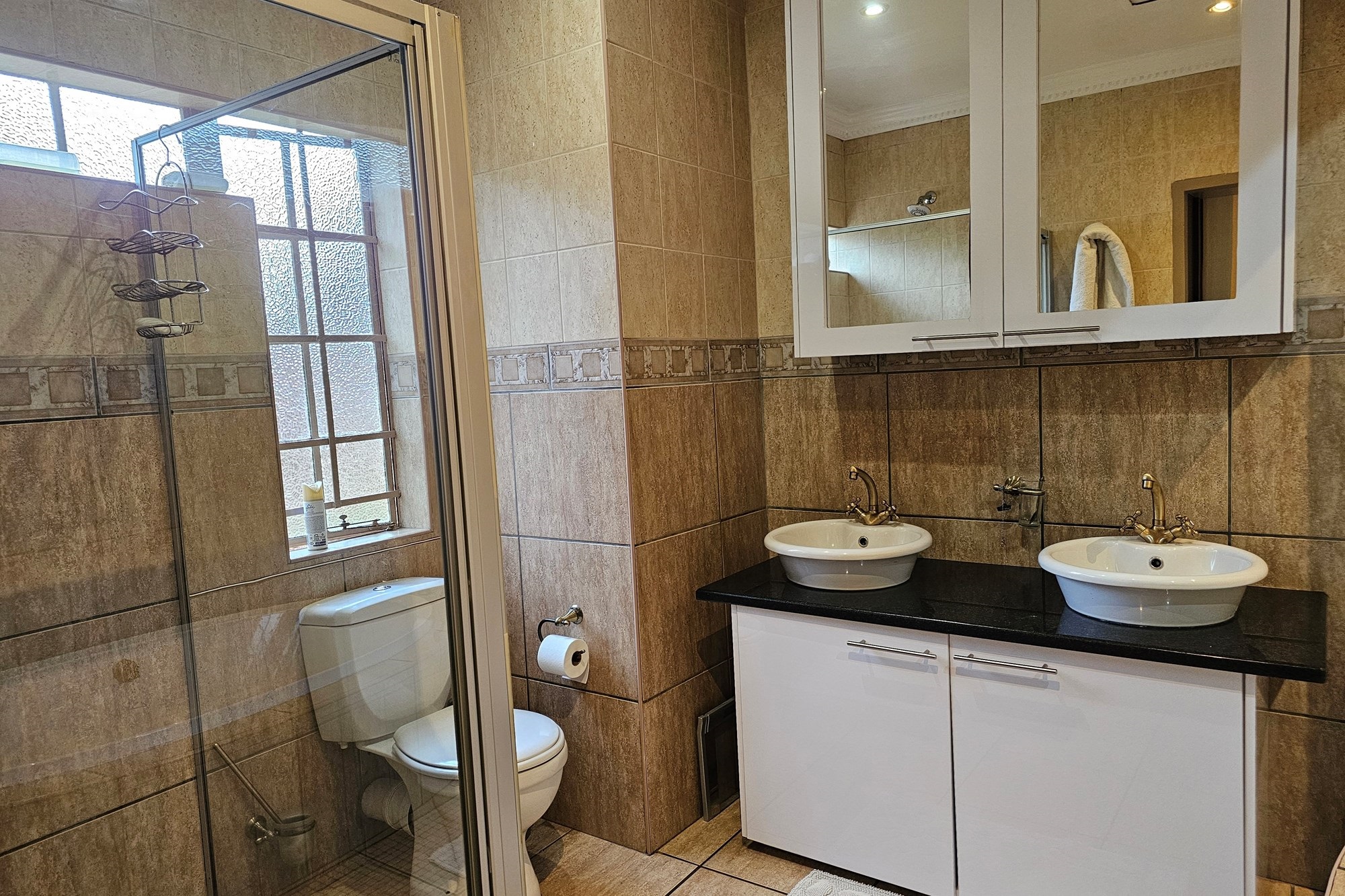 The five bedrooms, three featuring en-suite bathrooms, offer both comfort and privacy. The versatile fifth bedroom doubles as a study, catering to various lifestyle needs. The passage hosts a convenient linen cupboard, and the entertainment area is a focal point with a spacious built-in bar and a jacuzzi. Opening to a private heated pool, outdoor braai area, and shower, this space is an oasis for leisure. Additional amenities include a flatlet for visiting guests, a double garage, a carport for six vehicles, and a well-maintained garden with a Wendy house for garden equipment. Move-in ready, this residence invites you to embark on a new chapter of life in unparalleled style and comfort.