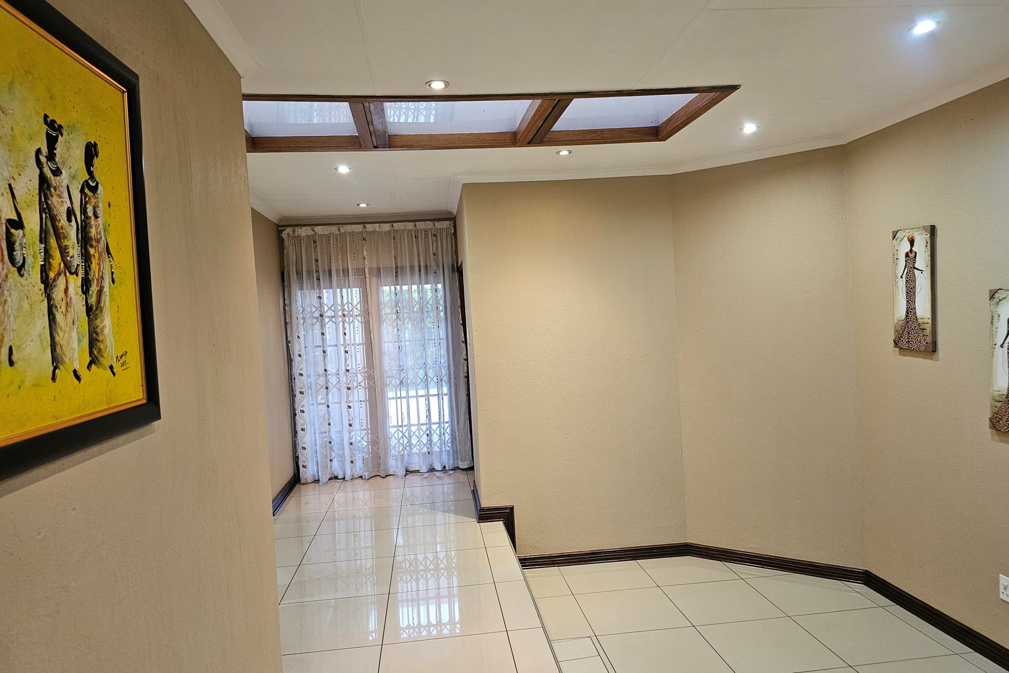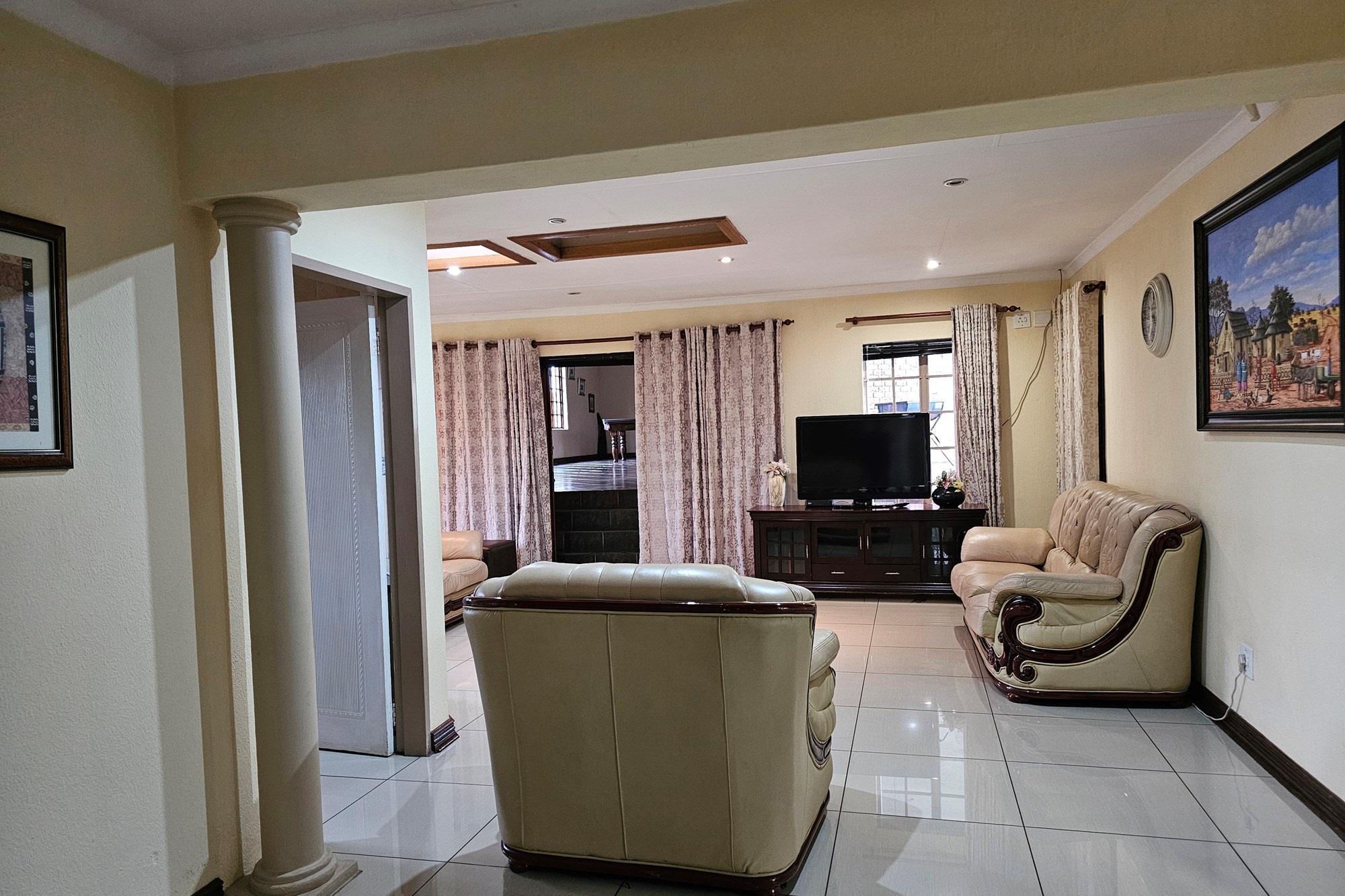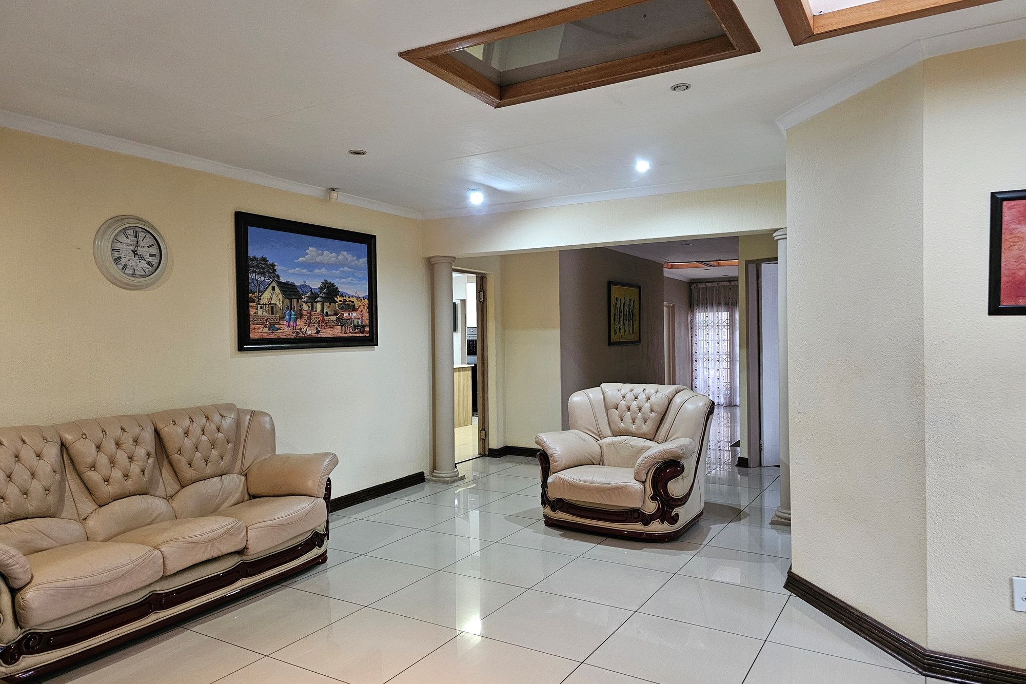 This exquisite residence seamlessly combines luxury and functionality, offering an array of inviting spaces for both relaxation and entertainment. The formal lounge, adorned with a charming fireplace, provides an elegant setting for gatherings, while a dedicated TV lounge adds a cozy spot for casual enjoyment. A thoughtfully designed reading nook beneath skylights bathes the area in natural light, creating an ideal space for quiet contemplation.
