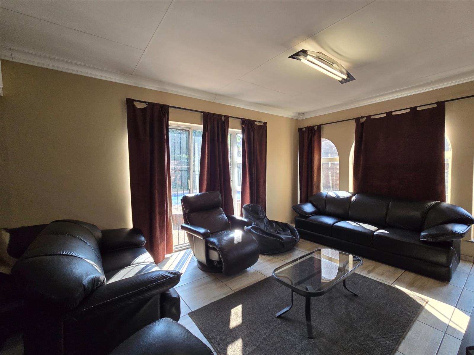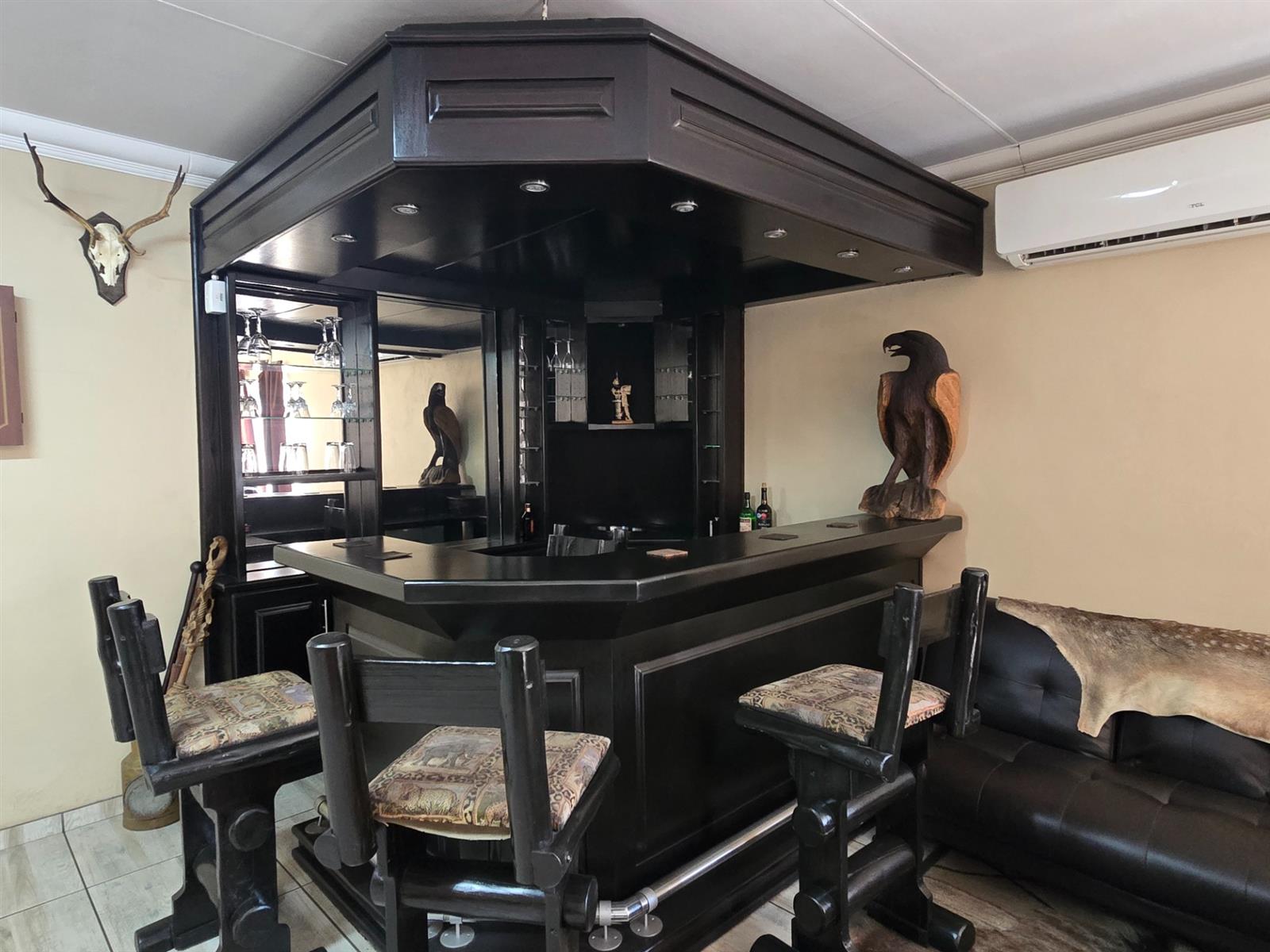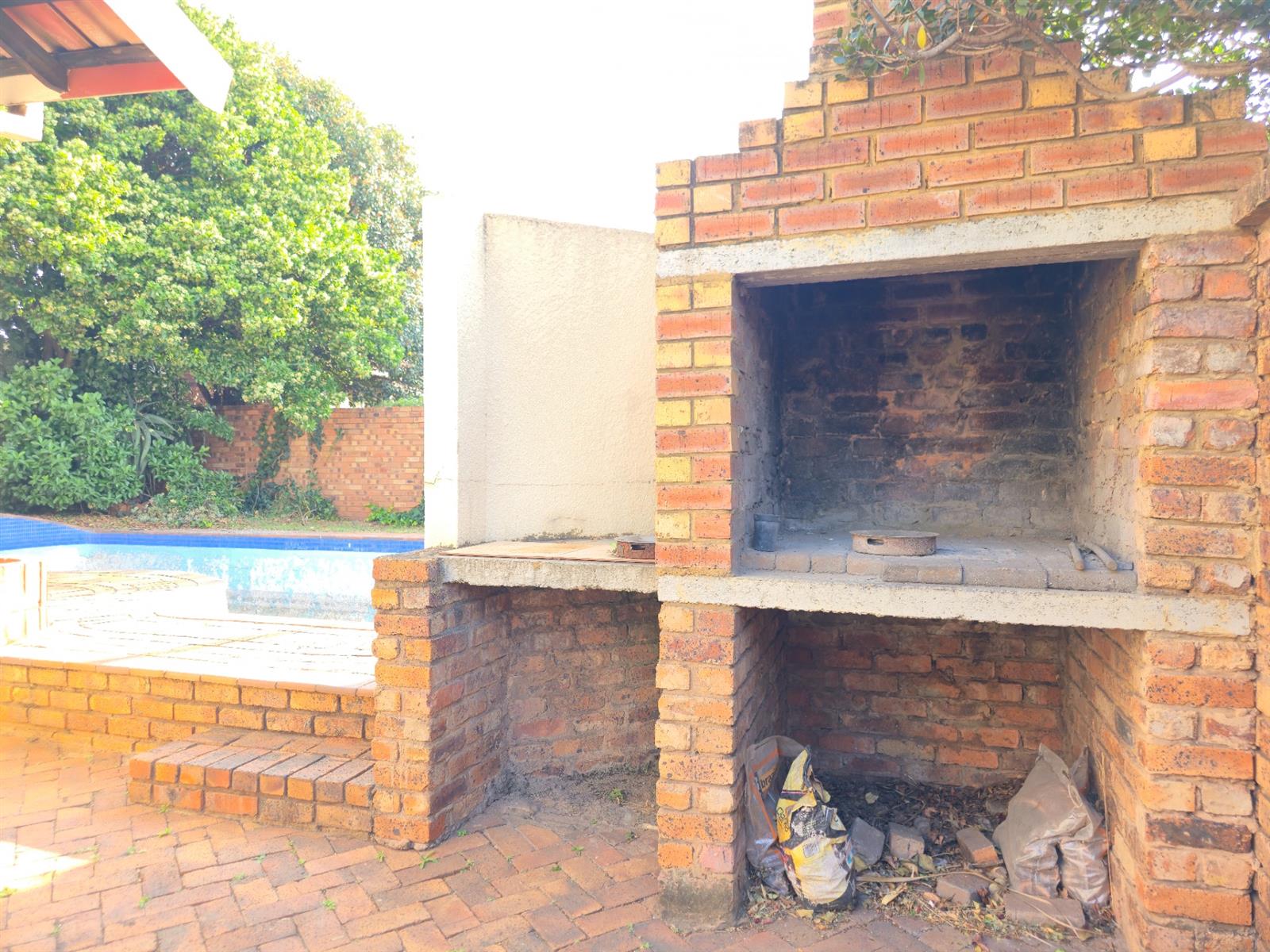 Stepping inside, you are welcomed by a charming entrance hall with an elevated ceiling that immediately creates a sense of openness. From here, the home flows into a spacious open-plan living area, perfectly designed for family gatherings and entertaining. The family lounge and dining room feature a built-in bar—ideal for hosting friends or enjoying evenings at home. Large doors open directly onto the garden, swimming pool, and Lapa area, setting the stage for outdoor fun, relaxed weekends, and memorable celebrations. The pool does require a bit of TLC, but with attention, it can easily be restored into the sparkling centerpiece of your outdoor space.