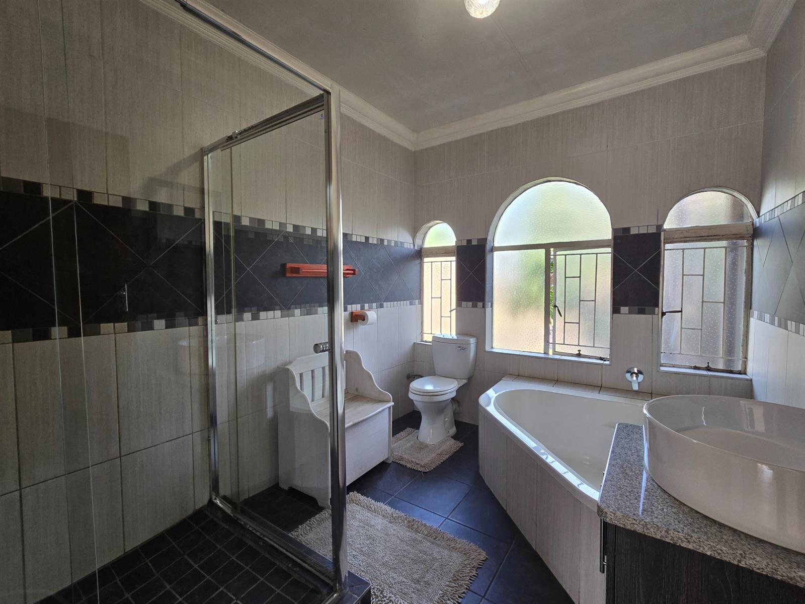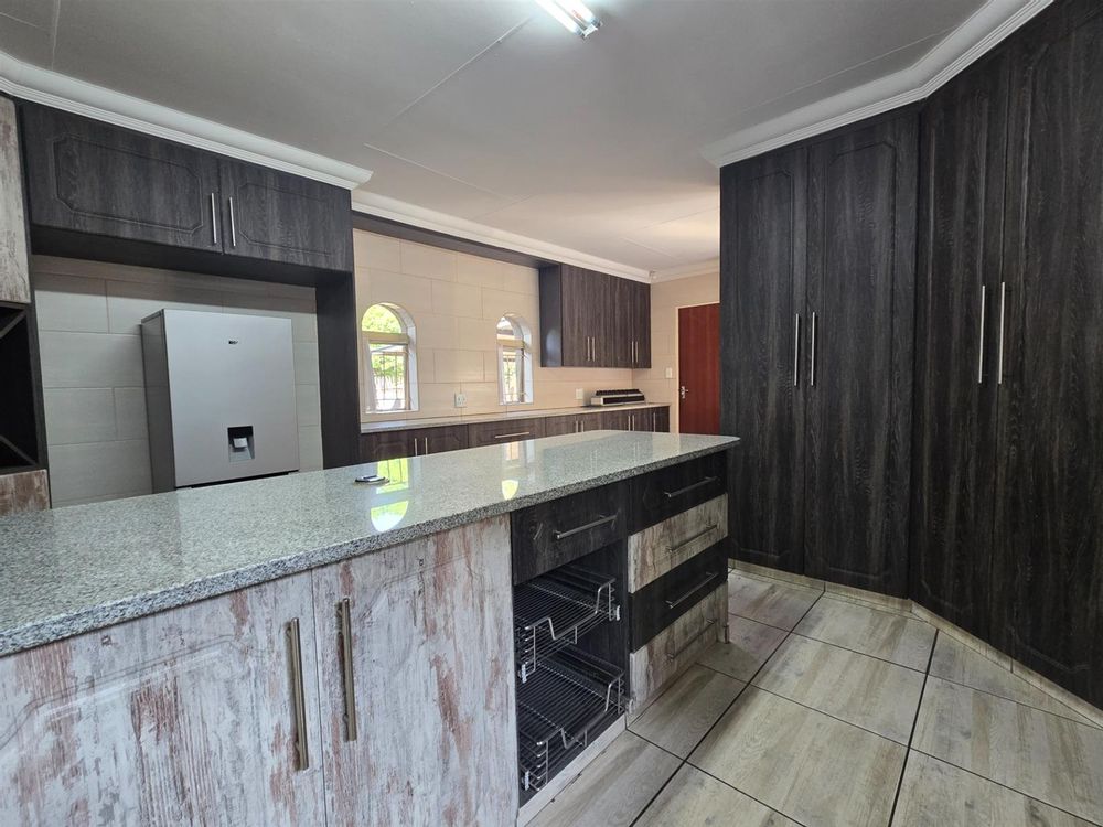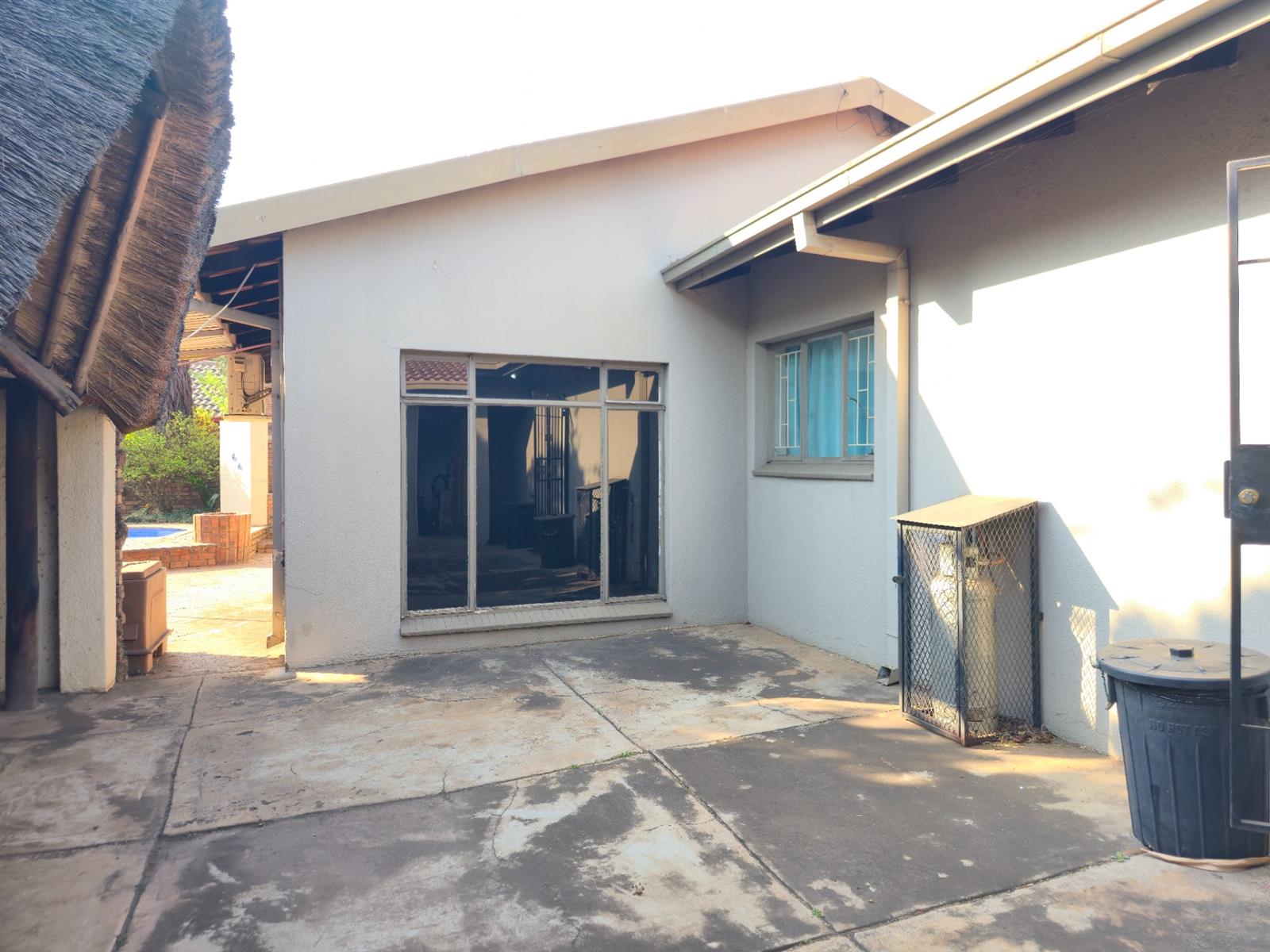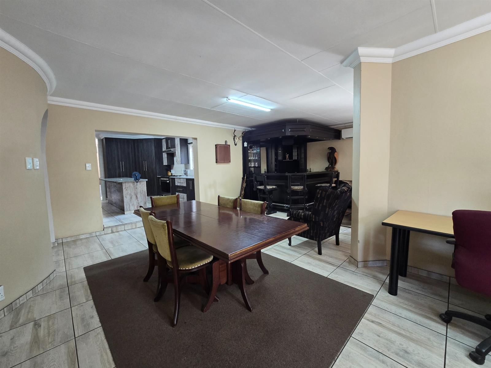 Stepping inside, you are welcomed by a charming entrance hall with an elevated ceiling that immediately creates a sense of openness. From here, the home flows into a spacious open-plan living area, perfectly designed for family gatherings and entertaining. The family lounge and dining room feature a built-in bar—ideal for hosting friends or enjoying evenings at home. Large doors open directly onto the garden, swimming pool, and Lapa area, setting the stage for outdoor fun, relaxed weekends, and memorable celebrations. The pool does require a bit of TLC, but with attention, it can easily be restored into the sparkling centerpiece of your outdoor space.