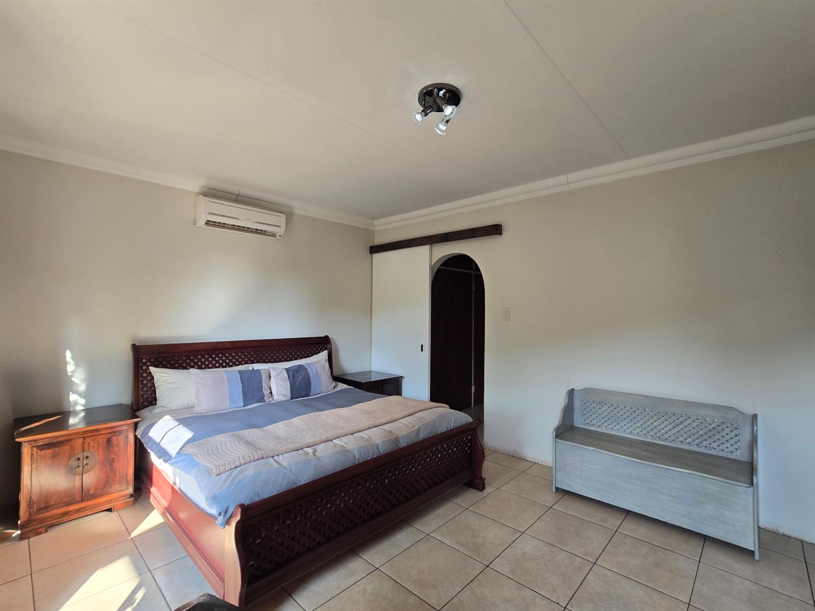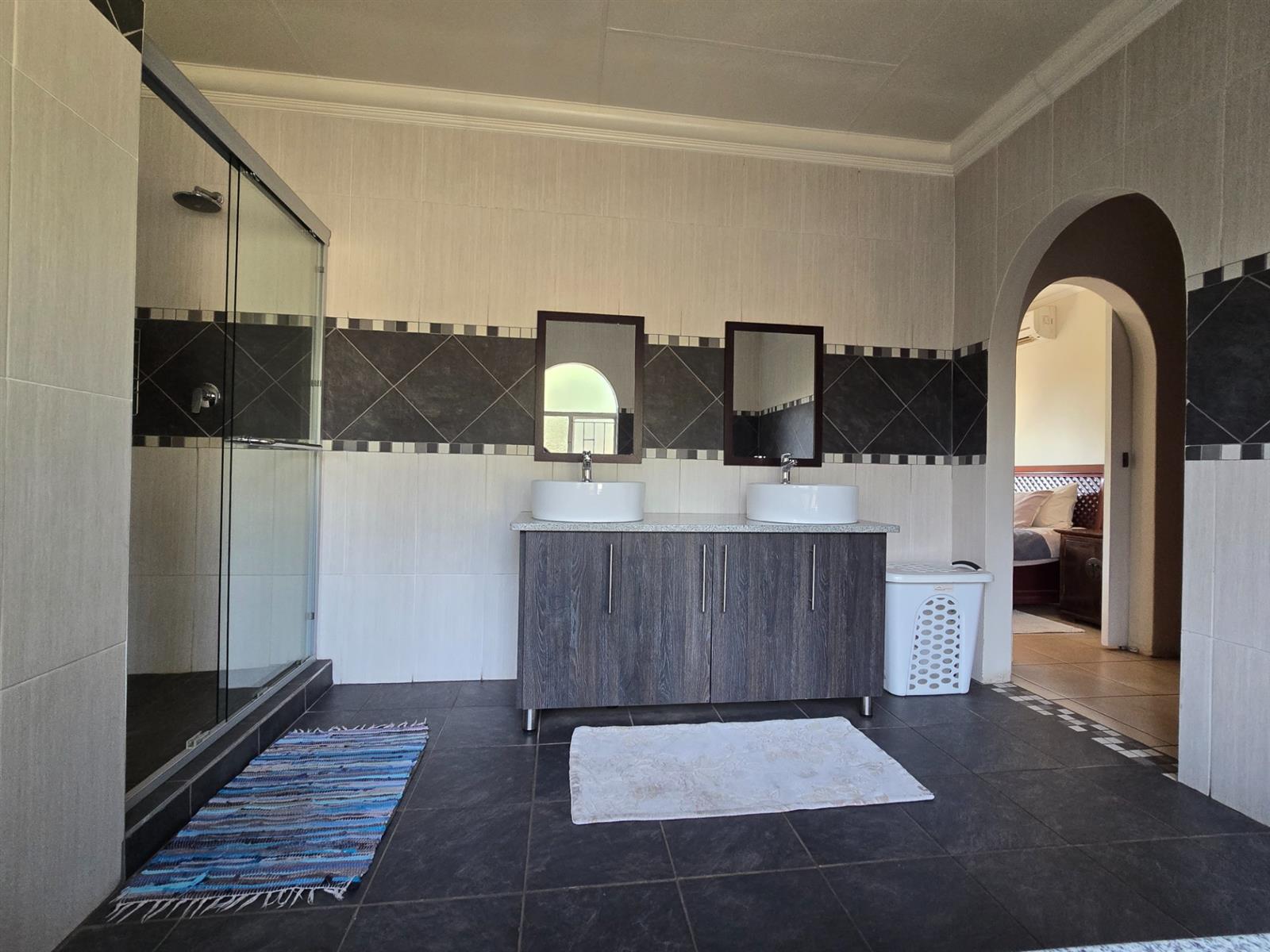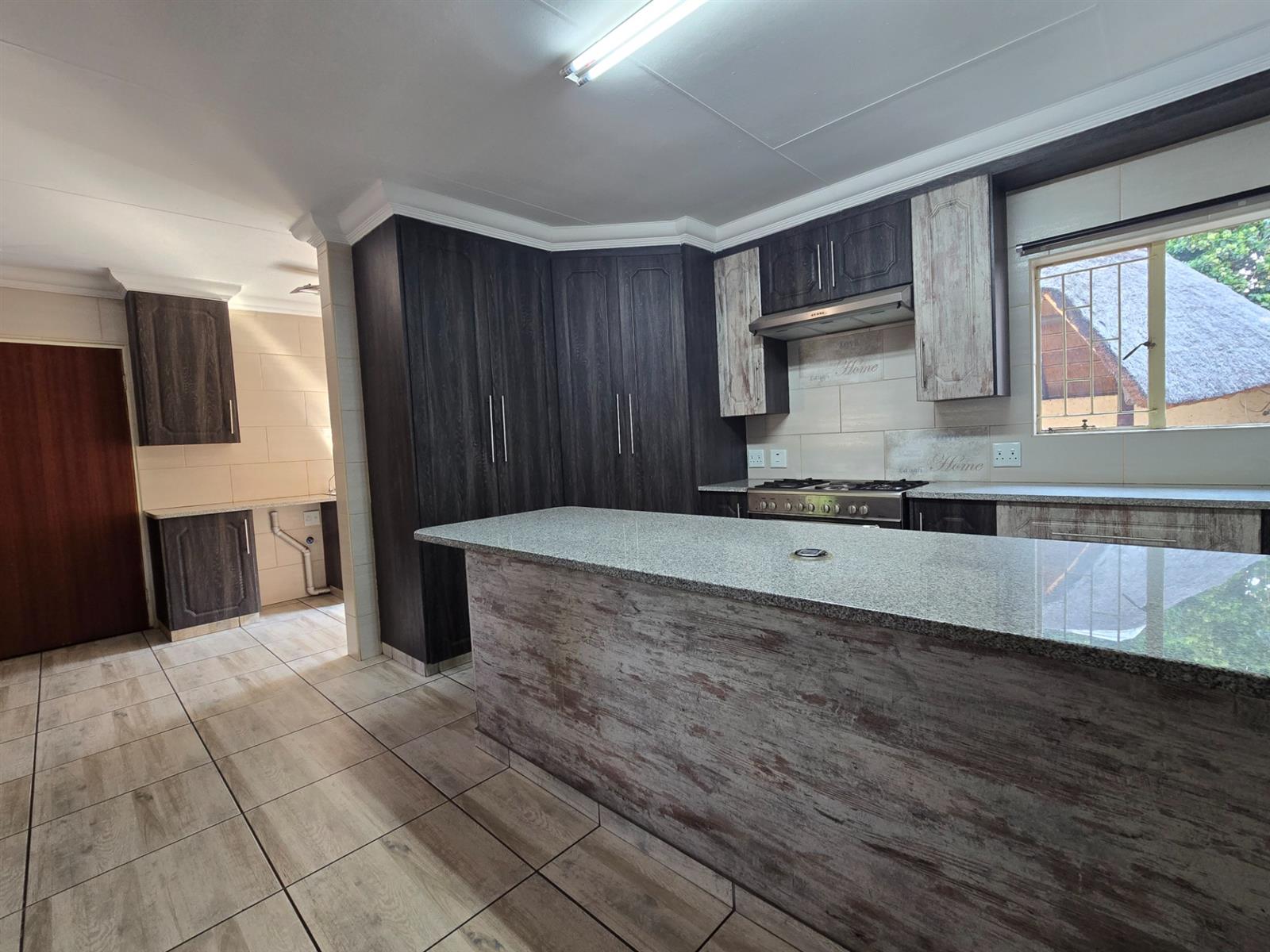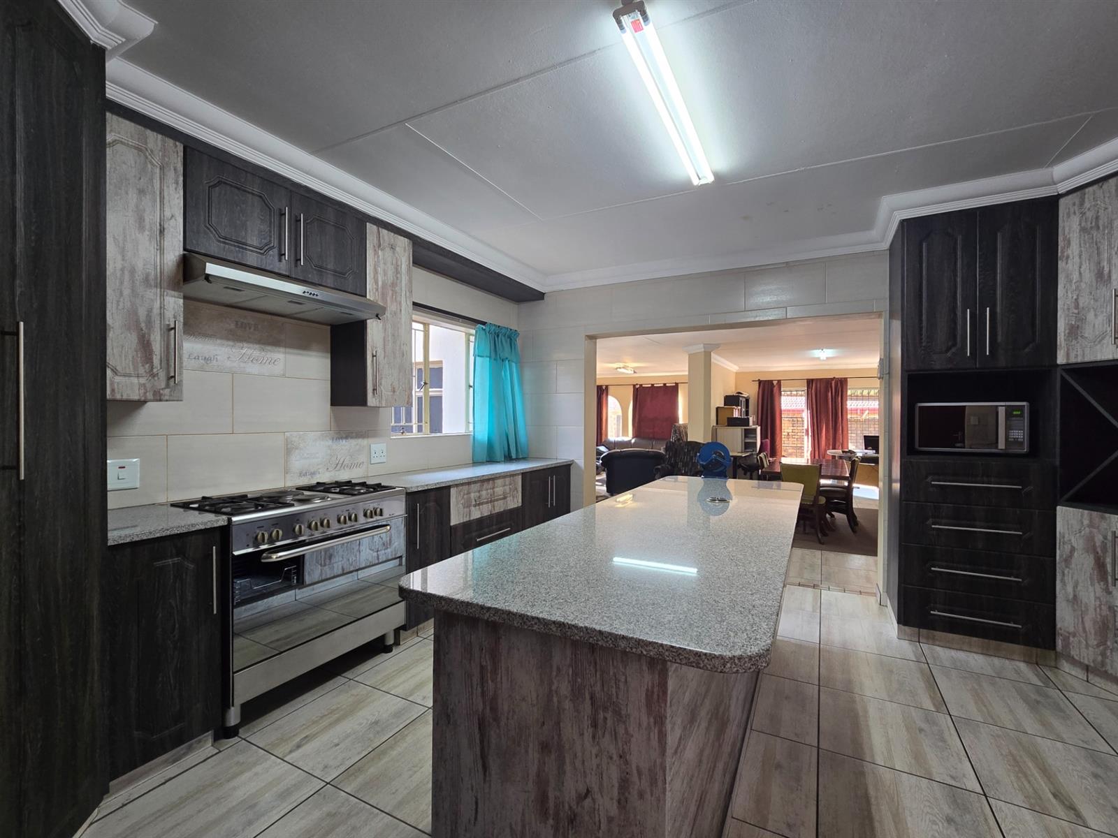 The modern kitchen blends seamlessly with the living space and is fitted with granite countertops, a gas stove, ample cupboard space, and a scullery for added convenience. To further ease daily living, a separate laundry room is located outside. Domestic quarters with their own bathroom are also available, providing comfort and privacy for live-in help or guests.