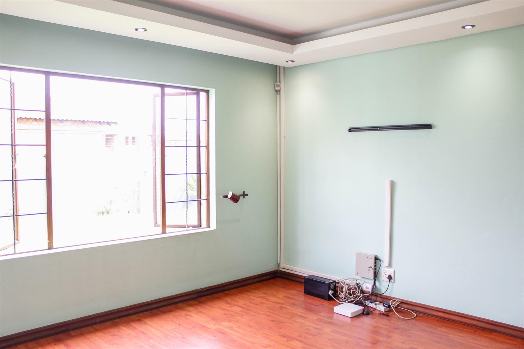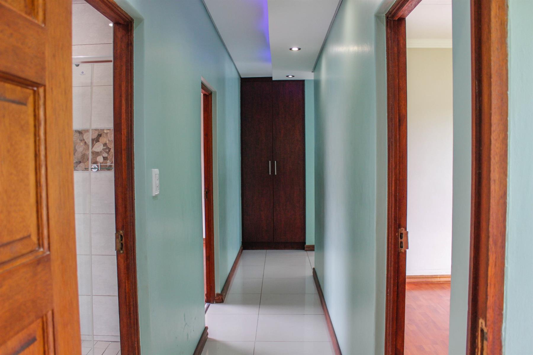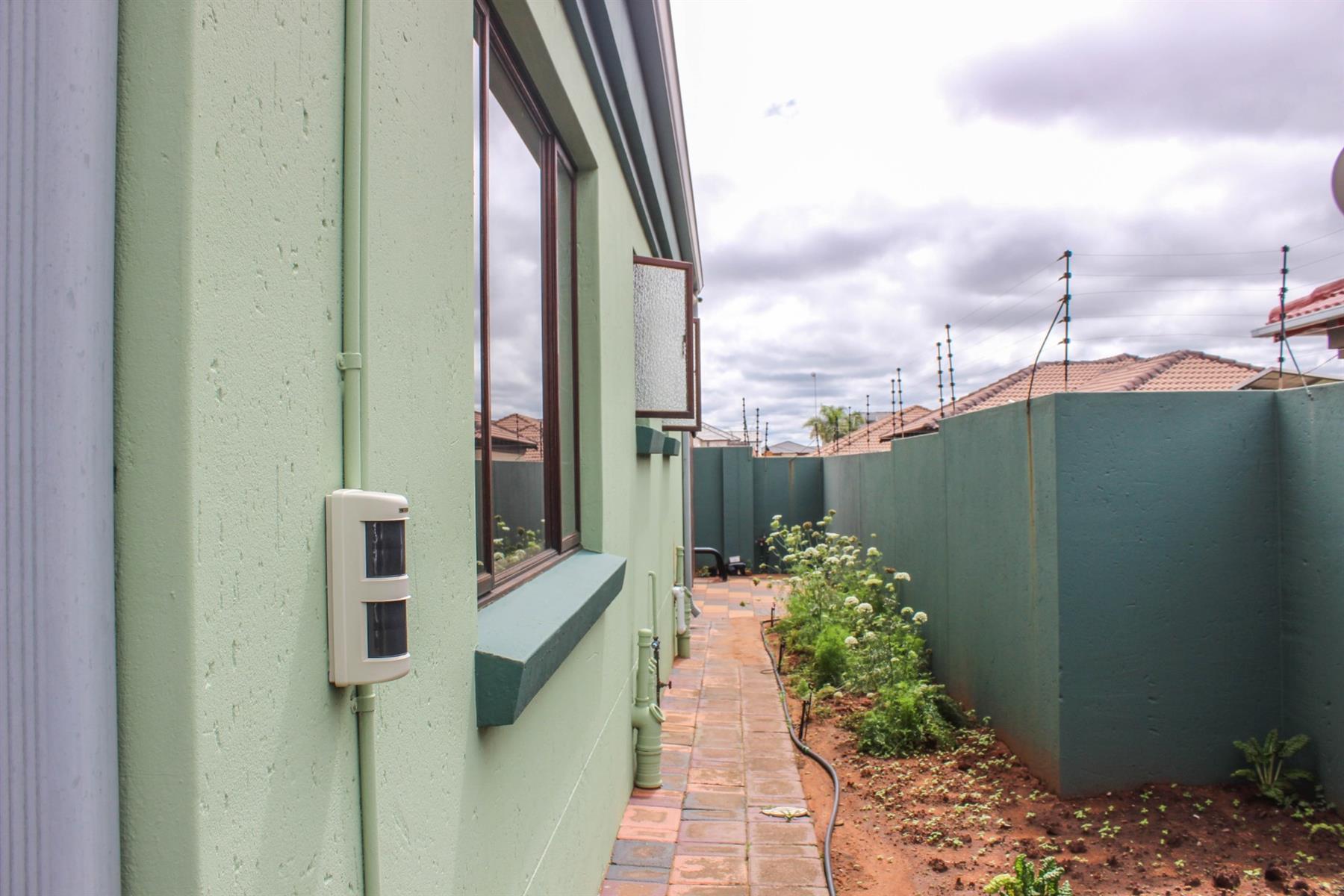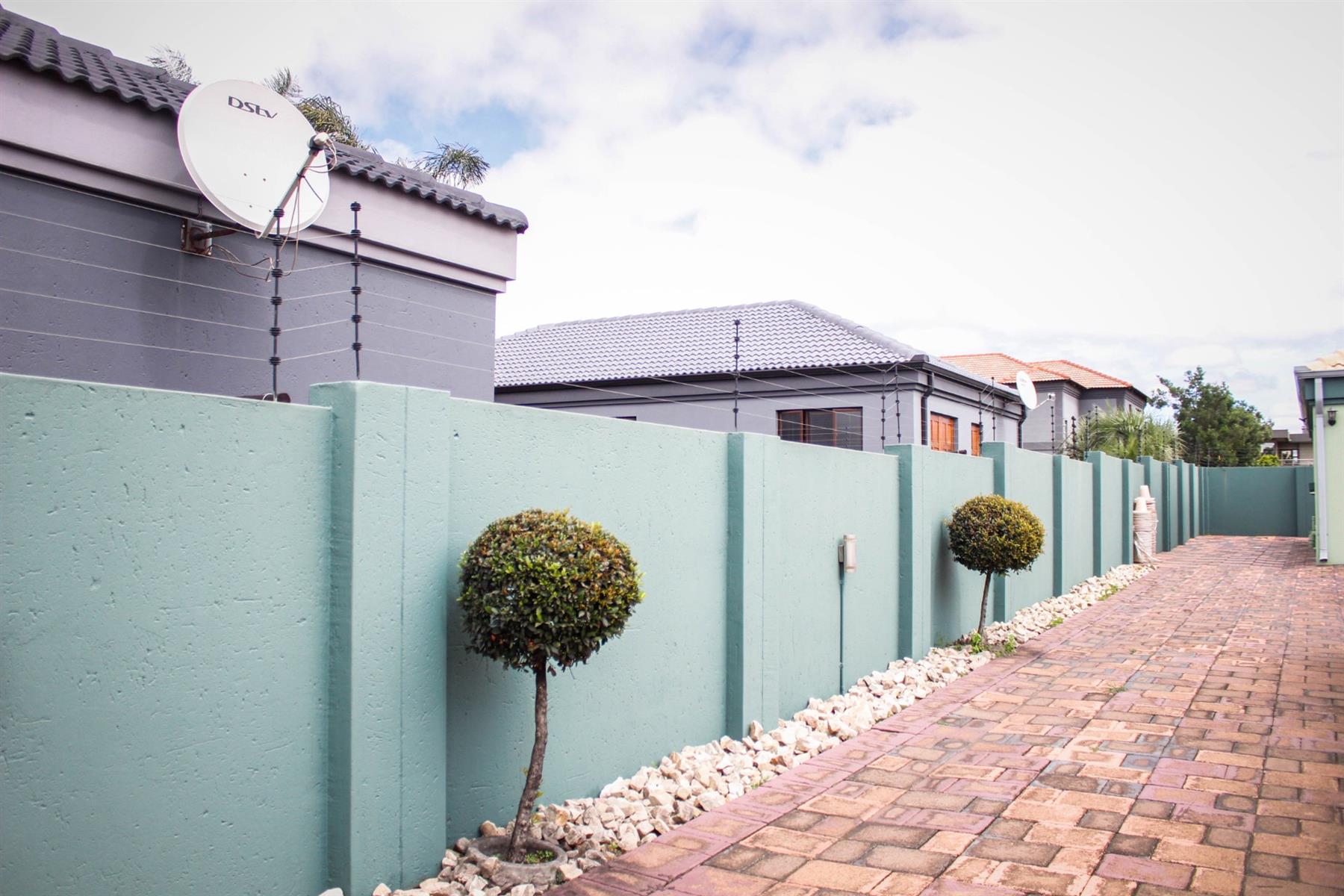 All bedrooms are fitted with elegant laminated flooring, adding warmth and sophistication. Additional features include a Wendy house for extra storage and a double garage with a motorized door for secure parking.