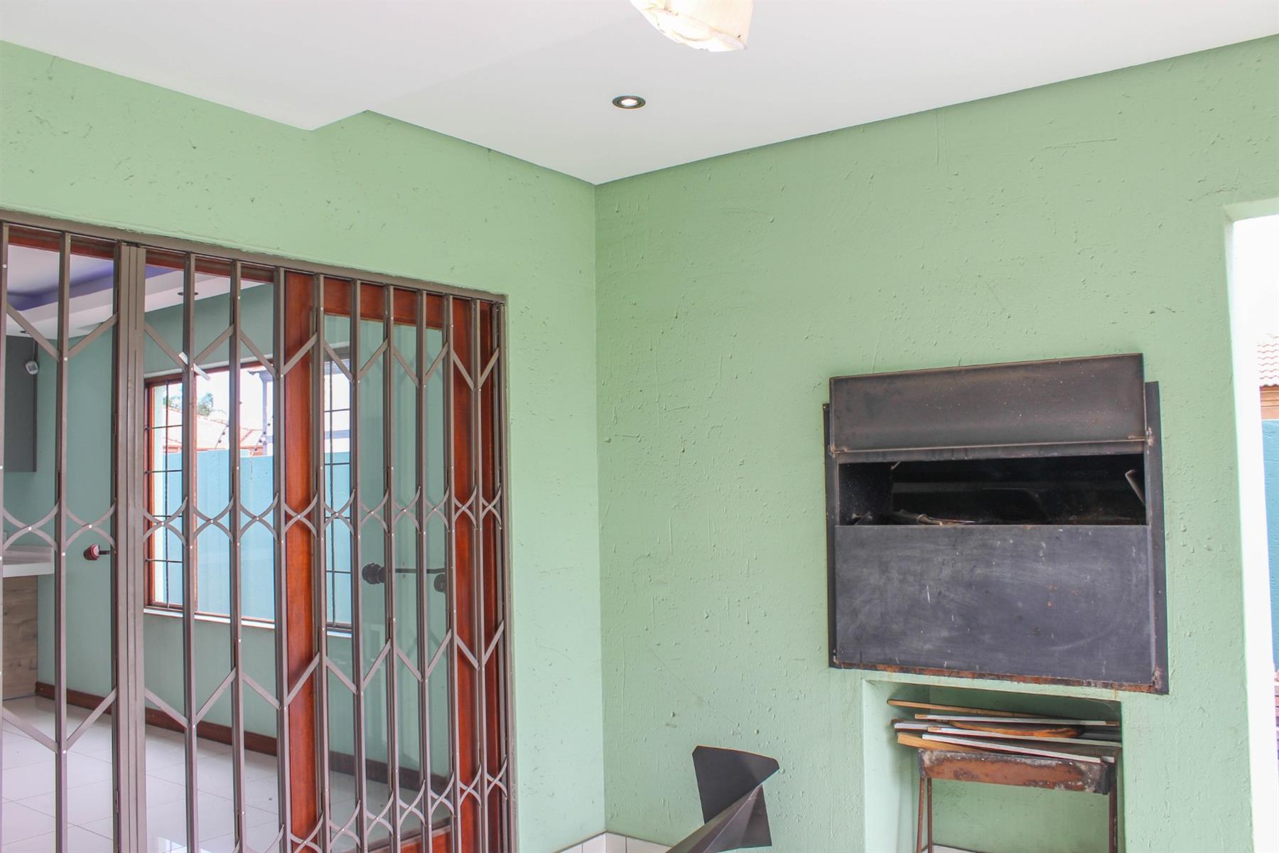 The dining area opens onto a covered patio, complete with a built-in braai, providing the ideal setting for entertaining guests or enjoying a quiet evening outdoors. The adjoining garden area offers a tranquil retreat, perfect for relaxation.