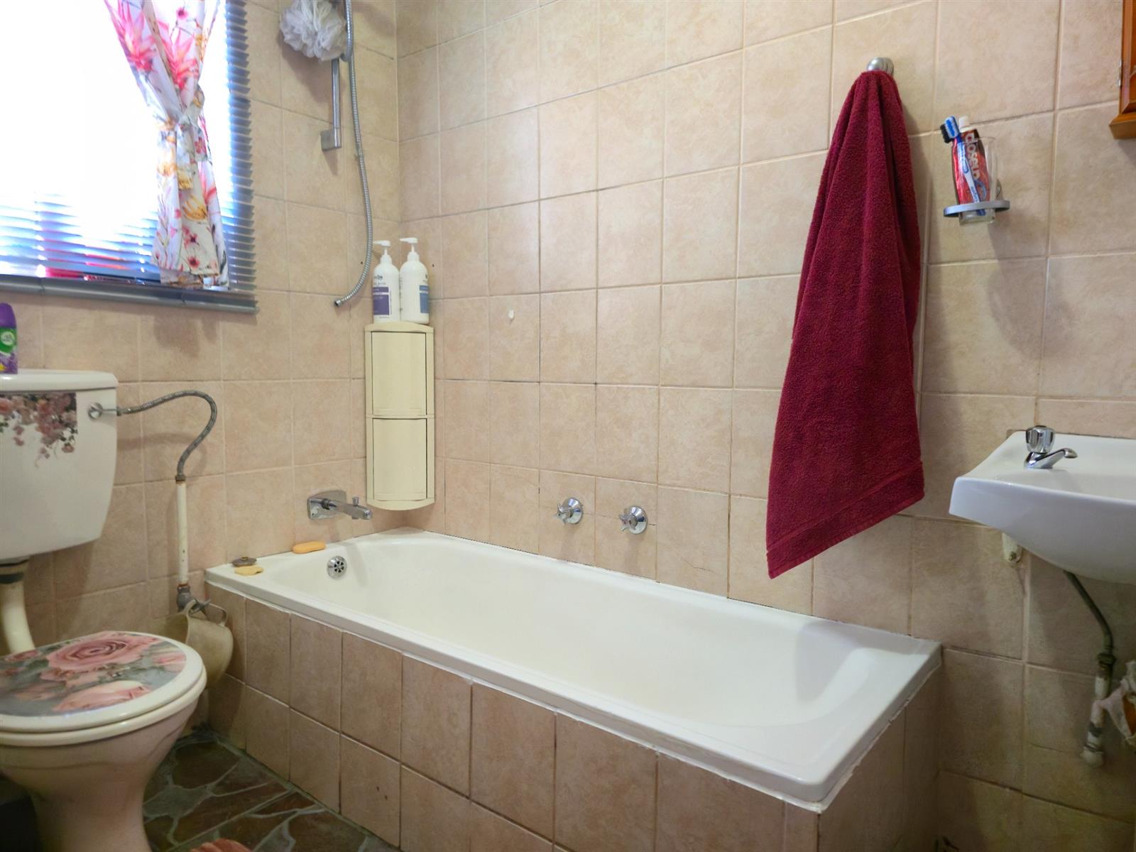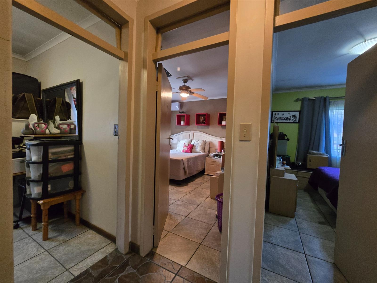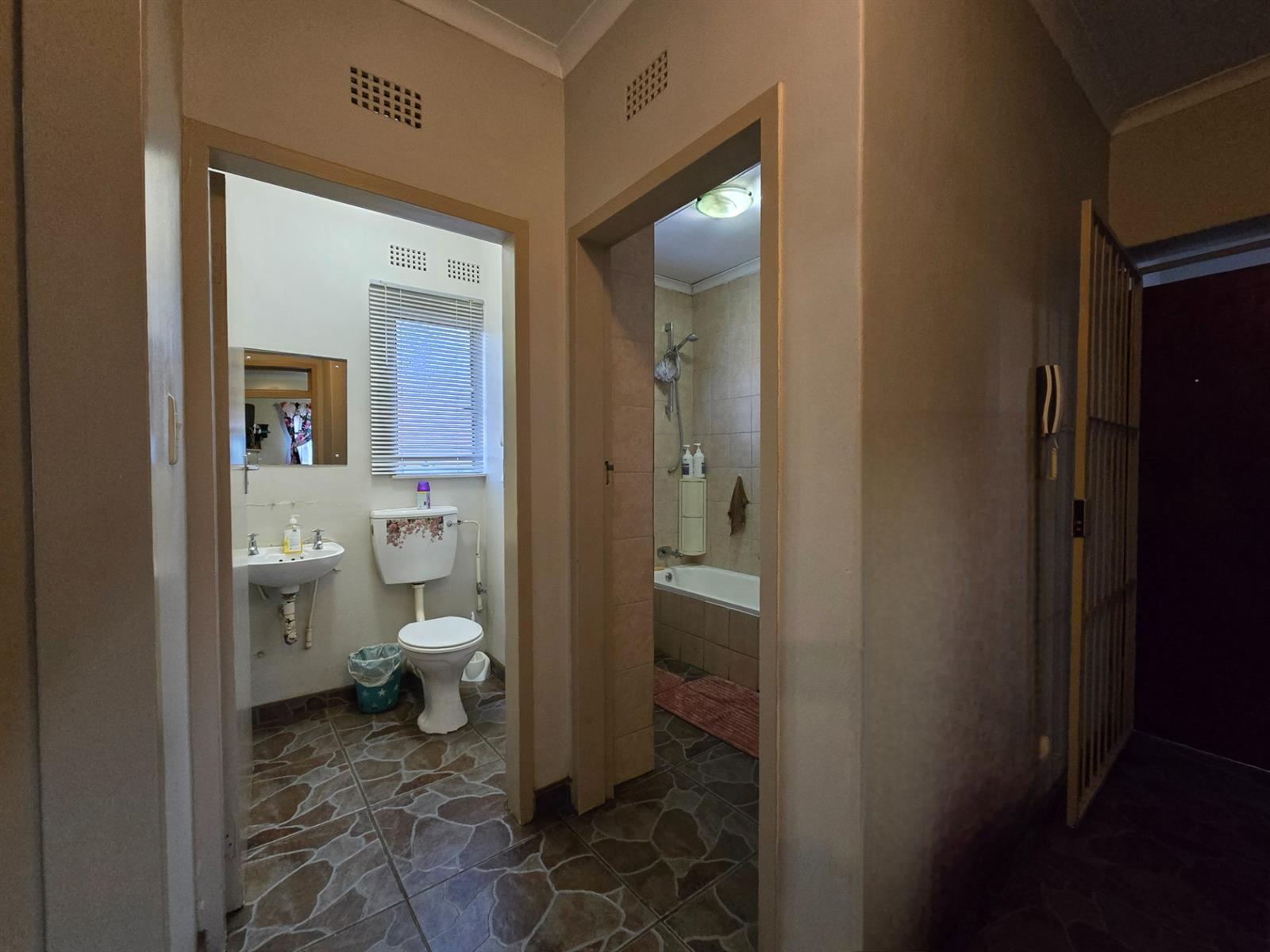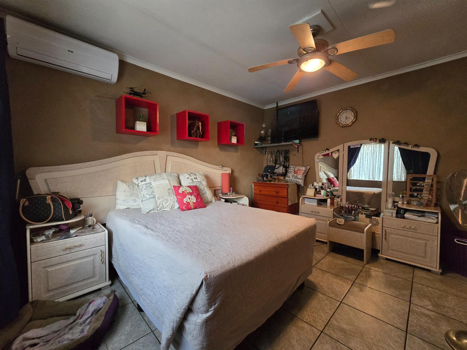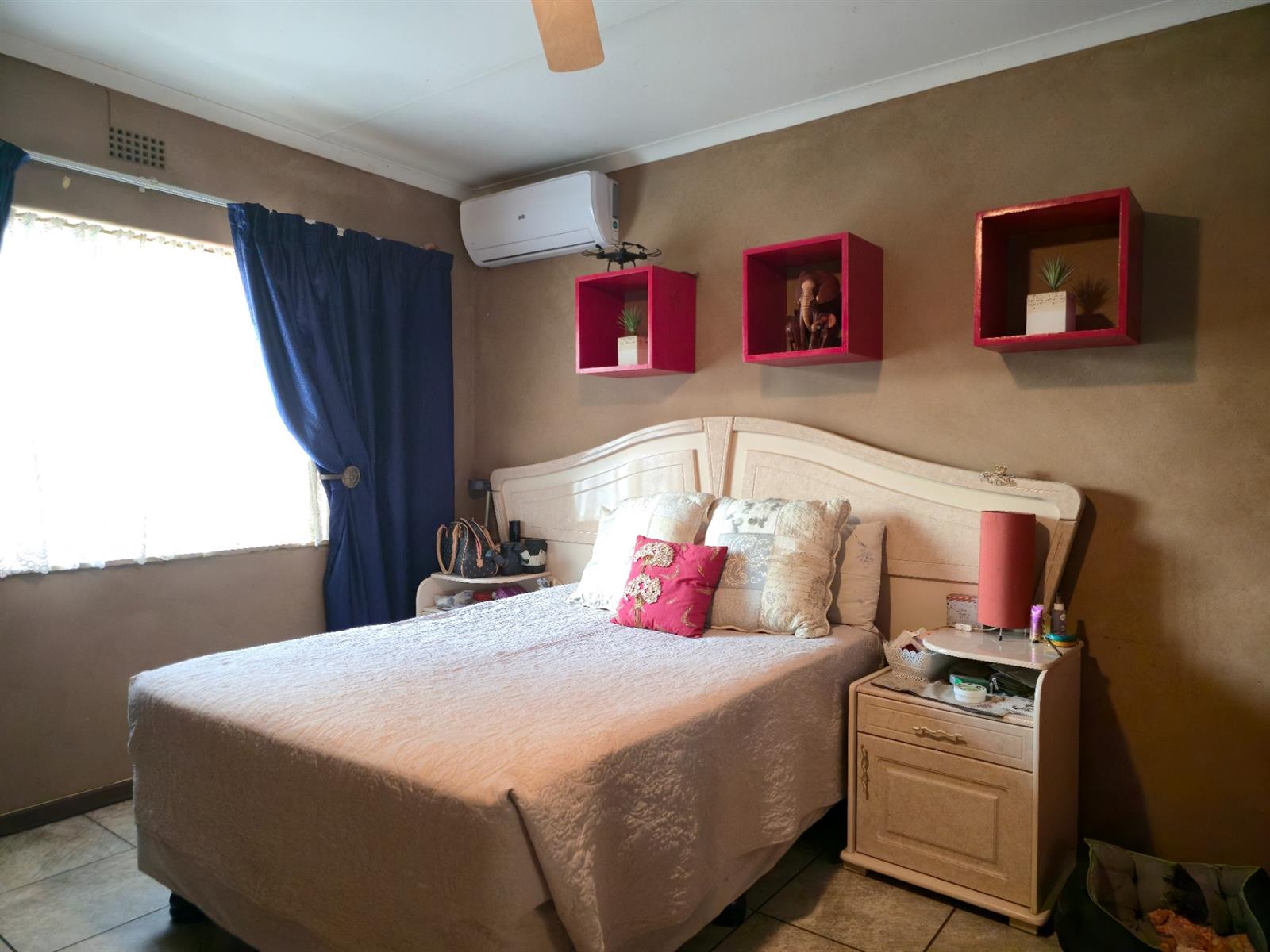 Accommodation includes three well-sized bedrooms, all fitted with built-in closets. The main bedroom offers the added comfort of air-conditioning. A guest cloakroom and a full bathroom with bath, toilet, and basin serve the home with ease.