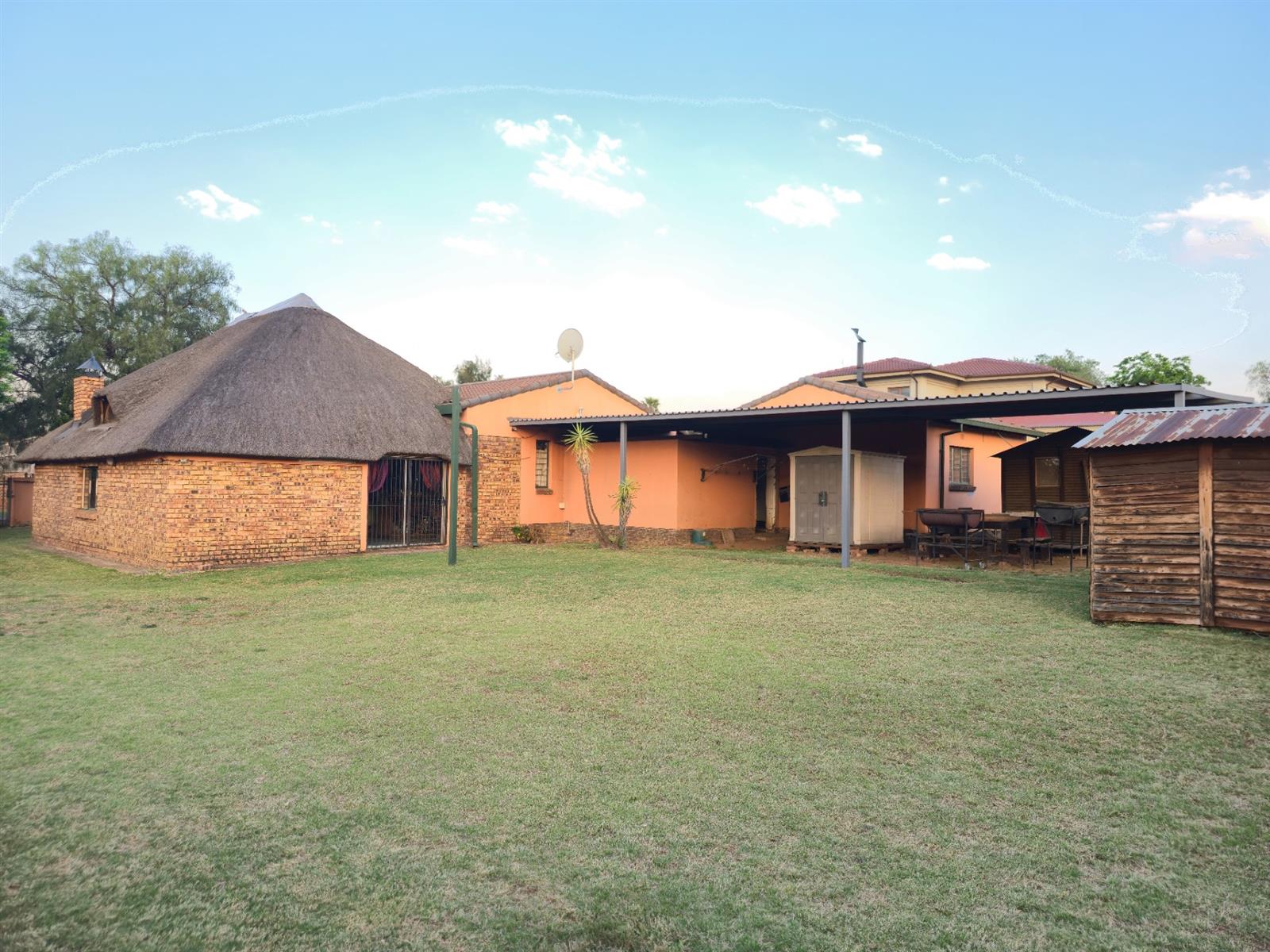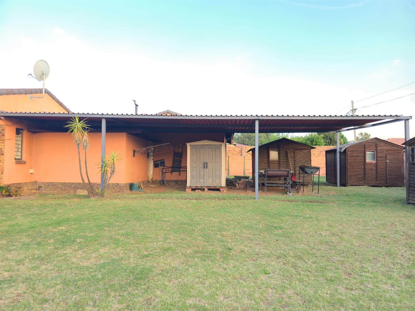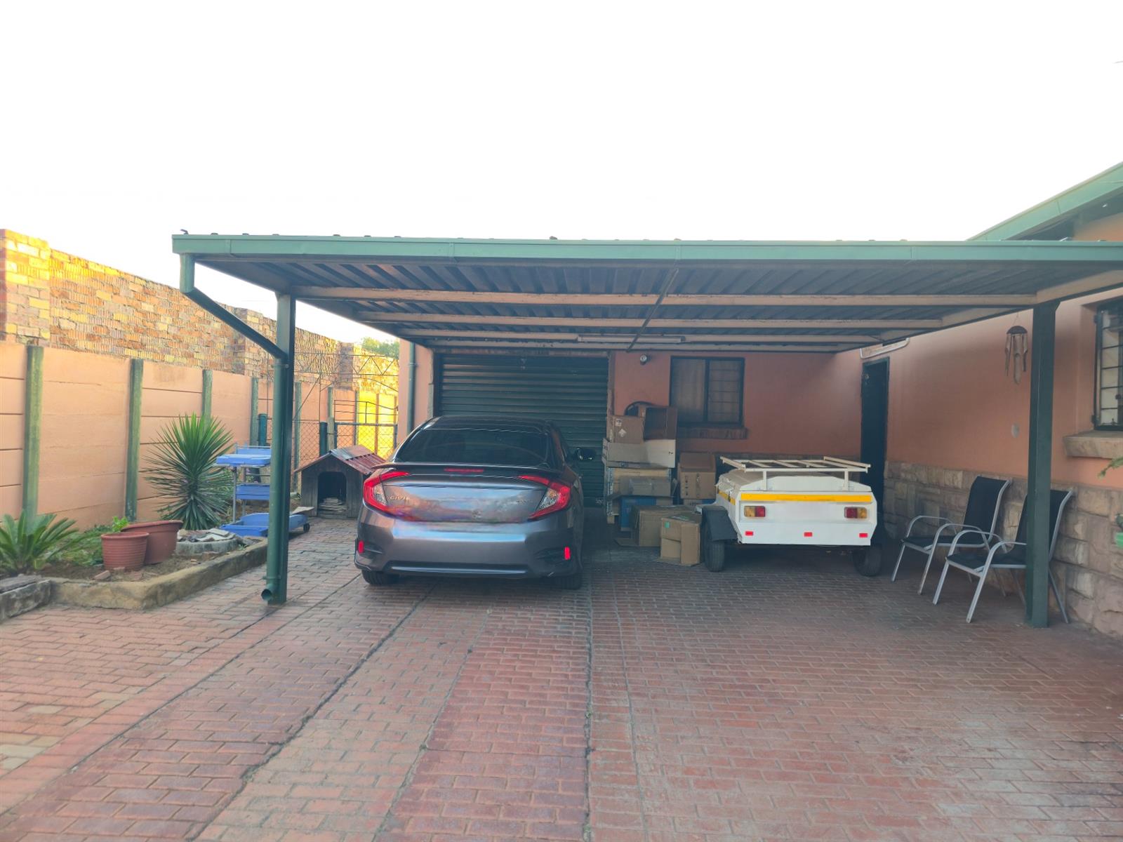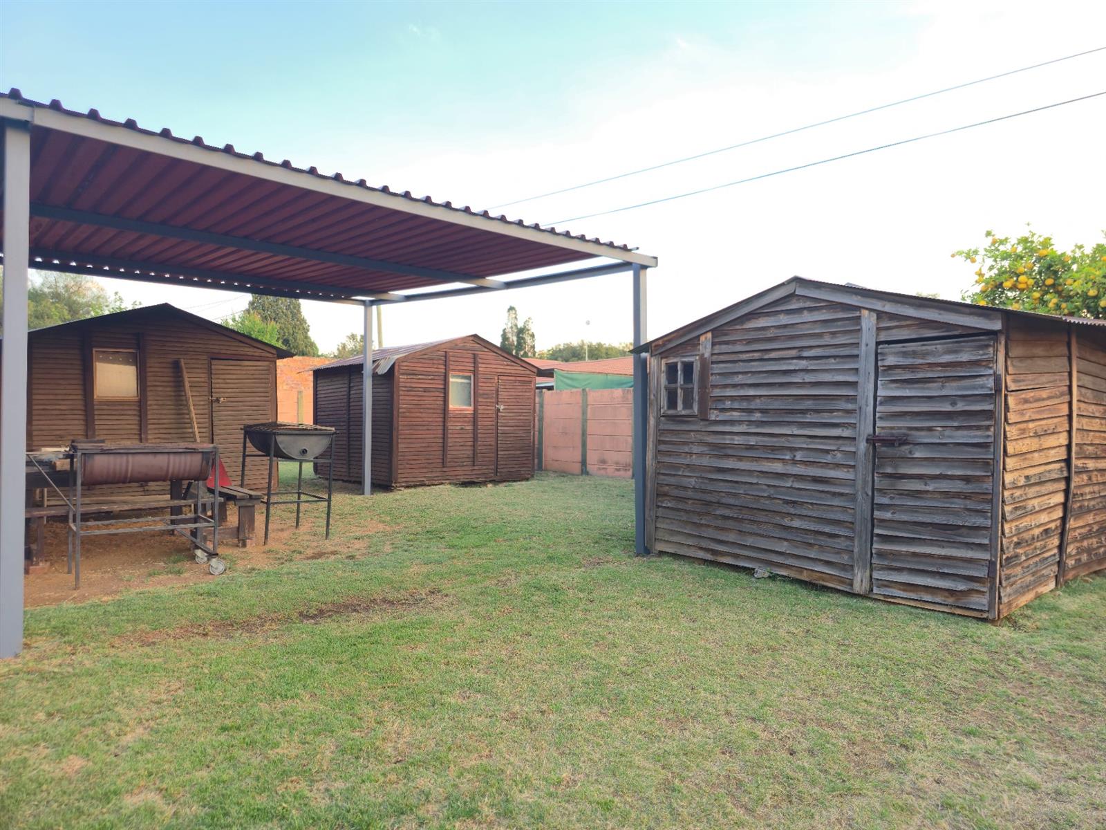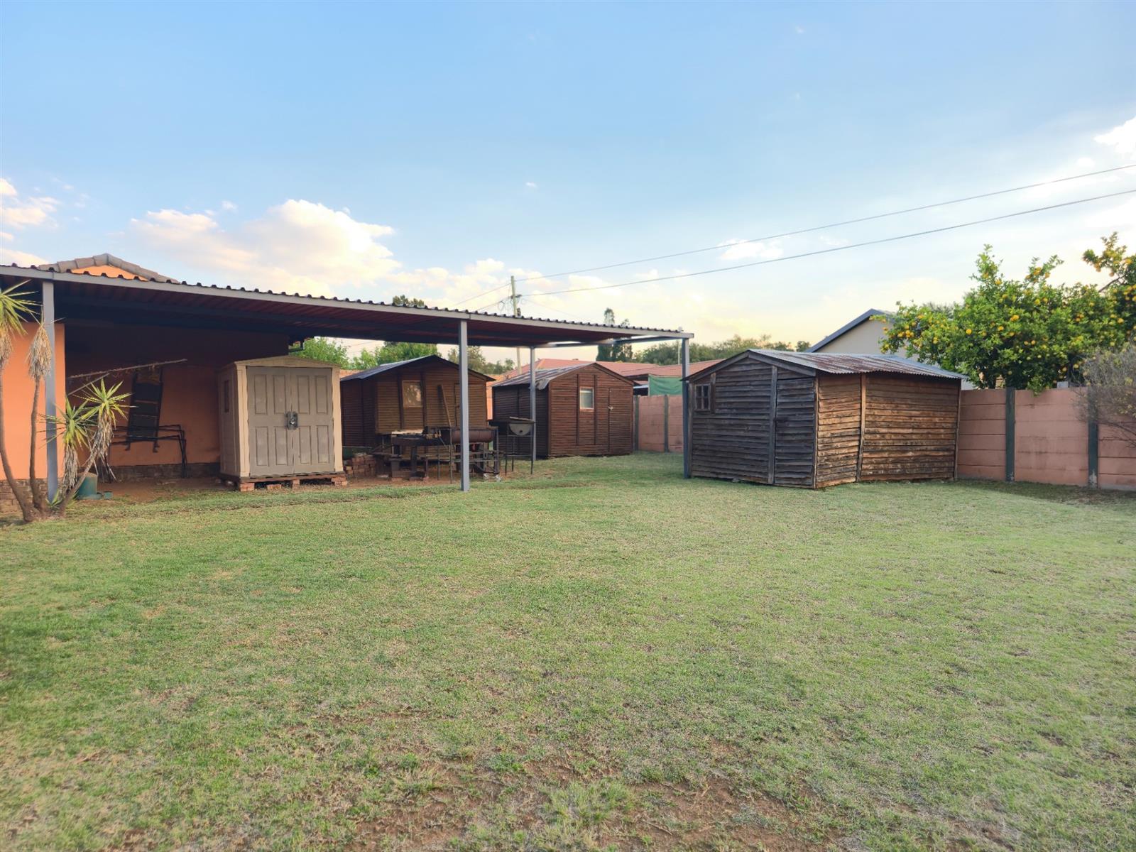 Parking is abundant with two carports (a single and one accommodating up to four vehicles), a single garage, and a double entrance for easy access. The property also features three wendy houses for extra storage, as well as an alarm and cameras for peace of mind.