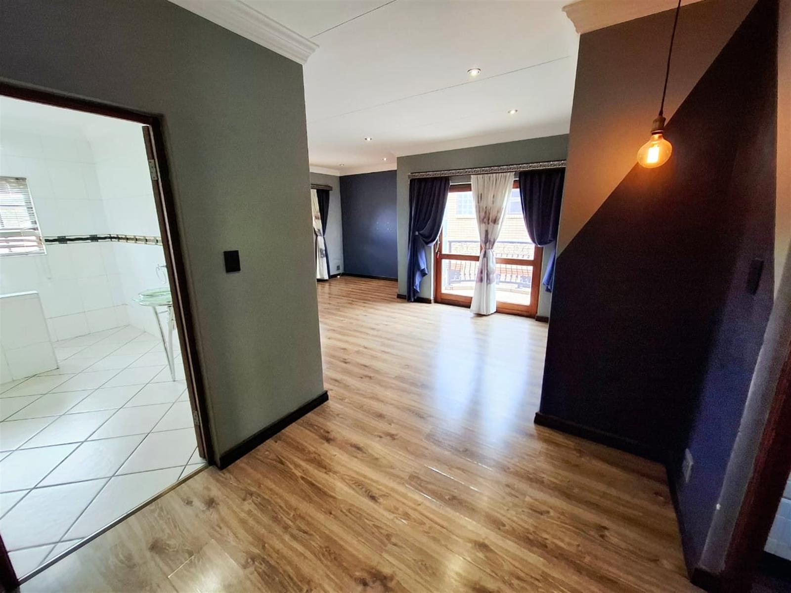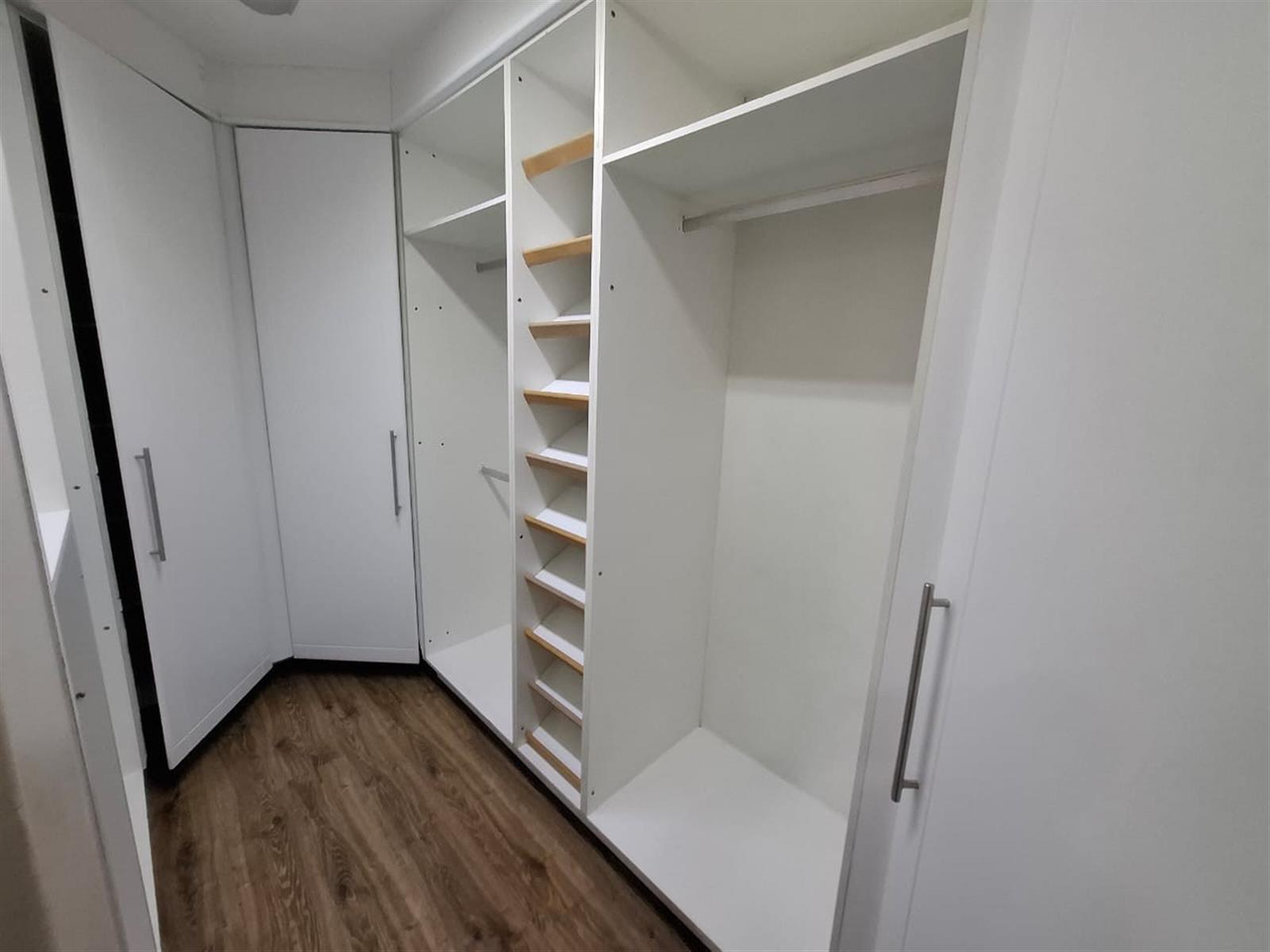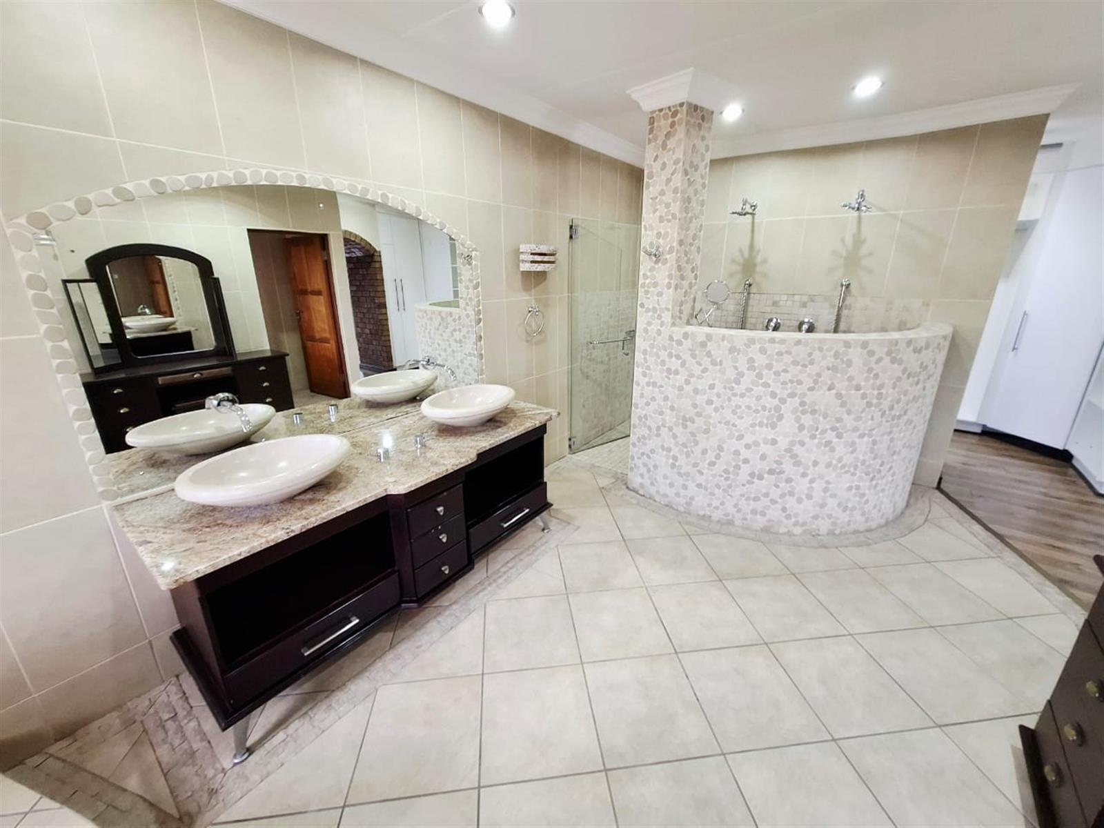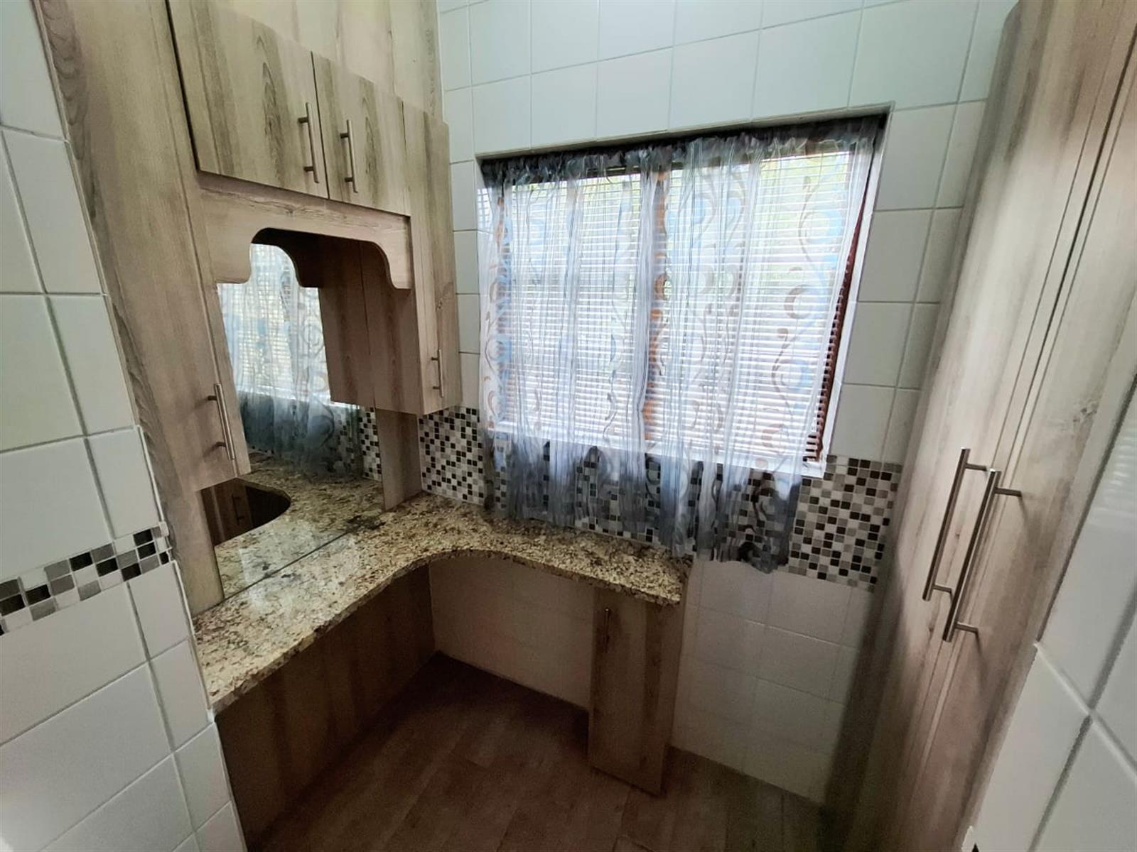 The flatlet, which may be connected to or separate from the main residence, is a self-contained living space designed with the same commitment to comfort and style. It offers an open-plan lounge and kitchen, fitted with light wood-look cupboards and marble countertops, creating a fresh and functional design. The bedroom includes double walk-in closets and sliding doors that open to the patio, welcoming natural light and outdoor flow. The bathroom, situated off the living area, features a shower and double vanities, ensuring both convenience and luxury. Perfect for guests, extended family, or live-in staff, this flat provides independence while maintaining harmony with the main home.
