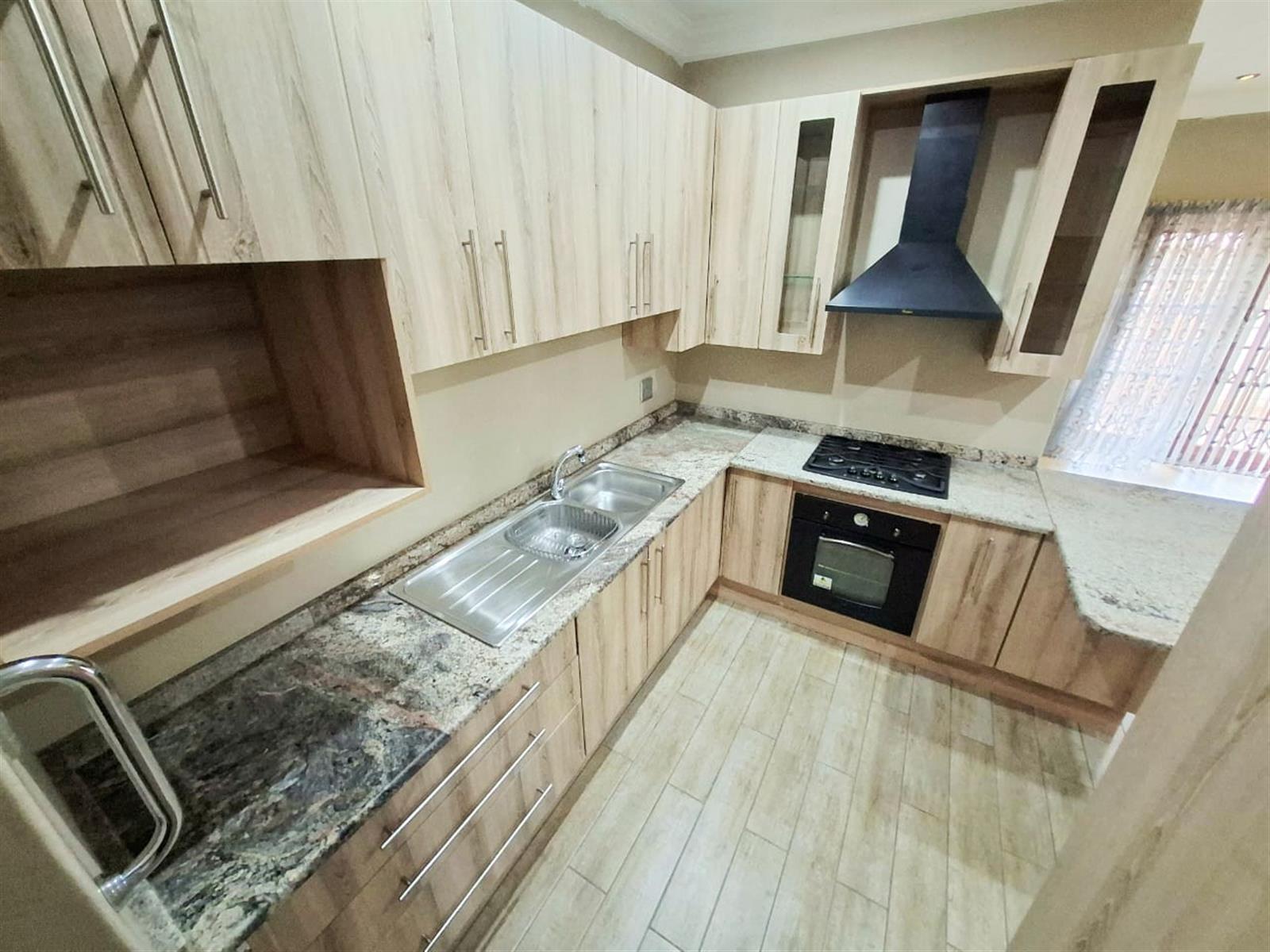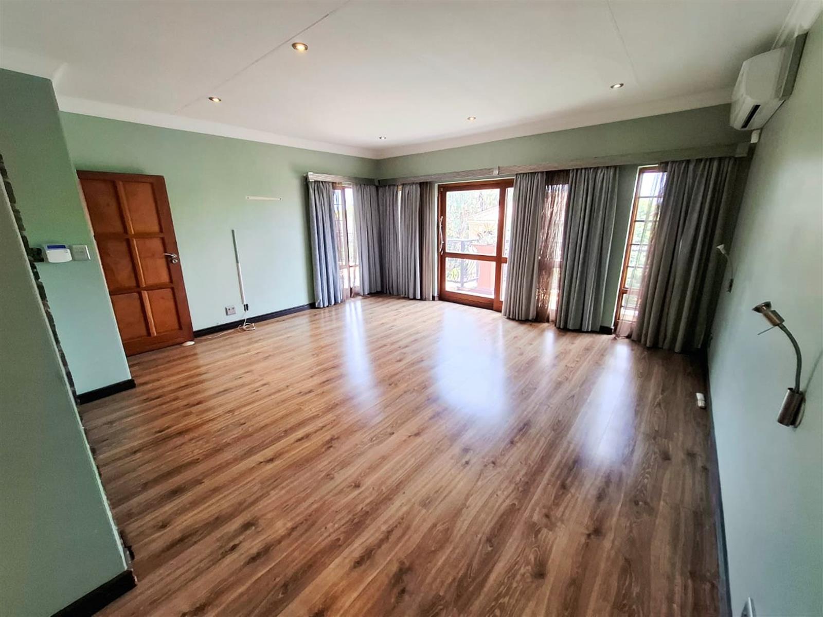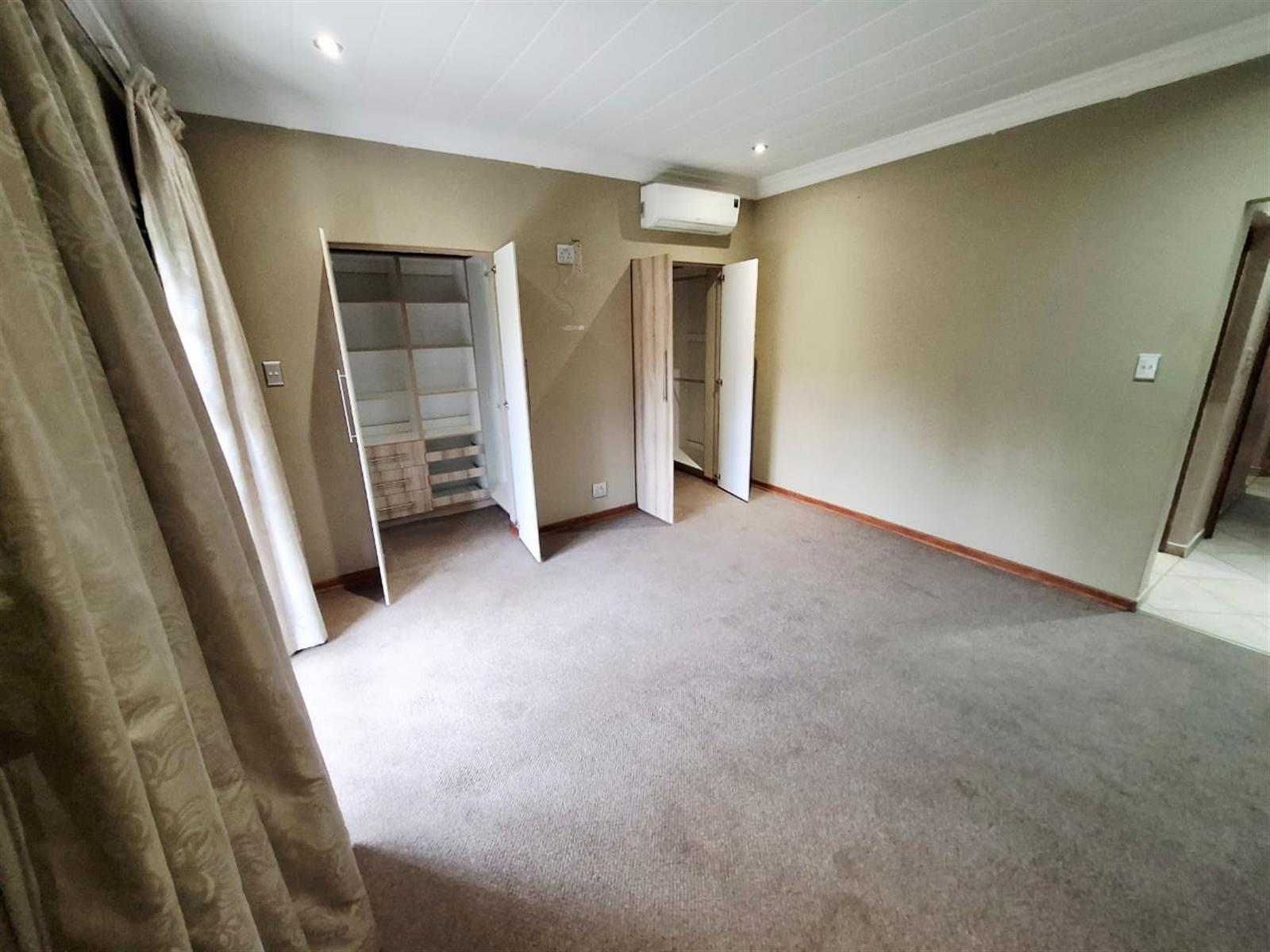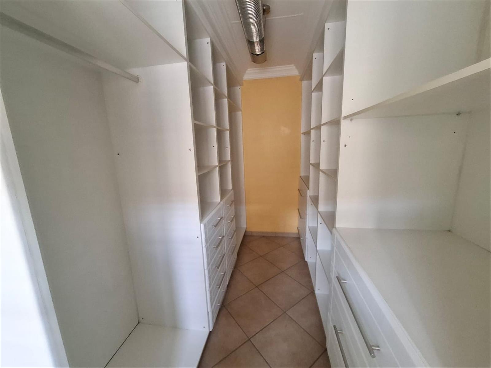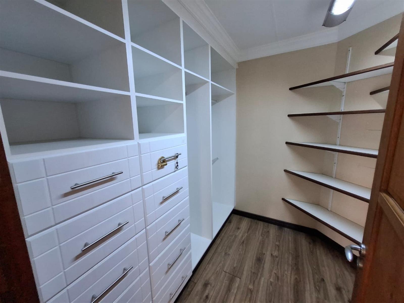The flatlet, which may be connected to or separate from the main residence, is a self-contained living space designed with the same commitment to comfort and style. It offers an open-plan lounge and kitchen, fitted with light wood-look cupboards and marble countertops, creating a fresh and functional design. The bedroom includes double walk-in closets and sliding doors that open to the patio, welcoming natural light and outdoor flow. The bathroom, situated off the living area, features a shower and double vanities, ensuring both convenience and luxury. Perfect for guests, extended family, or live-in staff, this flat provides independence while maintaining harmony with the main home.