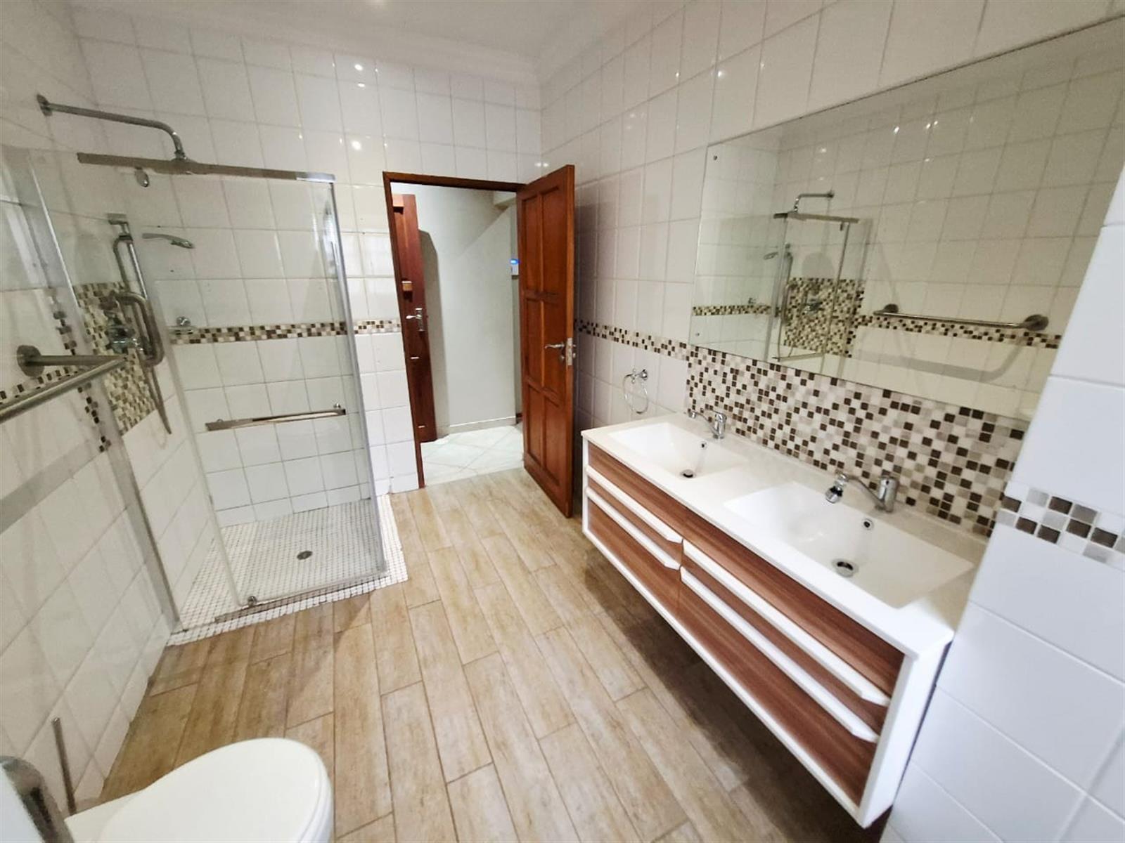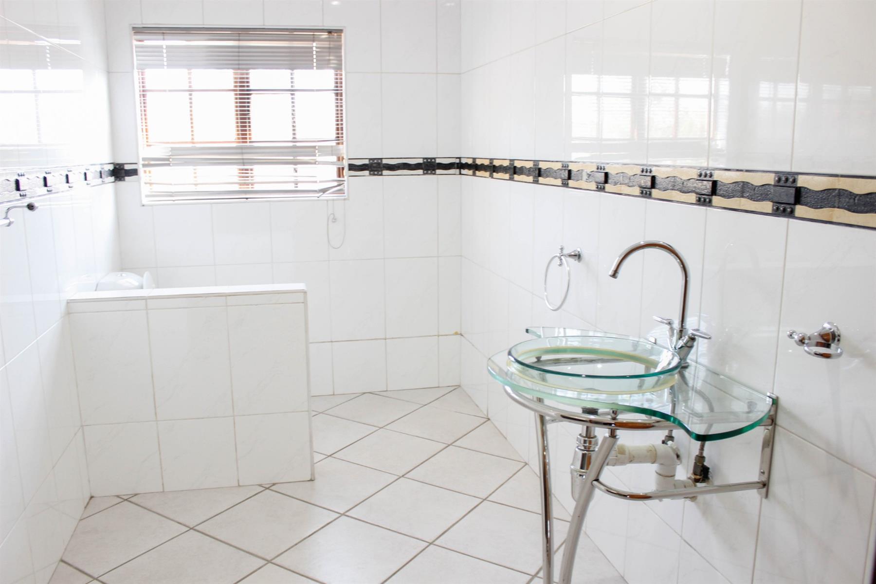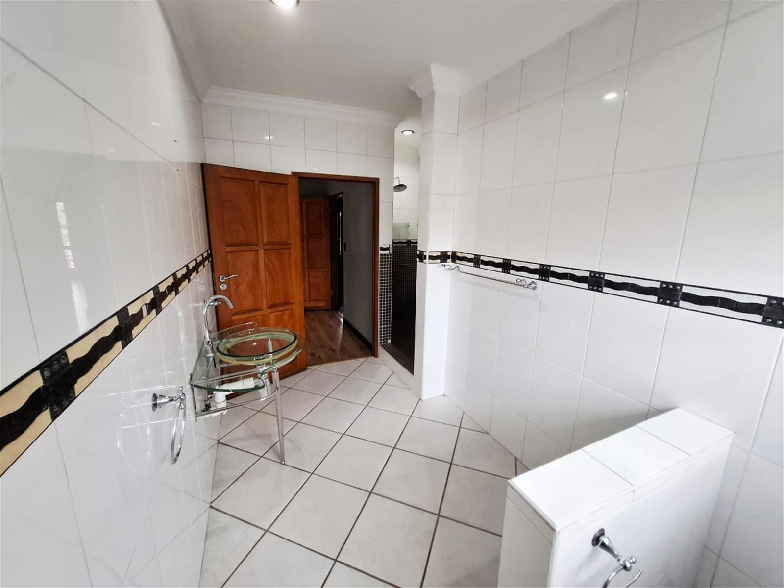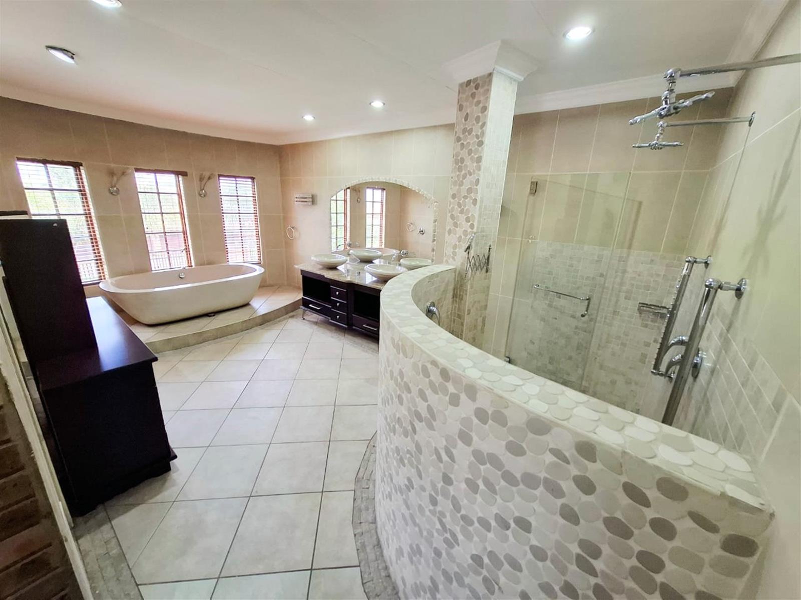The flatlet, which may be connected to or separate from the main residence, is a self-contained living space designed with the same commitment to comfort and style. It offers an open-plan lounge and kitchen, fitted with light wood-look cupboards and marble countertops, creating a fresh and functional design. The bedroom includes double walk-in closets and sliding doors that open to the patio, welcoming natural light and outdoor flow. The bathroom, situated off the living area, features a shower and double vanities, ensuring both convenience and luxury. Perfect for guests, extended family, or live-in staff, this flat provides independence while maintaining harmony with the main home.