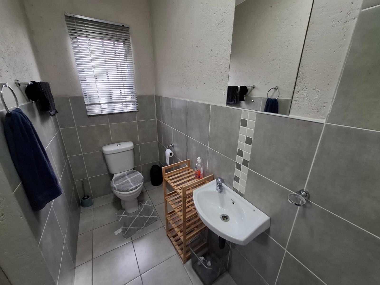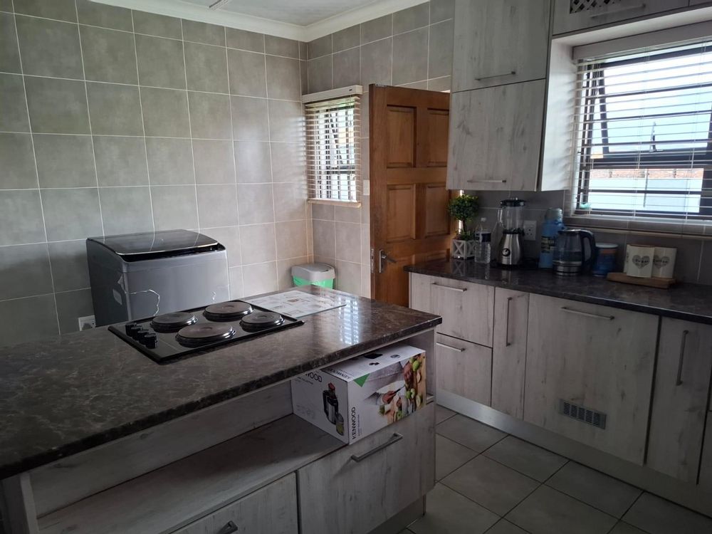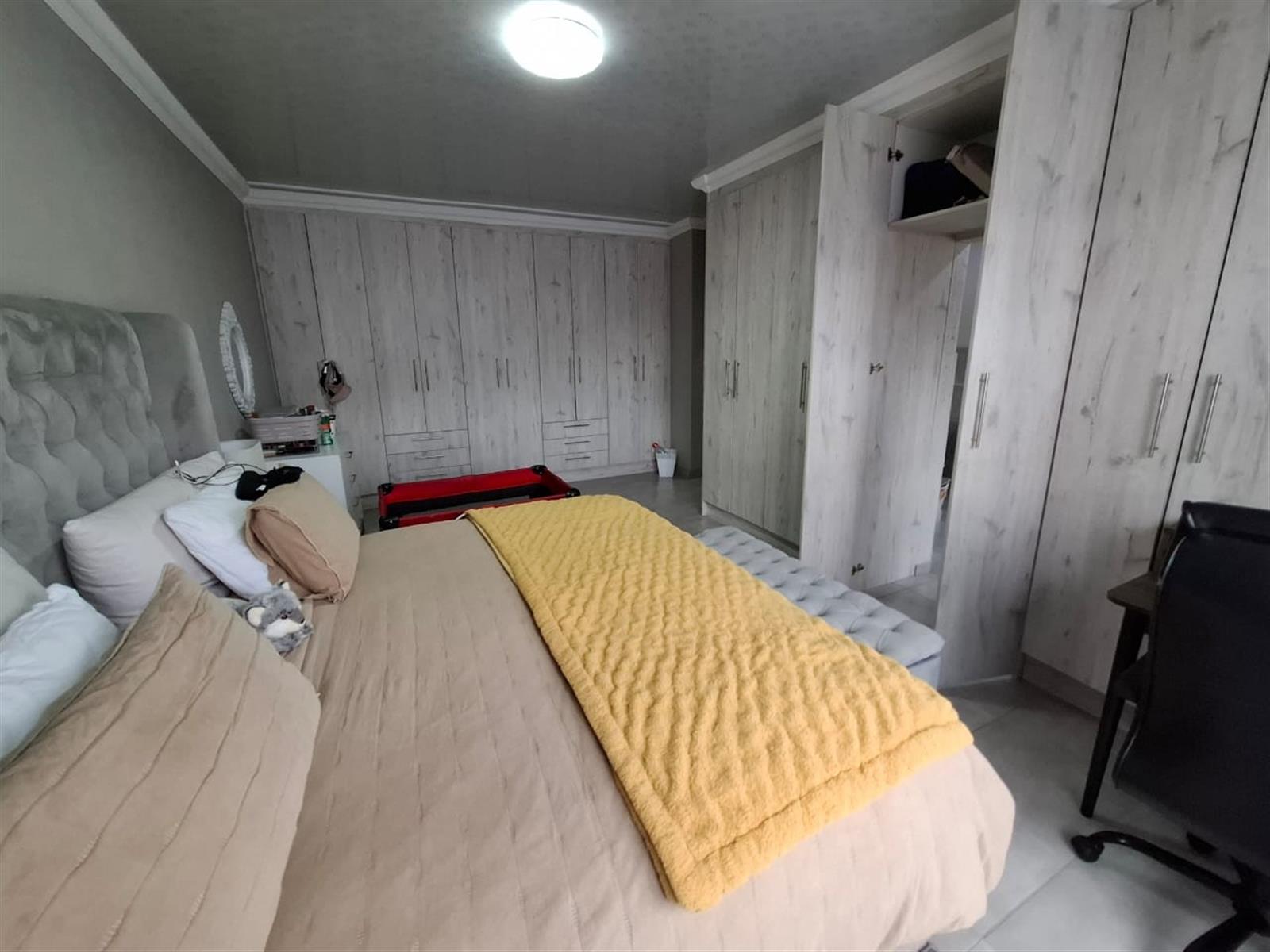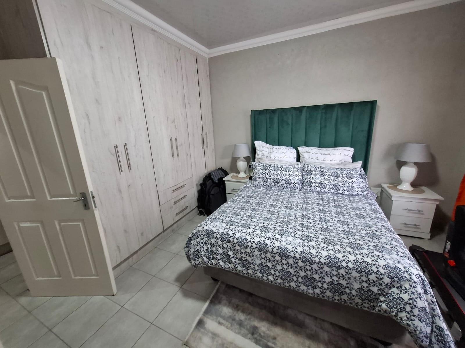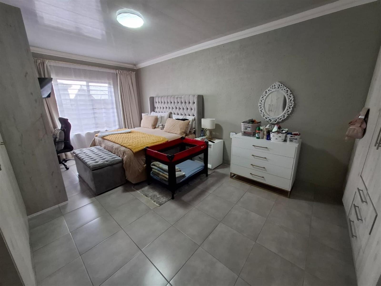 The home’s exterior boasts all-aluminium windows and a stylish aluminium front door, ensuring durability and a modern finish. Burglar bars add an extra layer of security, while a small leafy garden and a sandpit at the back make this space ideal for children to play or for quiet relaxation under the trees.