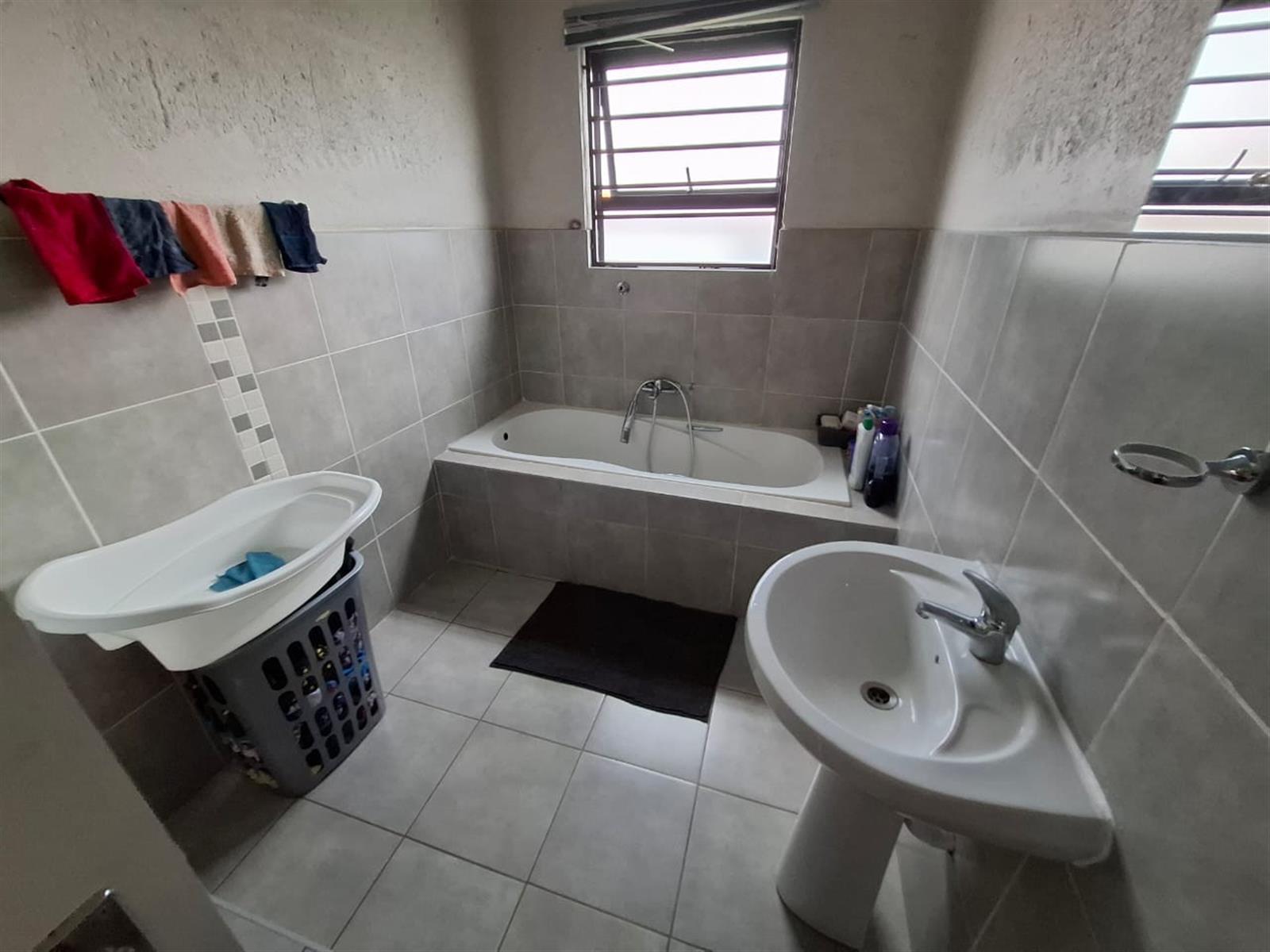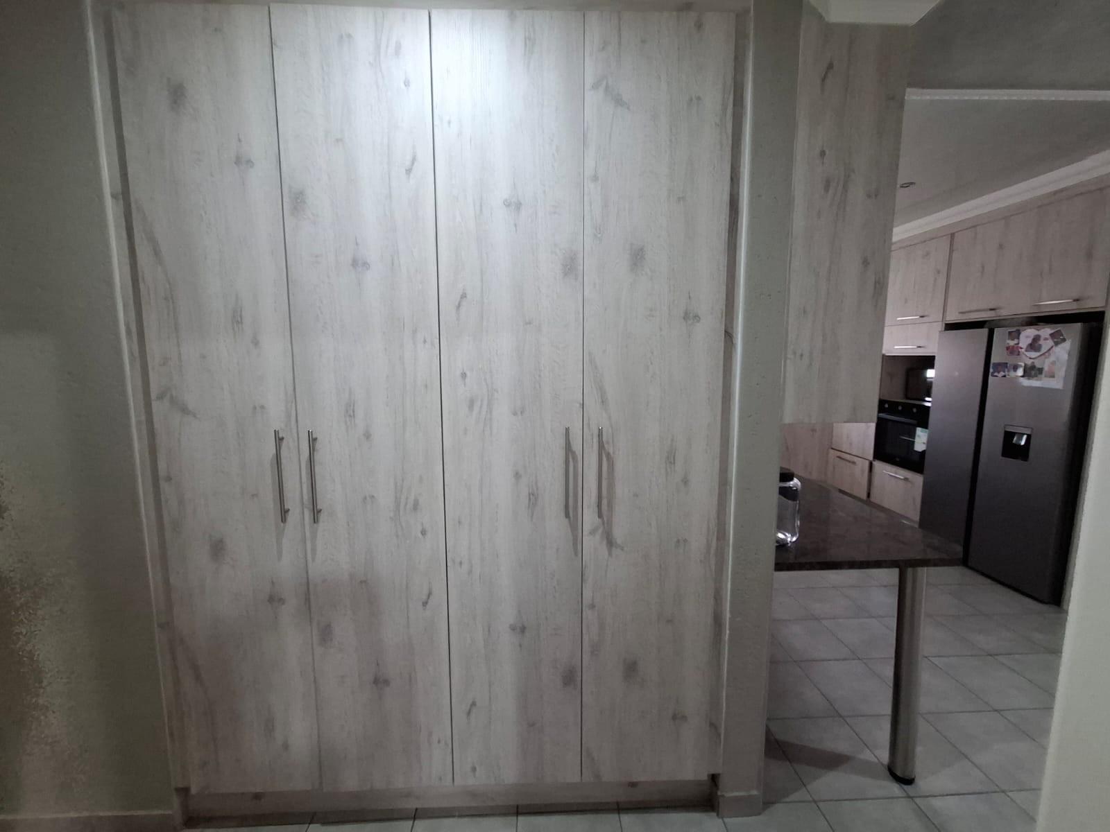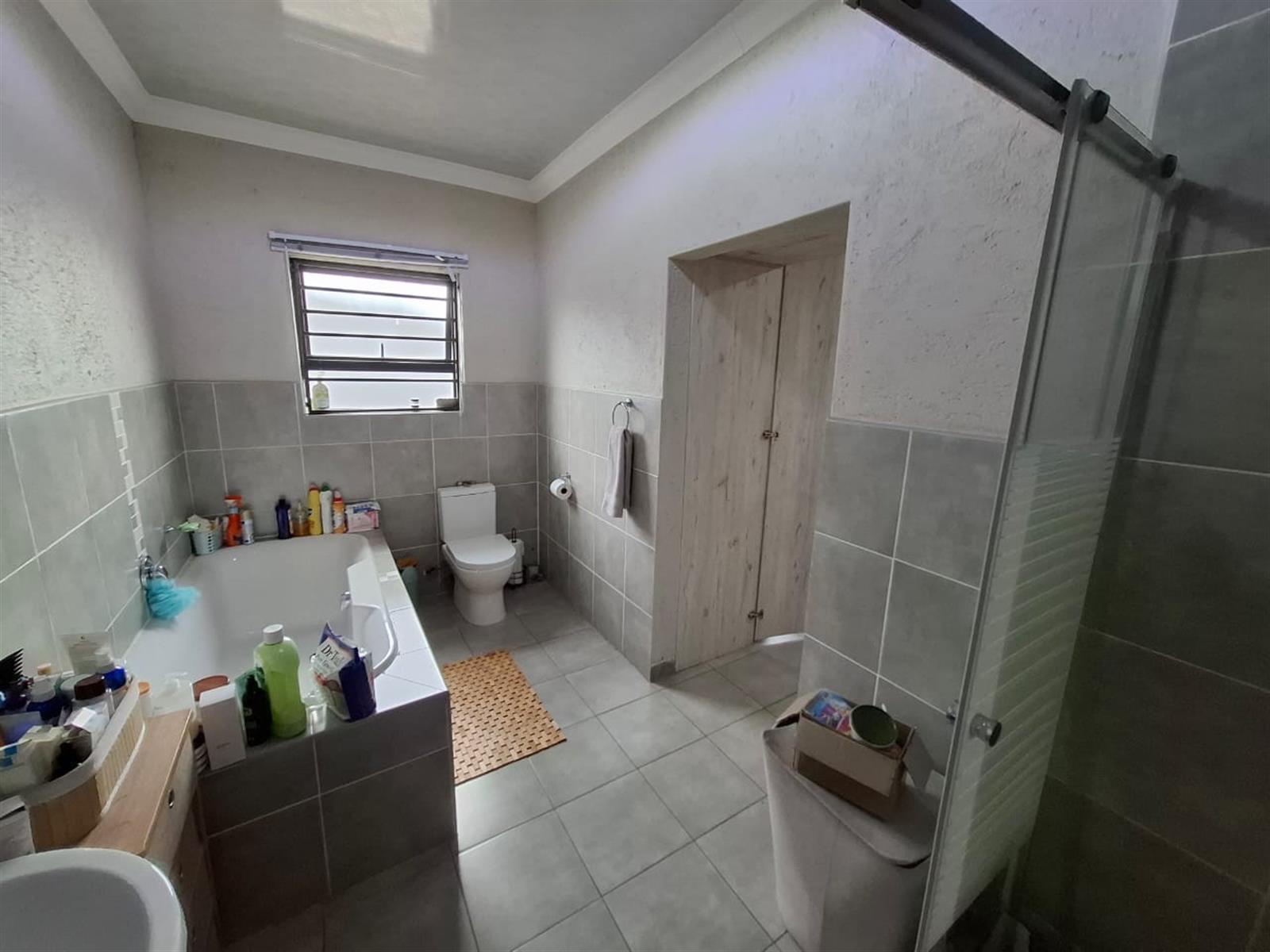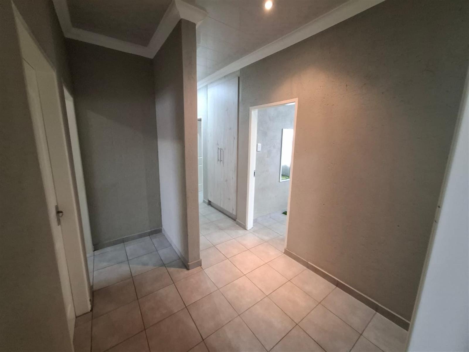 The home’s exterior boasts all-aluminium windows and a stylish aluminium front door, ensuring durability and a modern finish. Burglar bars add an extra layer of security, while a small leafy garden and a sandpit at the back make this space ideal for children to play or for quiet relaxation under the trees.