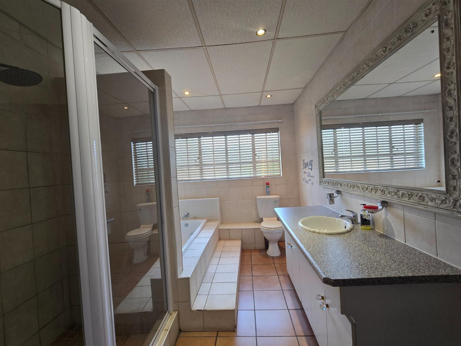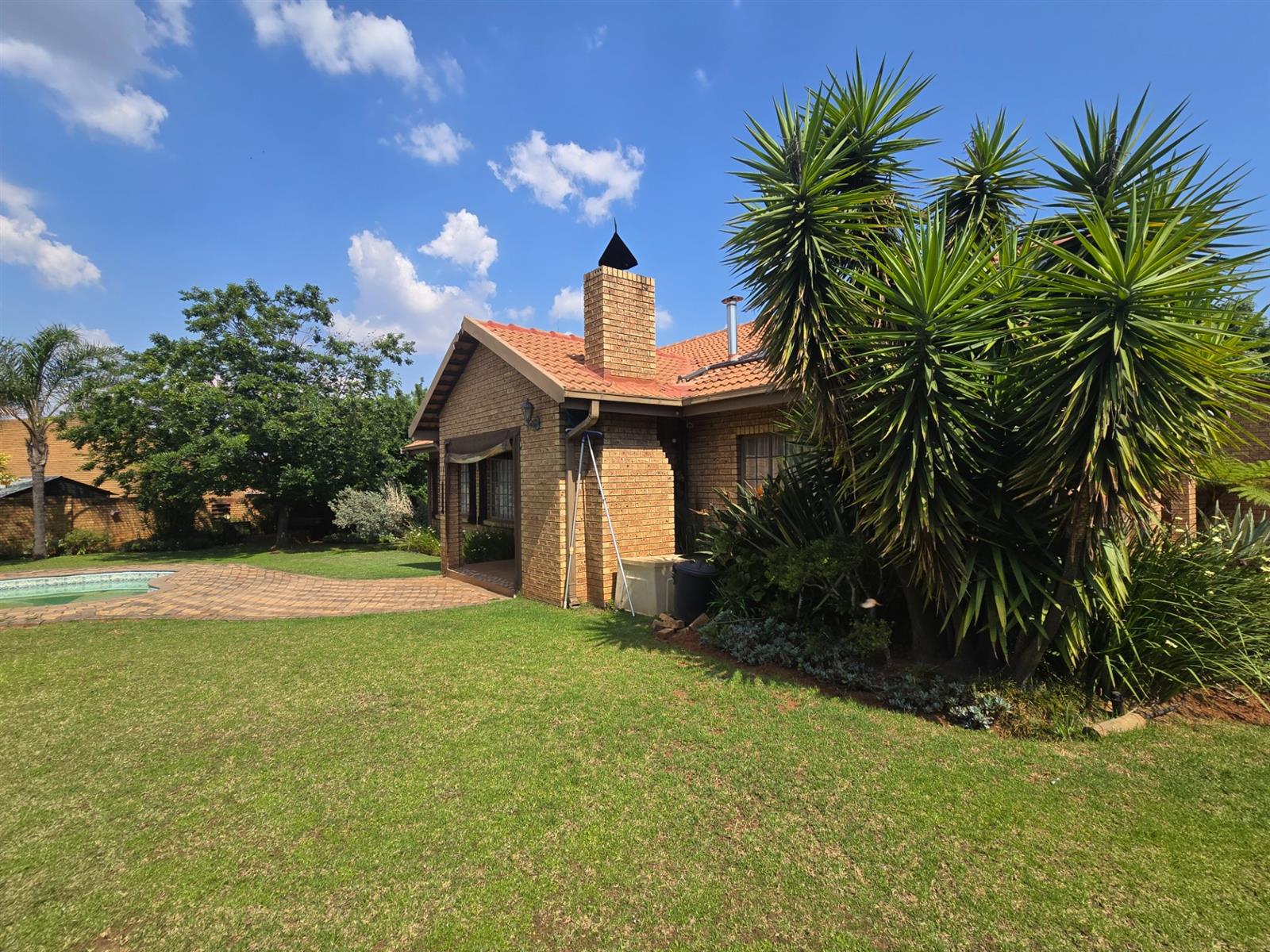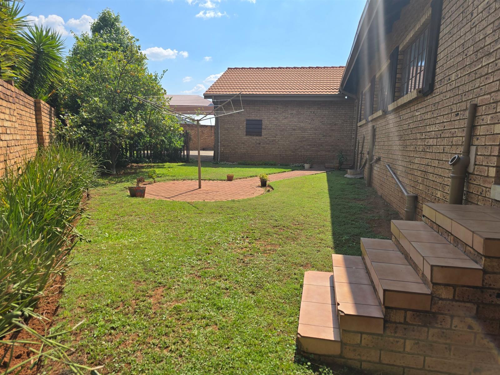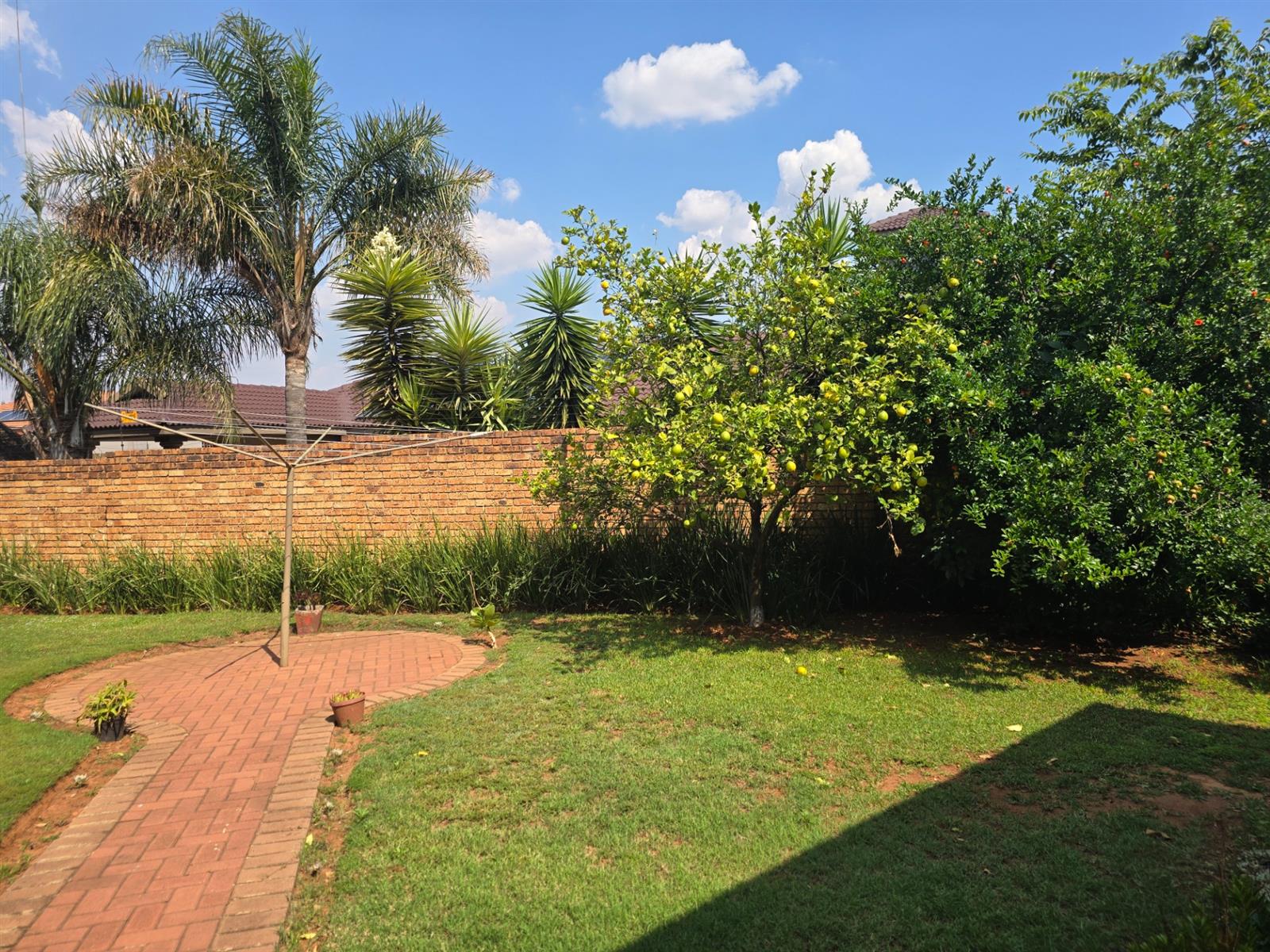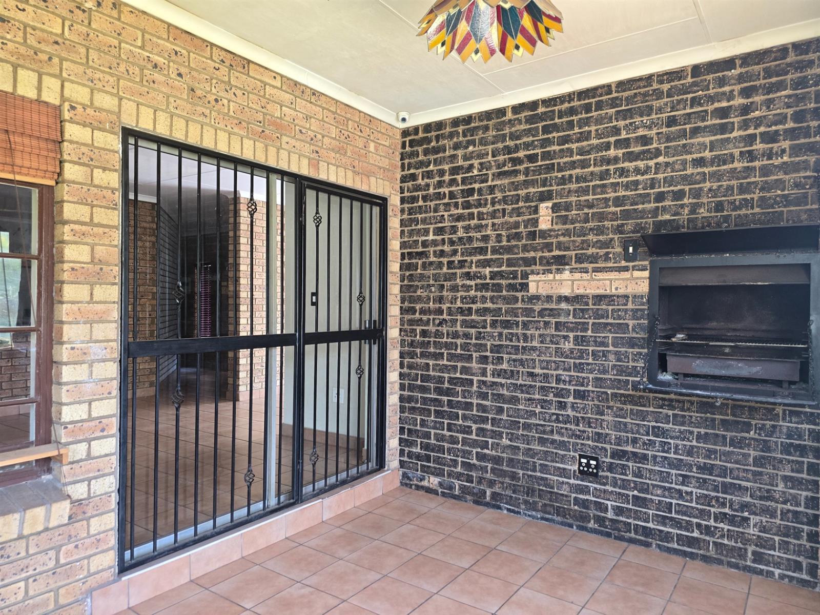 Outside, discover your own private retreat — with Pomegranate and Lemon trees, a shaded boma seating area perfect for evening gatherings, a Wendy house, and an outside toilet. The property also includes a double garage, double carport, and excellent security features such as an alarm system, CCTV, and electric fencing for complete peace of mind.