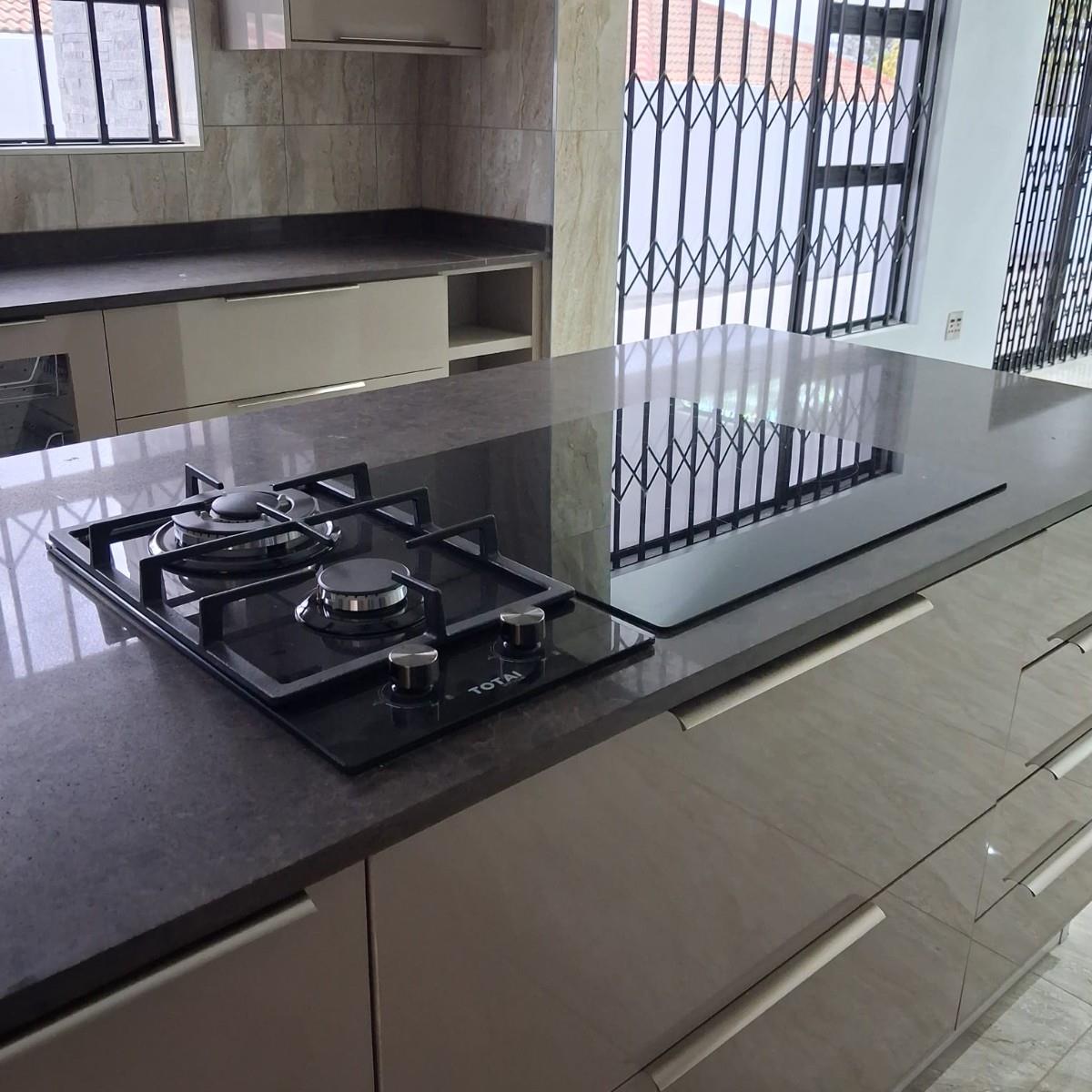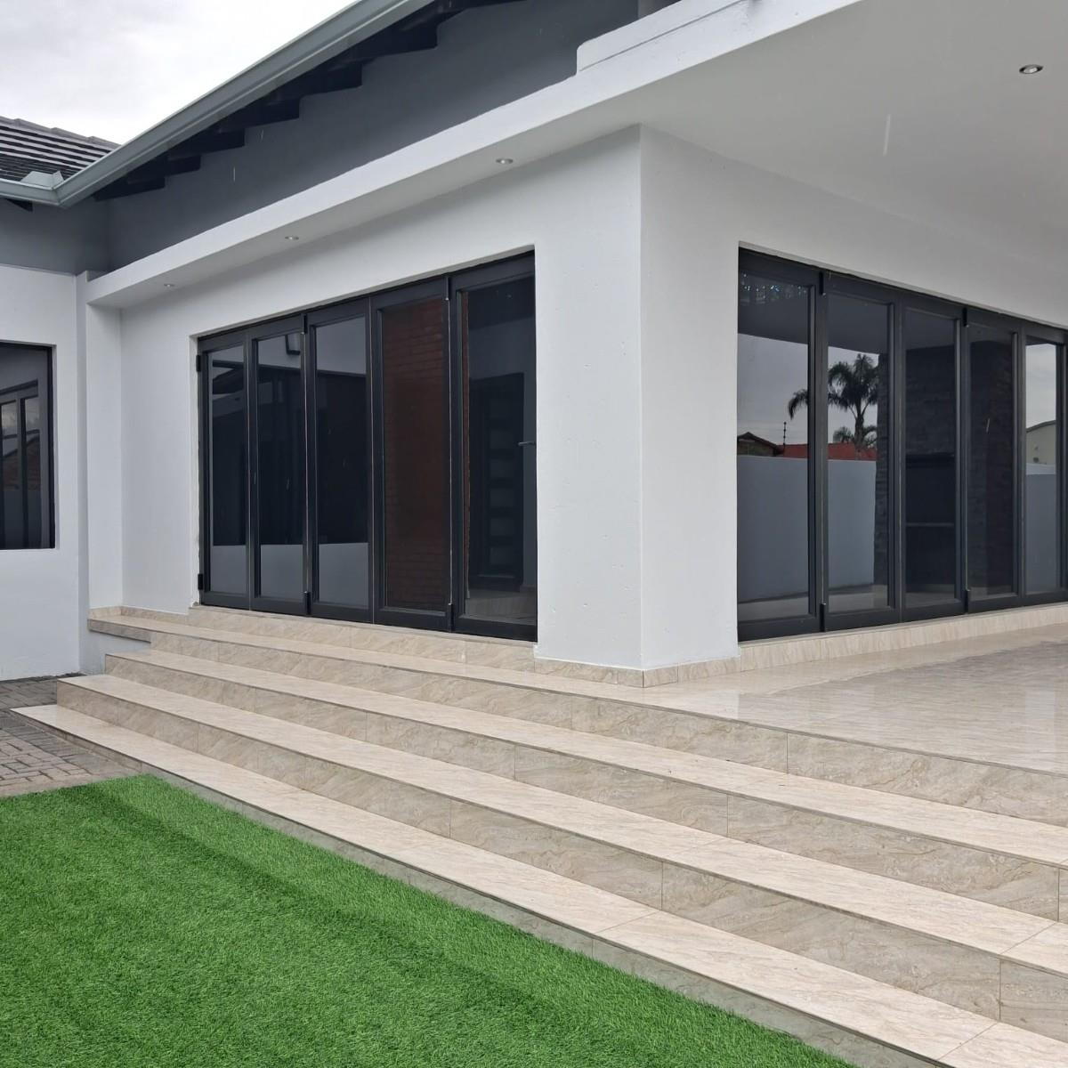 Each of the five bedrooms is generously sized and features its own en-suite bathroom, offering comfort and privacy for every family member. The master suite is a true retreat, complete with a walk-in closet and a private patio that opens directly to the outdoor braai area — perfect for hosting family gatherings or enjoying tranquil afternoons in the sun.