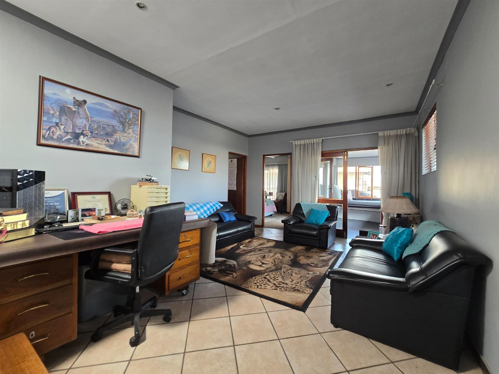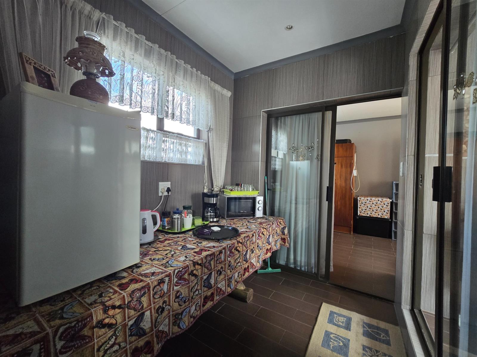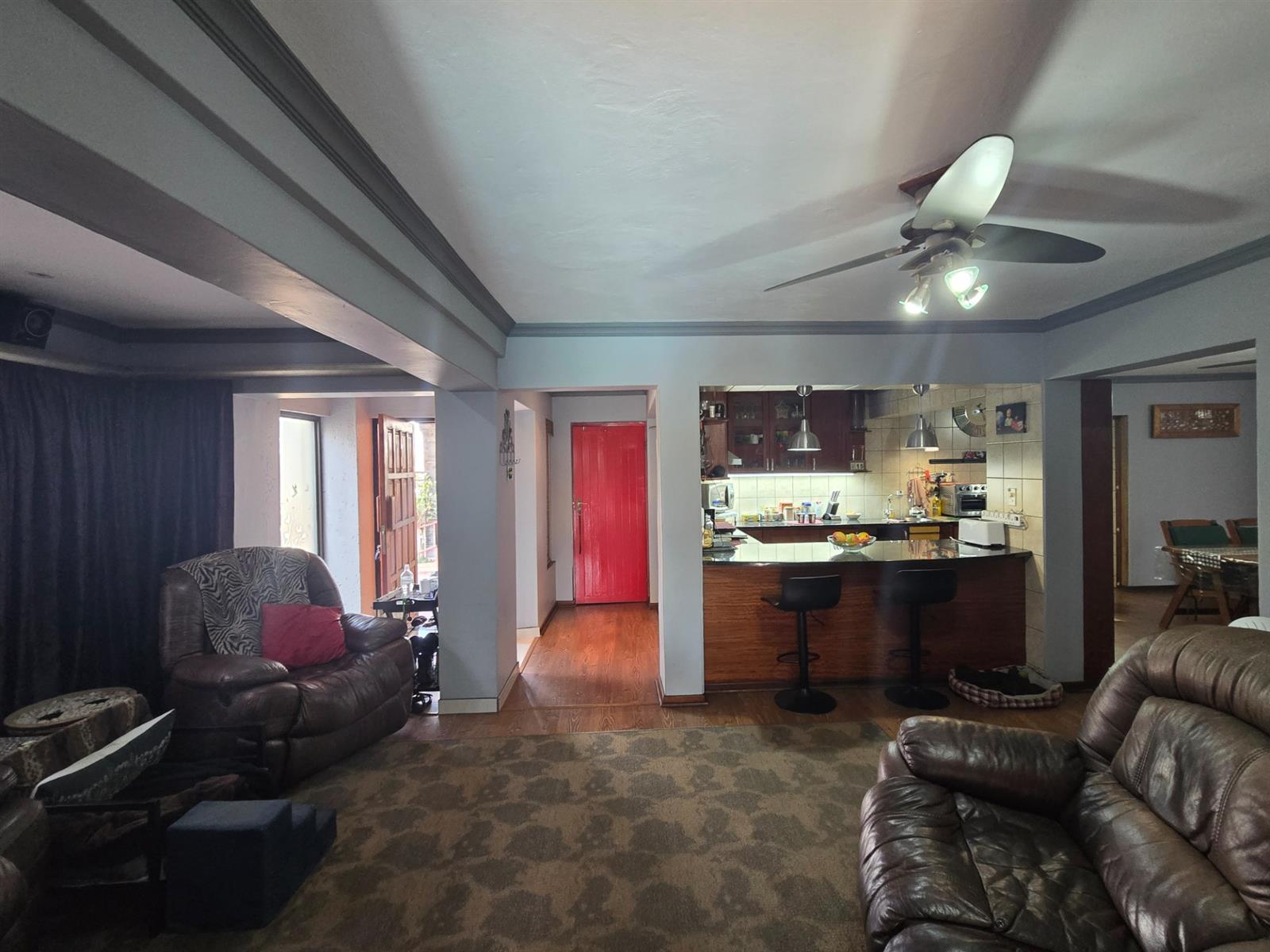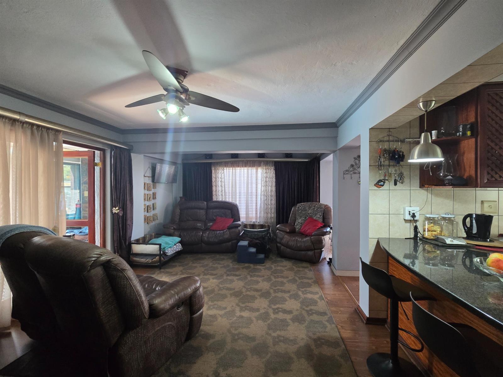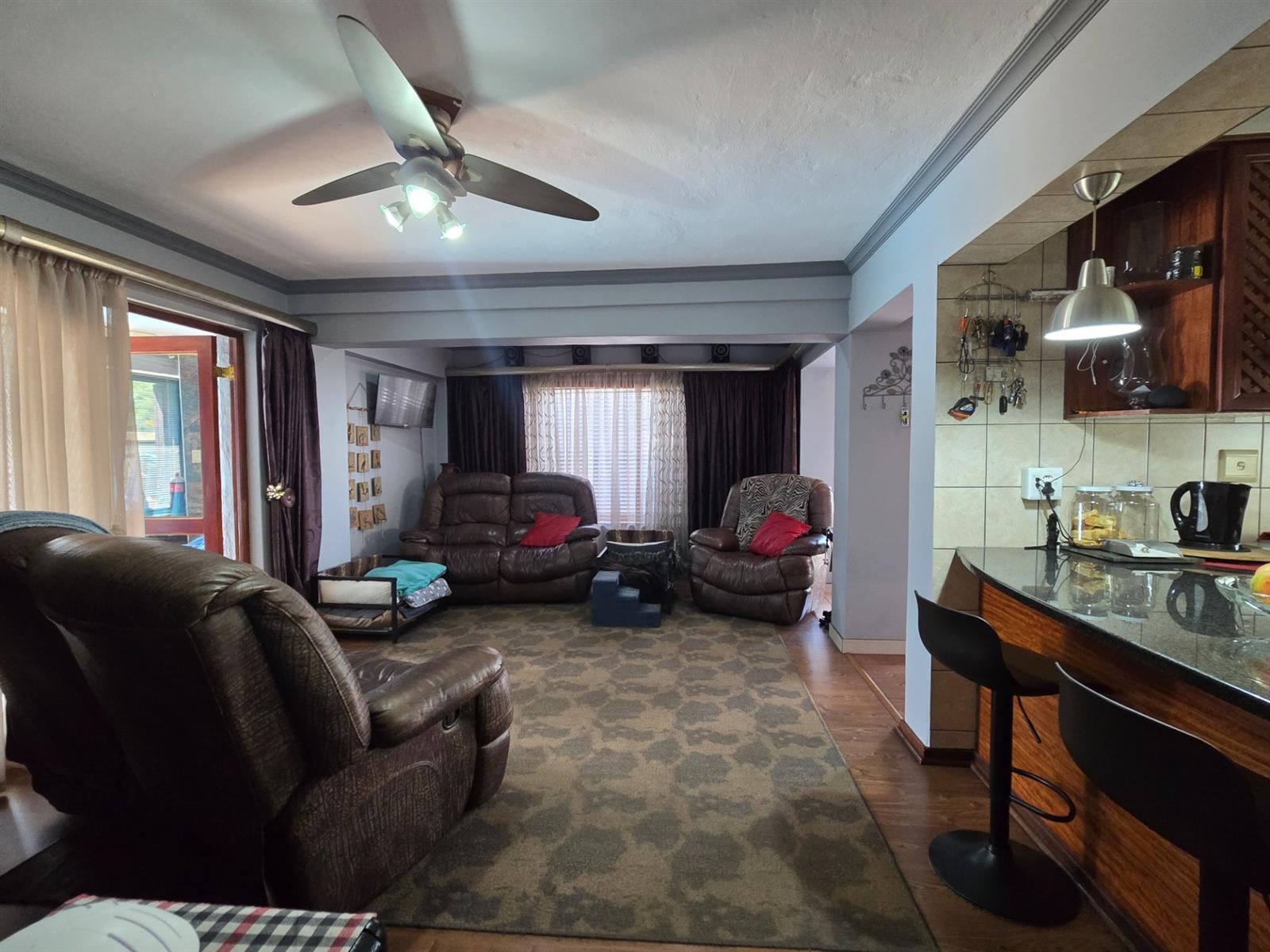 The home welcomes you through an entrance portal into a spacious lounge, which forms the heart of the home. Adjacent to the lounge is a charming breakfast nook, perfectly positioned for casual meals and morning coffee. From the lounge, a standout sunroom unfolds, featuring a built-in braai and large folding stacker doors that open fully to the outdoor entertainment area.