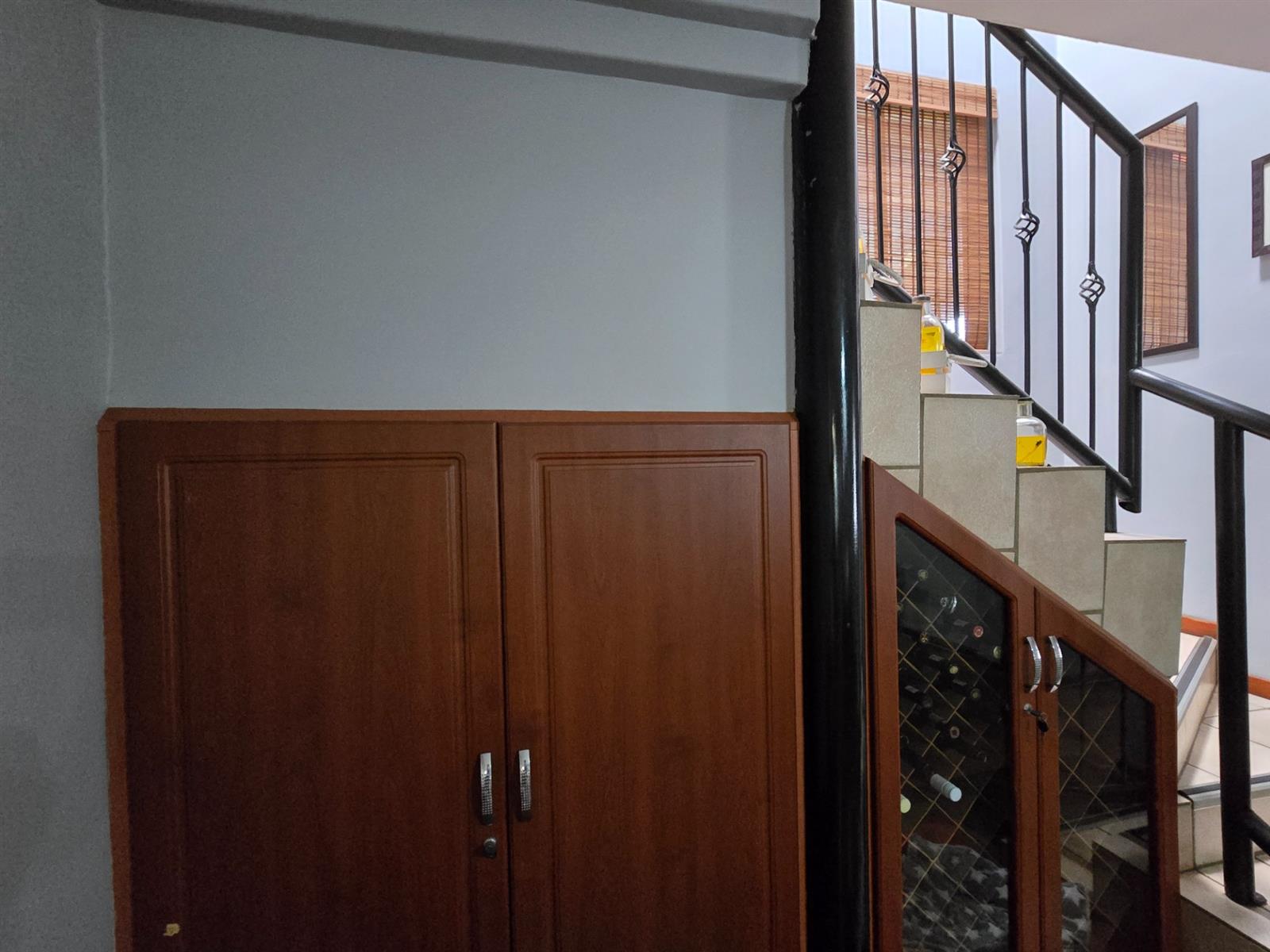 Tucked neatly under the staircase is a storeroom, with a dedicated wine rack positioned alongside it, offering clever storage and an elegant feature for wine enthusiasts.