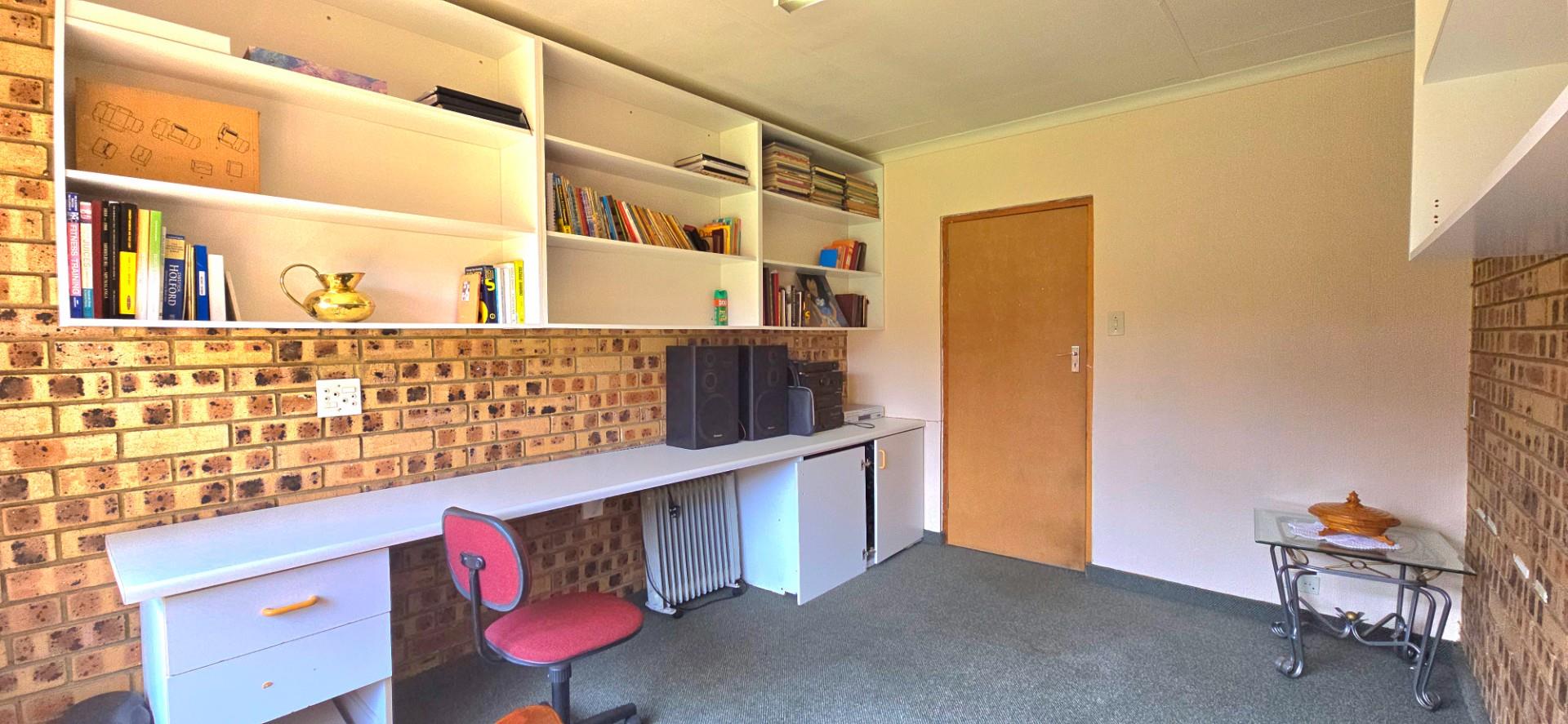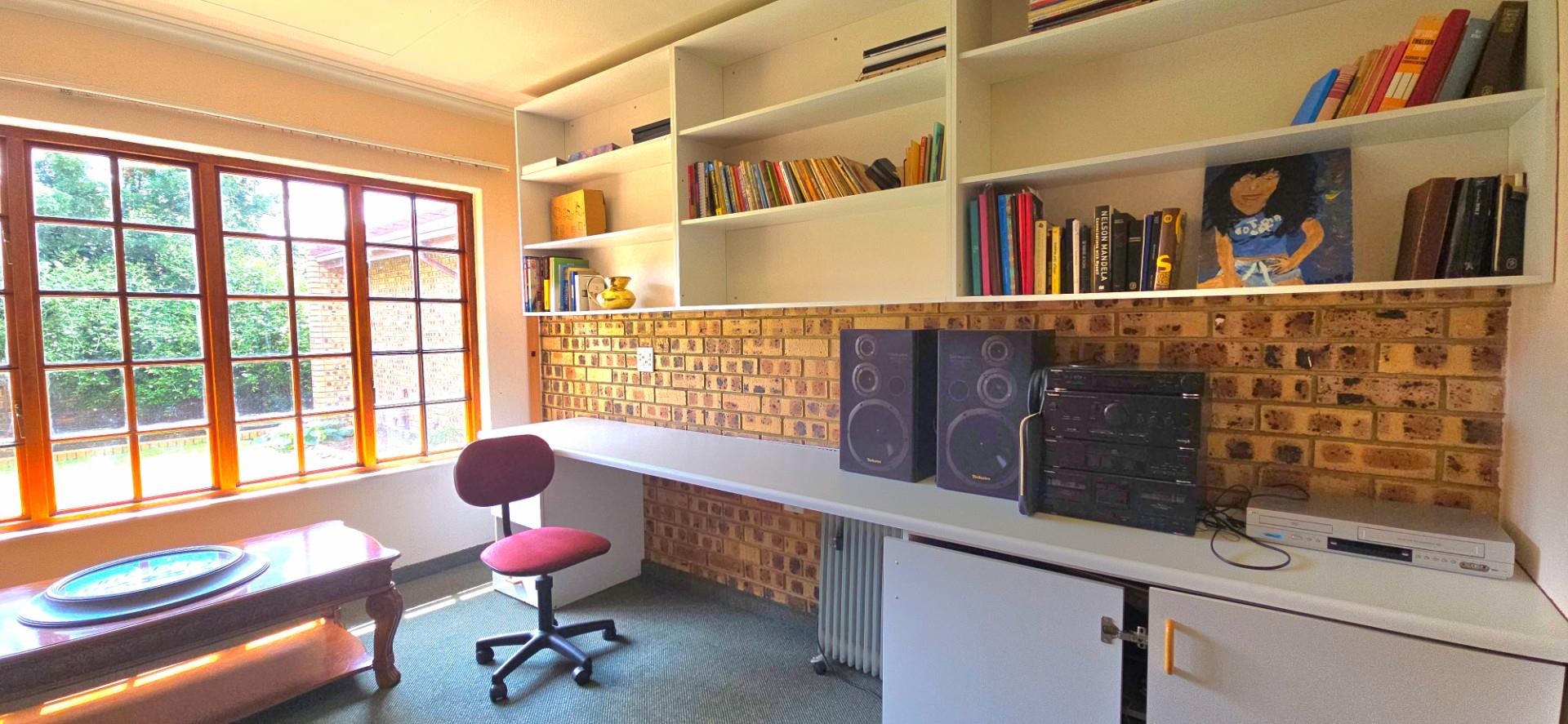 A dedicated study provides a quiet and practical space for working from home or managing household affairs.