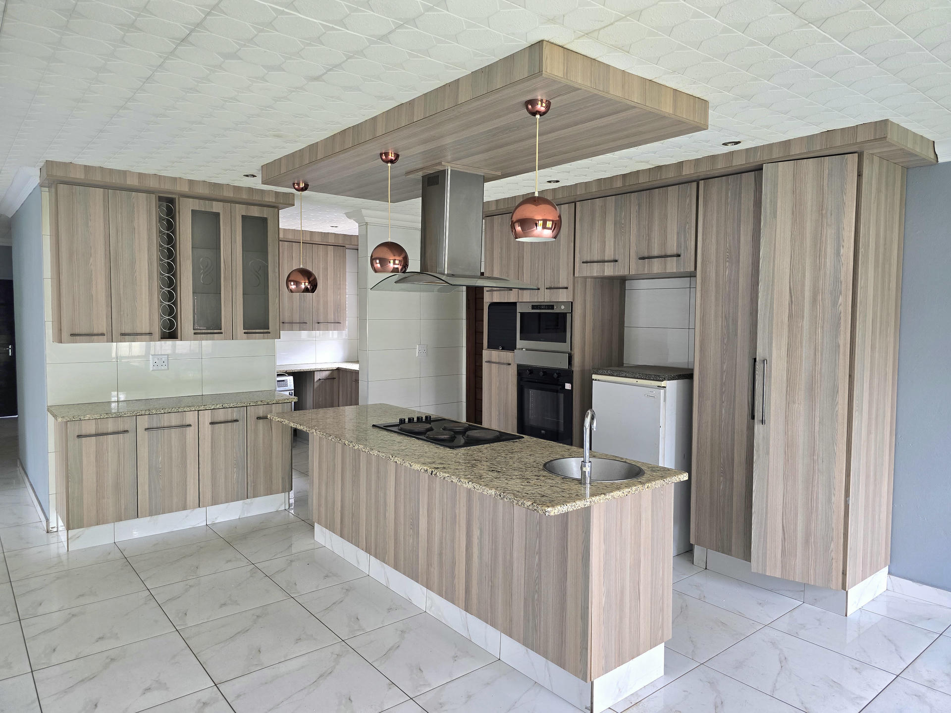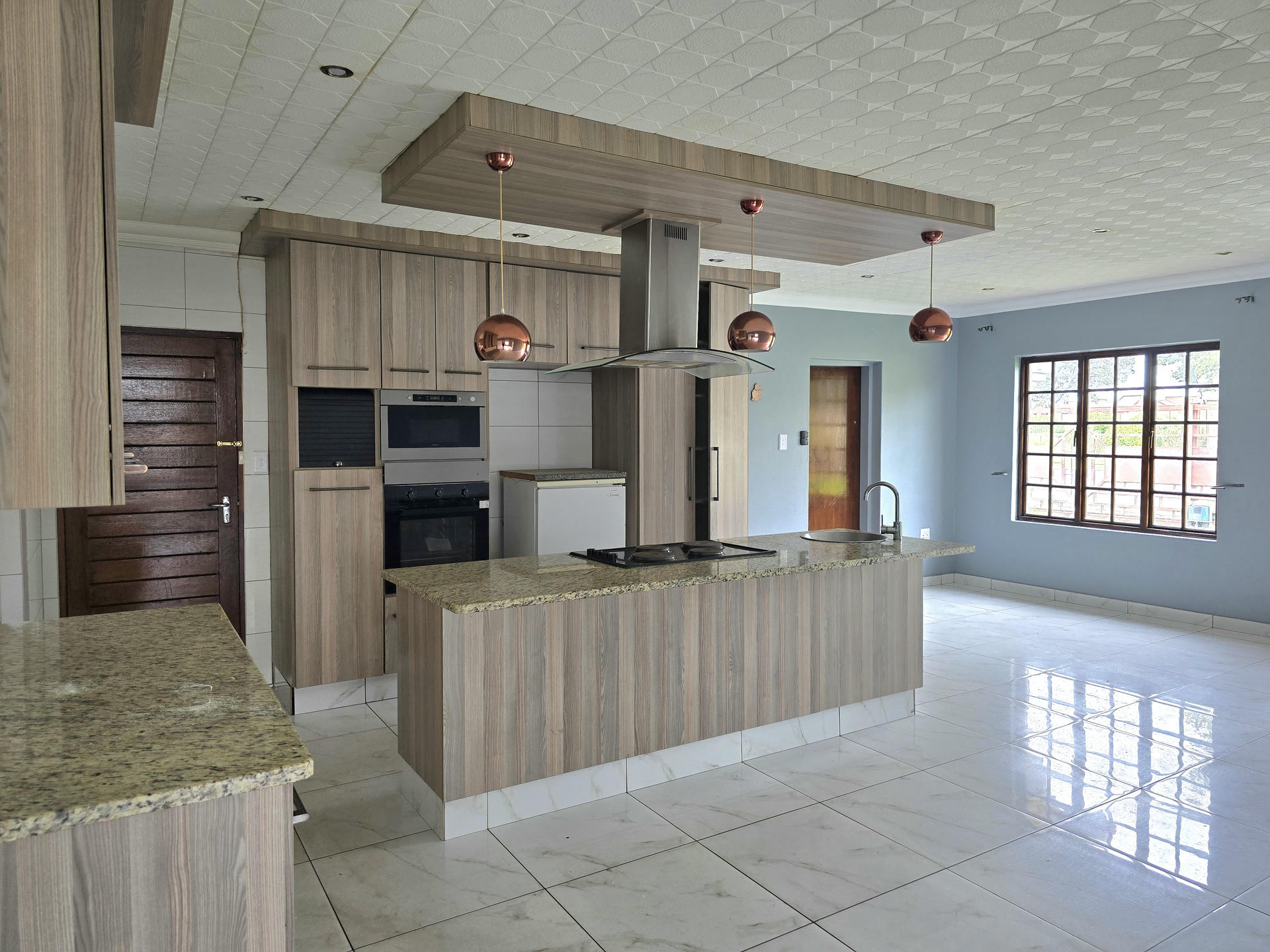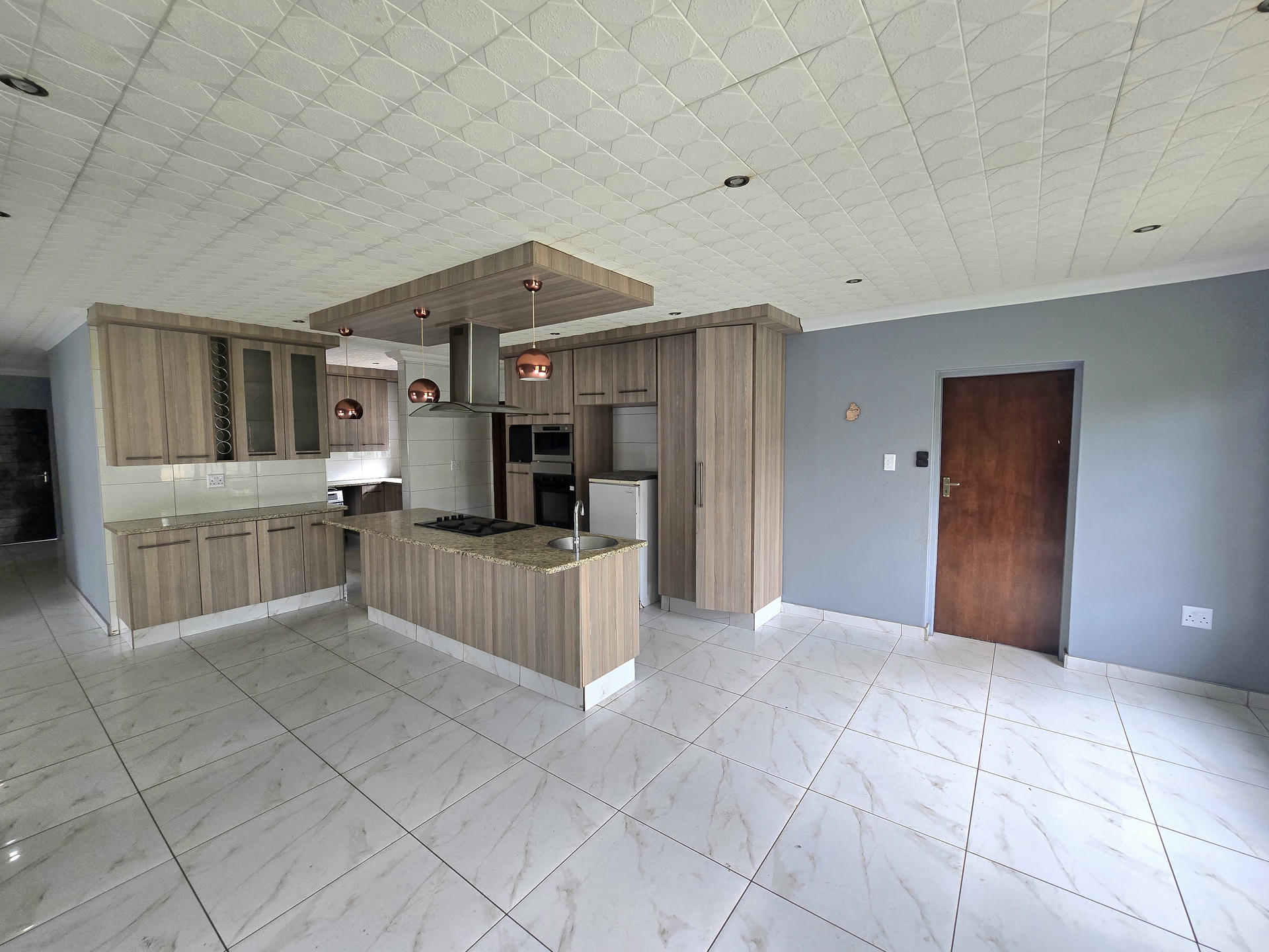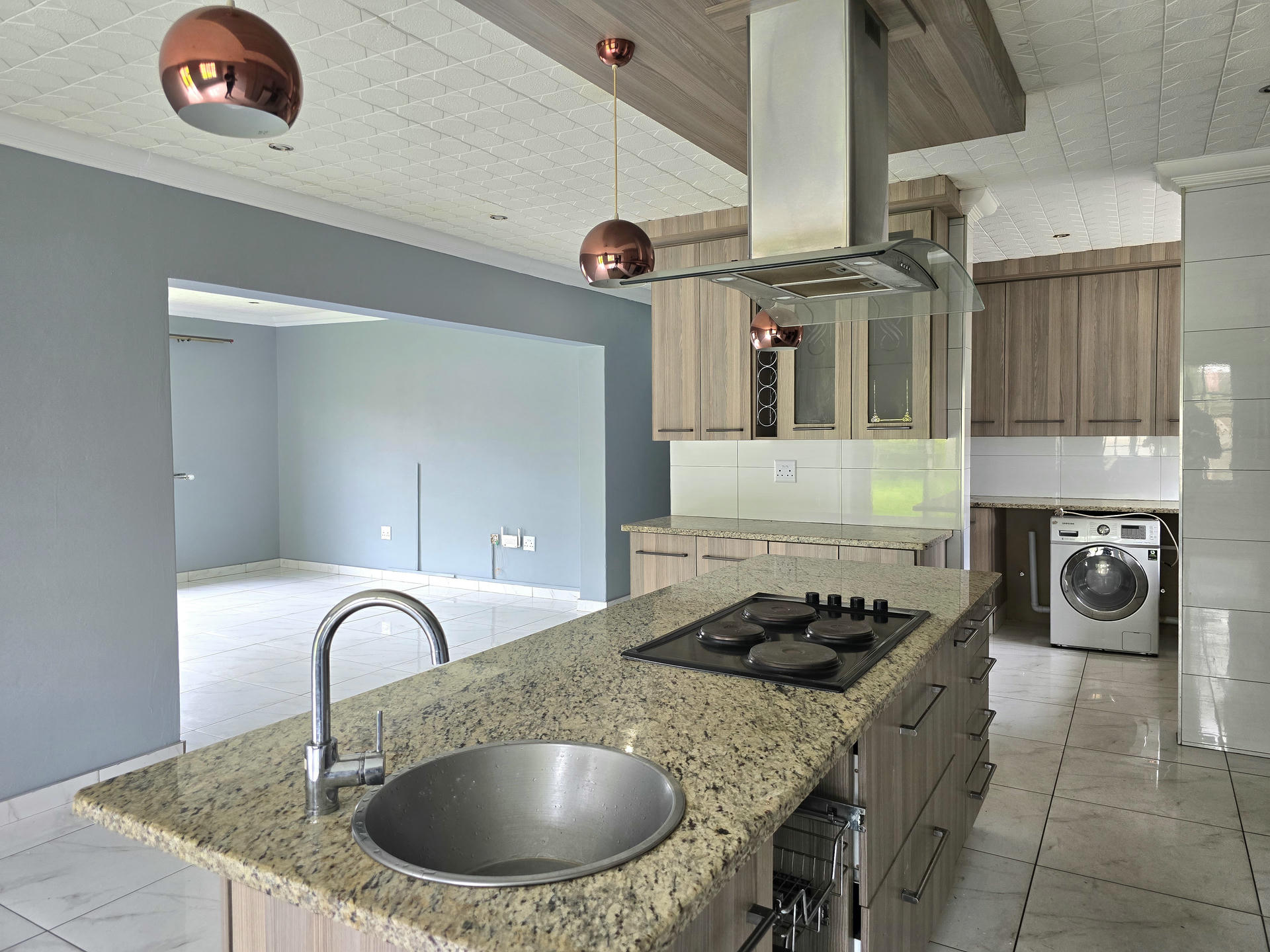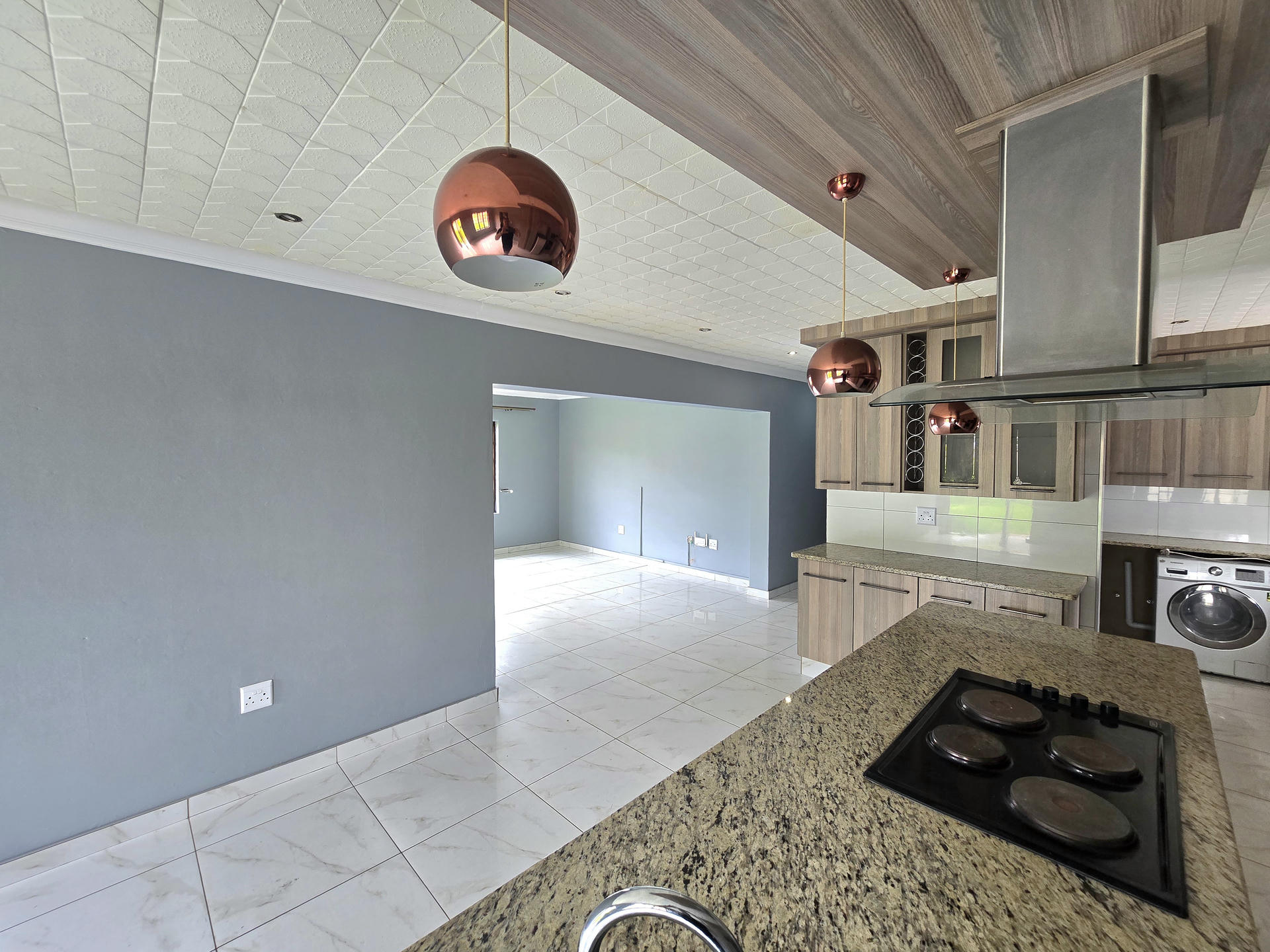 The kitchen is a standout feature, combining smart design with stylish detail. Quality countertops, a central island, modern lighting, and well-planned storage make it a pleasure to use, whether for quick weekday meals or entertaining. A conveniently placed scullery and laundry area adds to the home’s practicality, keeping the main living spaces uncluttered. The dining area opens up easily for entertaining, allowing the home to adapt to both family time and social occasions.