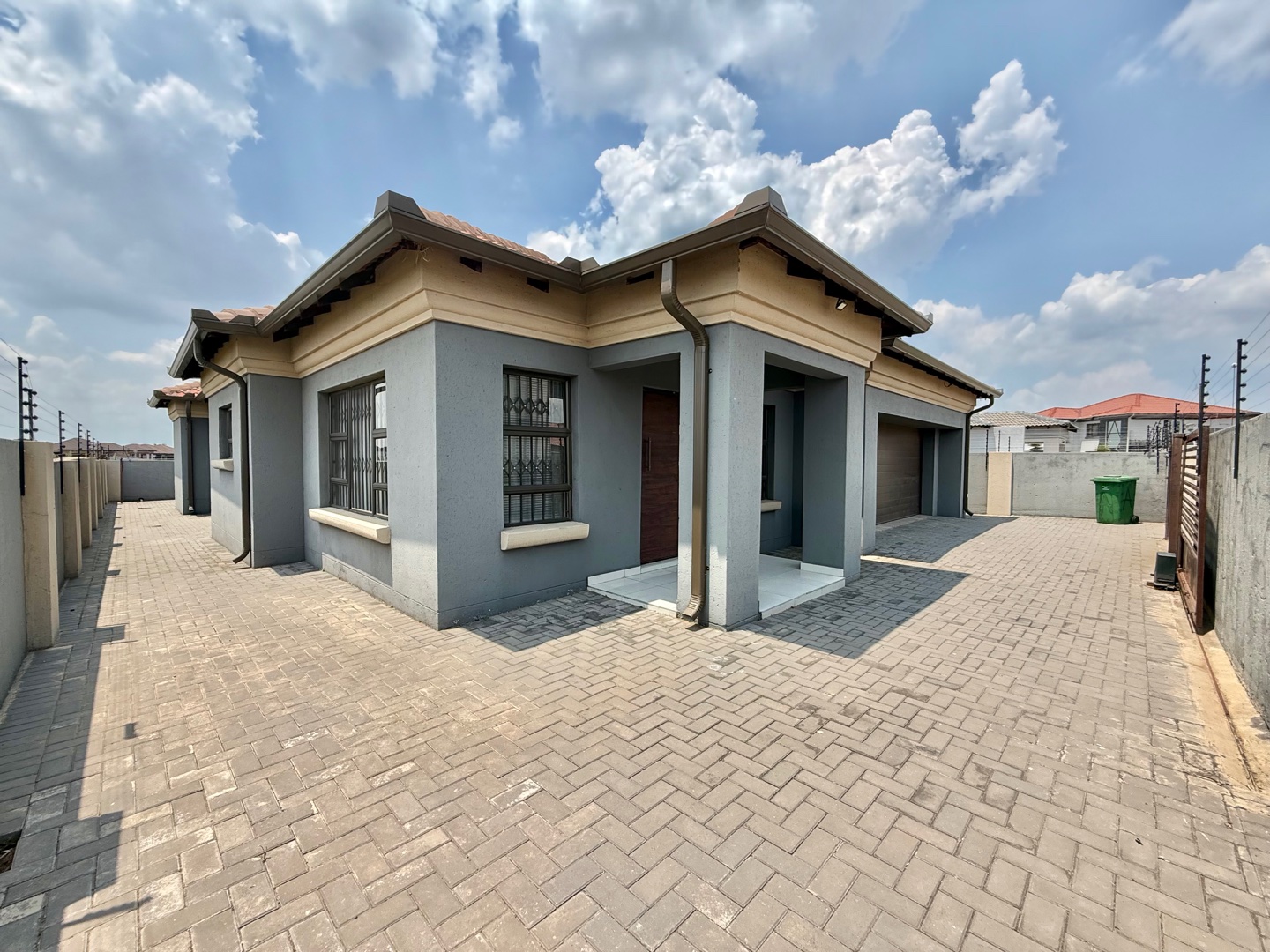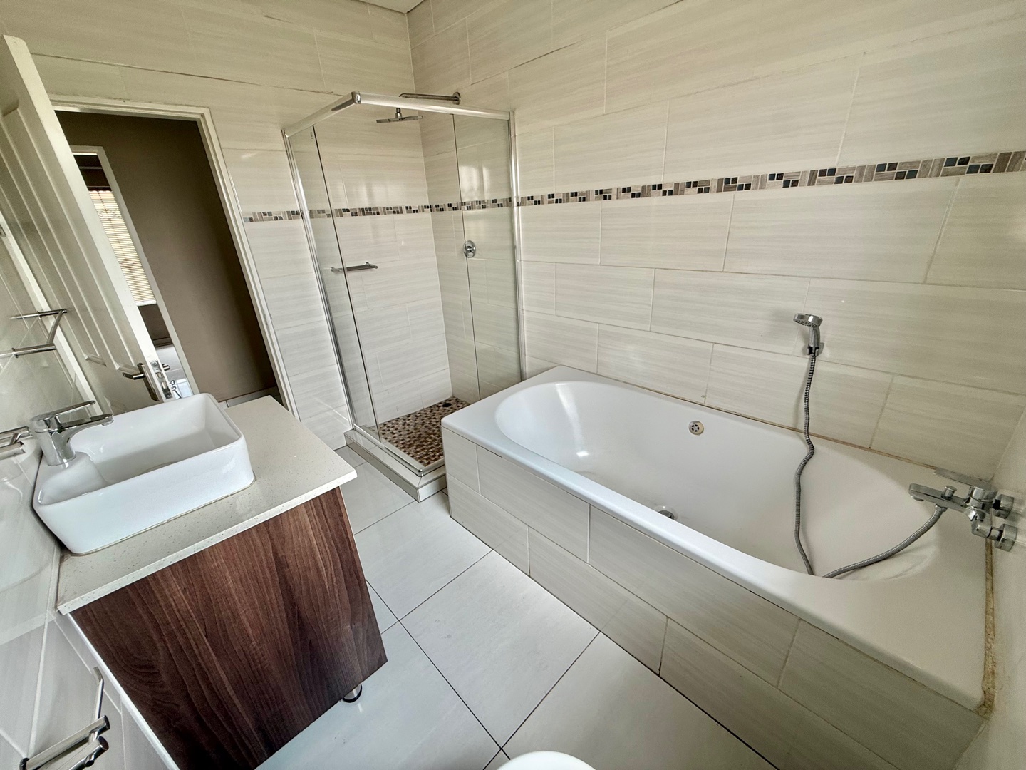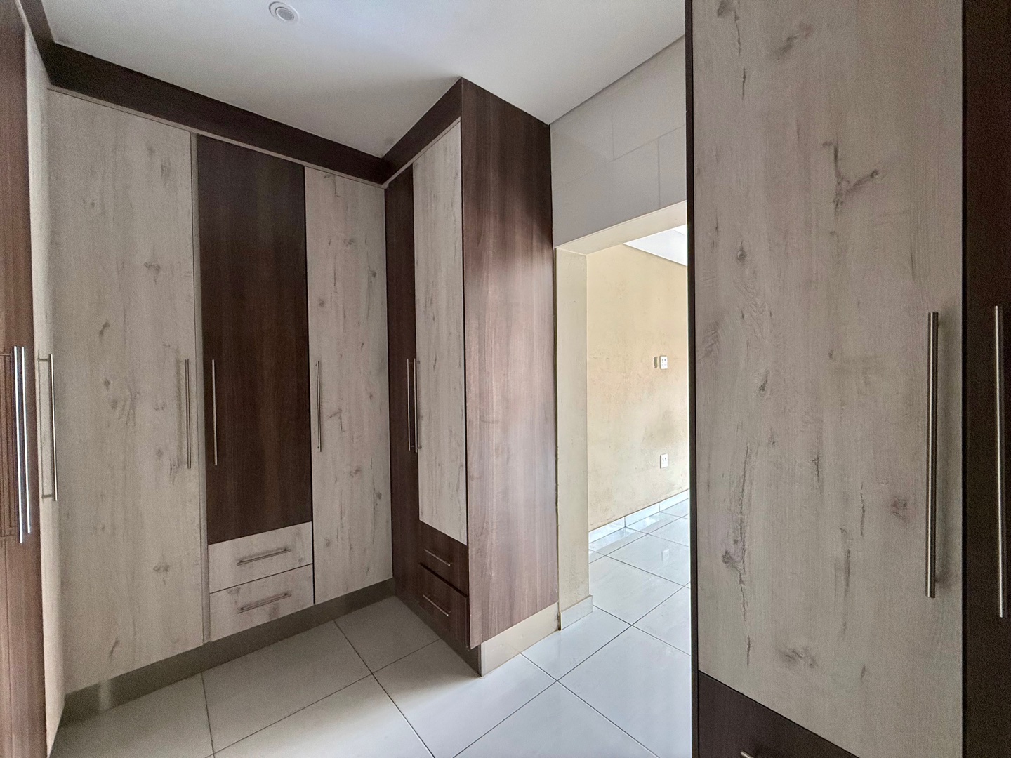 A huge modern kitchen with ample cupboard space is complemented by a separate scullery, ensuring convenience and clutter-free living. The home also boasts a double garage with secure access.