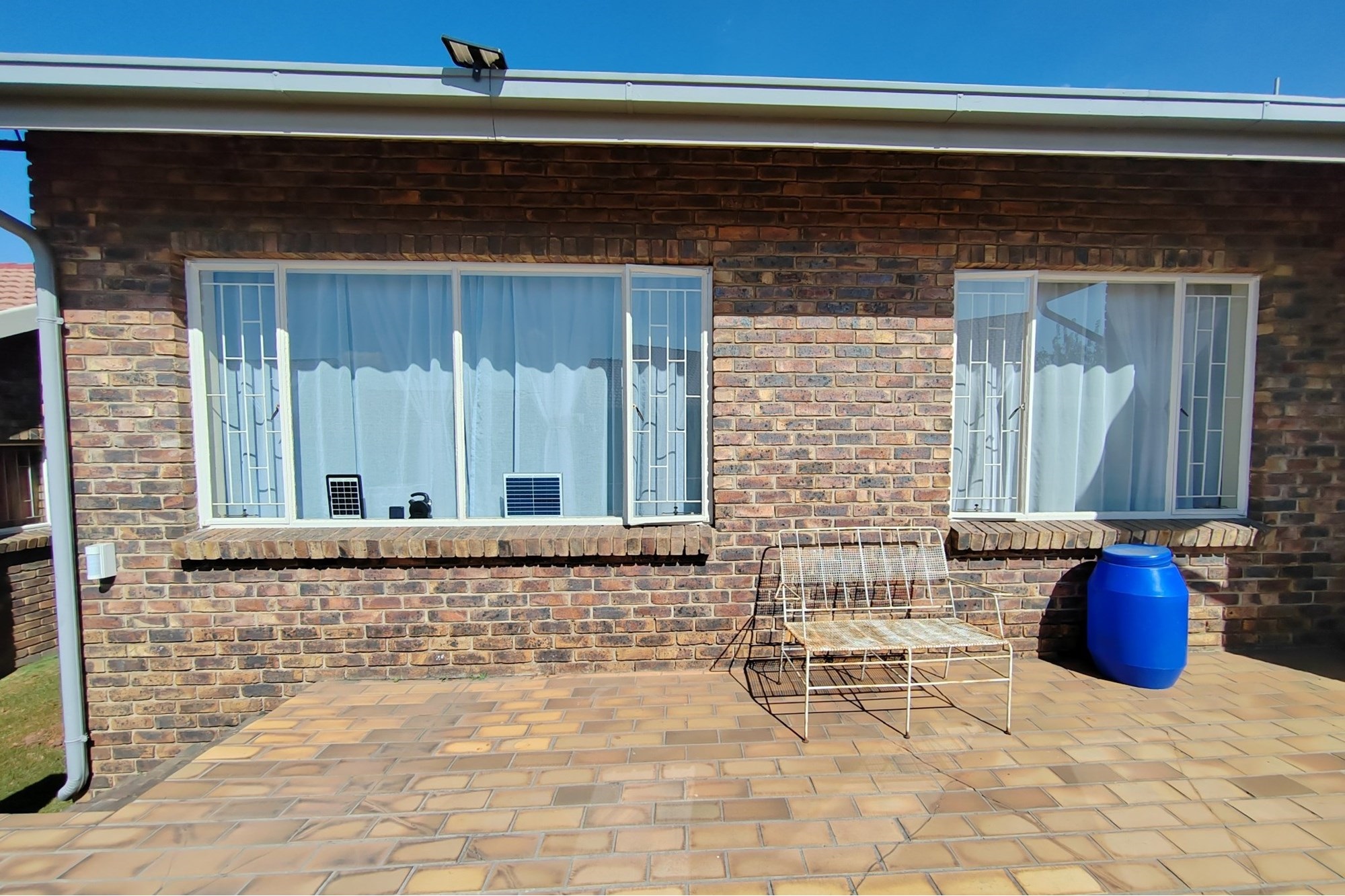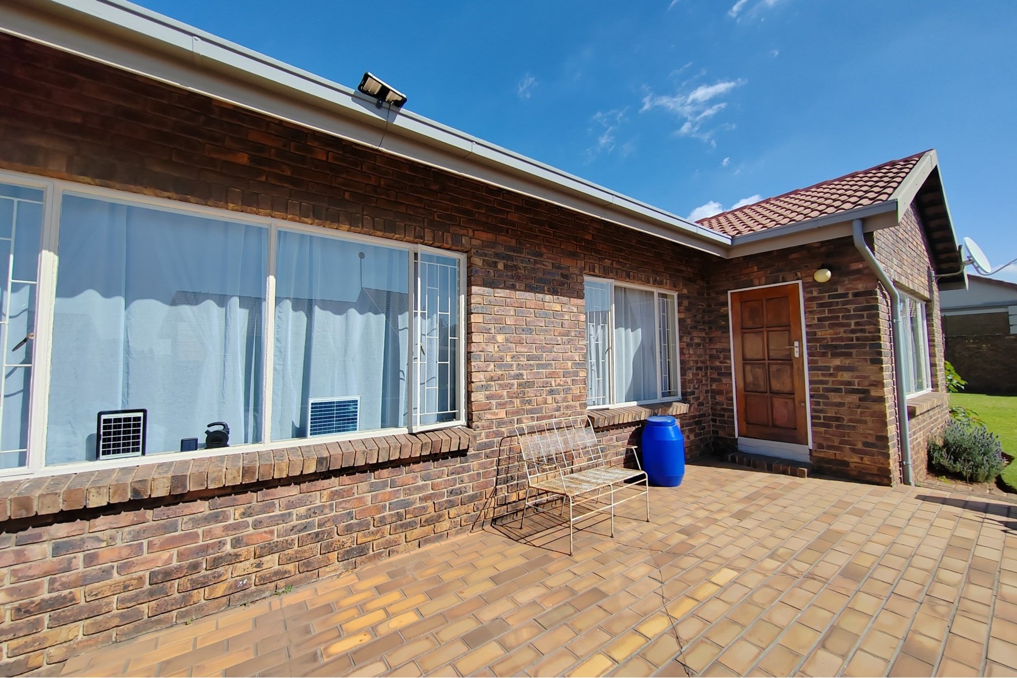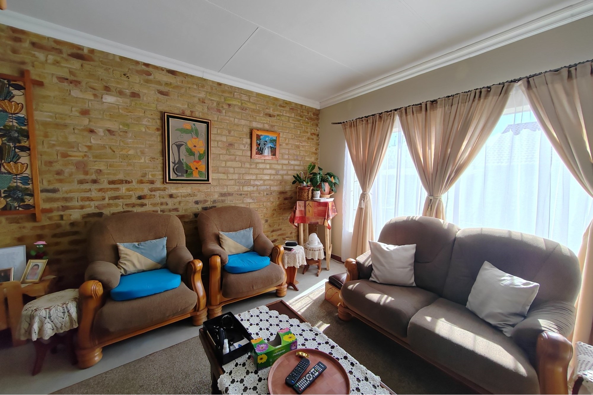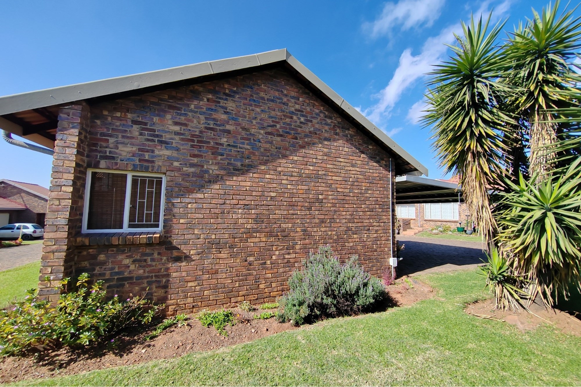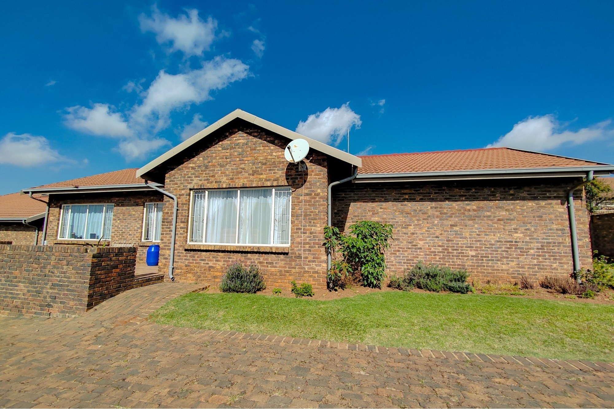 The kitchen has modern white cupboards with a gas stove, scullery and laundry that leads to a court yard. The living area is open plan with a breakfast nook and leads to an open patio where you can have a braai. The double garage has manual garage doors with covered parking in front of the garage.