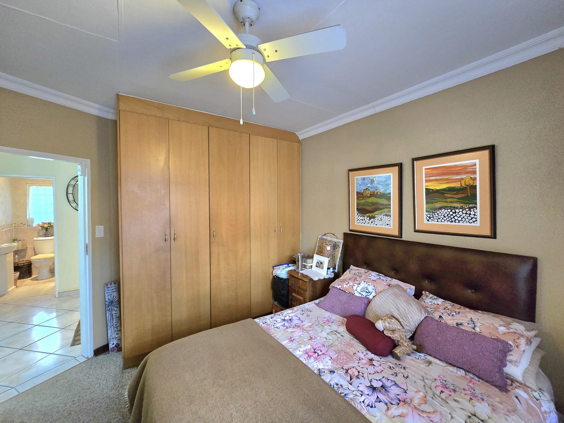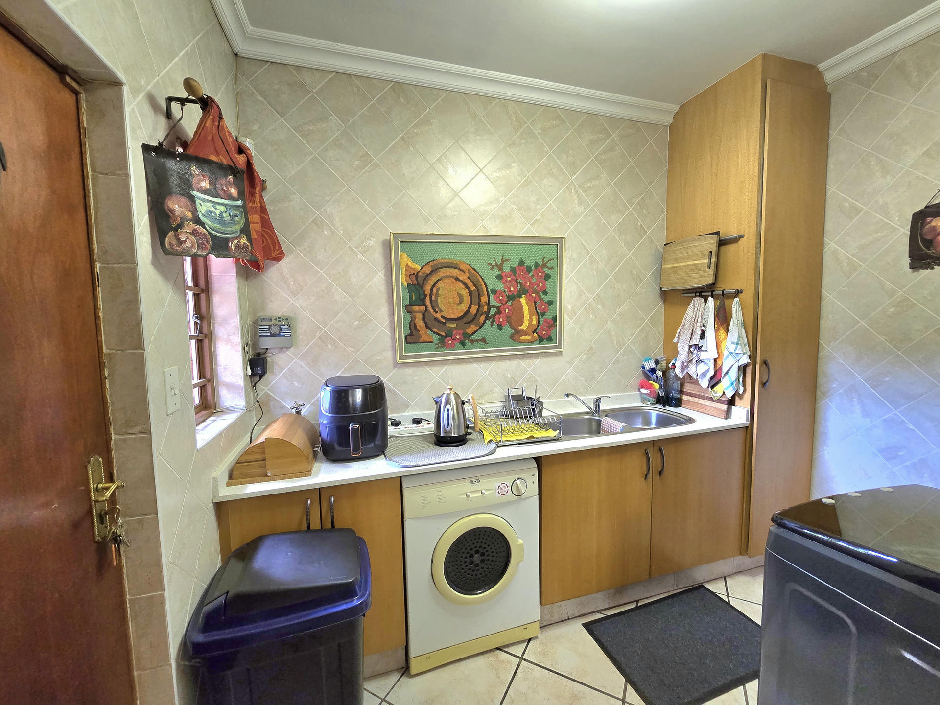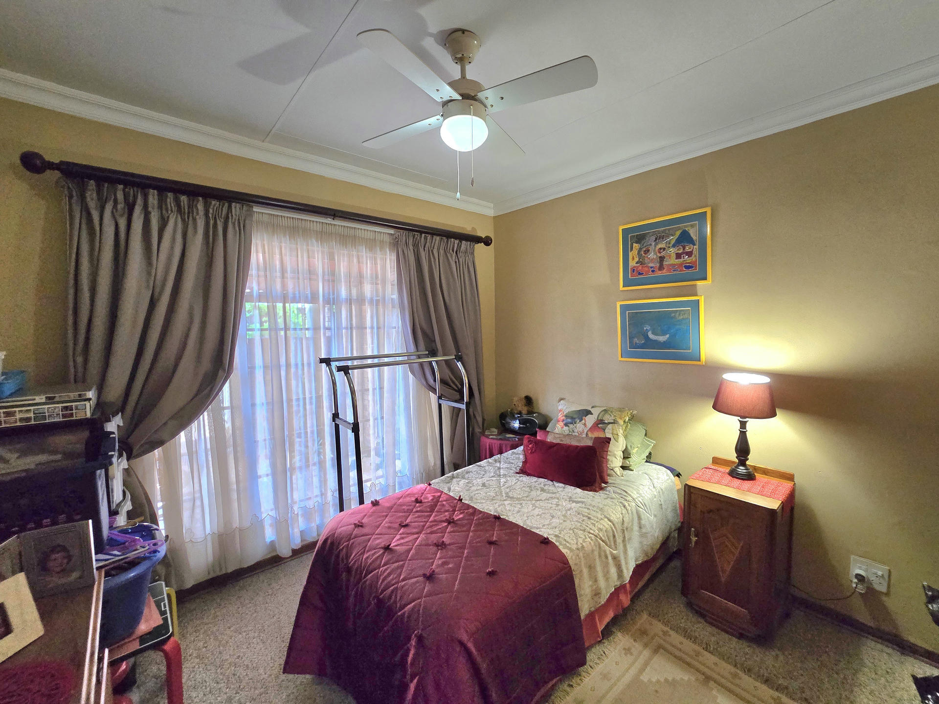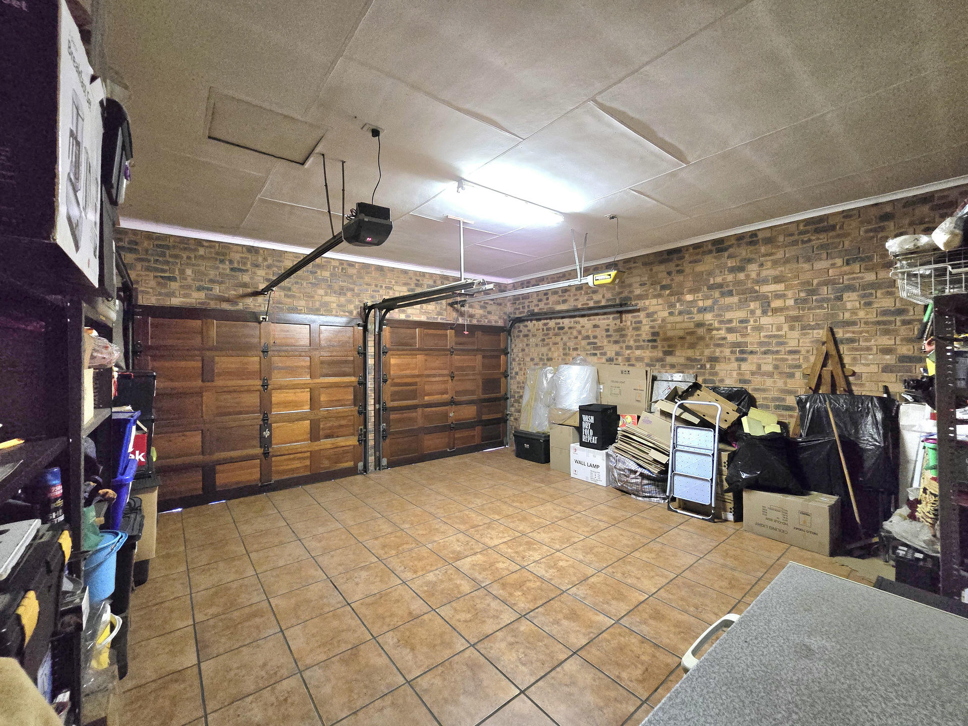 .This beautifully presented duet offers spacious open plan living with impressive double volume ceilings and an inviting flow throughout. The main lounge and dining area are bright and airy, complemented by an additional room that can serve as either a second lounge or a dedicated entertainment space with an indoor braai. The well designed kitchen includes quartz countertops, a walk in pantry, and a separate scullery and laundry combination, making daily living both practical and convenient. All three bedrooms are generously sized, with the main bedroom featuring air conditioning, a walk in closet, and a full en suite bathroom. The remaining bedrooms are well appointed and share a full bathroom, while a separate guest toilet adds extra convenience. The home also includes a private study for those who work from home, strong security features such as electric fencing, automated gates, burglar bars, trelligates, CCTV, and an outside toilet for added practicality. The low maintenance garden is neatly kept and fitted with irrigation. Energy efficiency is a standout feature thanks to a powerful solar setup that includes an inverter, lithium batteries, and an array of solar panels, ensuring uninterrupted comfort. Parking is plentiful with a double automated garage, an enclosed double steel carport, and additional paved parking. Positioned in a quiet four unit complex with no levies, only a small maintenance fund when needed, this property offers secure, comfortable, and modern living in one of Aerorand’s most desirable areas.