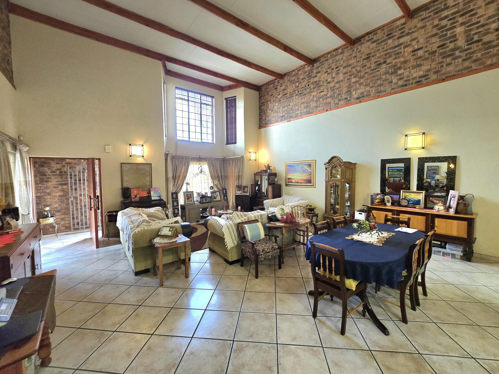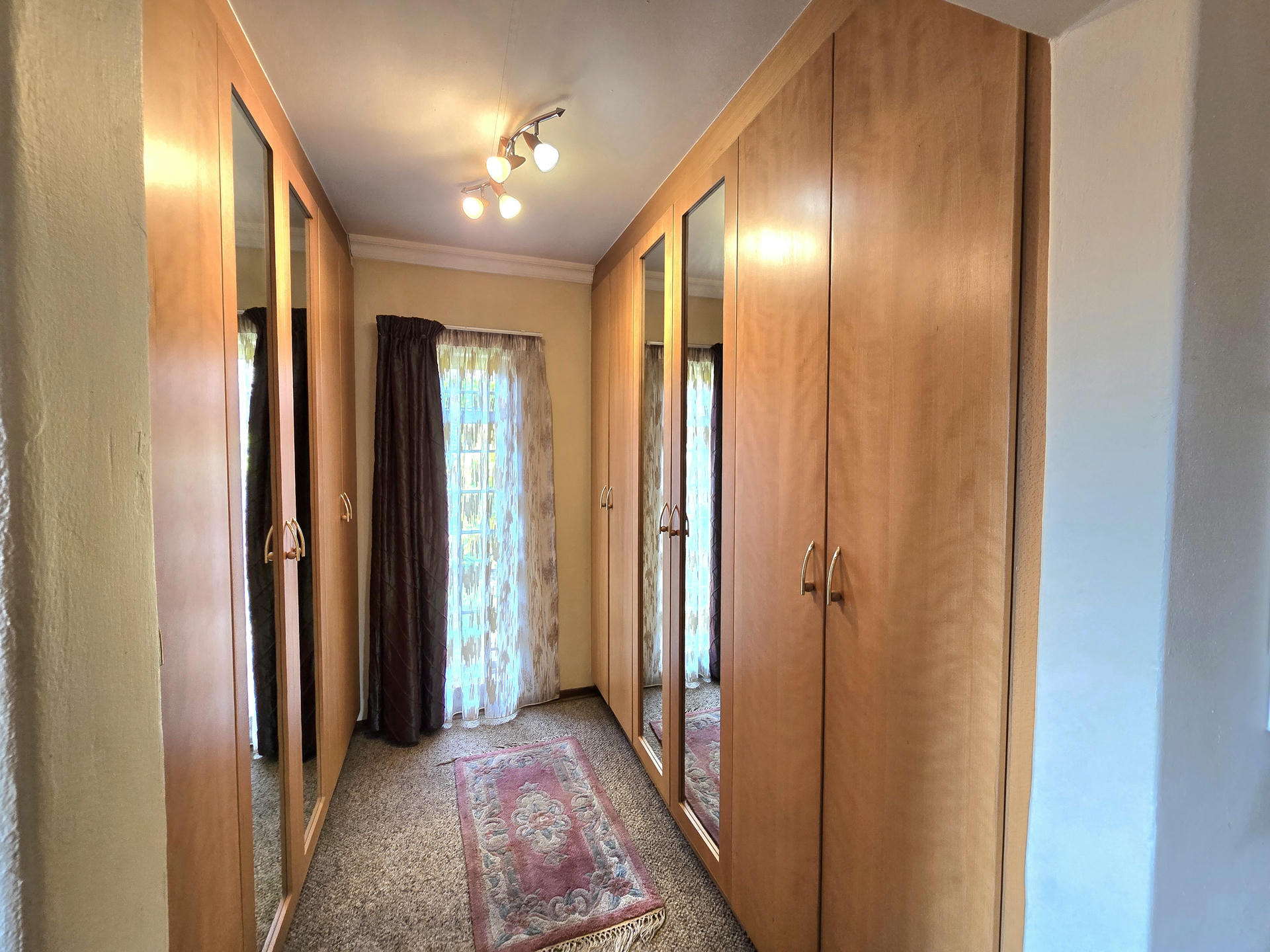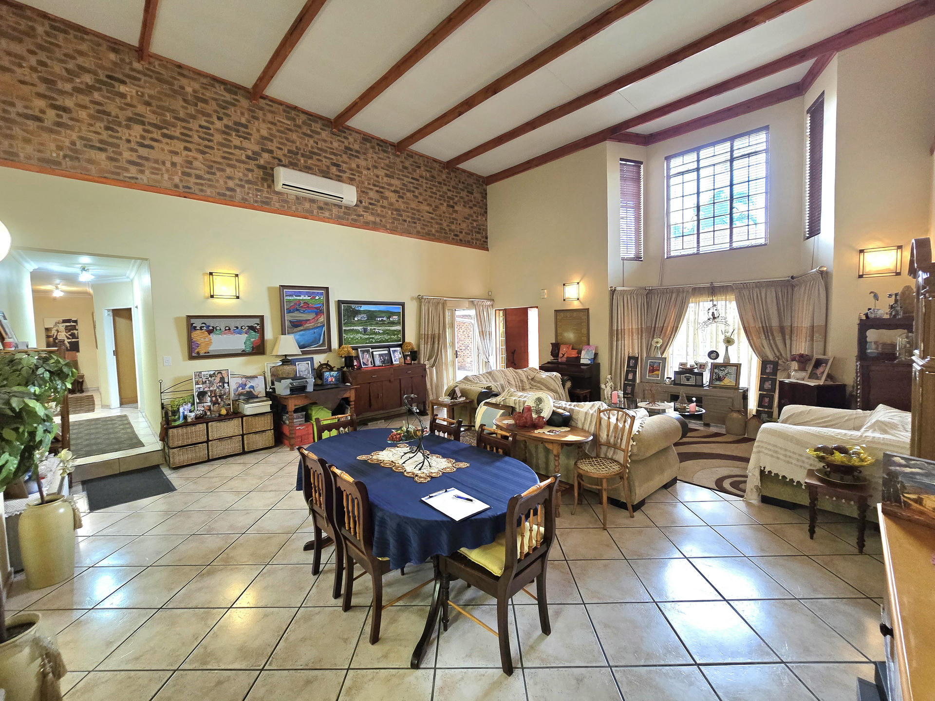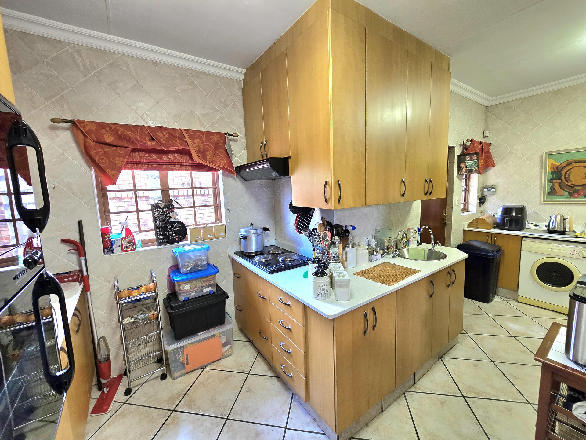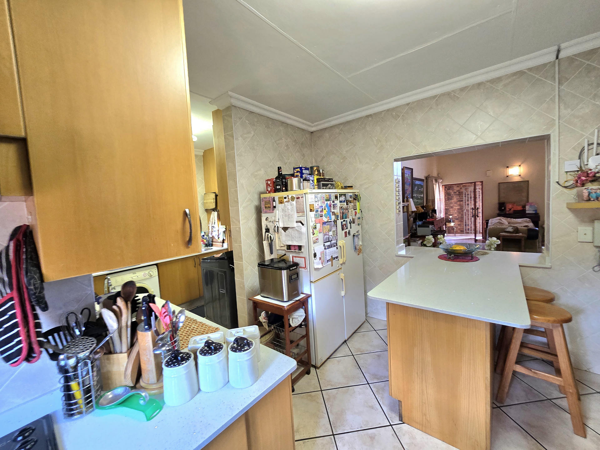 .This beautifully presented duet offers spacious open plan living with impressive double volume ceilings and an inviting flow throughout. The main lounge and dining area are bright and airy, complemented by an additional room that can serve as either a second lounge or a dedicated entertainment space with an indoor braai. The well designed kitchen includes quartz countertops, a walk in pantry, and a separate scullery and laundry combination, making daily living both practical and convenient. All three bedrooms are generously sized, with the main bedroom featuring air conditioning, a walk in closet, and a full en suite bathroom. The remaining bedrooms are well appointed and share a full bathroom, while a separate guest toilet adds extra convenience. The home also includes a private study for those who work from home, strong security features such as electric fencing, automated gates, burglar bars, trelligates, CCTV, and an outside toilet for added practicality. The low maintenance garden is neatly kept and fitted with irrigation. Energy efficiency is a standout feature thanks to a powerful solar setup that includes an inverter, lithium batteries, and an array of solar panels, ensuring uninterrupted comfort. Parking is plentiful with a double automated garage, an enclosed double steel carport, and additional paved parking. Positioned in a quiet four unit complex with no levies, only a small maintenance fund when needed, this property offers secure, comfortable, and modern living in one of Aerorand’s most desirable areas.