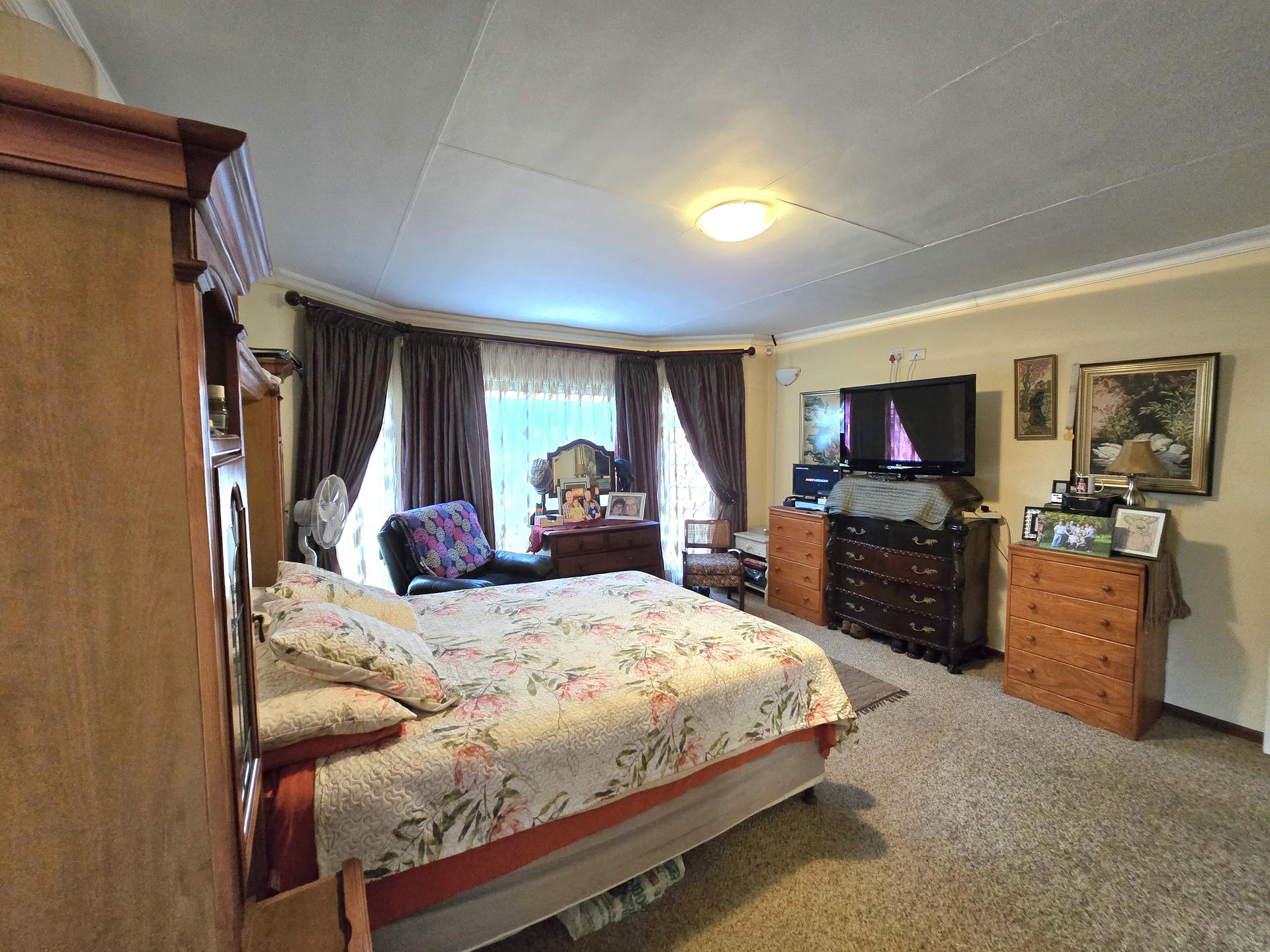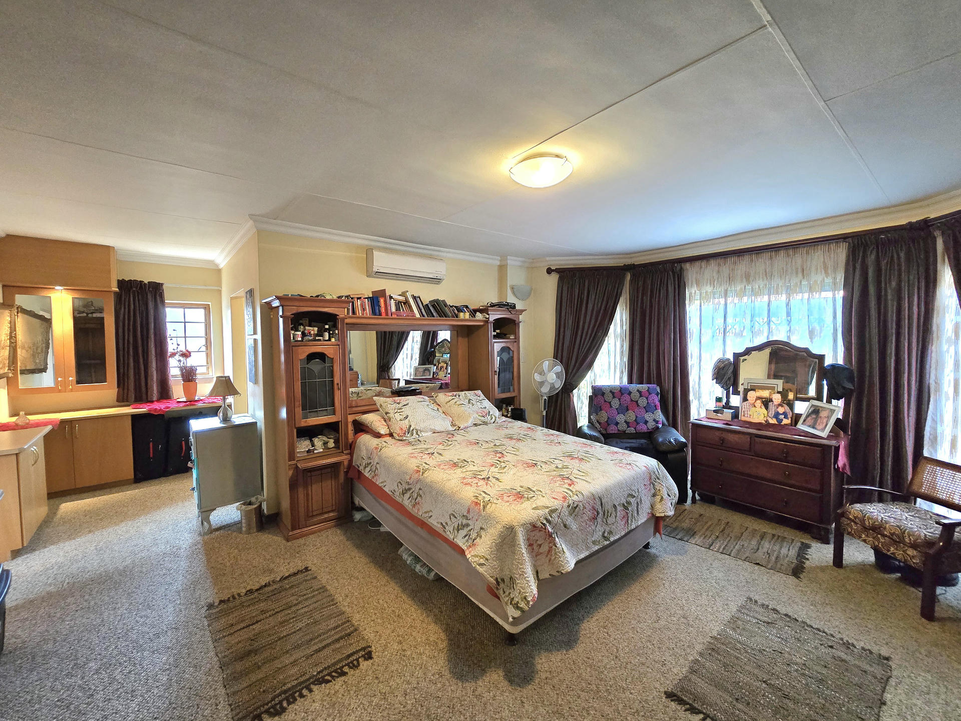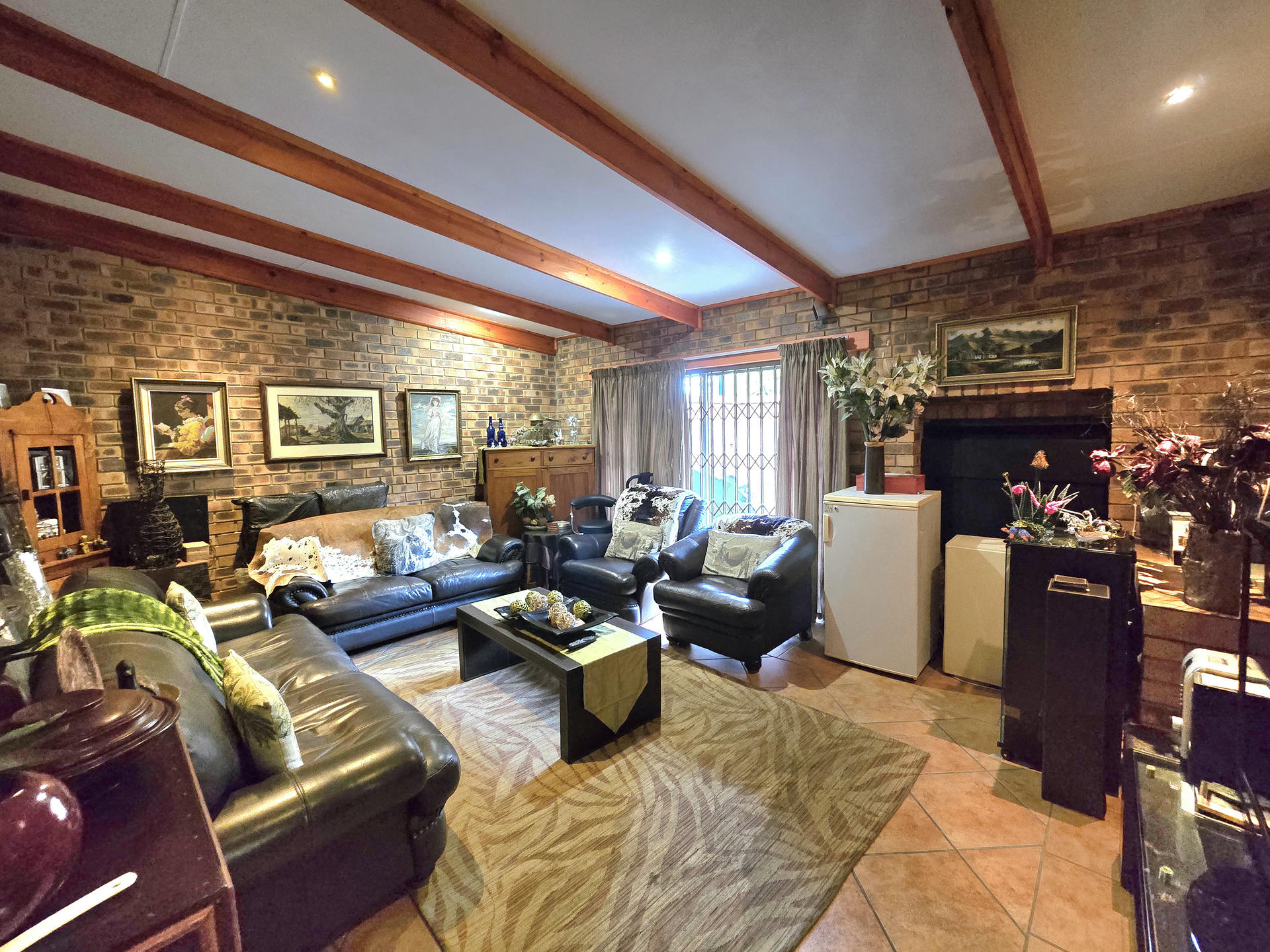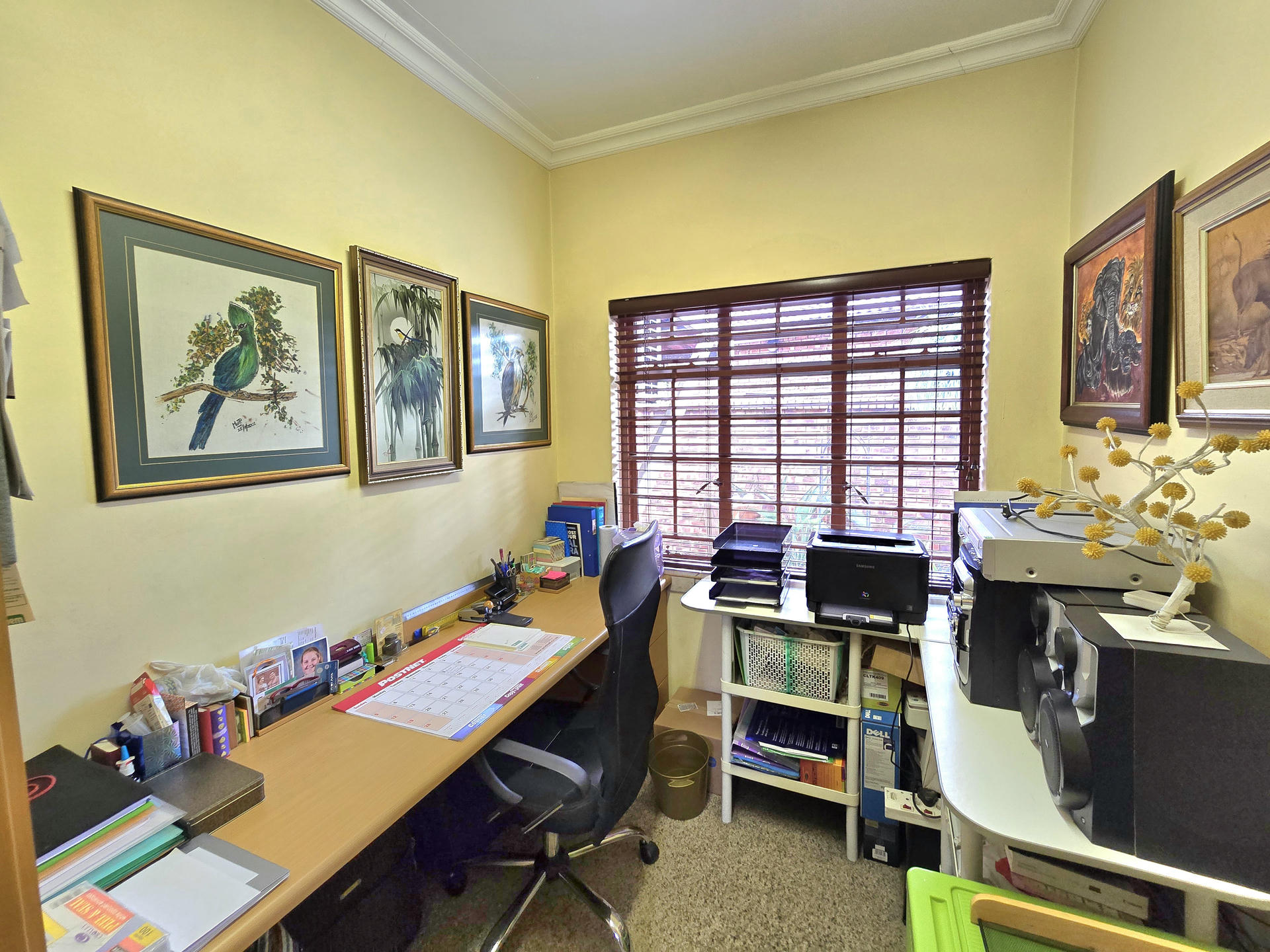 .This beautifully presented duet offers spacious open plan living with impressive double volume ceilings and an inviting flow throughout. The main lounge and dining area are bright and airy, complemented by an additional room that can serve as either a second lounge or a dedicated entertainment space with an indoor braai. The well designed kitchen includes quartz countertops, a walk in pantry, and a separate scullery and laundry combination, making daily living both practical and convenient. All three bedrooms are generously sized, with the main bedroom featuring air conditioning, a walk in closet, and a full en suite bathroom. The remaining bedrooms are well appointed and share a full bathroom, while a separate guest toilet adds extra convenience. The home also includes a private study for those who work from home, strong security features such as electric fencing, automated gates, burglar bars, trelligates, CCTV, and an outside toilet for added practicality. The low maintenance garden is neatly kept and fitted with irrigation. Energy efficiency is a standout feature thanks to a powerful solar setup that includes an inverter, lithium batteries, and an array of solar panels, ensuring uninterrupted comfort. Parking is plentiful with a double automated garage, an enclosed double steel carport, and additional paved parking. Positioned in a quiet four unit complex with no levies, only a small maintenance fund when needed, this property offers secure, comfortable, and modern living in one of Aerorand’s most desirable areas.