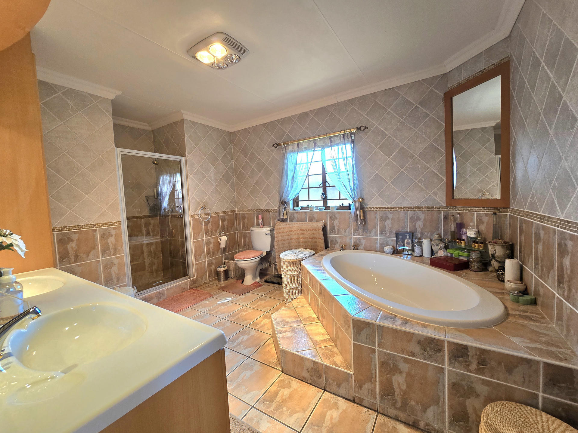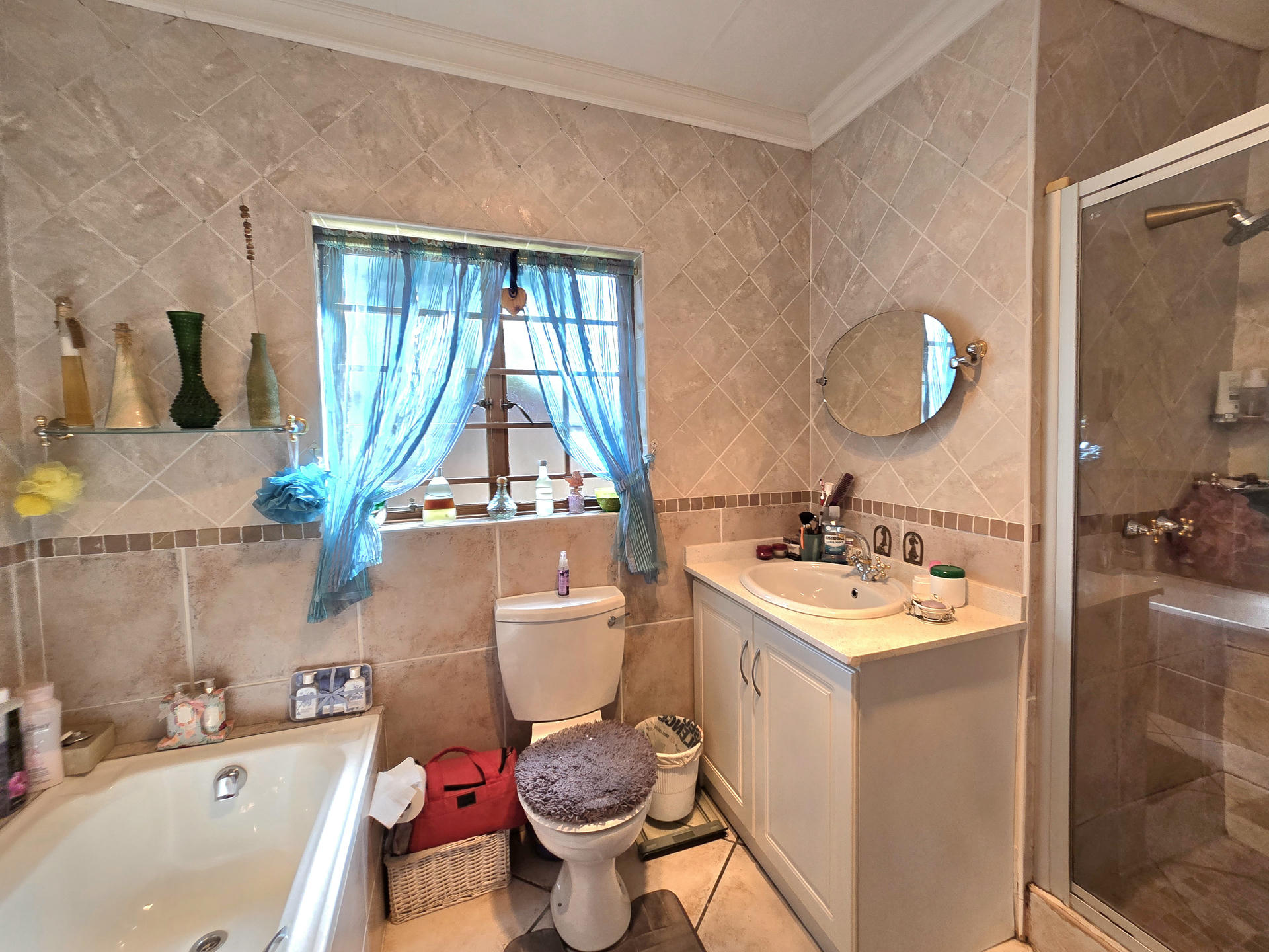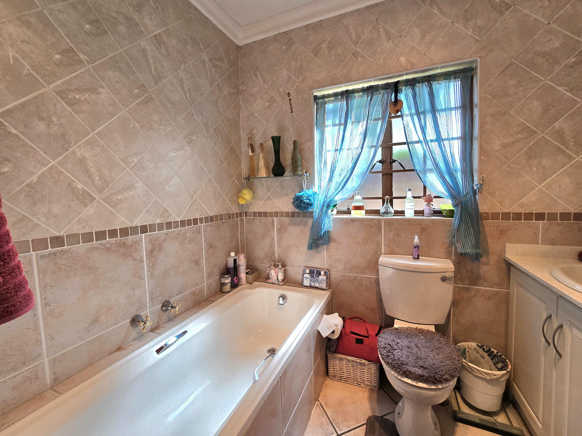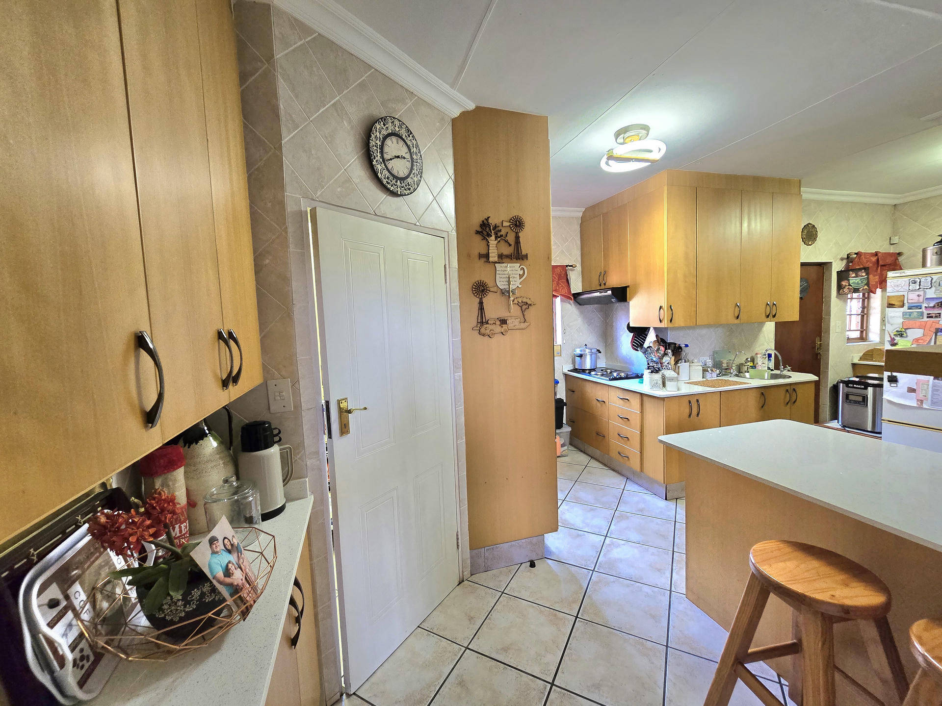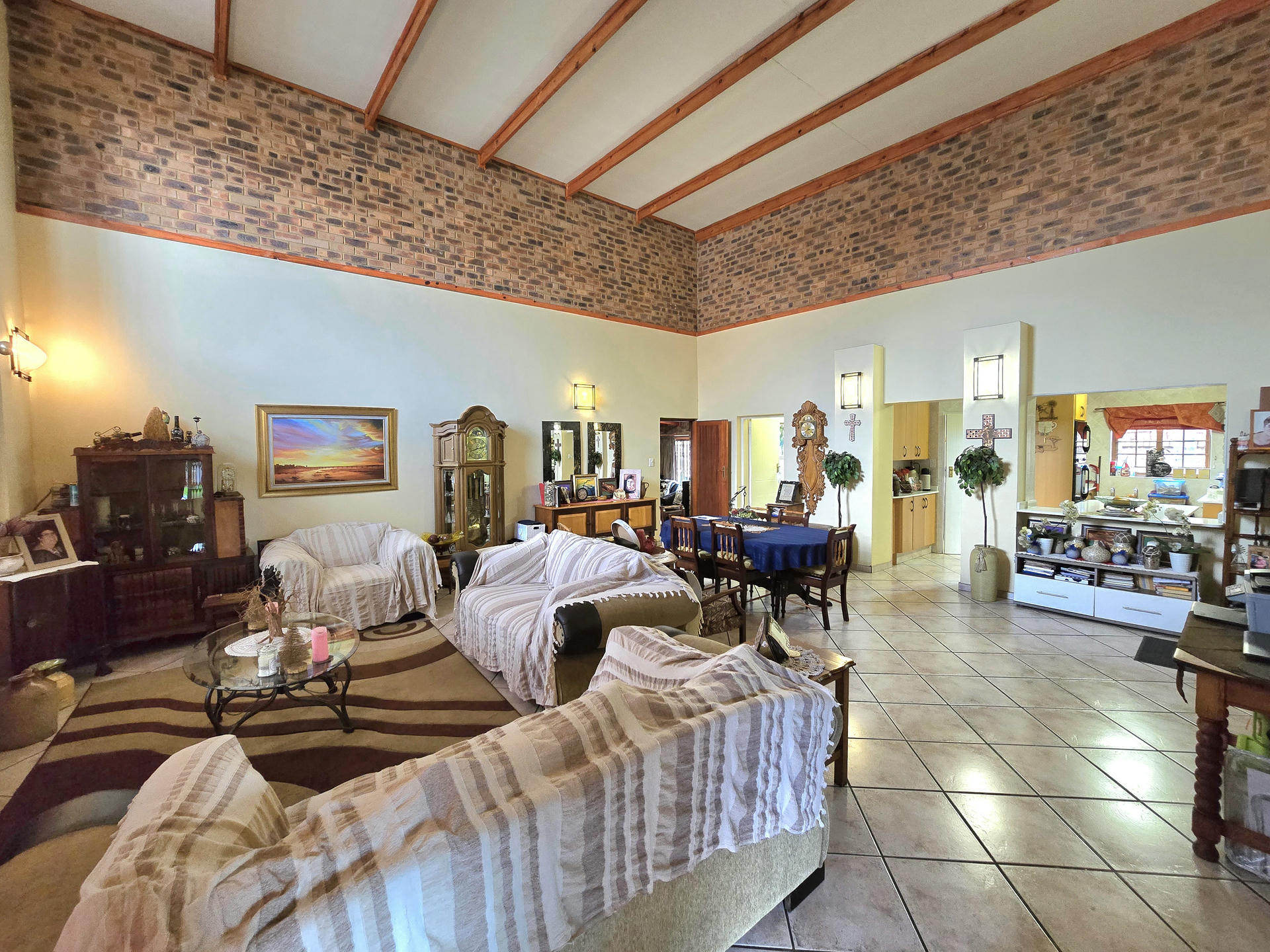 .This beautifully presented duet offers spacious open plan living with impressive double volume ceilings and an inviting flow throughout. The main lounge and dining area are bright and airy, complemented by an additional room that can serve as either a second lounge or a dedicated entertainment space with an indoor braai. The well designed kitchen includes quartz countertops, a walk in pantry, and a separate scullery and laundry combination, making daily living both practical and convenient. All three bedrooms are generously sized, with the main bedroom featuring air conditioning, a walk in closet, and a full en suite bathroom. The remaining bedrooms are well appointed and share a full bathroom, while a separate guest toilet adds extra convenience. The home also includes a private study for those who work from home, strong security features such as electric fencing, automated gates, burglar bars, trelligates, CCTV, and an outside toilet for added practicality. The low maintenance garden is neatly kept and fitted with irrigation. Energy efficiency is a standout feature thanks to a powerful solar setup that includes an inverter, lithium batteries, and an array of solar panels, ensuring uninterrupted comfort. Parking is plentiful with a double automated garage, an enclosed double steel carport, and additional paved parking. Positioned in a quiet four unit complex with no levies, only a small maintenance fund when needed, this property offers secure, comfortable, and modern living in one of Aerorand’s most desirable areas.